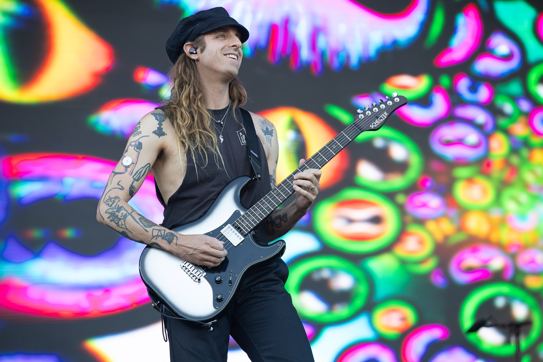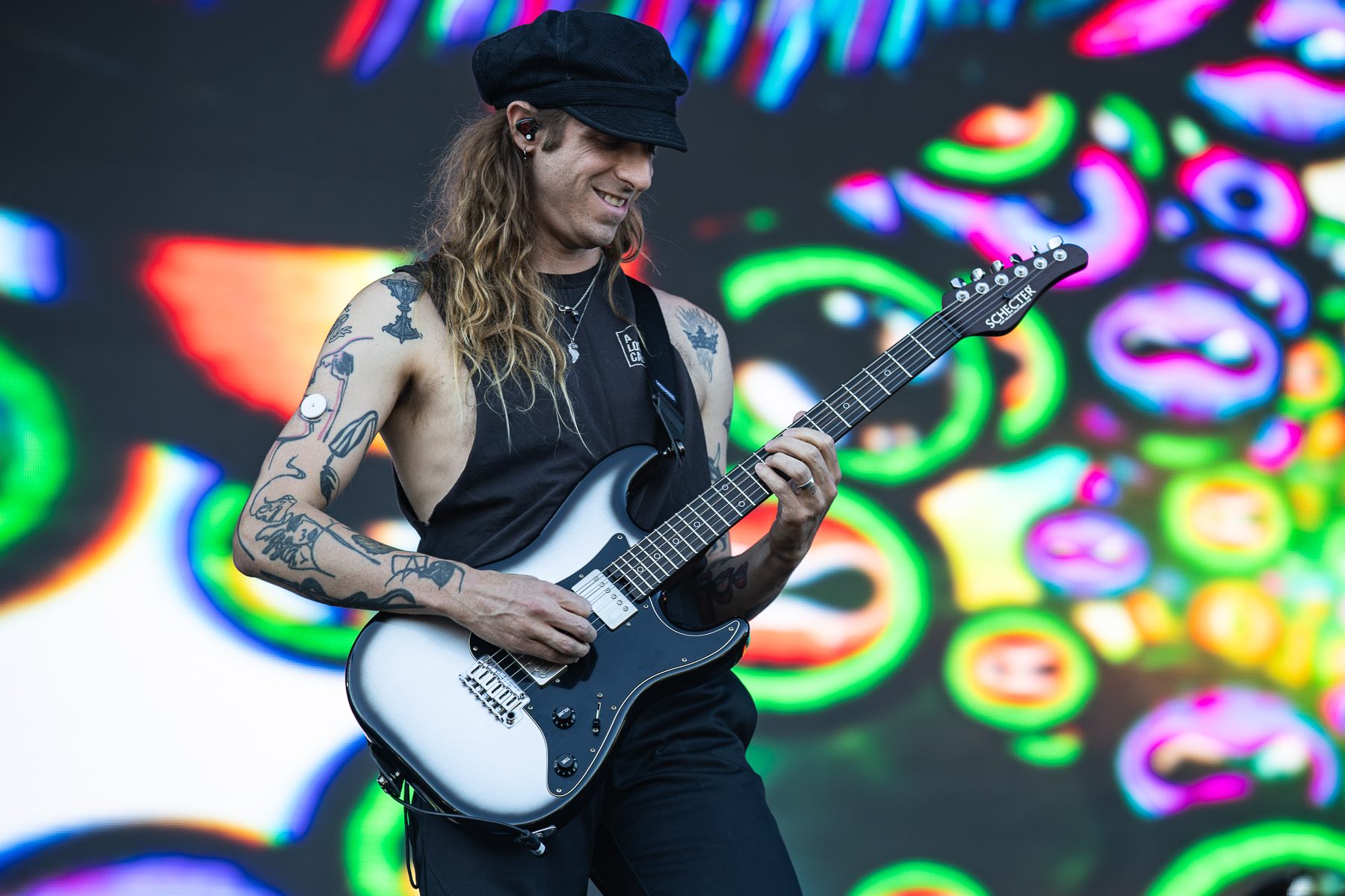 AMON AMARTH, so far, are the only band that feel like an actual set. Bringing their full production of inflatable statues, a horned-helmet drum riser and flames aplenty they show the crowd why they earned that Bloodstock headline slot. Opening with Guardians Of Asgard the band are as tight as can be. Until vocalist Johan Hegg decks it and sports a bloody elbow for the rest of the set. But he gets straight back up and tries his best to hold in his laughter for the rest of the song. Afterwards he quips “it’s not about how you fall, but how you pick yourself back up!” A blistering set later, filled with songs like Shield Wall, Crack the Sky and the catchy Put Your Back Into The Oar with rowing pits aplenty, they end with Twilight Of the Thunder God. Complete with Hegg brandishing his hammer, swinging it down and explosions ringing across the stage. As they leave the stage, a familiar sight appears.