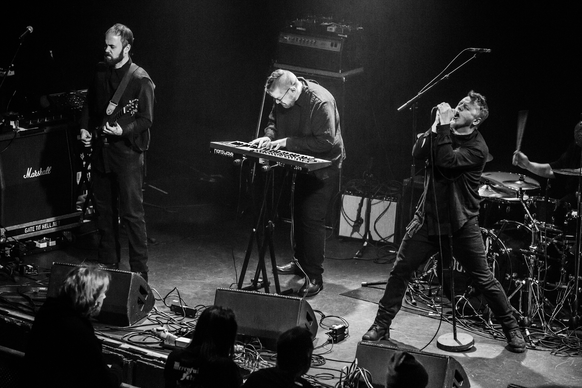 There are plenty of quieter yet foreboding calmer post-metal passages with singer Jón Aldará highly accomplished, emotive and powerful singing. These are sumptuously contrasted against melodic death doom and Aldará‘s gravelly death metal growls – a true talent that can execute both singing styles in the same song to such an expert level. Keyboardist Esmar Joensen provides atmospheric backing to guitars touching progressive and folk inflections. The venue’s sound compliments HAMFERБs rich well-produced compositions, and the audience, who are reserved towards the start of the set, visibly warm up to the Faroese act’s creations.