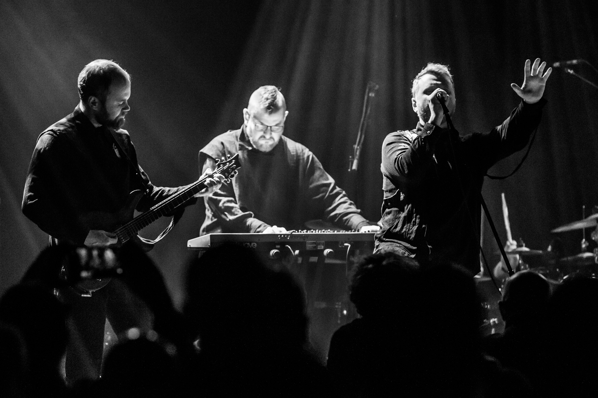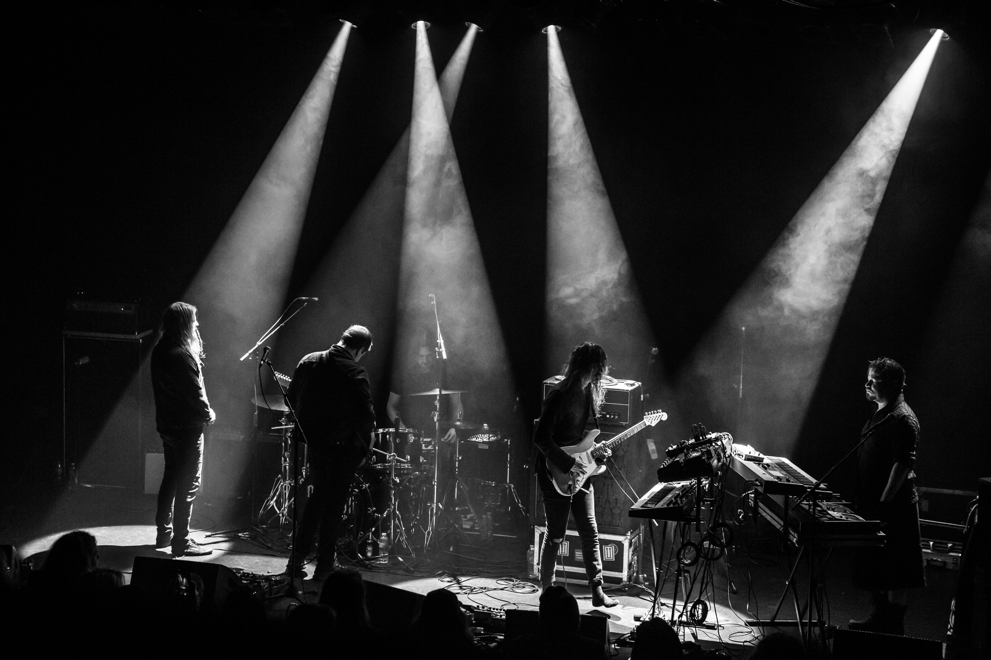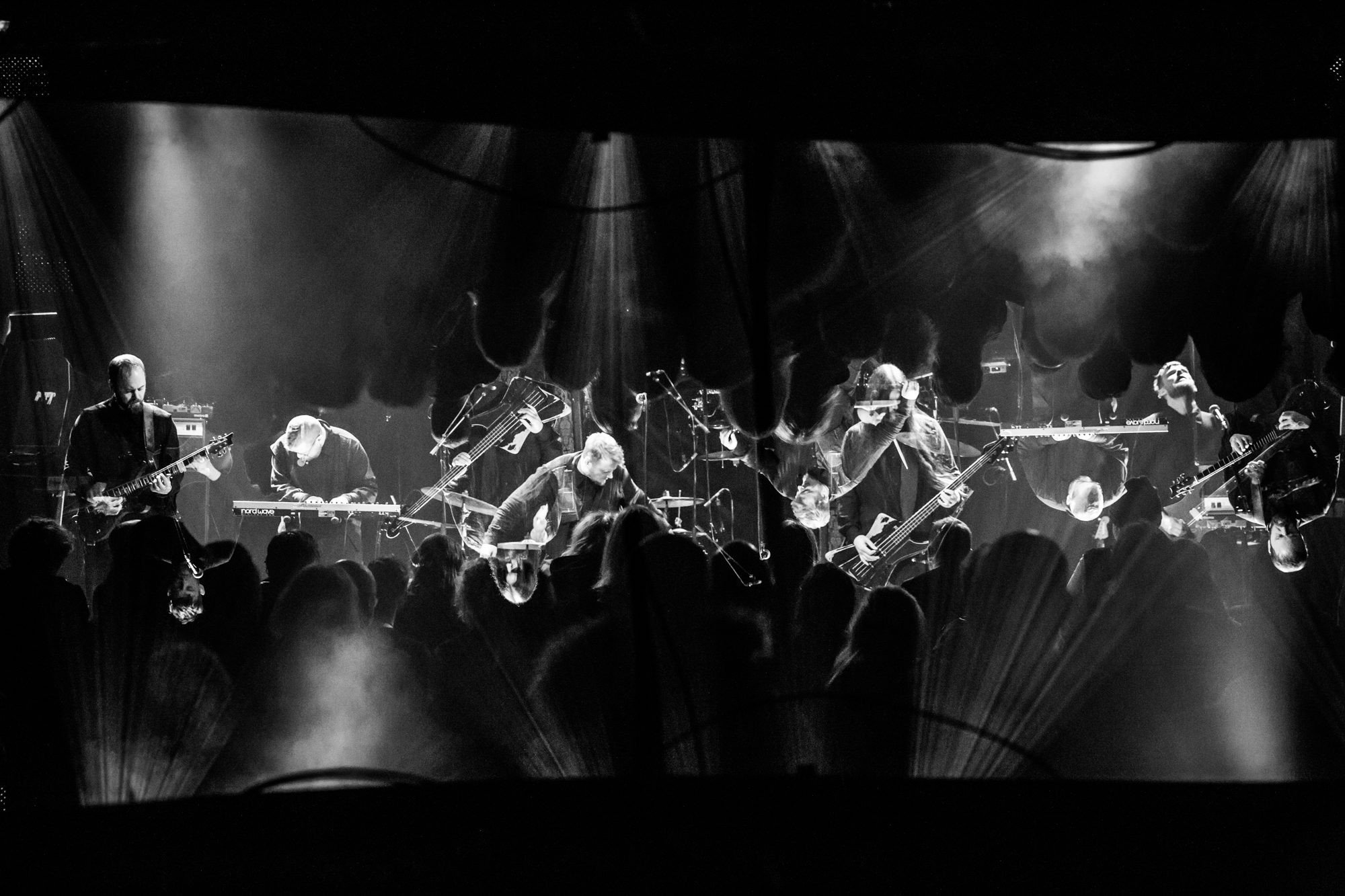 Gazing back, 2011’s Svartir Sandir was the release that drew our their success, following the break-through Köld album in 2009. It remains one of the Icelanders’ most favoured full-lengths, so its appearance tonight is greeted by a hearty reception. Fjara from this release is a tender, lonesome lamentation, while the title track can be reliably measured in grief and strain, a sprawling mosaic of misplaced agony and blunt self-reflection. Newer song Ótta is surprisingly simplistic and repetitive but is as darkly beautiful as the rugged Icelandic wilderness. The Glasgow crowd is most receptive to this selection and gives it a thunderous ovation. While the core of their music is indeed post-rock and metal, they touch on so many other influences, including ambient, shoegaze, post-punk, stoner doom, folk, electronic, drone, and more. They’re a complex collective, but not in a musically technical manner; they’re keen dabblers in aural textures and the ways altering them can manipulate the listener. While there is a dazzling breadth of inspiration and layers to digest, all the music shares a common thread of yearning, nostalgia, and indescribable loss.