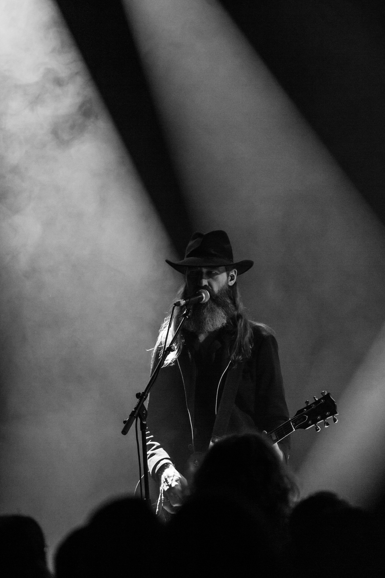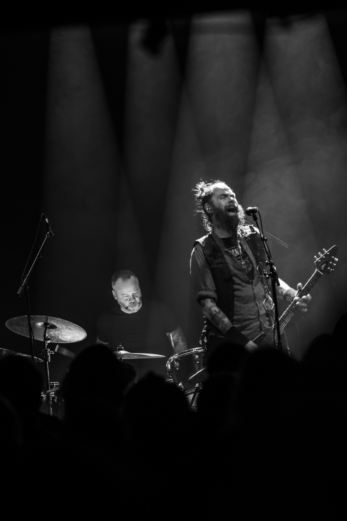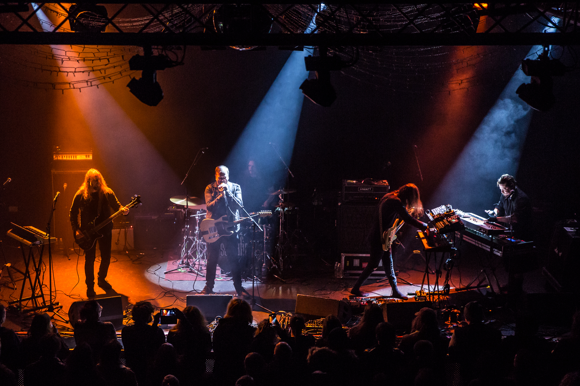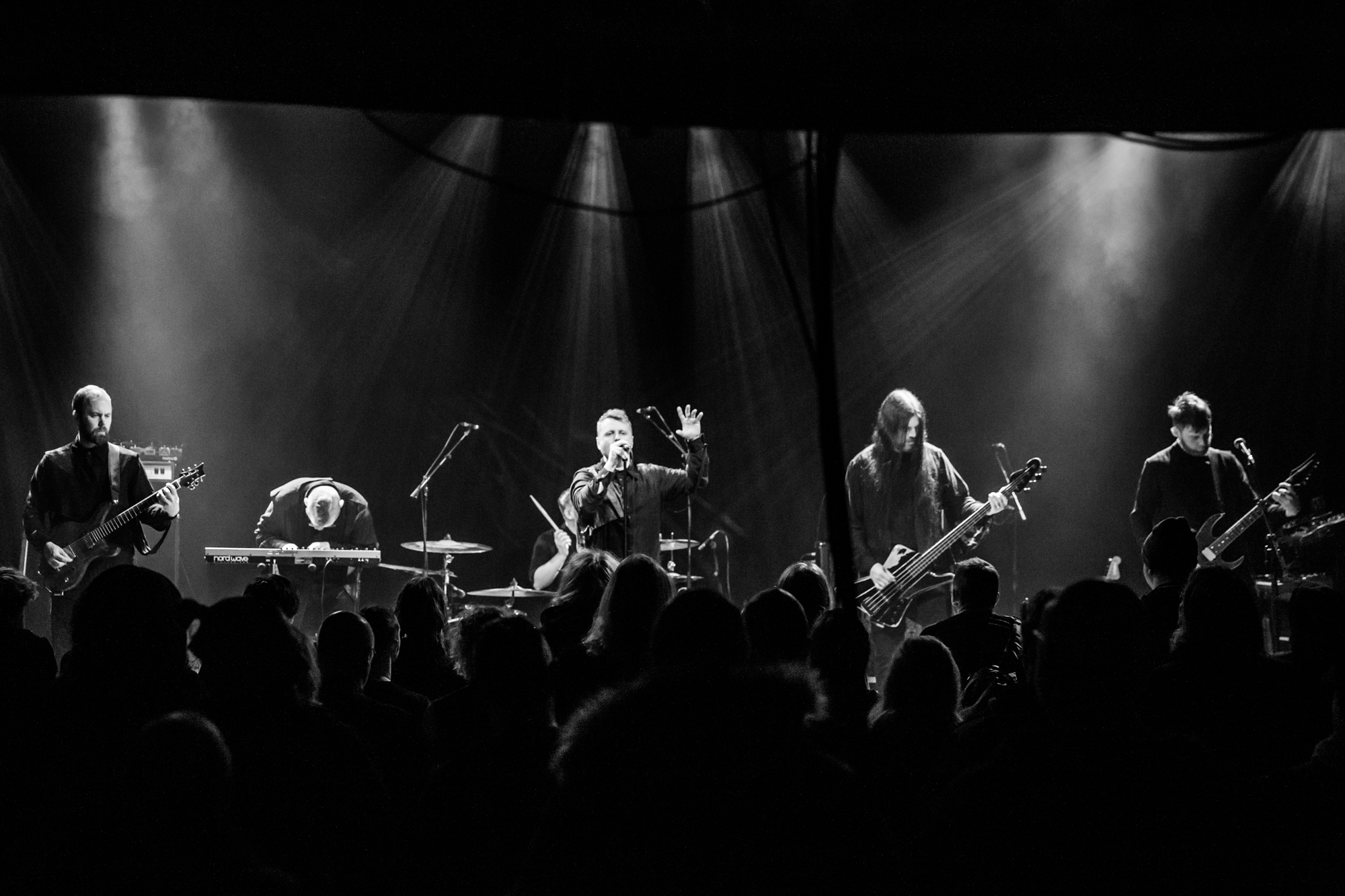 Gazing back, 2011’s Svartir Sandir was the release that drew our their success, following the break-through Köld album in 2009. It remains one of the Icelanders’ most favoured full-lengths, so its appearance tonight is greeted by a hearty reception. Fjara from this release is a tender, lonesome lamentation, while the title track can be reliably measured in grief and strain, a sprawling mosaic of misplaced agony and blunt self-reflection. Newer song Ótta is surprisingly simplistic and repetitive but is as darkly beautiful as the rugged Icelandic wilderness. The Glasgow crowd is most receptive to this selection and gives it a thunderous ovation. While the core of their music is indeed post-rock and metal, they touch on so many other influences, including ambient, shoegaze, post-punk, stoner doom, folk, electronic, drone, and more. They’re a complex collective, but not in a musically technical manner; they’re keen dabblers in aural textures and the ways altering them can manipulate the listener. While there is a dazzling breadth of inspiration and layers to digest, all the music shares a common thread of yearning, nostalgia, and indescribable loss.