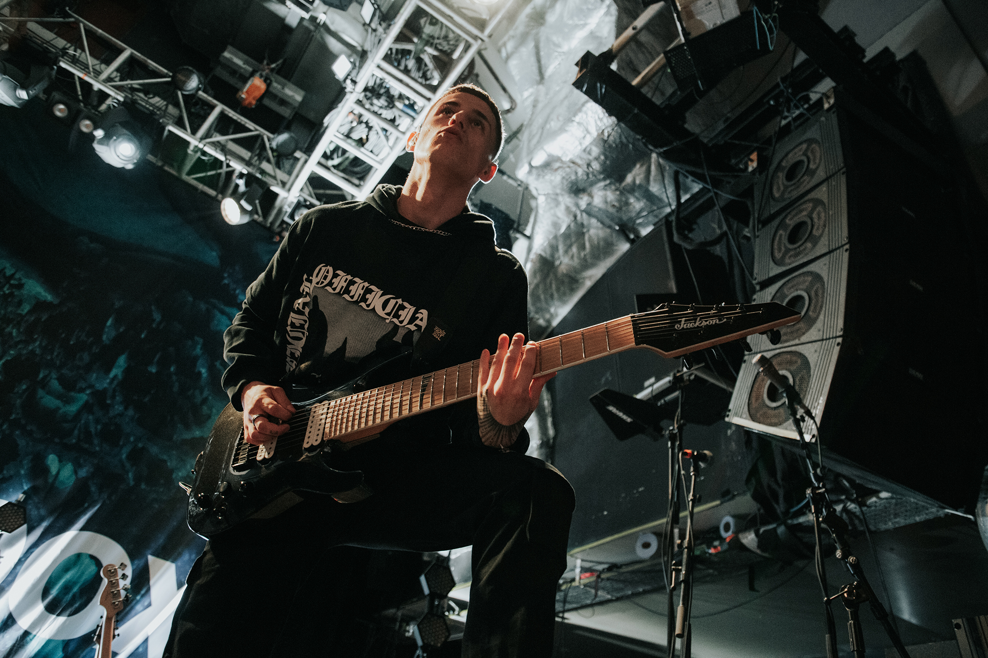 Opening the proceedings of what would be an otherwise quiet Monday was Hertfordshire foursome VEXED. They come right at the sweet spot of the resurgence of progressive metal and constantly prove repeatedly that they are one of the most exciting new bands in the UK. An otherwise sleepy audience that is worn out from a weekend of festival excitement is woken straight up by vocalist Megan Targett’s vicious vocals. Her venom-filled low growls reverberate throughout the entire room and seems to put the audience into a trance, one that is only broken by her soaring and razor-sharp melodies. Targett is joined on stage by an incredible instrumental section, with Jay Bacon on guitar leading each progressive riff to a studio quality, Al Harper on bass giving the songs the pulsating low-end they so desperately need to resonate with the audience, and powerhouse drummer Willem Mason-Geraghty keeping everything driving forward with an extremely impressive amount of energy and skill. This band is hard as nails and have proved that they are born to play these bigger stages and deliver the sucker punch that is their aggressive grooves & atmosphere to audiences of thousands.