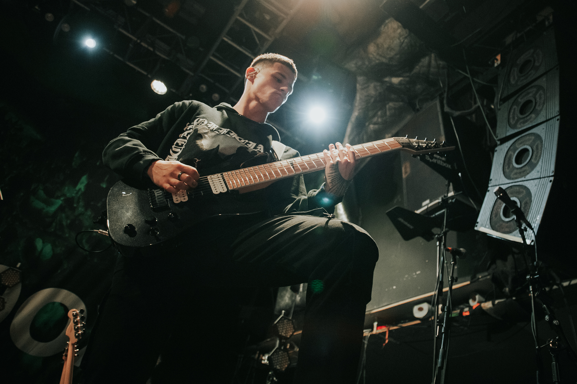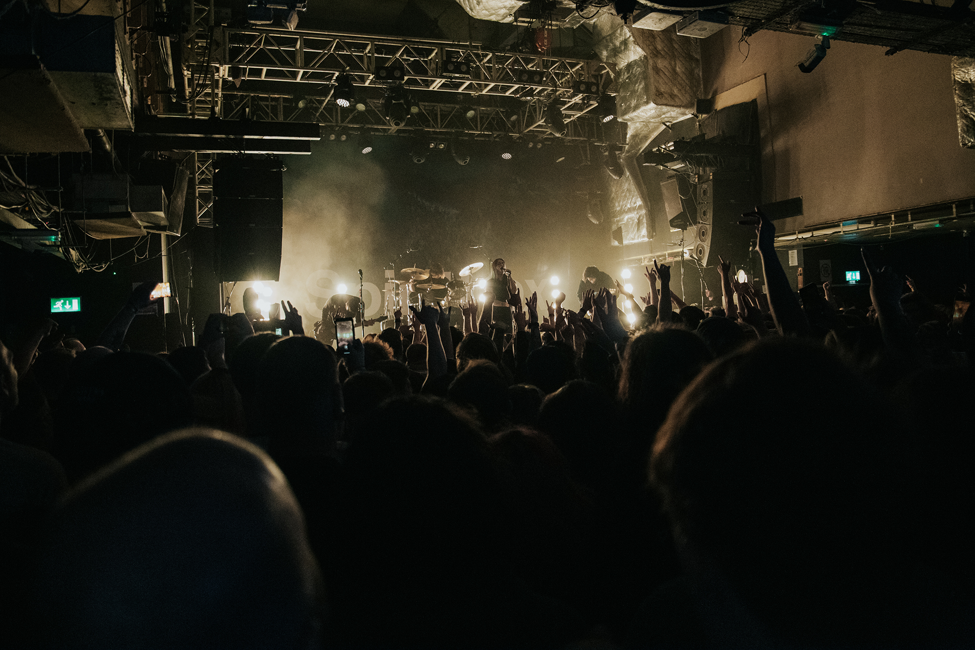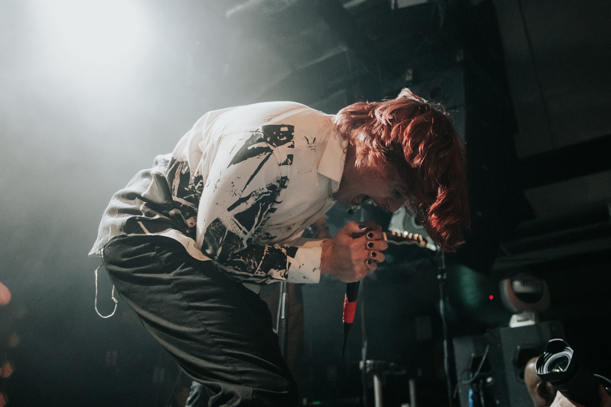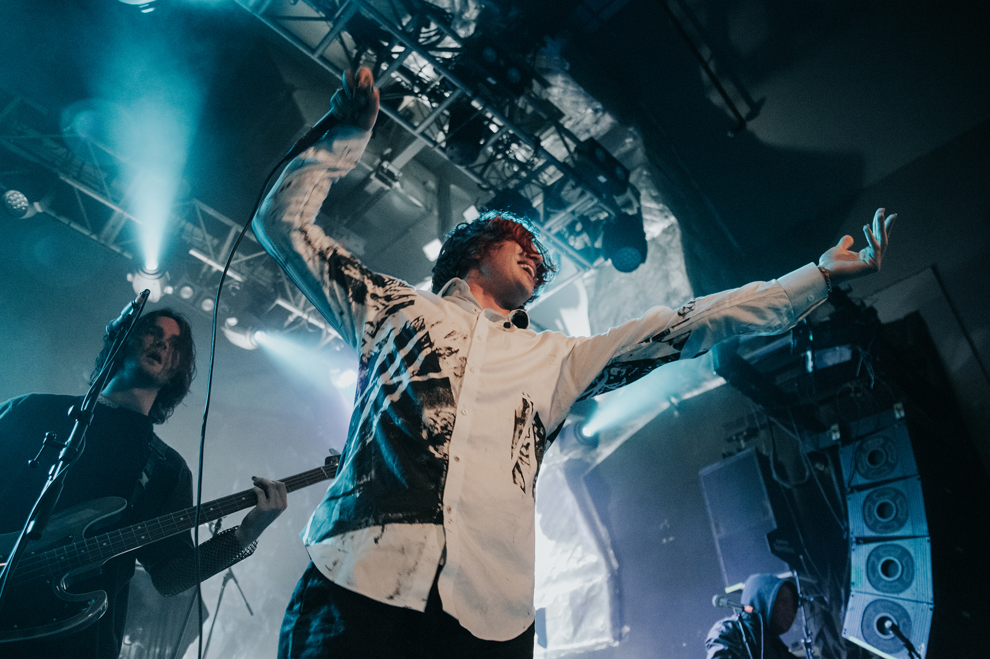 Up next is four-piece STATIC DRESS. Over the last year they’ve managed to bag tours with FUNERAL FOR A FRIEND and KNOCKED LOOSE, and appearances at BRING ME THE HORIZON’s Malta Weekender. Just at this gig alone, they are fresh from an appearance at Download Festival but after witnessing their set its absolutely no shock that they’ve managed to work with so many big names already. They quite literally explode onto stage with frontman and lead singer Olli Appleyard jumping around like there are springs attached to his shoes – it’s quite impressive how much air he can manage to get. They get lost in their own performance and allow the audience to do the same, reaping the successes of the last few months with the release of sophomore album Rogue Carpet Disaster back in May. They may be a support band, but they are not just any support band, drawing in their own group of fans that make every effort to sing along with every word and crowd surf when told to. They have an infectious energy, and their upbeat punk-y music gives the audience something to truly get lost in for a few minutes; exactly what most of us look for in a gig. They are an extremely well-oiled machine, leaving the talking between songs for the other bands as they simply play their music for a room full of adoring fans, both old and new. As can be said for every other band playing this evening, STATIC DRESS are destined to move on to bigger and better things, with this being just the start for them.
