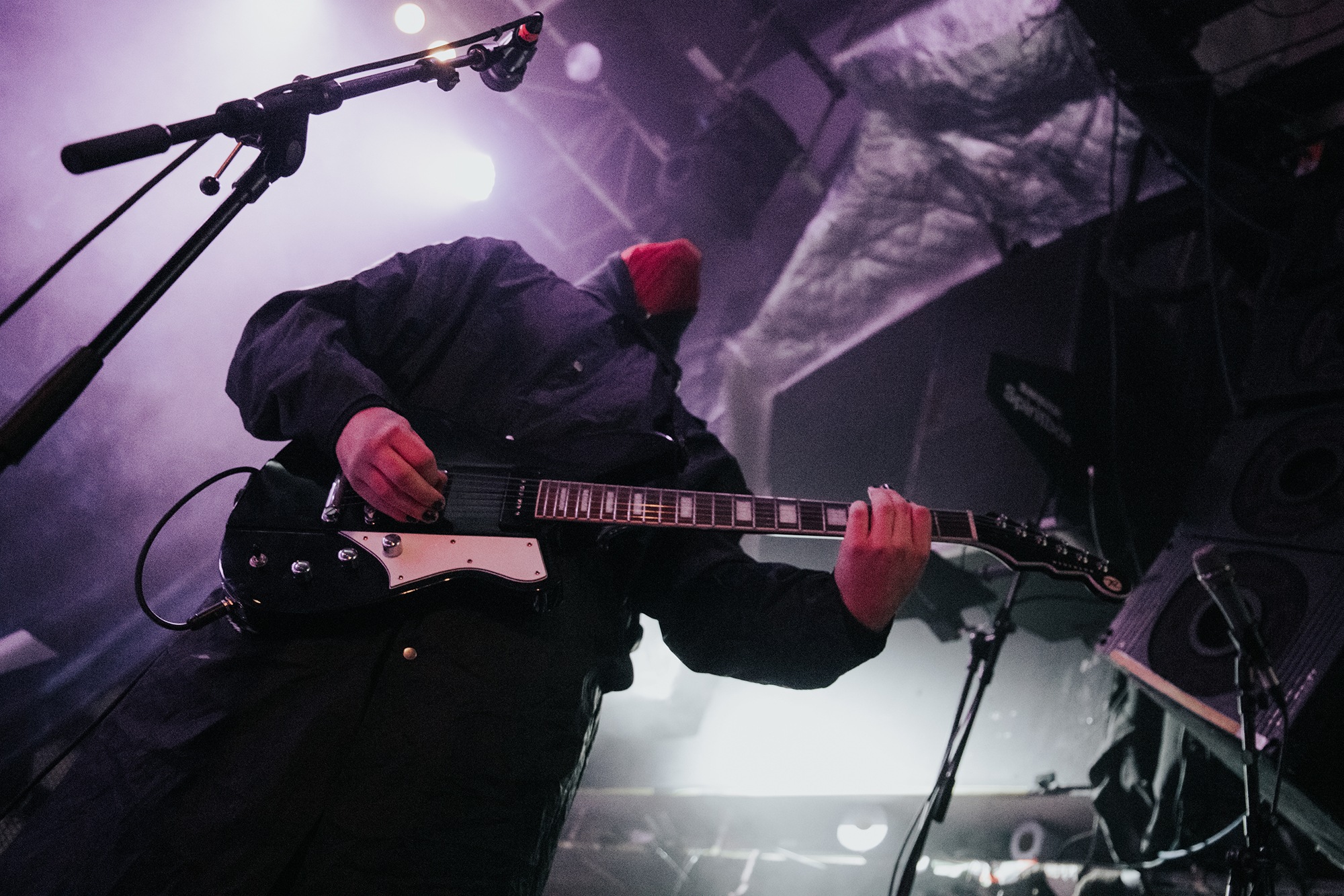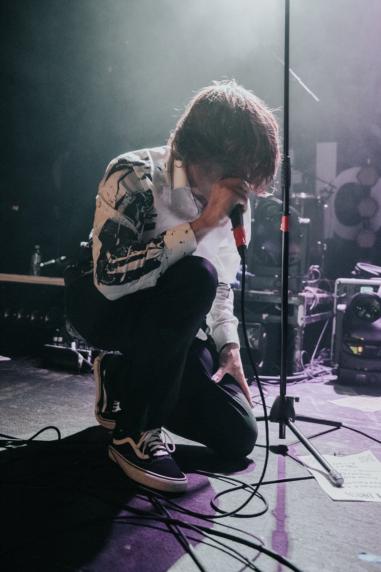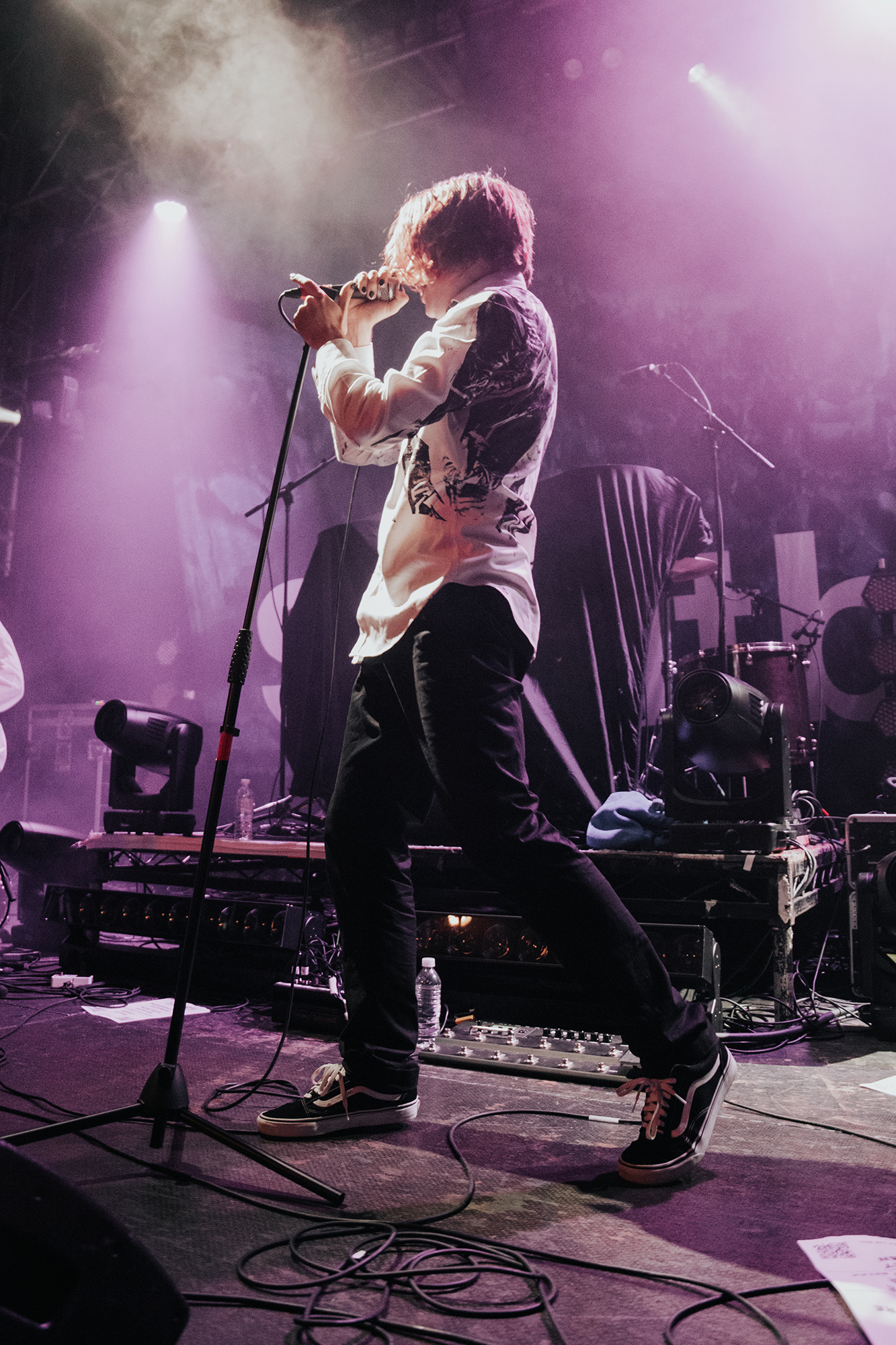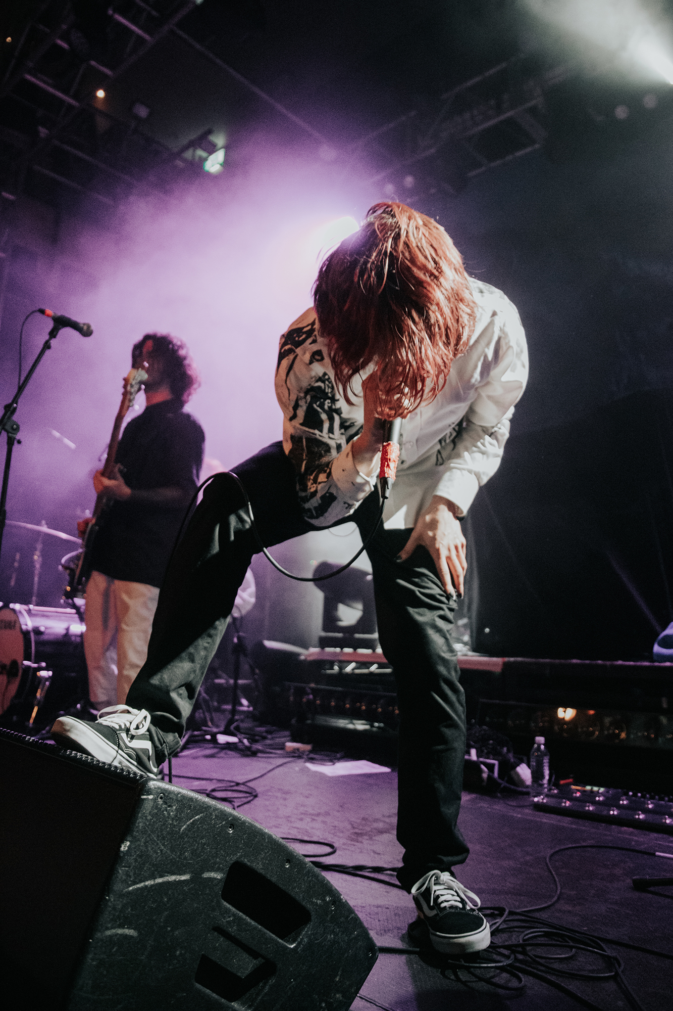 Up next is four-piece STATIC DRESS. Over the last year they’ve managed to bag tours with FUNERAL FOR A FRIEND and KNOCKED LOOSE, and appearances at BRING ME THE HORIZON’s Malta Weekender. Just at this gig alone, they are fresh from an appearance at Download Festival but after witnessing their set its absolutely no shock that they’ve managed to work with so many big names already. They quite literally explode onto stage with frontman and lead singer Olli Appleyard jumping around like there are springs attached to his shoes – it’s quite impressive how much air he can manage to get. They get lost in their own performance and allow the audience to do the same, reaping the successes of the last few months with the release of sophomore album Rogue Carpet Disaster back in May. They may be a support band, but they are not just any support band, drawing in their own group of fans that make every effort to sing along with every word and crowd surf when told to. They have an infectious energy, and their upbeat punk-y music gives the audience something to truly get lost in for a few minutes; exactly what most of us look for in a gig. They are an extremely well-oiled machine, leaving the talking between songs for the other bands as they simply play their music for a room full of adoring fans, both old and new. As can be said for every other band playing this evening, STATIC DRESS are destined to move on to bigger and better things, with this being just the start for them.