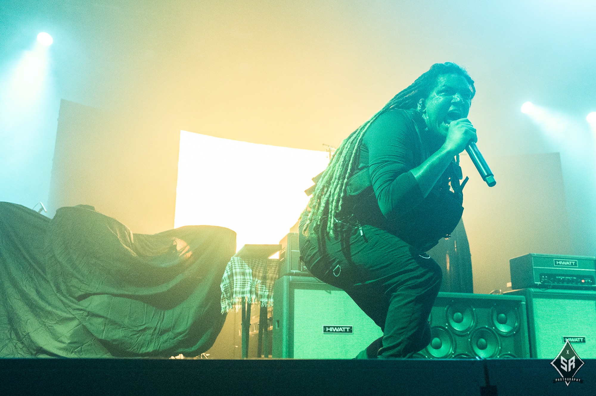 If the excitement was noticeable for the supports, the moments proceeding SPIRITBOX arriving to the stage are palpable. We touched upon the fact the band have experienced a meteoric rise in recent times and whilst naysayers may cry this is down to internet hype alone, bearing witness to 3,500 people lose their collective shit to opening salvo of Rule Of Nines and Hurt You quashes these critics in an instant as Courtney LaPlante and company set an immediate aura of conviction. A thundering opening it may be, but with Yellowjacket next on the agenda, the venue becomes a warzone as the swelling crowds bounce and collide as the hefty riffs from Mike Stringer pack a wallop and LaPlante‘s guttural blasts hit like a freight train.