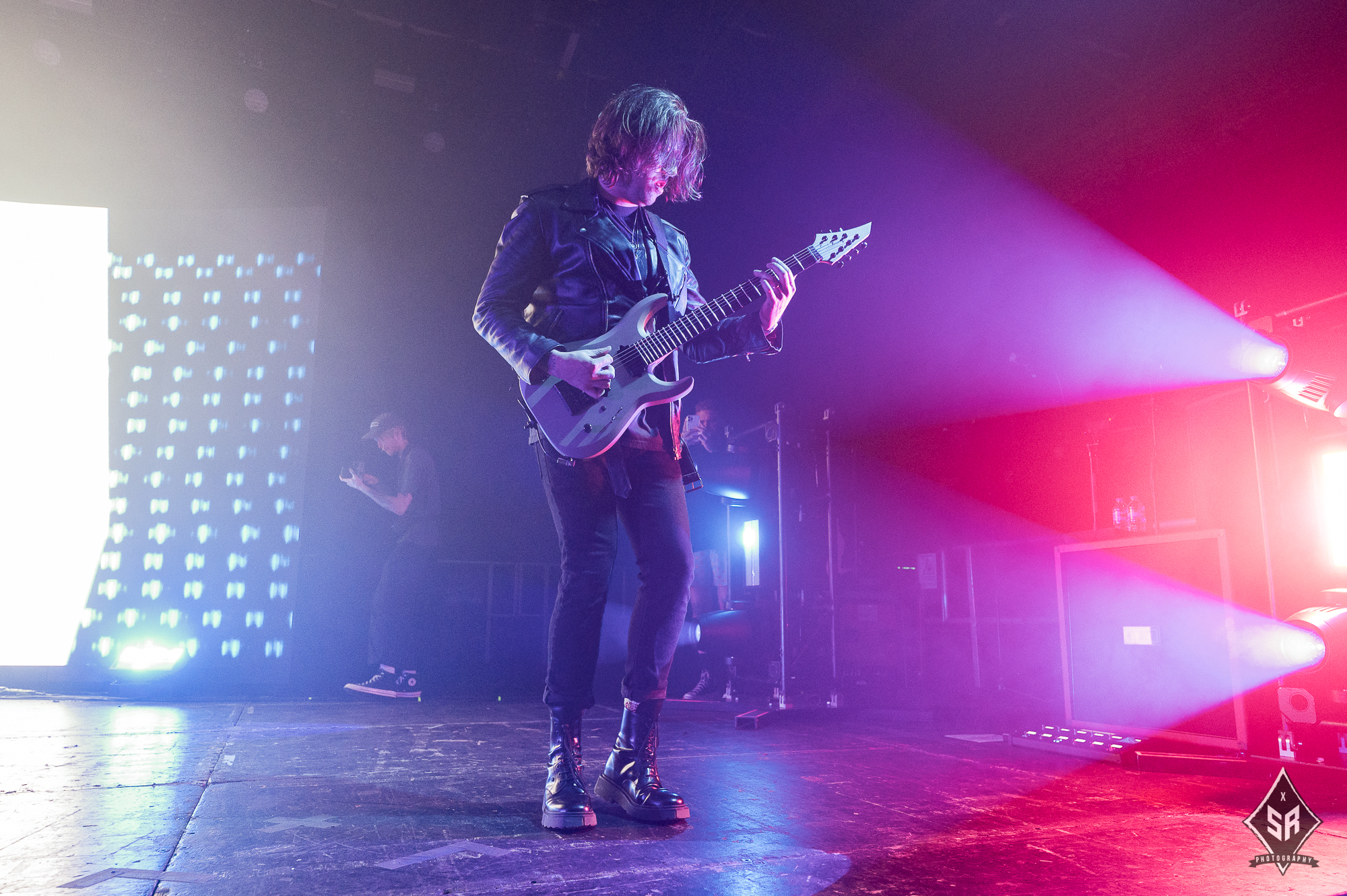 Given the popularity of tonight’s headliners, it’s not surprising the queue is snaking round the venue upon doors opening. As such, there is a a healthy numbers of bodies awaiting openers BRAND OF SACRIFICE. Fellow countrymen of the main event, the Canadians have enjoyed a surge in popularity (albeit not to the same intensity as SPIRITBOX) and as the main theme of the Pokémon animated series announces their arrival, the crowd holds their collective breath. Bursting to life with a quick-fire rendition of Blinded and Demon King, (both from this year’s Between Death And Dreams EP) a multitude of hefty shredding pummels the crowd. While frontman Kyle Anderson is an animated presence on stage, exuding energy with aplomb and dispatches piercing shrieks and guttural lows aplenty.