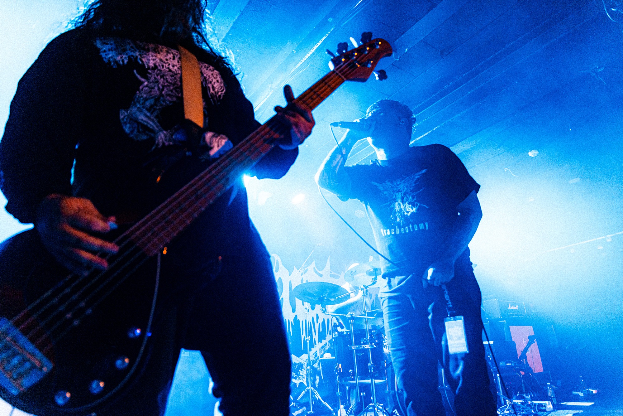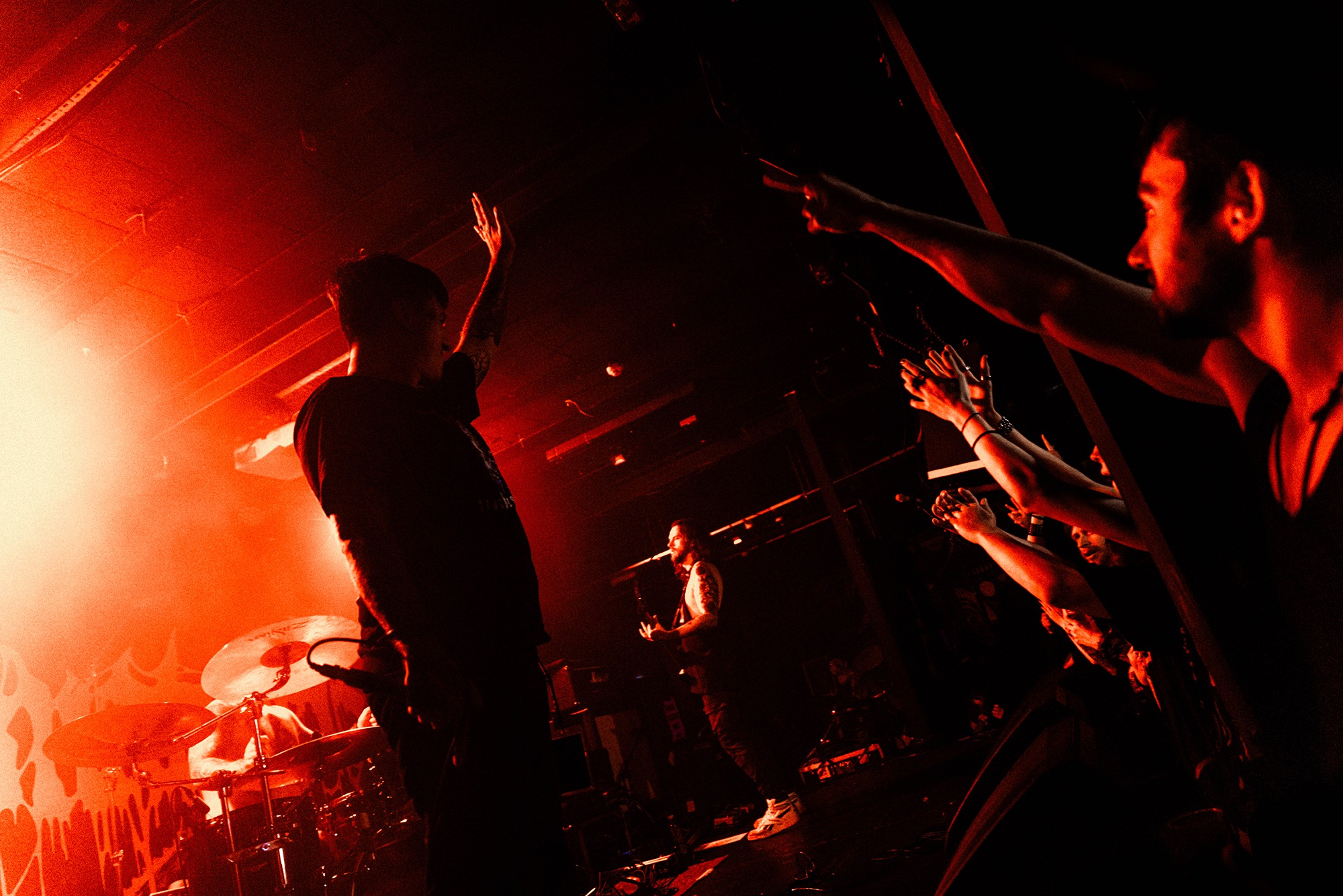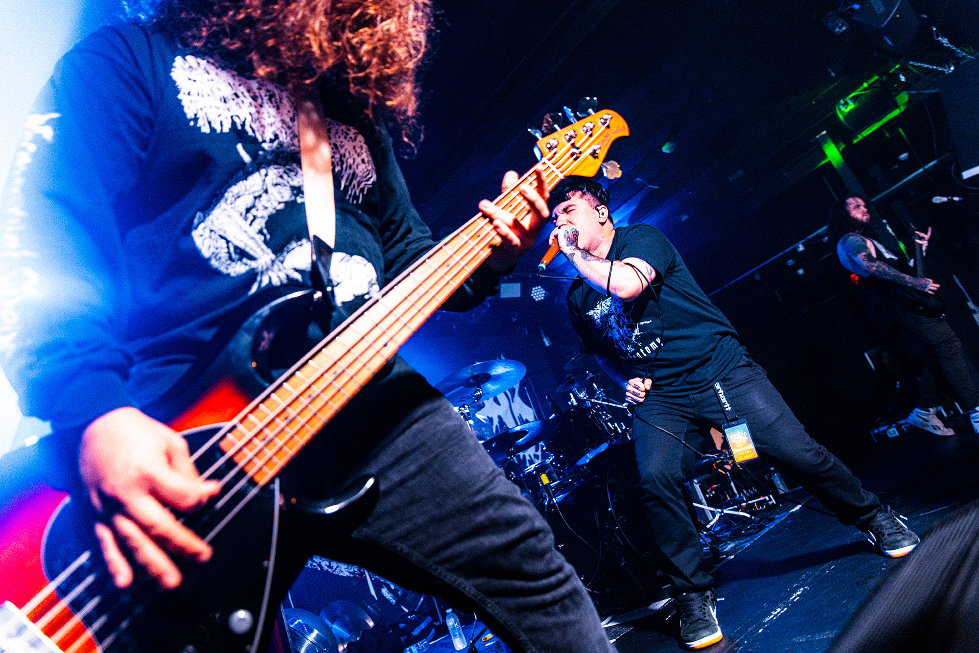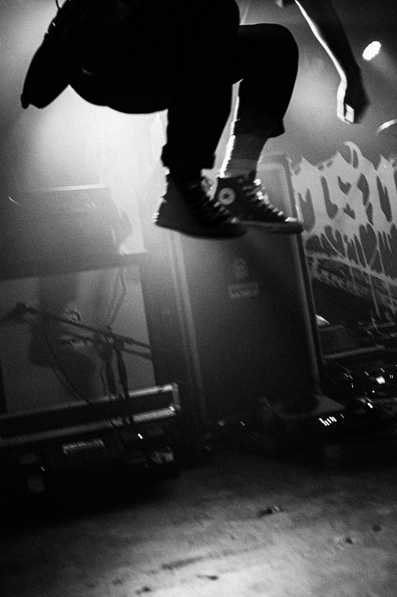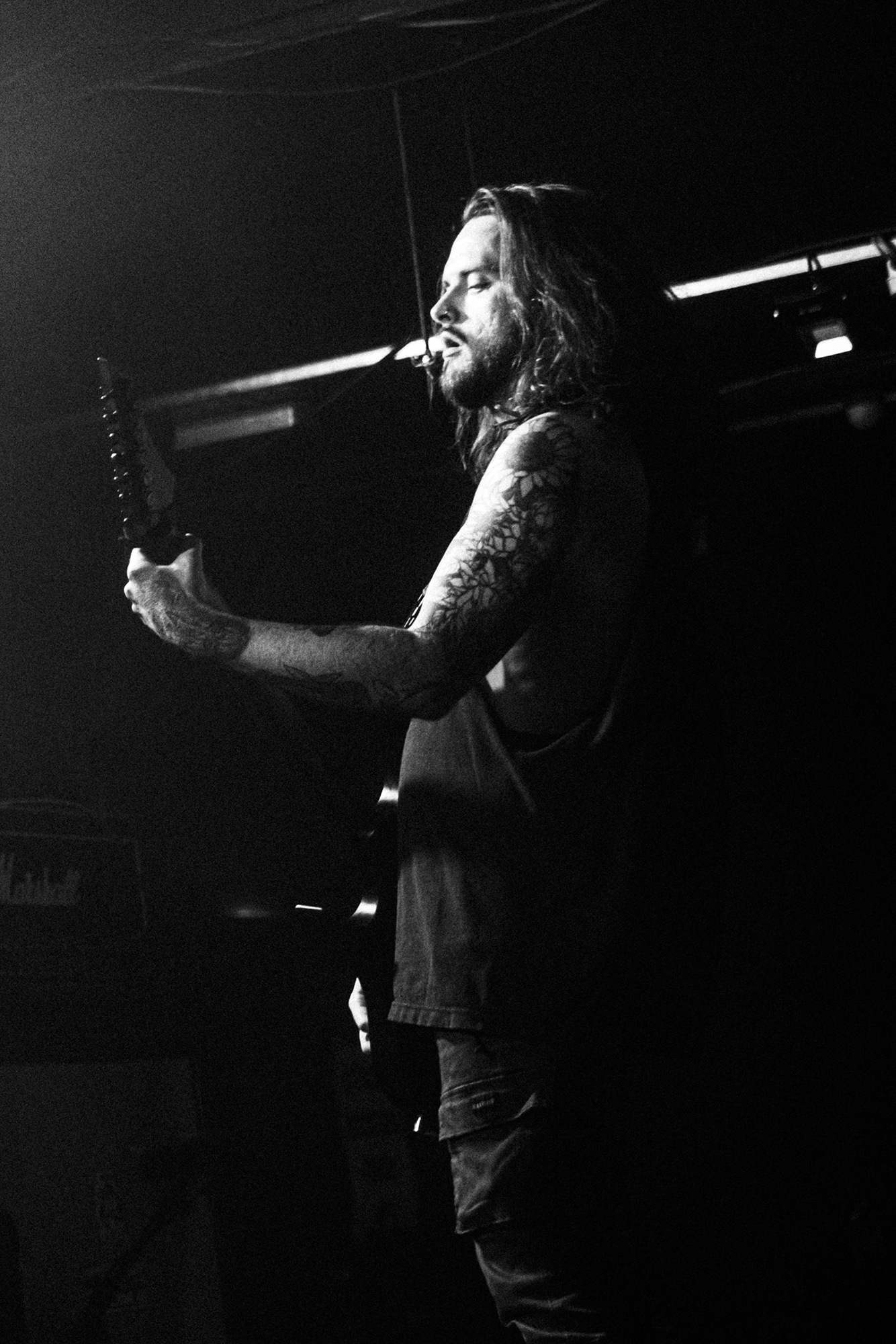 With there having simply not been a weak link in the chain tonight, the pressure is on California monsters SPITE to raise the game further, and they donāt disappoint with fast pummelling riffs and drums that squeeze the whole room like an industrial crusher, and choking screams that leave you short of breath. They are a demolition crew with everyone in the room as their target, all pushed by drummer Travis Regnier who blasts the kit like a behemoth on Adderall, swinging his arms at a blistering pace. Not to be outdone, vocalist Darius Tehrani is a true performer, launching himself left to right in a rage, swinging his arms and hair in a fit to incite the room. Although the room is somewhat slow to start, they quickly latch on to the California brutes, launching from the stage and flooding pits in a caustic mess of wet bodies.