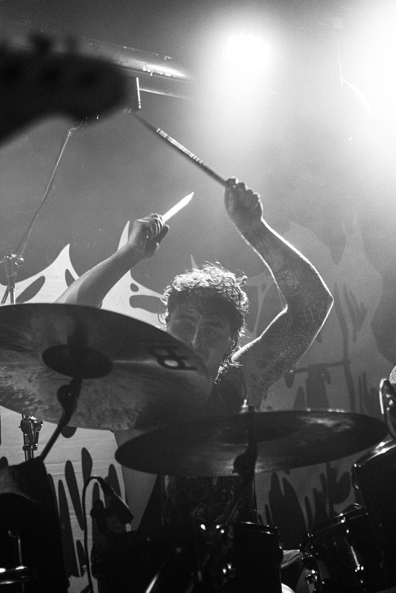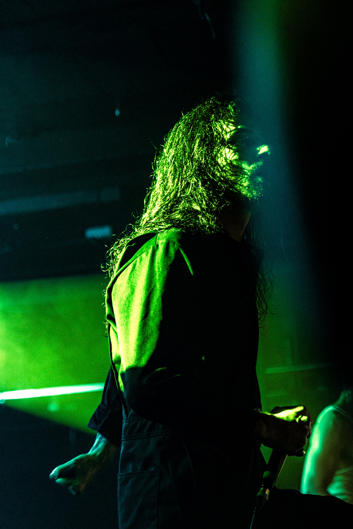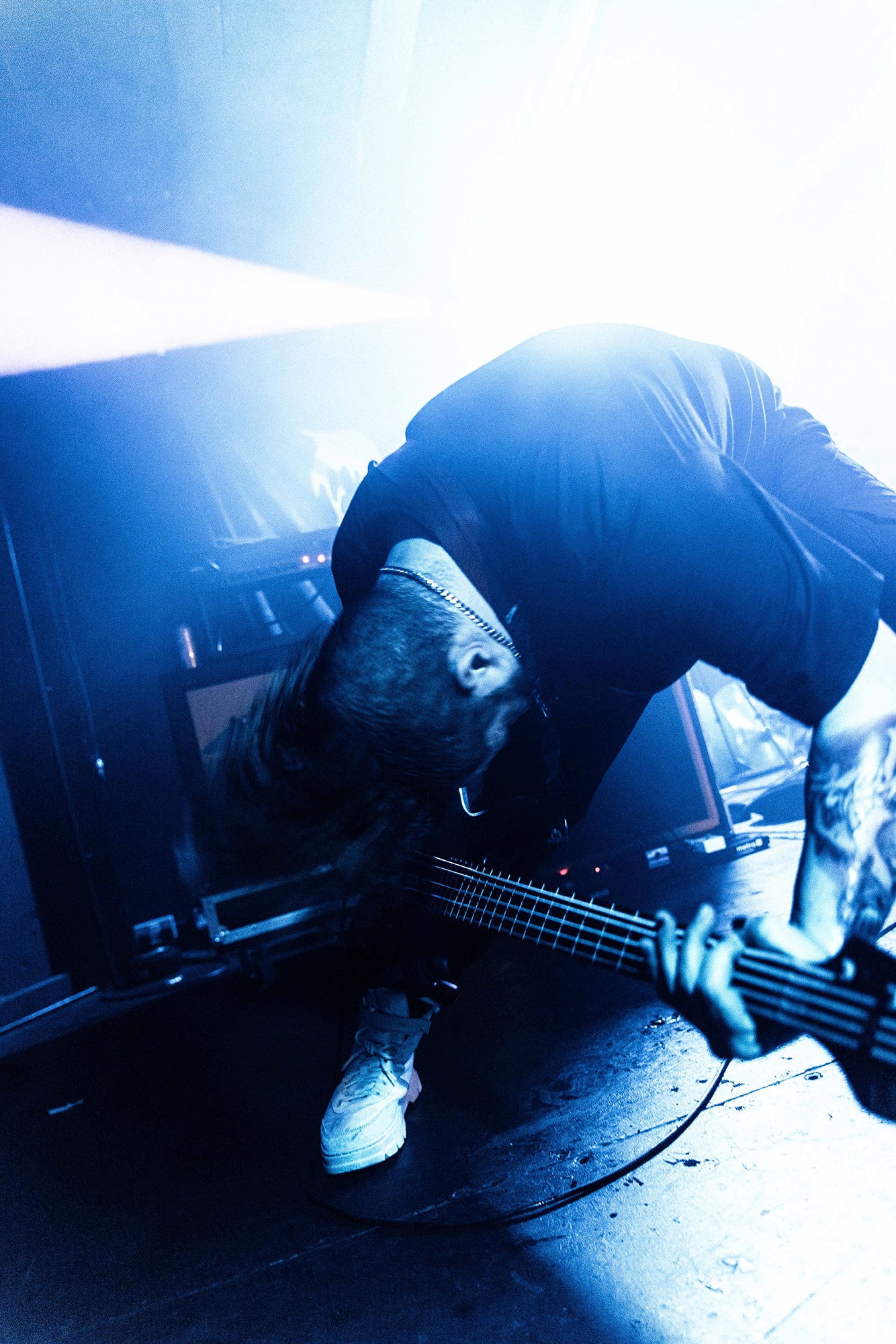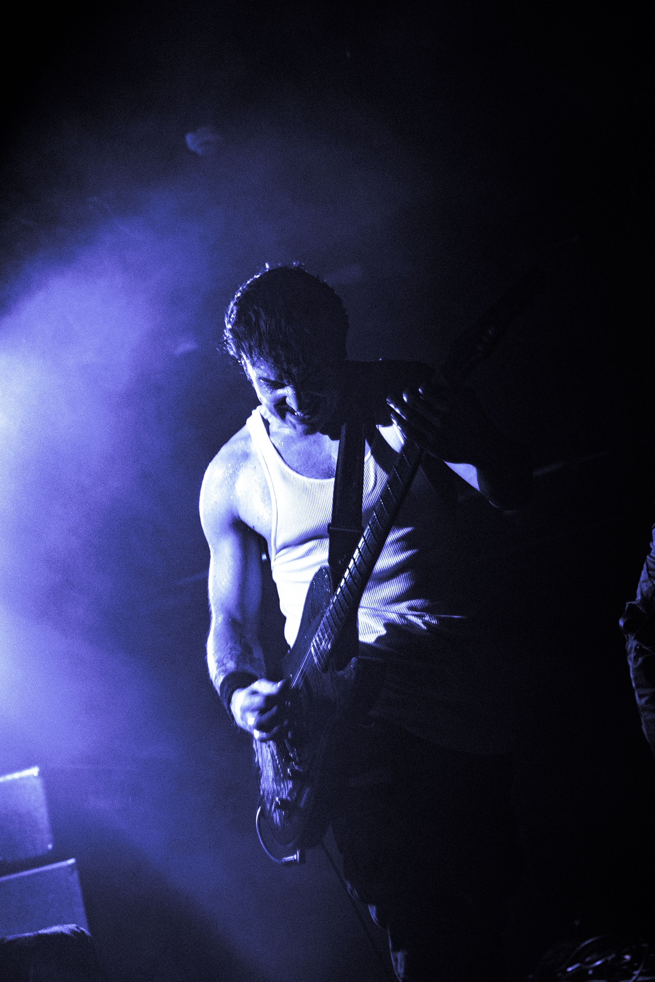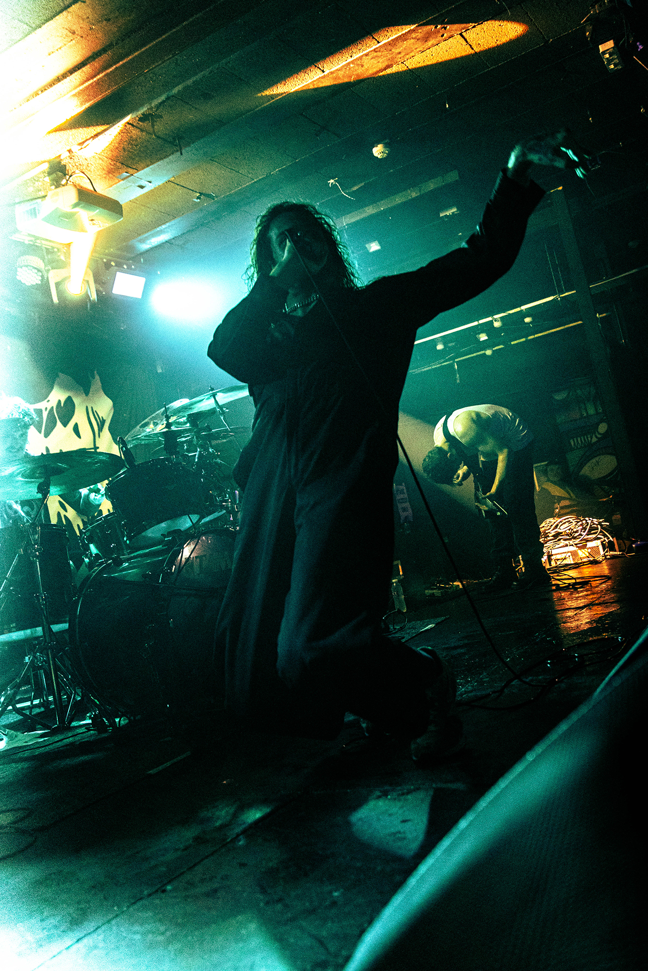With there having simply not been a weak link in the chain tonight, the pressure is on California monsters SPITE to raise the game further, and they donāt disappoint with fast pummelling riffs and drums that squeeze the whole room like an industrial crusher, and choking screams that leave you short of breath. They are a demolition crew with everyone in the room as their target, all pushed by drummer Travis Regnier who blasts the kit like a behemoth on Adderall, swinging his arms at a blistering pace. Not to be outdone, vocalist Darius Tehrani is a true performer, launching himself left to right in a rage, swinging his arms and hair in a fit to incite the room. Although the room is somewhat slow to start, they quickly latch on to the California brutes, launching from the stage and flooding pits in a caustic mess of wet bodies.