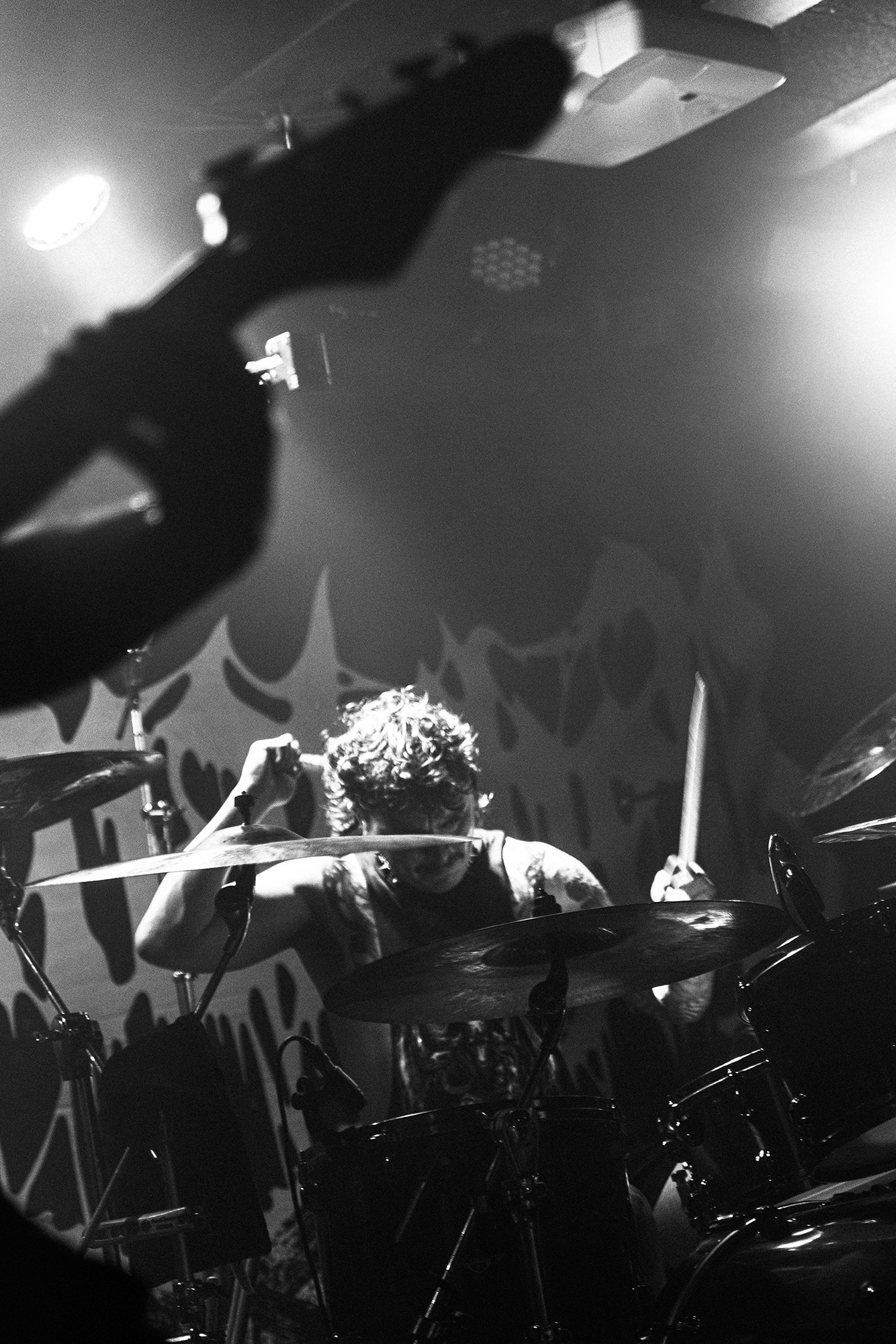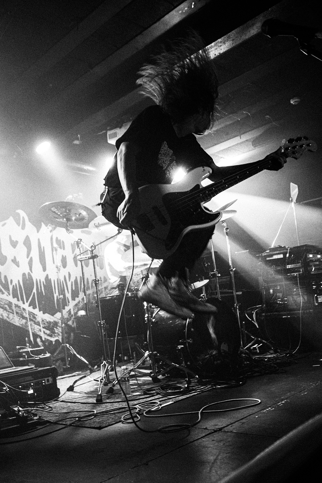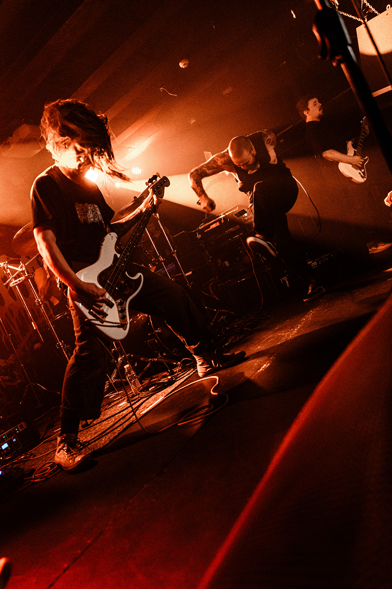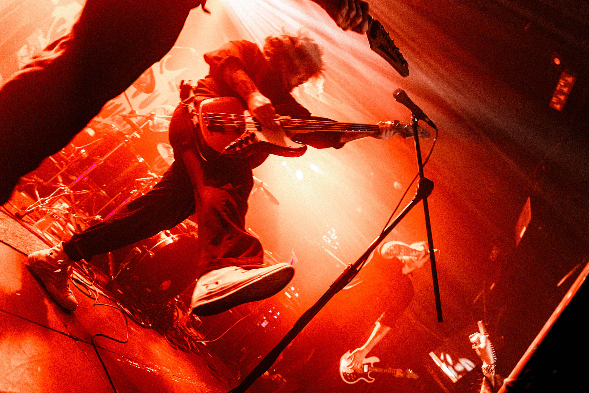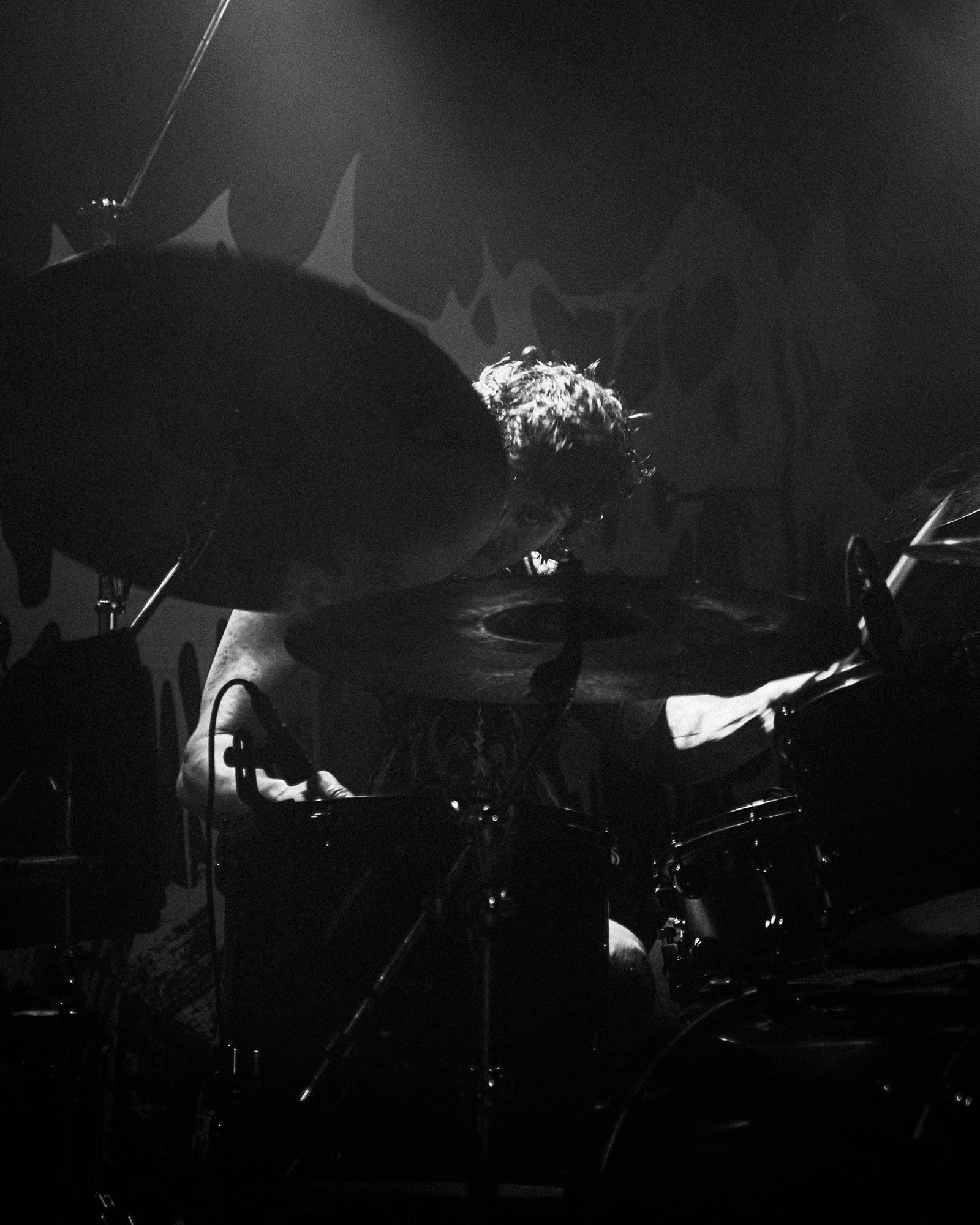 With there having simply not been a weak link in the chain tonight, the pressure is on California monsters SPITE to raise the game further, and they donāt disappoint with fast pummelling riffs and drums that squeeze the whole room like an industrial crusher, and choking screams that leave you short of breath. They are a demolition crew with everyone in the room as their target, all pushed by drummer Travis Regnier who blasts the kit like a behemoth on Adderall, swinging his arms at a blistering pace. Not to be outdone, vocalist Darius Tehrani is a true performer, launching himself left to right in a rage, swinging his arms and hair in a fit to incite the room. Although the room is somewhat slow to start, they quickly latch on to the California brutes, launching from the stage and flooding pits in a caustic mess of wet bodies.