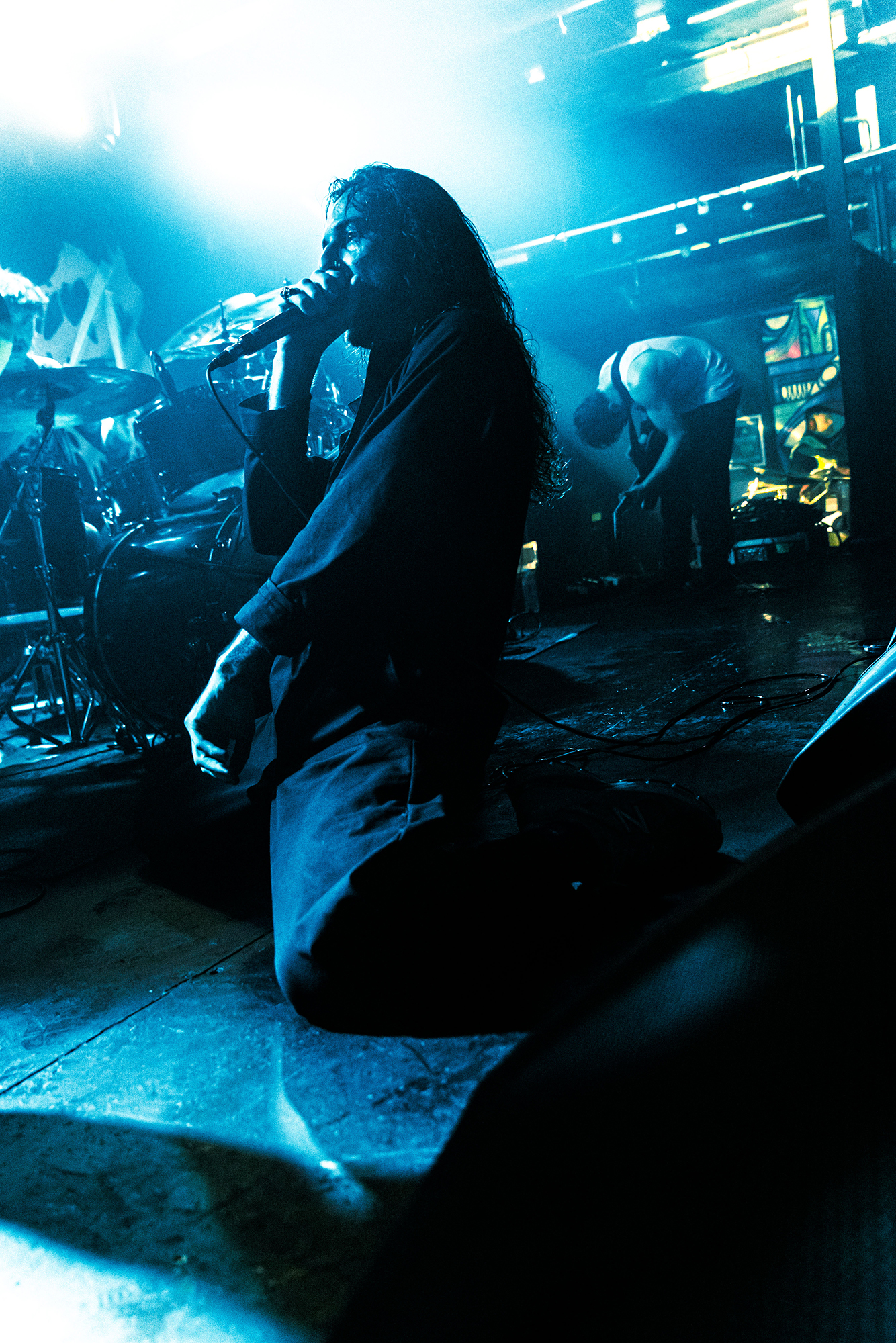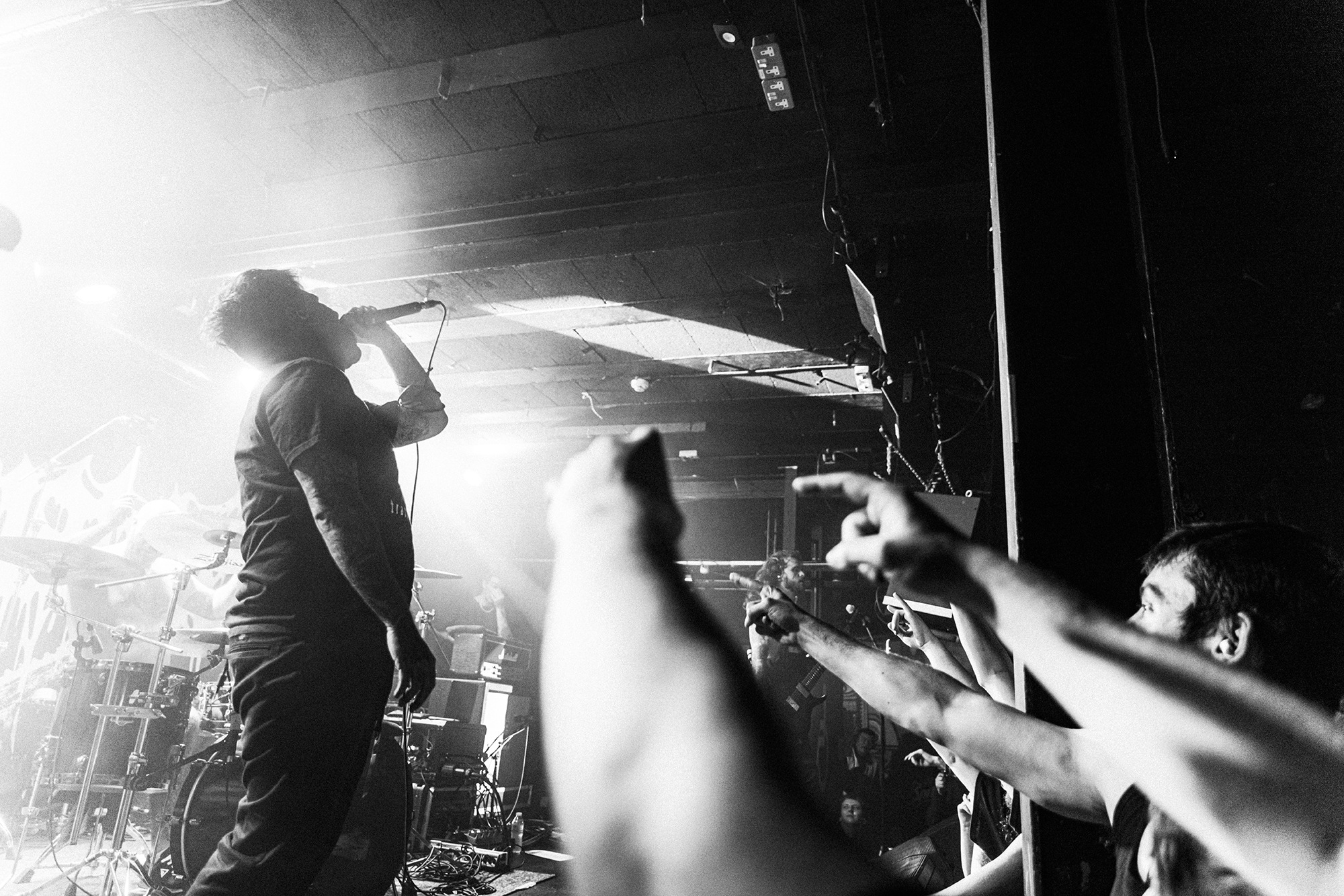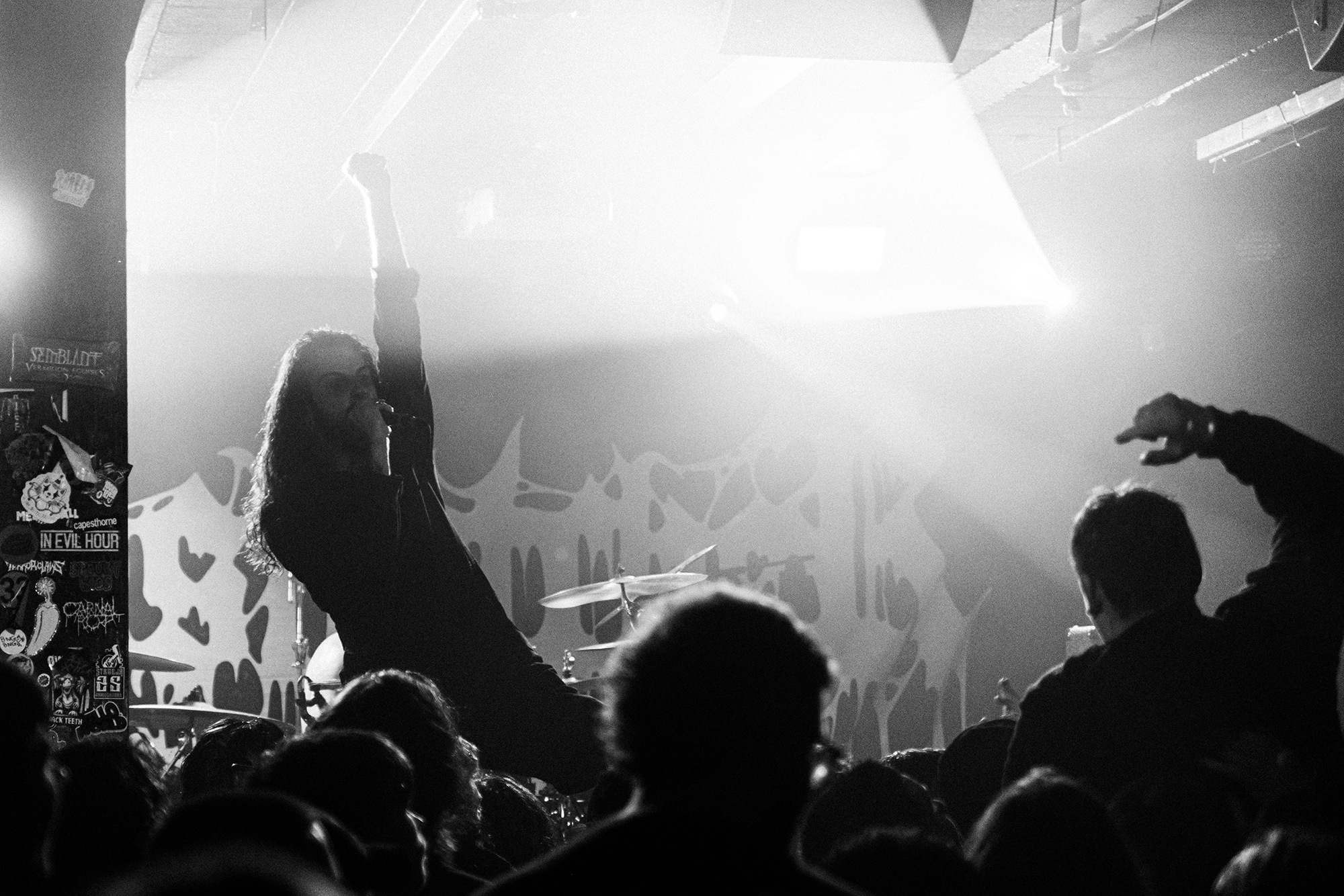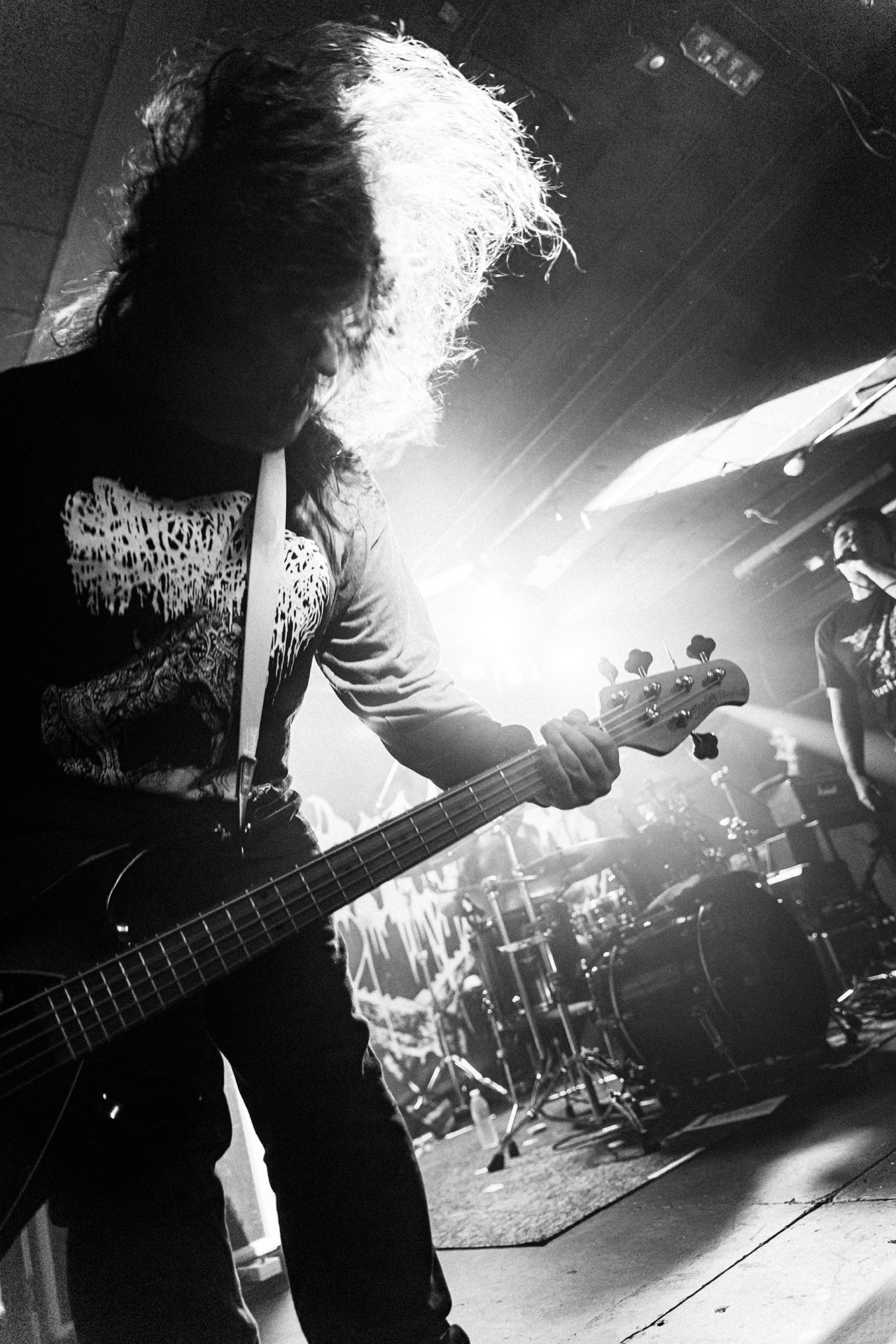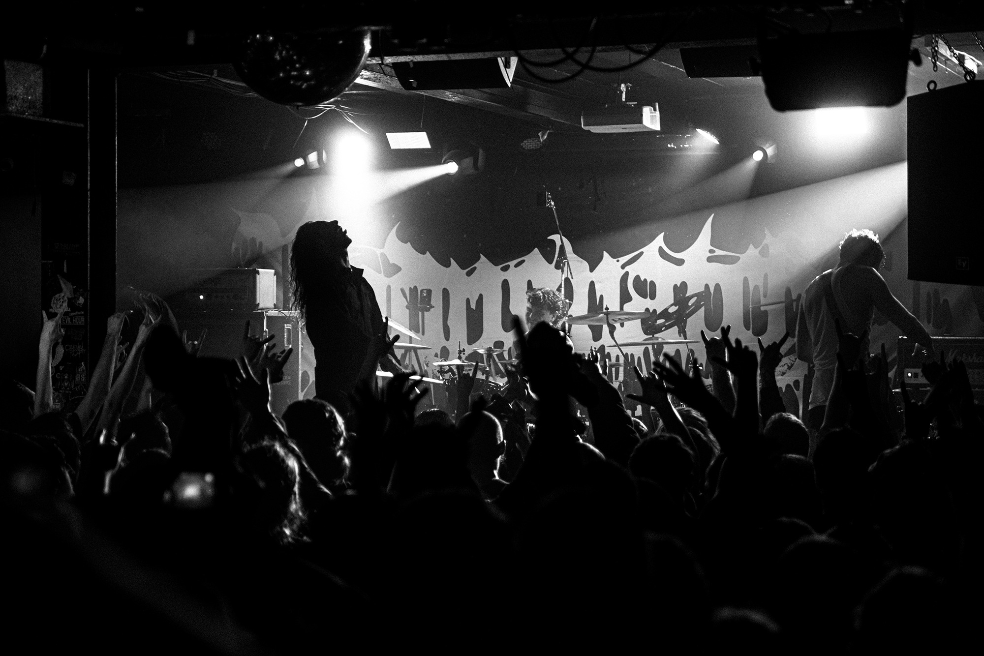 With there having simply not been a weak link in the chain tonight, the pressure is on California monsters SPITE to raise the game further, and they donāt disappoint with fast pummelling riffs and drums that squeeze the whole room like an industrial crusher, and choking screams that leave you short of breath. They are a demolition crew with everyone in the room as their target, all pushed by drummer Travis Regnier who blasts the kit like a behemoth on Adderall, swinging his arms at a blistering pace. Not to be outdone, vocalist Darius Tehrani is a true performer, launching himself left to right in a rage, swinging his arms and hair in a fit to incite the room. Although the room is somewhat slow to start, they quickly latch on to the California brutes, launching from the stage and flooding pits in a caustic mess of wet bodies.