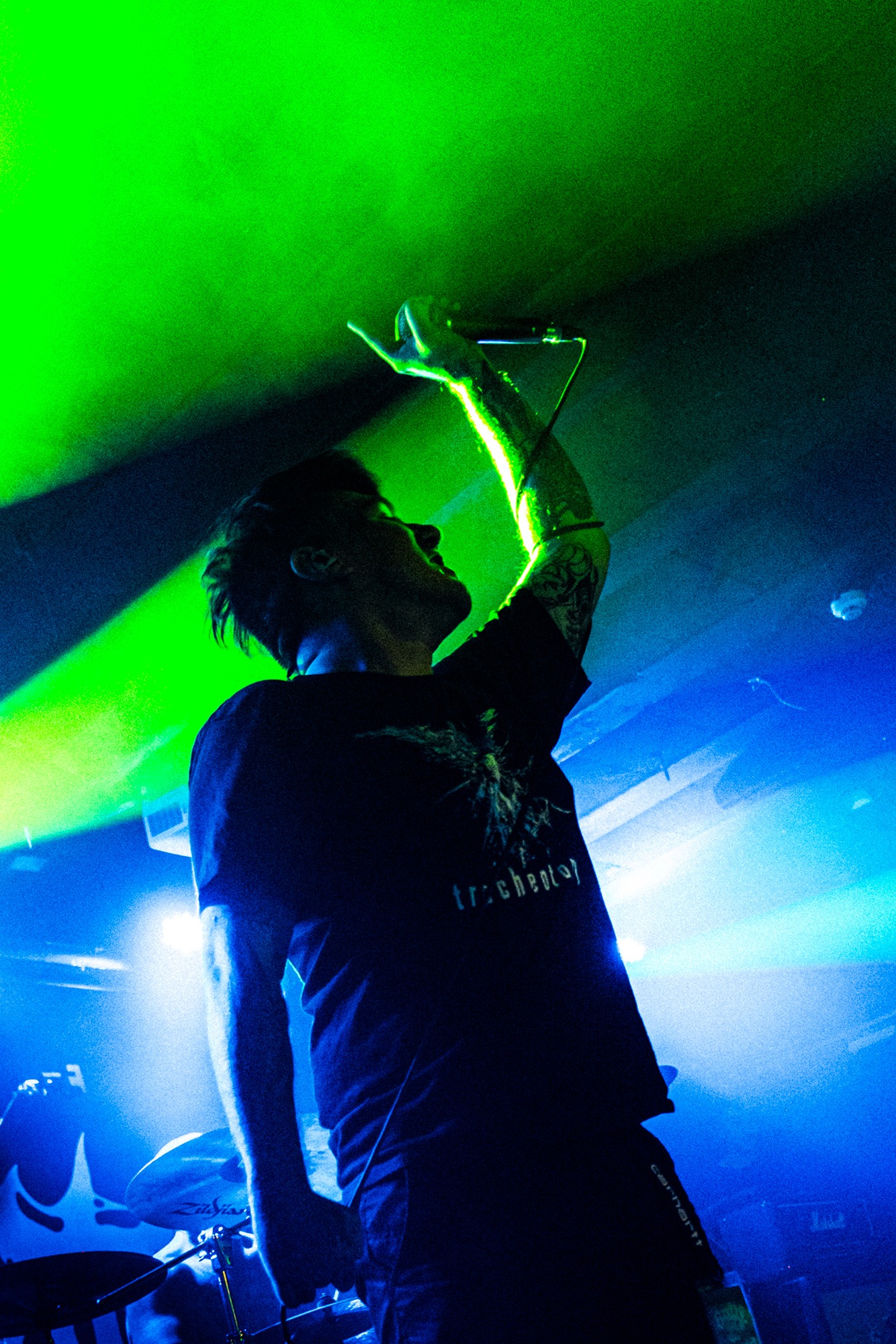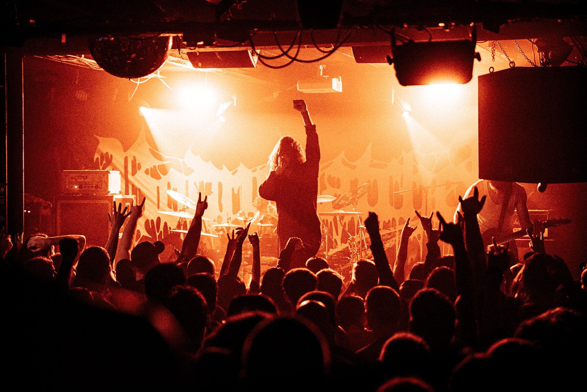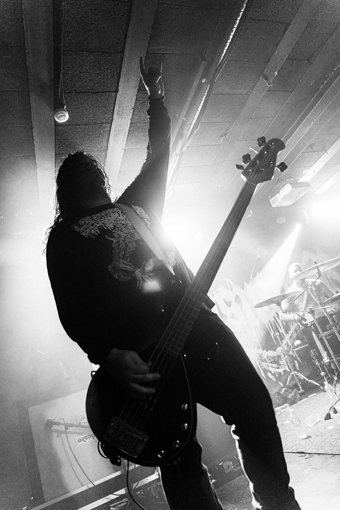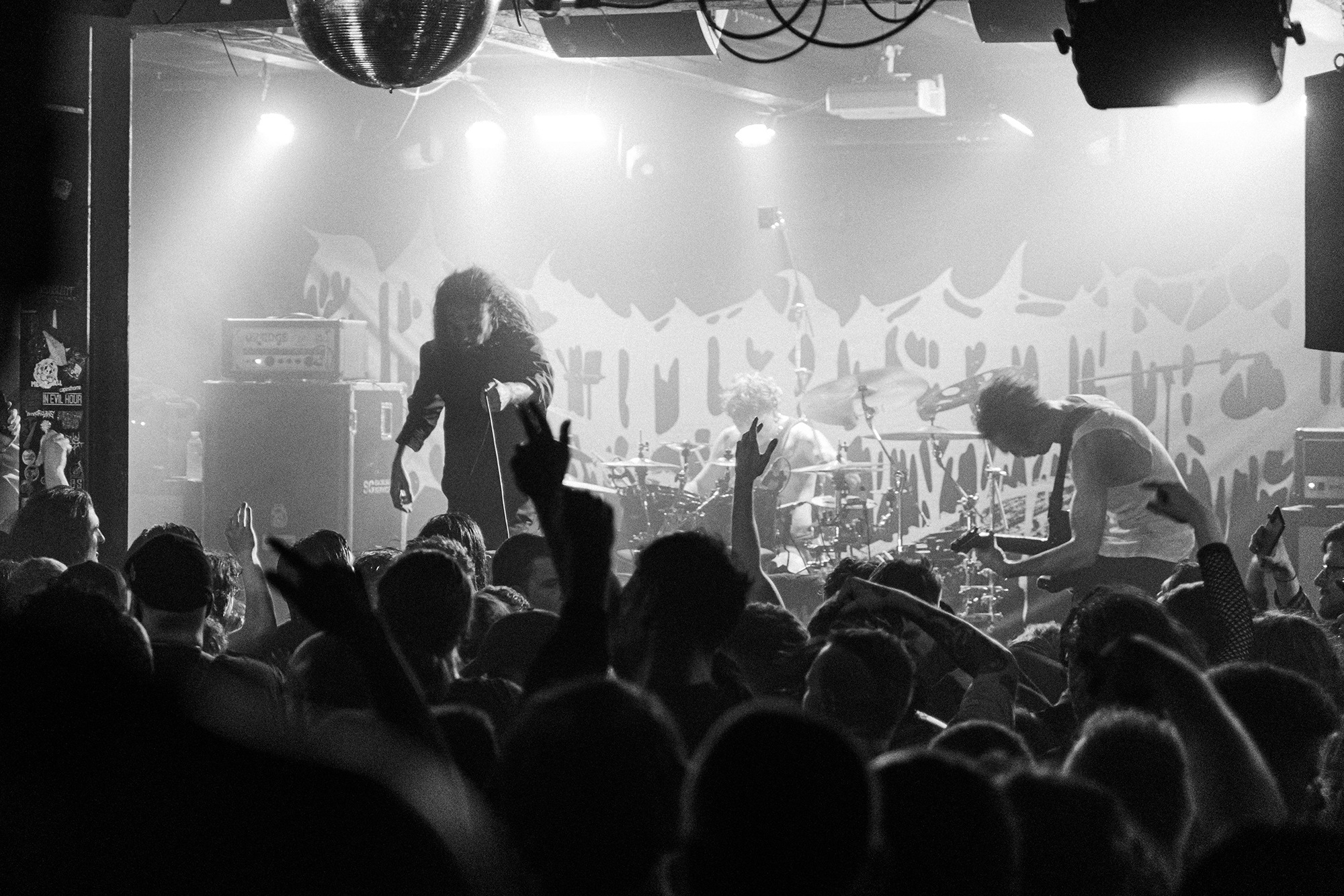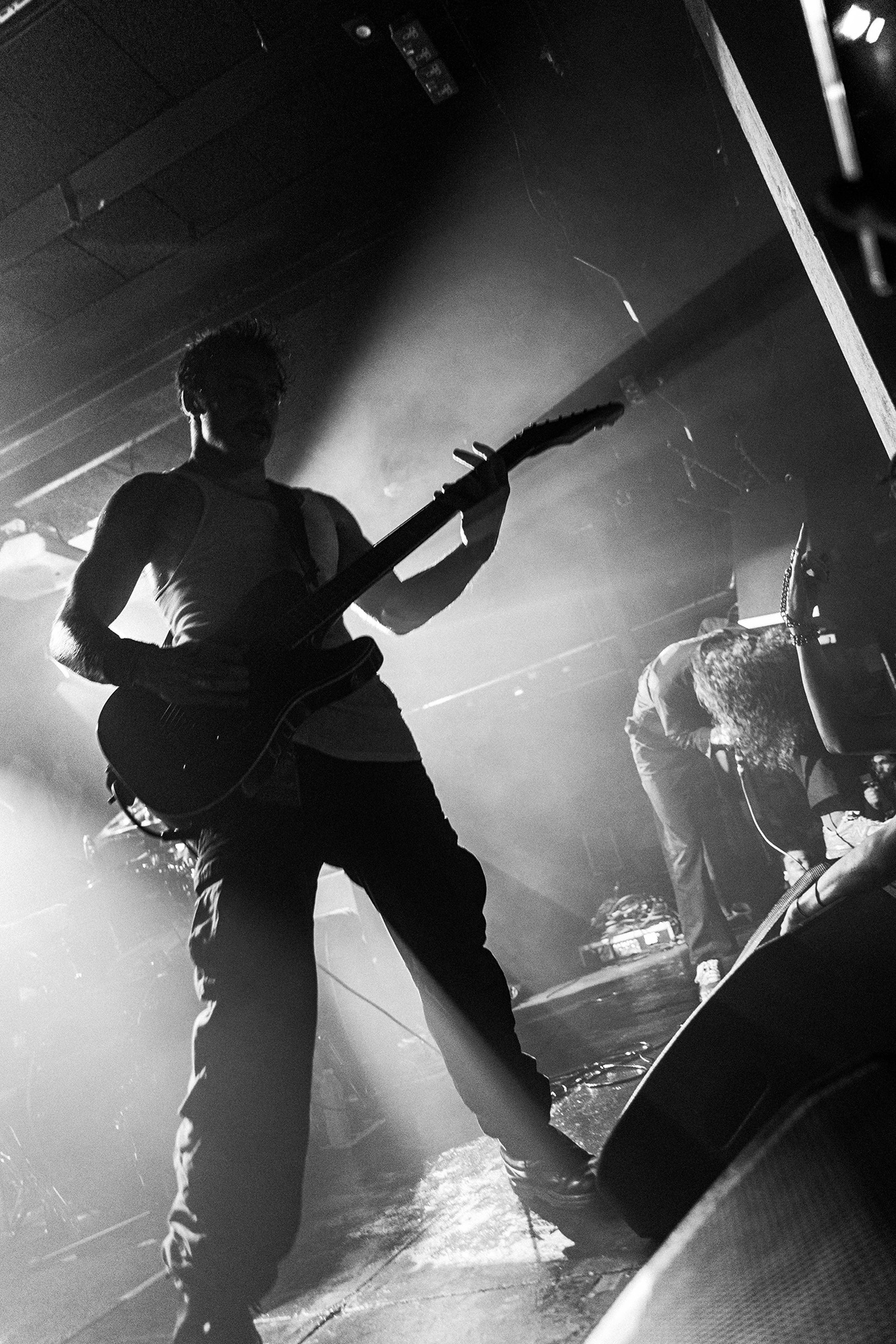 With there having simply not been a weak link in the chain tonight, the pressure is on California monsters SPITE to raise the game further, and they donāt disappoint with fast pummelling riffs and drums that squeeze the whole room like an industrial crusher, and choking screams that leave you short of breath. They are a demolition crew with everyone in the room as their target, all pushed by drummer Travis Regnier who blasts the kit like a behemoth on Adderall, swinging his arms at a blistering pace. Not to be outdone, vocalist Darius Tehrani is a true performer, launching himself left to right in a rage, swinging his arms and hair in a fit to incite the room. Although the room is somewhat slow to start, they quickly latch on to the California brutes, launching from the stage and flooding pits in a caustic mess of wet bodies.