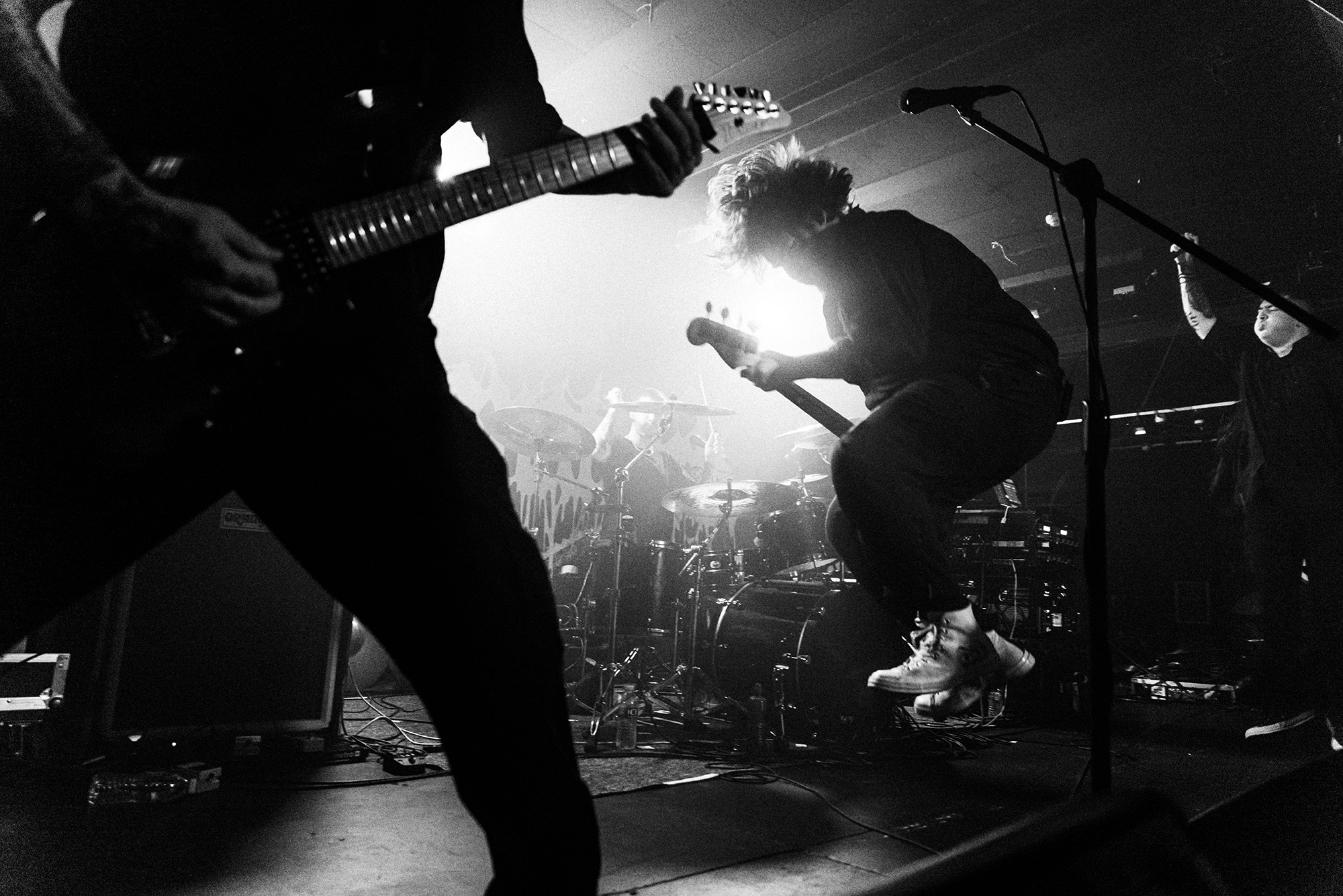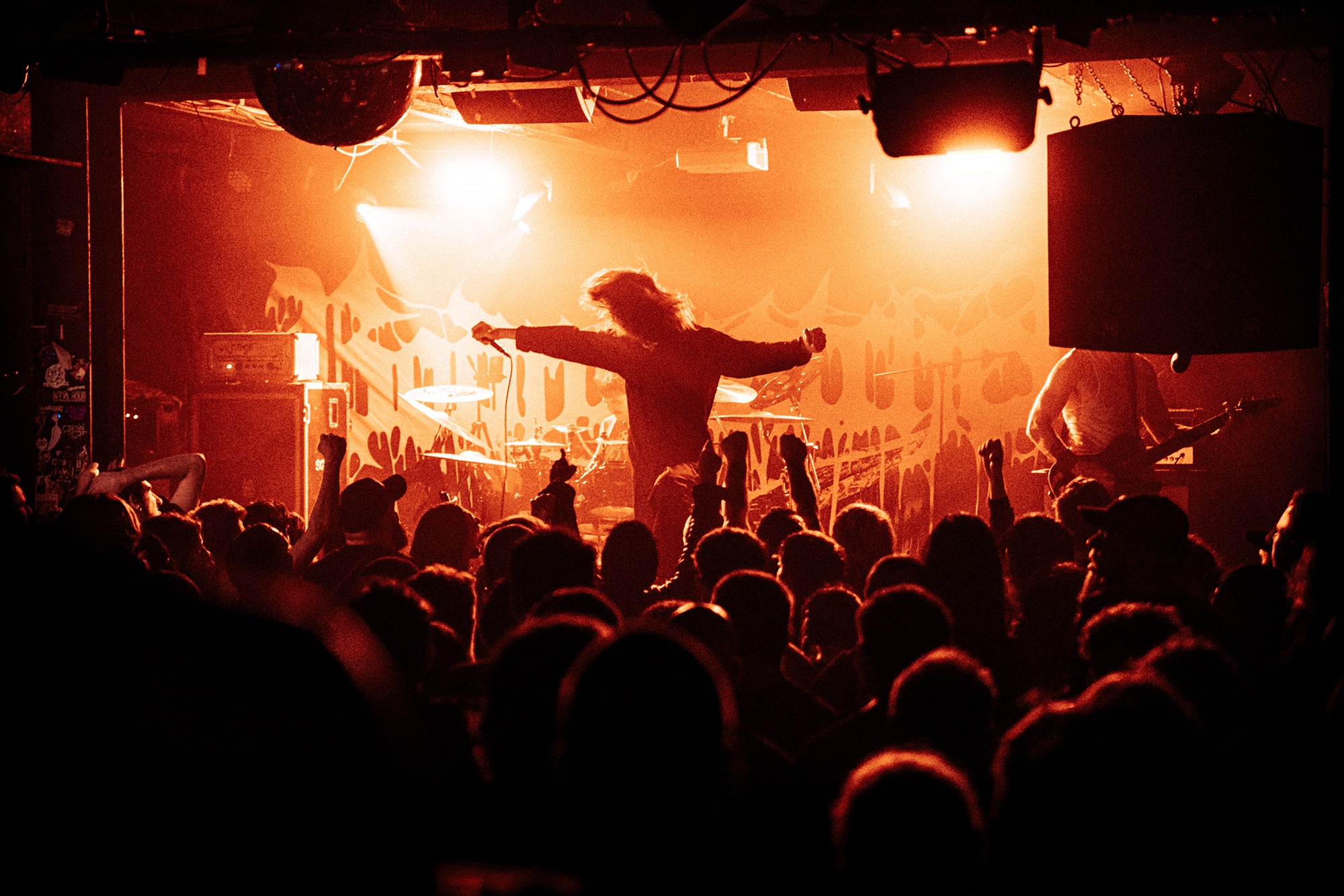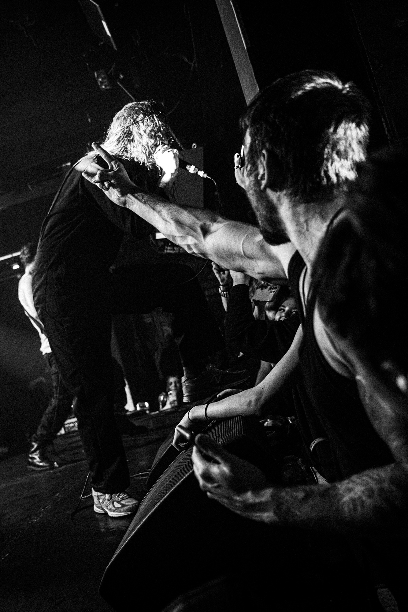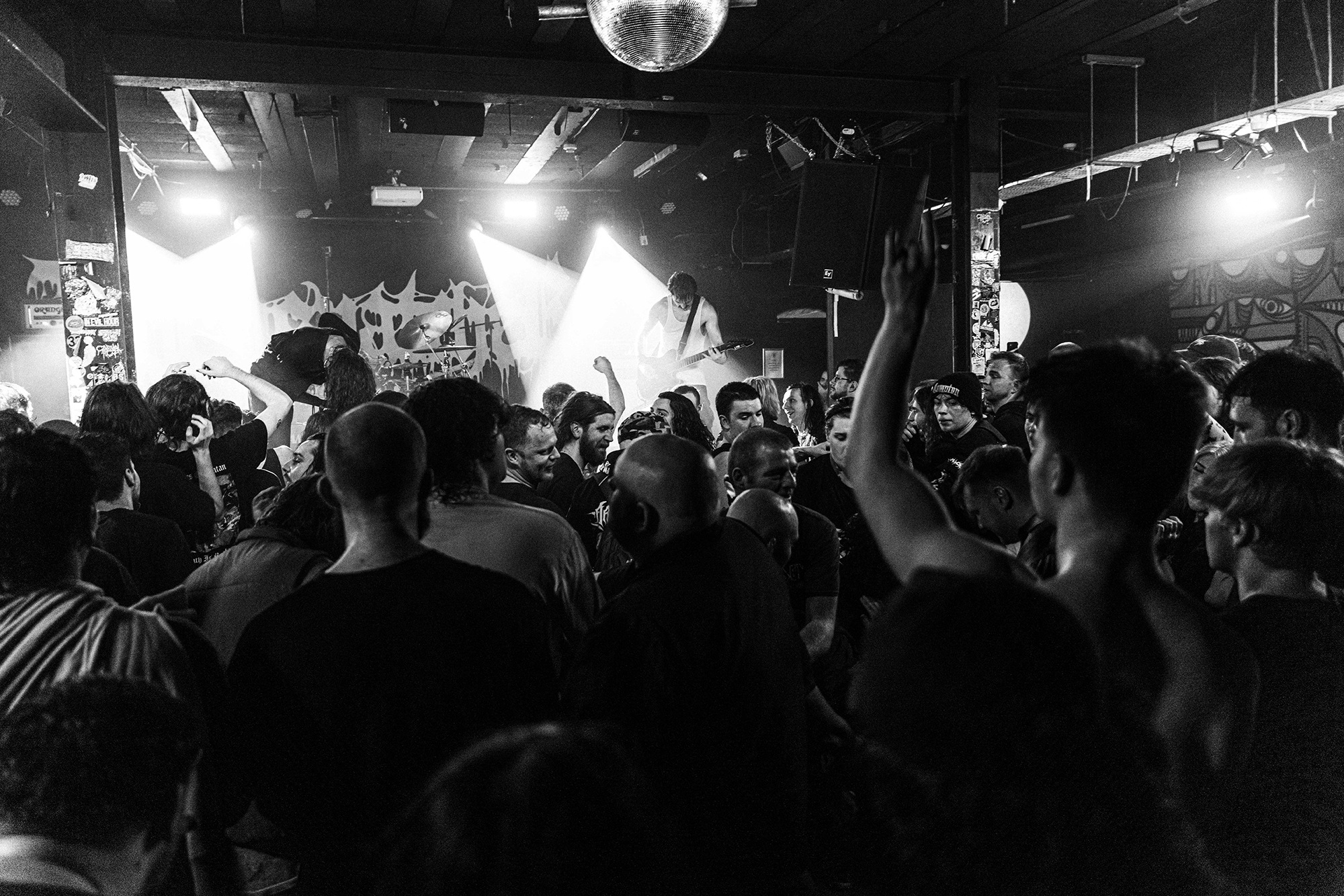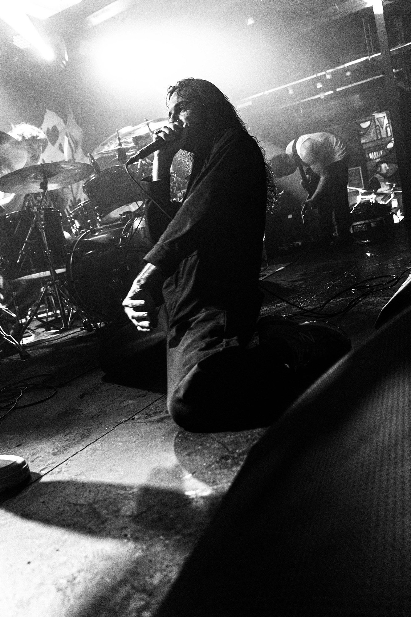 With there having simply not been a weak link in the chain tonight, the pressure is on California monsters SPITE to raise the game further, and they donāt disappoint with fast pummelling riffs and drums that squeeze the whole room like an industrial crusher, and choking screams that leave you short of breath. They are a demolition crew with everyone in the room as their target, all pushed by drummer Travis Regnier who blasts the kit like a behemoth on Adderall, swinging his arms at a blistering pace. Not to be outdone, vocalist Darius Tehrani is a true performer, launching himself left to right in a rage, swinging his arms and hair in a fit to incite the room. Although the room is somewhat slow to start, they quickly latch on to the California brutes, launching from the stage and flooding pits in a caustic mess of wet bodies.