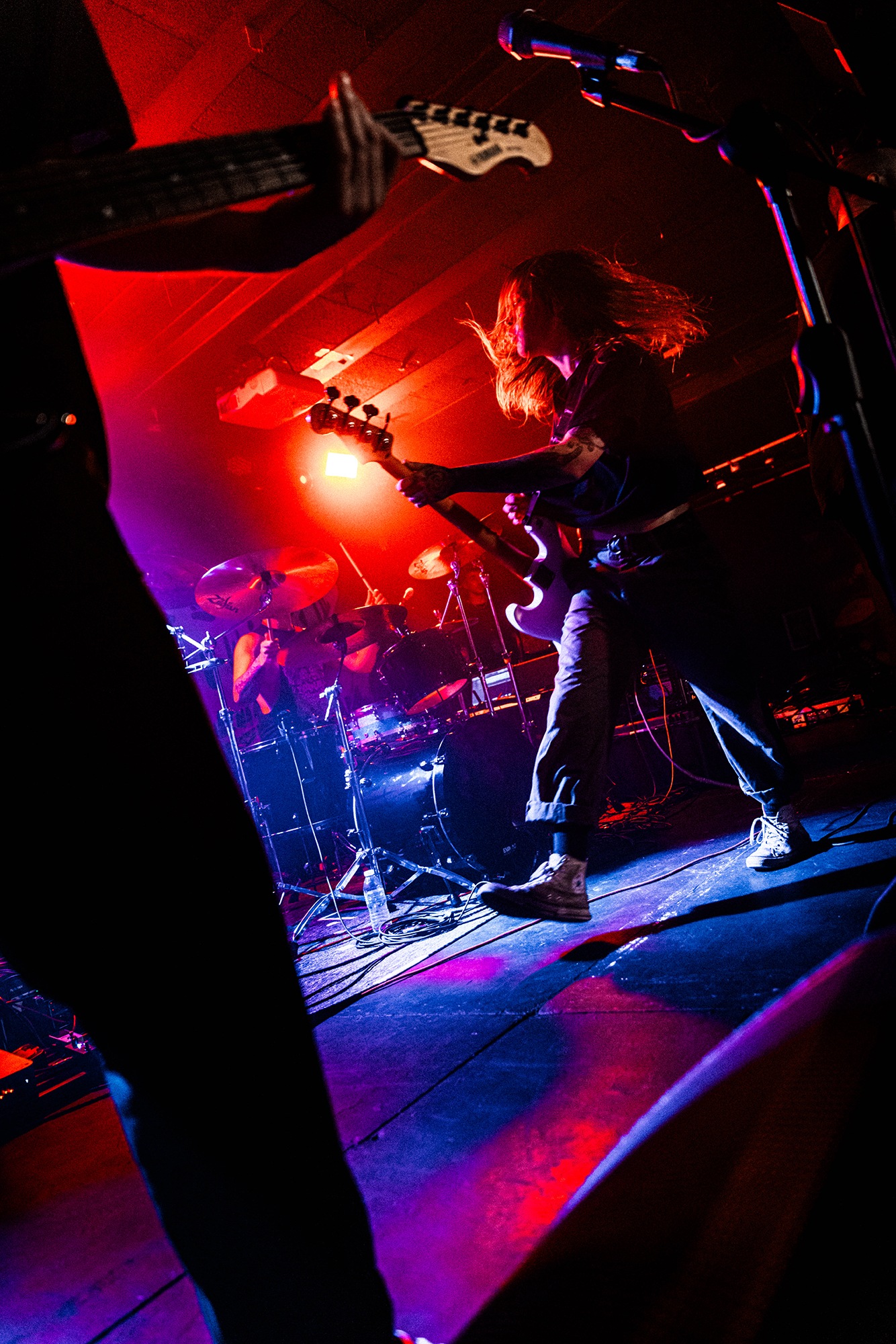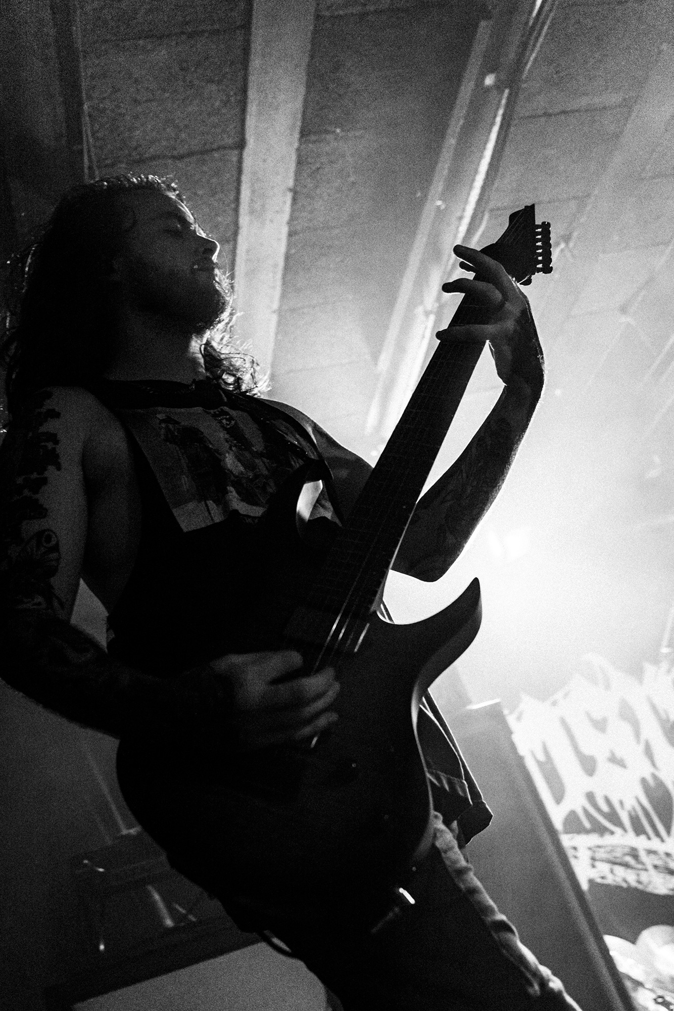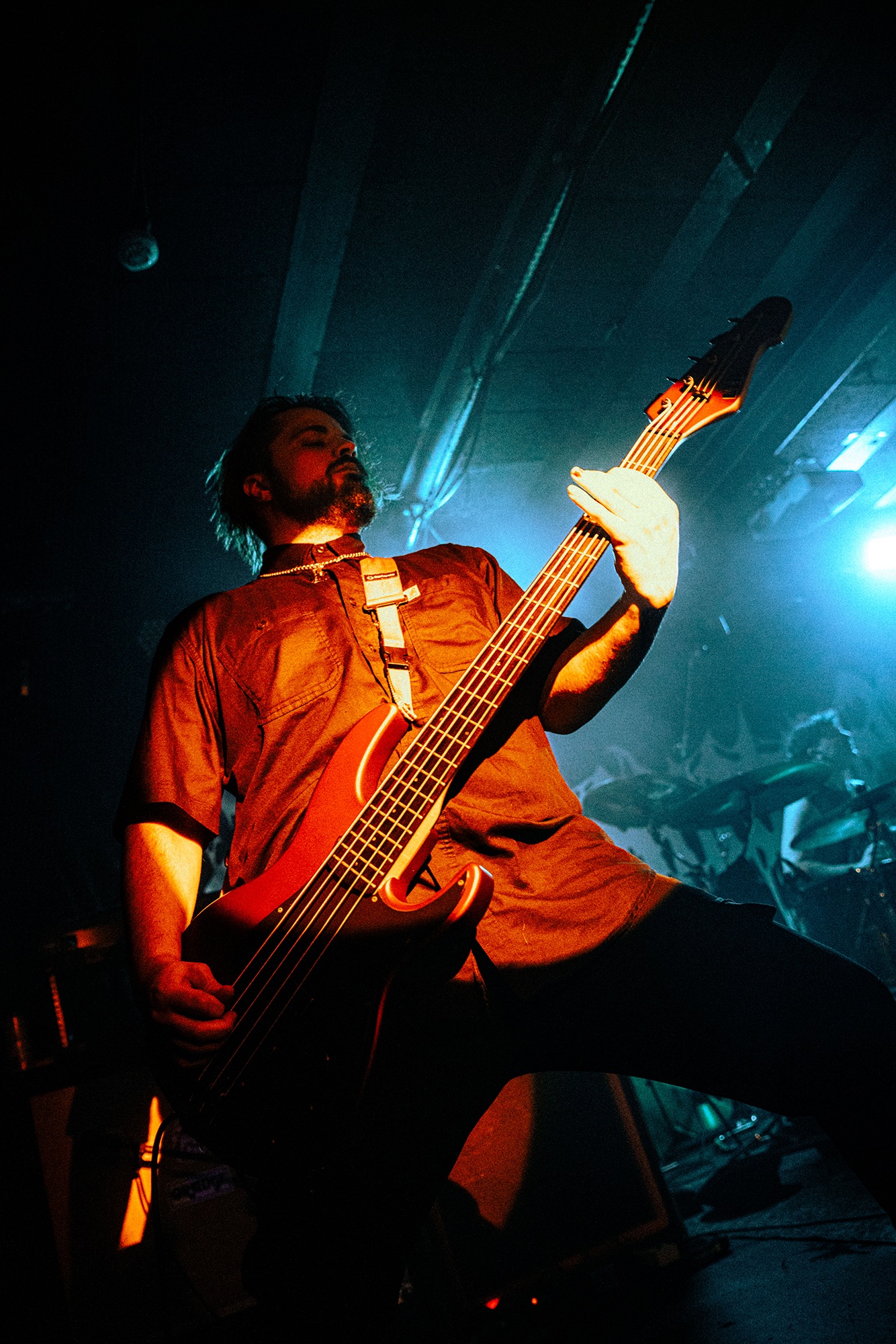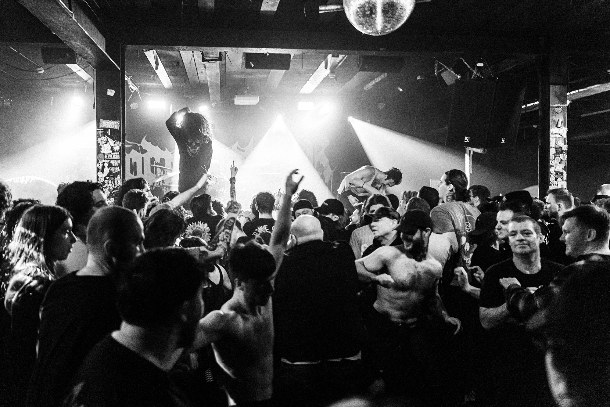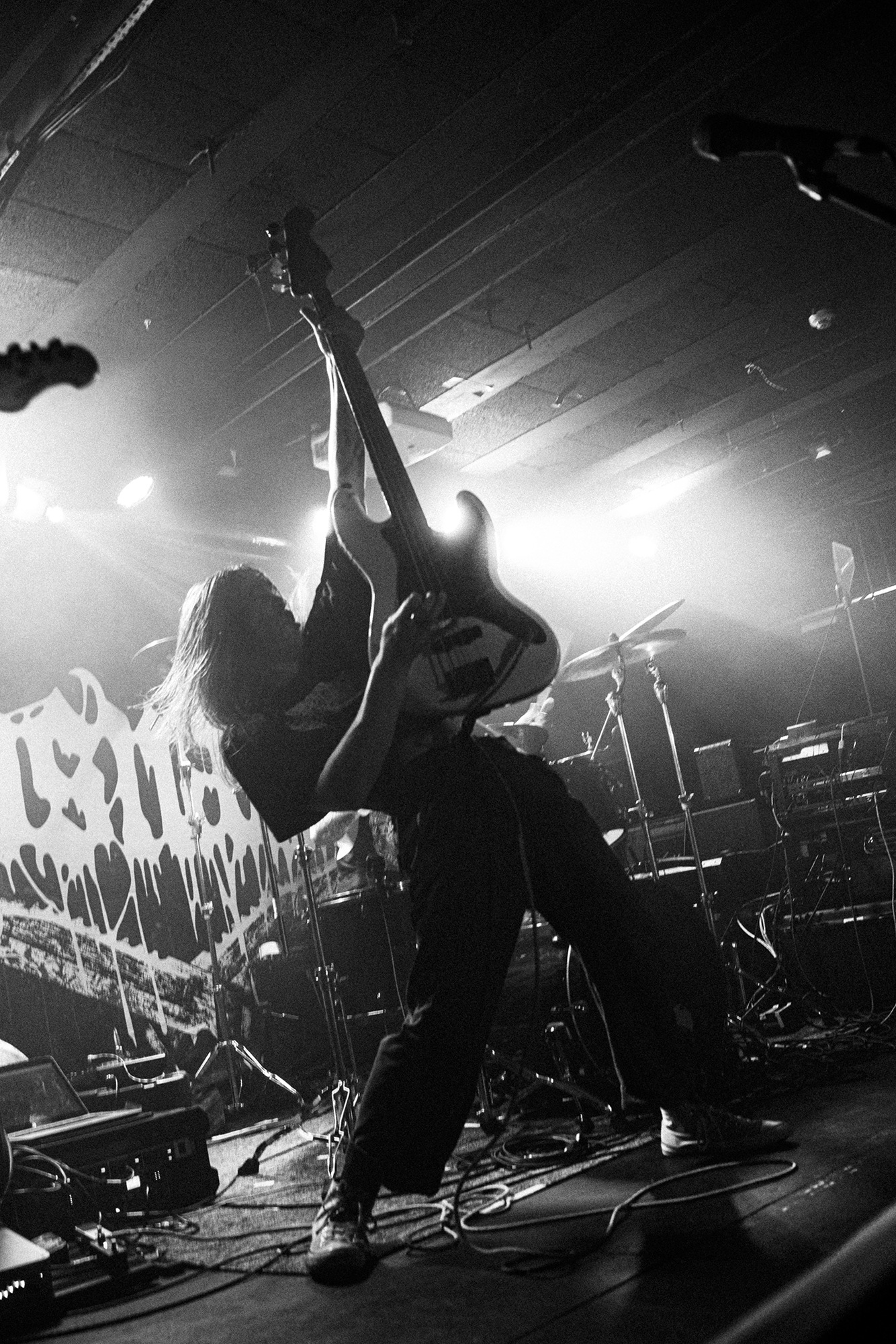 With there having simply not been a weak link in the chain tonight, the pressure is on California monsters SPITE to raise the game further, and they donāt disappoint with fast pummelling riffs and drums that squeeze the whole room like an industrial crusher, and choking screams that leave you short of breath. They are a demolition crew with everyone in the room as their target, all pushed by drummer Travis Regnier who blasts the kit like a behemoth on Adderall, swinging his arms at a blistering pace. Not to be outdone, vocalist Darius Tehrani is a true performer, launching himself left to right in a rage, swinging his arms and hair in a fit to incite the room. Although the room is somewhat slow to start, they quickly latch on to the California brutes, launching from the stage and flooding pits in a caustic mess of wet bodies.