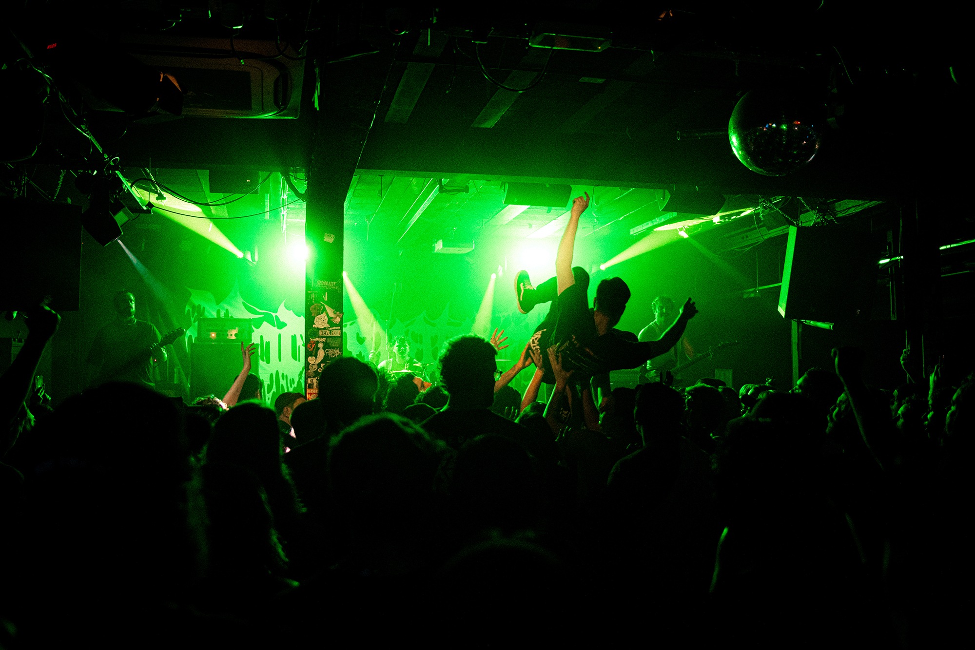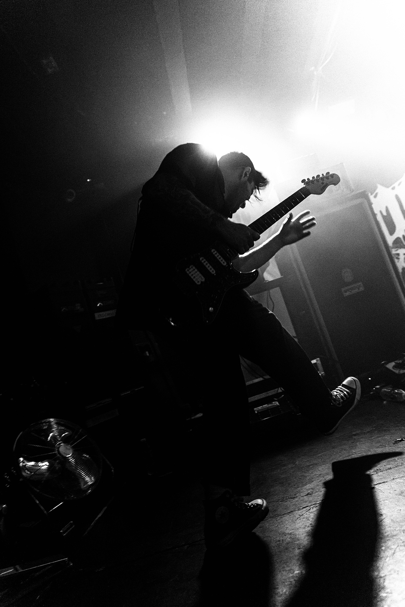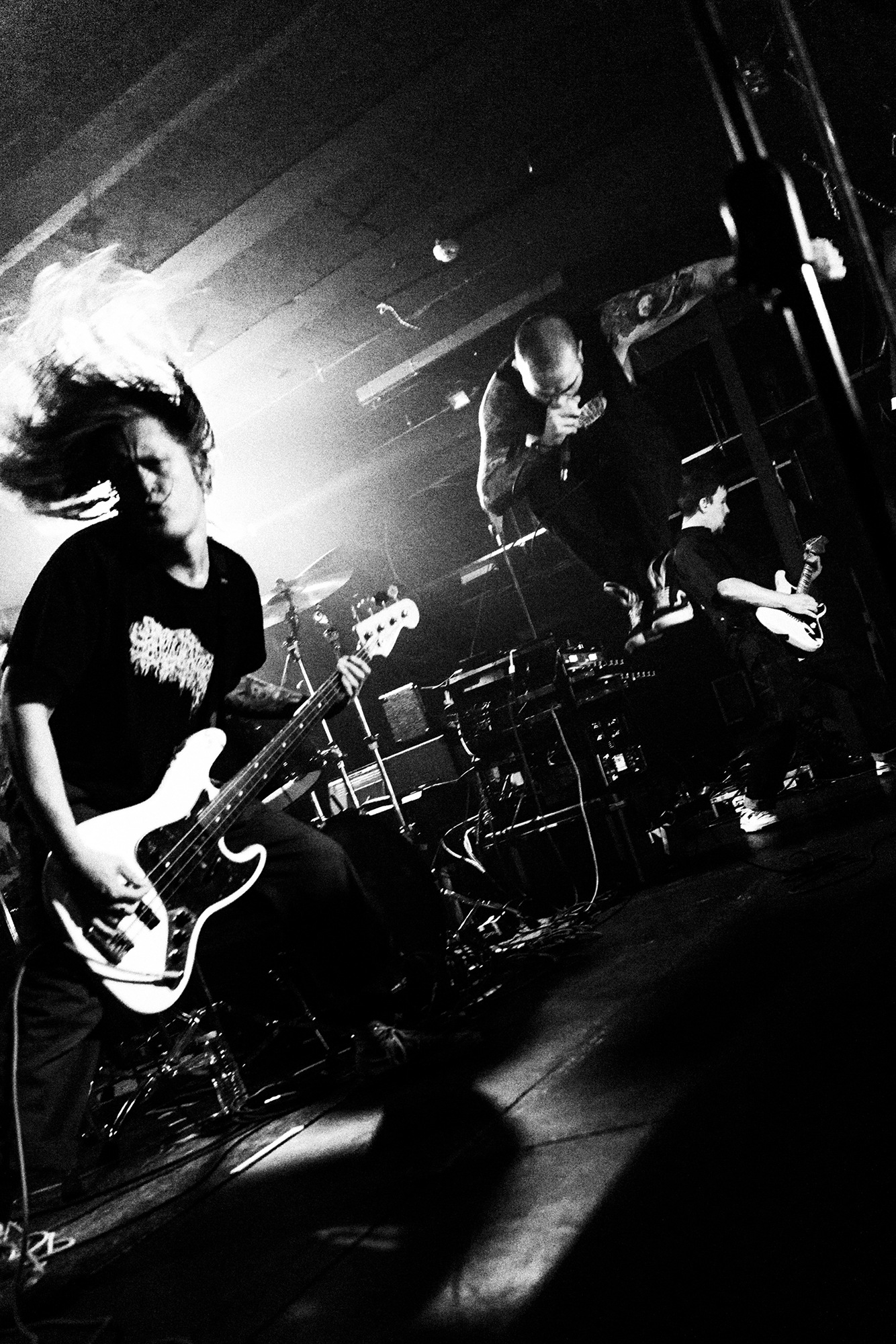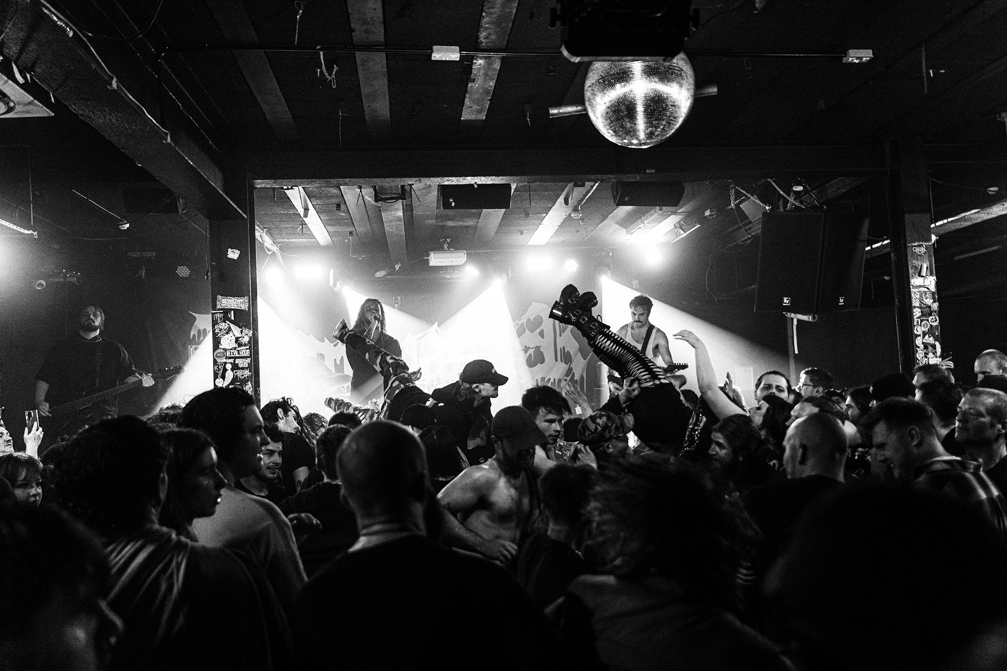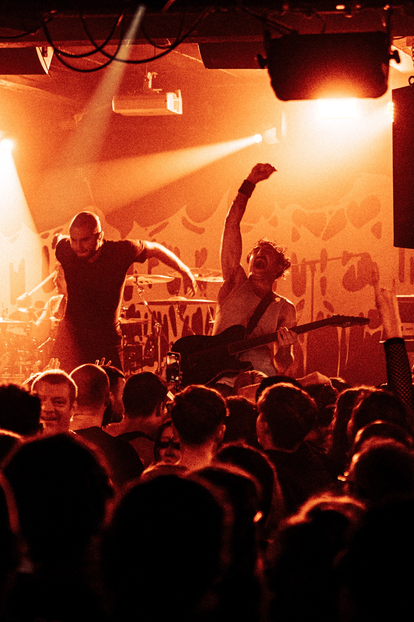 With there having simply not been a weak link in the chain tonight, the pressure is on California monsters SPITE to raise the game further, and they donāt disappoint with fast pummelling riffs and drums that squeeze the whole room like an industrial crusher, and choking screams that leave you short of breath. They are a demolition crew with everyone in the room as their target, all pushed by drummer Travis Regnier who blasts the kit like a behemoth on Adderall, swinging his arms at a blistering pace. Not to be outdone, vocalist Darius Tehrani is a true performer, launching himself left to right in a rage, swinging his arms and hair in a fit to incite the room. Although the room is somewhat slow to start, they quickly latch on to the California brutes, launching from the stage and flooding pits in a caustic mess of wet bodies.