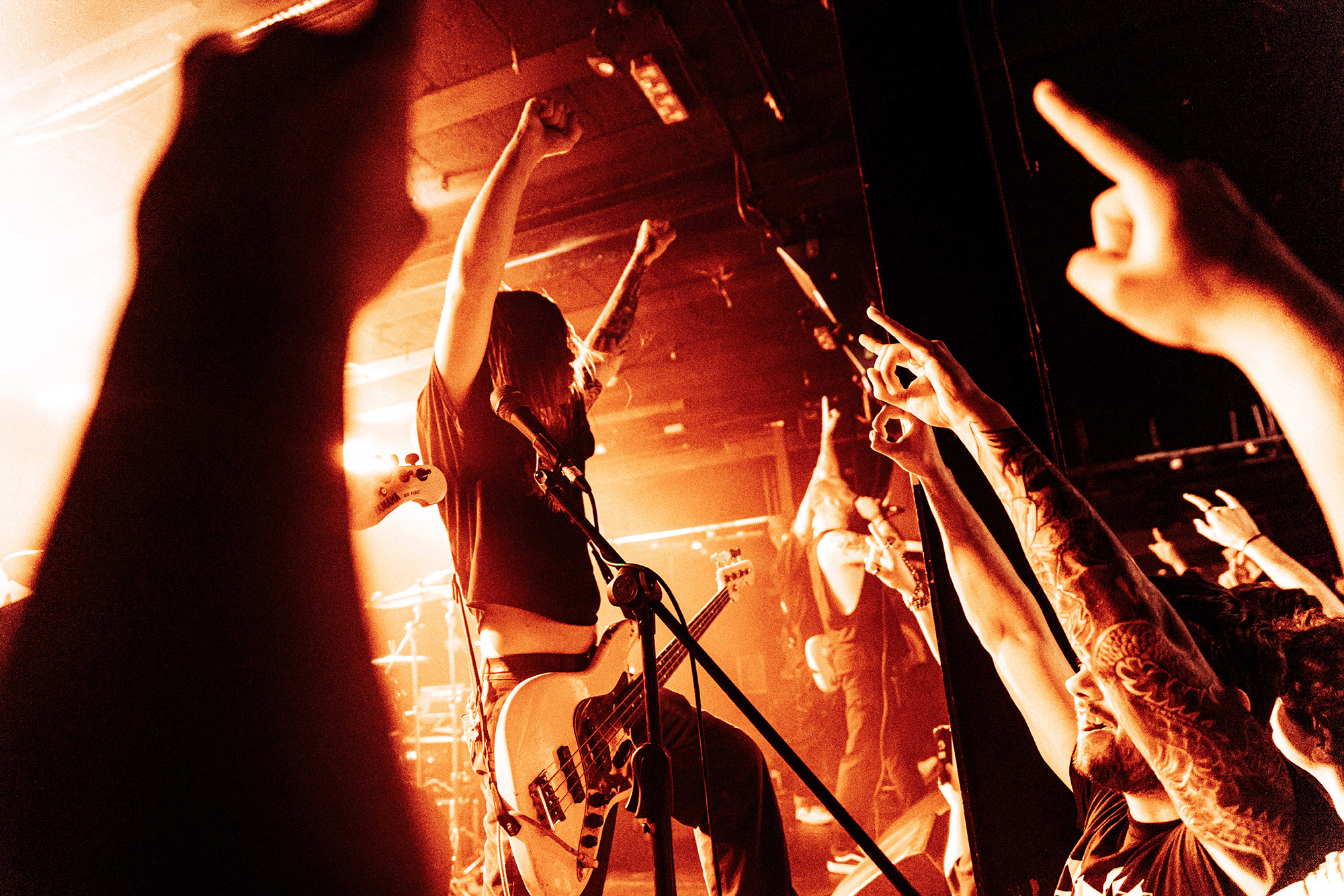 First to the stage are MOUTH FOR WAR and immediately a gaping wound in the crowd opens up anticipating violence. They are a band who seemingly have an open bet with themselves where every moment is followed by an even heavier onslaught, leaving everyone in the room breathless in their hands. The crushing chugging riffs are aptly led by some of the punchiest screams from vocalist Trae Roberts, whoās voice perfectly mirrors the scene in the crowd, with the pit full of swinging arms and two steppers. The whole band pause and face off with the crowd before the shotgun breakdown of The Devil which sends the room into fluid chaos, with crowd surfers leaping from the stage and climbing the rafters. This may well be MOUTH FOR WARās first visit to the UK, but the chaos they bring with them is that addictive we canāt wait for them to come back.