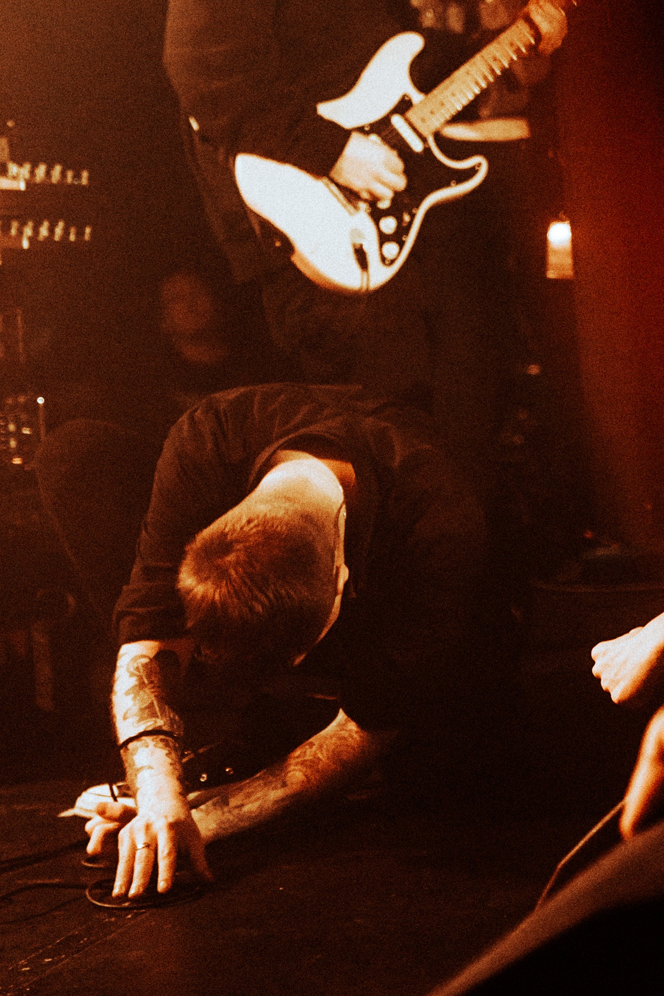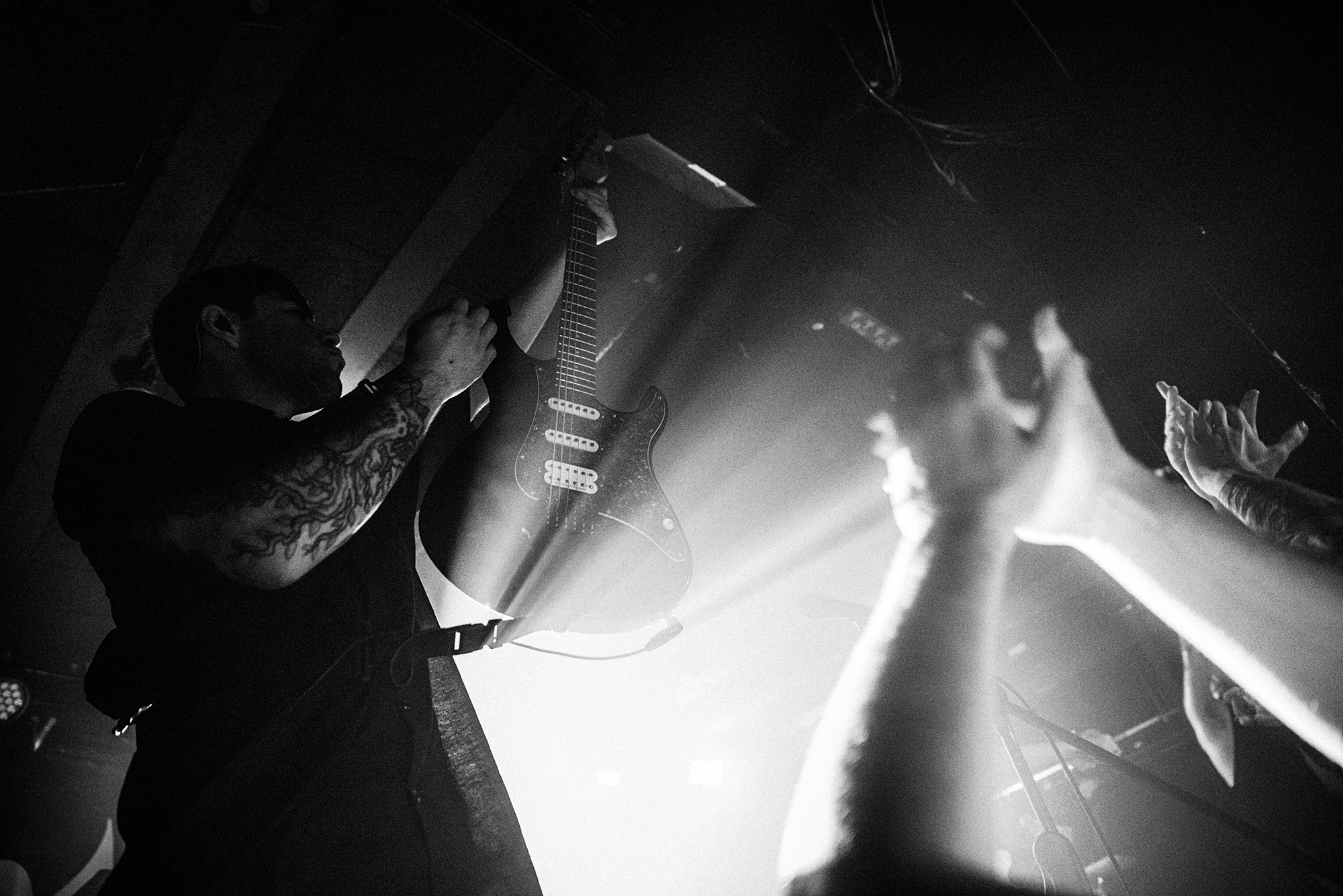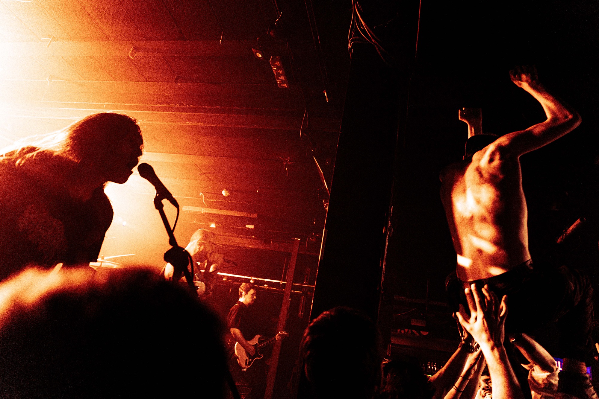 Next up are BOUNDARIES who step up the technicality of the evening, which in no way reduces the pulverising violence incited. Vocalist Matt McDougalās whoās crushing vocals unwaveringly barrage you in all the best ways, barking and exploding right at you. The crowd are well and truly up for it, frequently launching off the stage and crowd surfing, although the McDougal is forced to take matters into his own hands throwing off a stage diver who overstayed their welcome on the stage. The emotive spoken word section in Realise And Rebuild is a grabbing moment that is succeeded by the end hook of āWe sing out of syncā mirrored by the front few rows whole heartedly. Get Out grips the whole room with the refrains of āI am undeniableā and āwho the fuck are you?!ā overtaken by the room, leaving McDougal fallen to the floor releasing a flood of impassioned gutturals, flooding the room in devastating noise. BOUNDARIES are a gripping watch, clutching you in close and kicking you down to clamber back up into the pit.