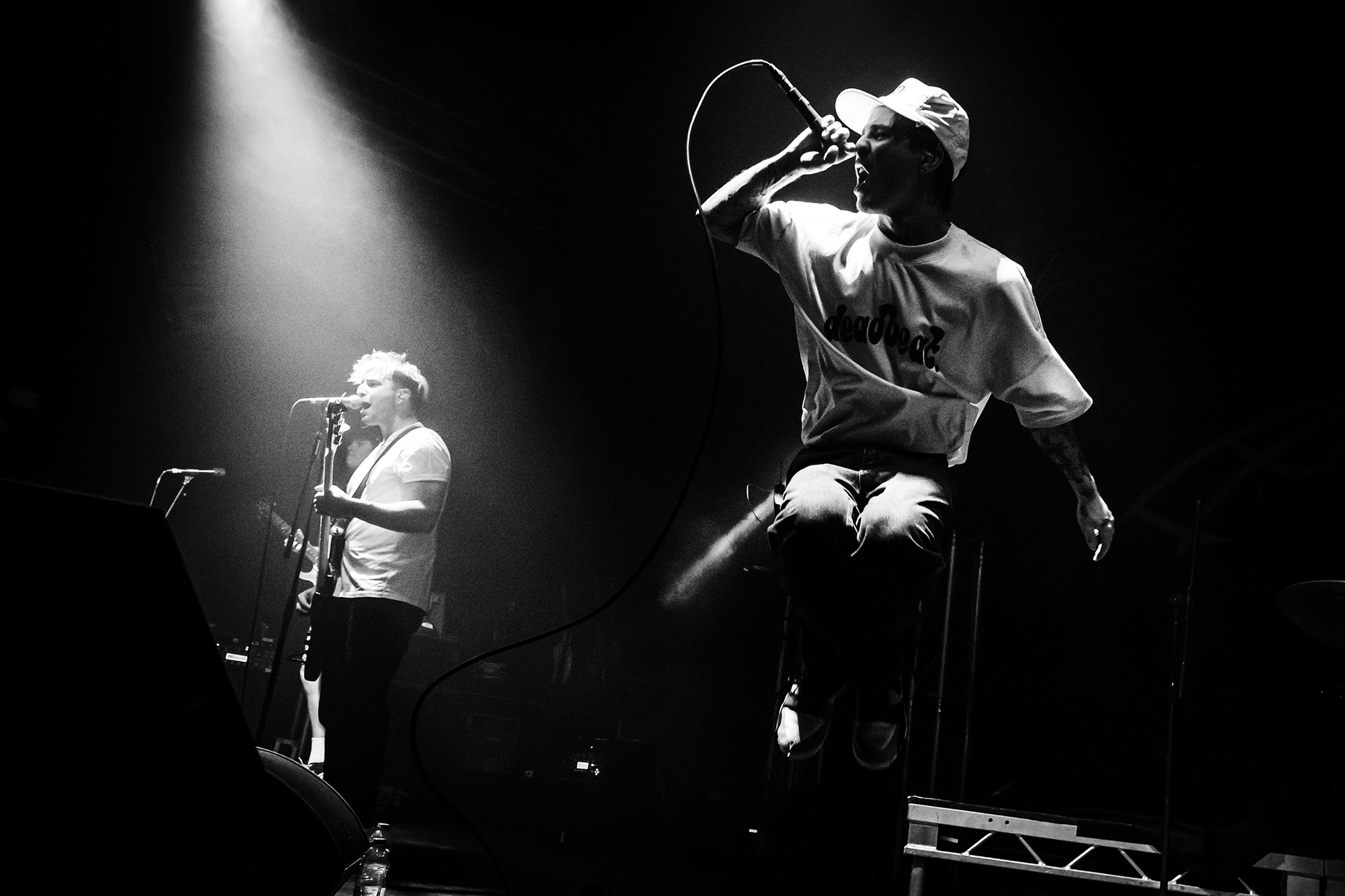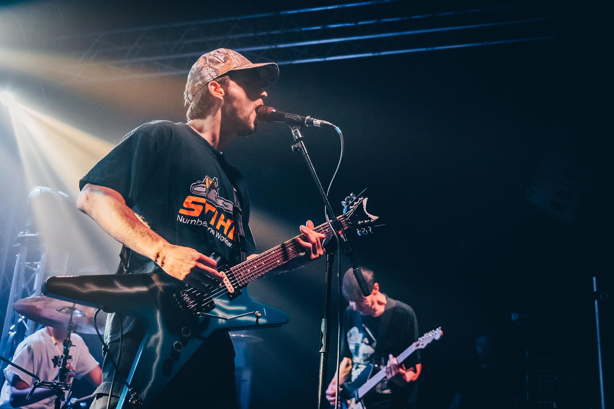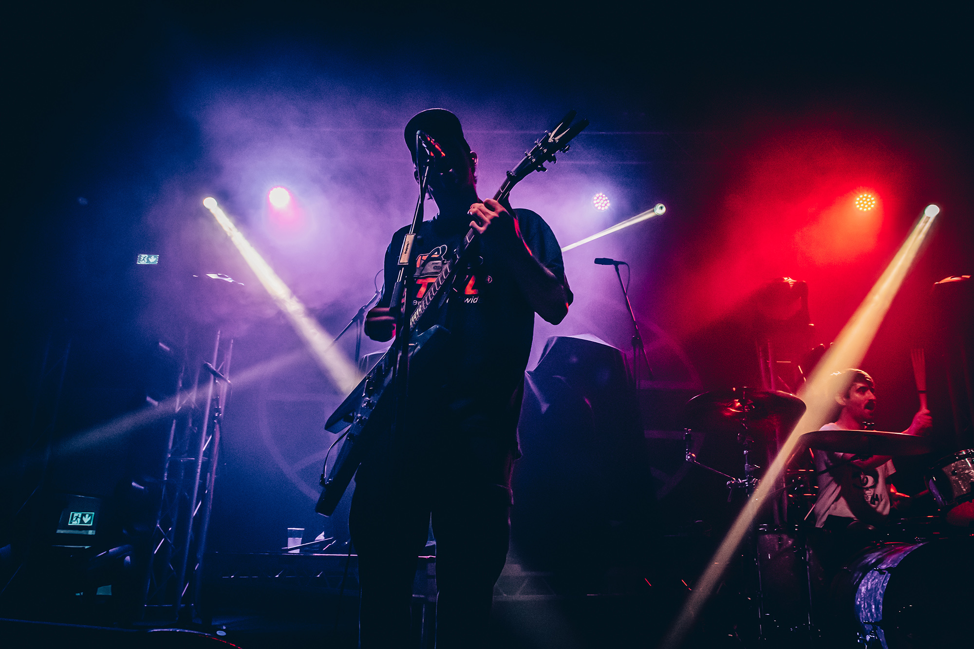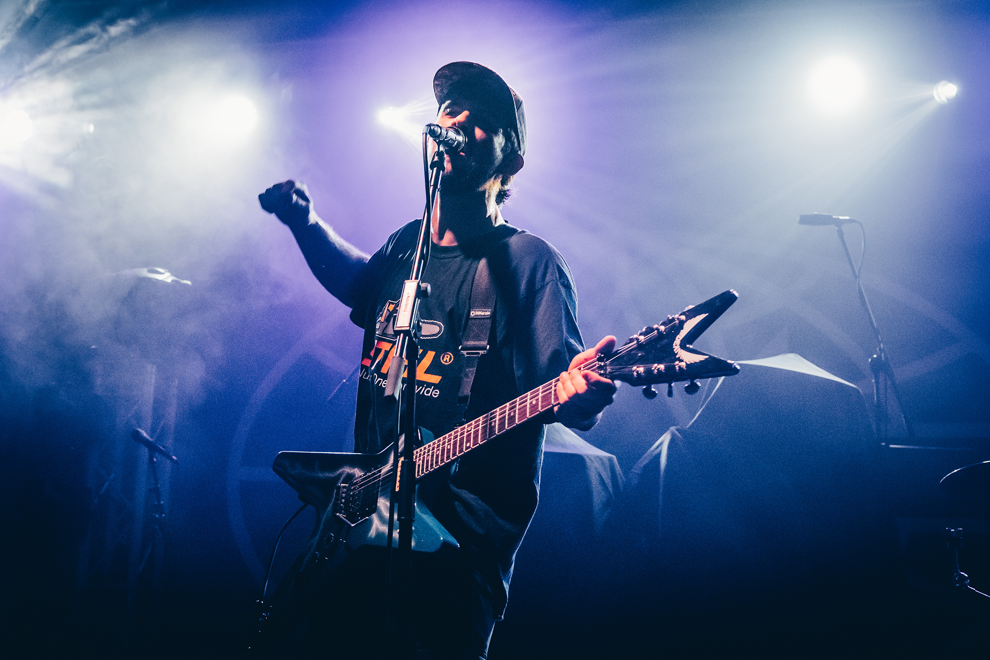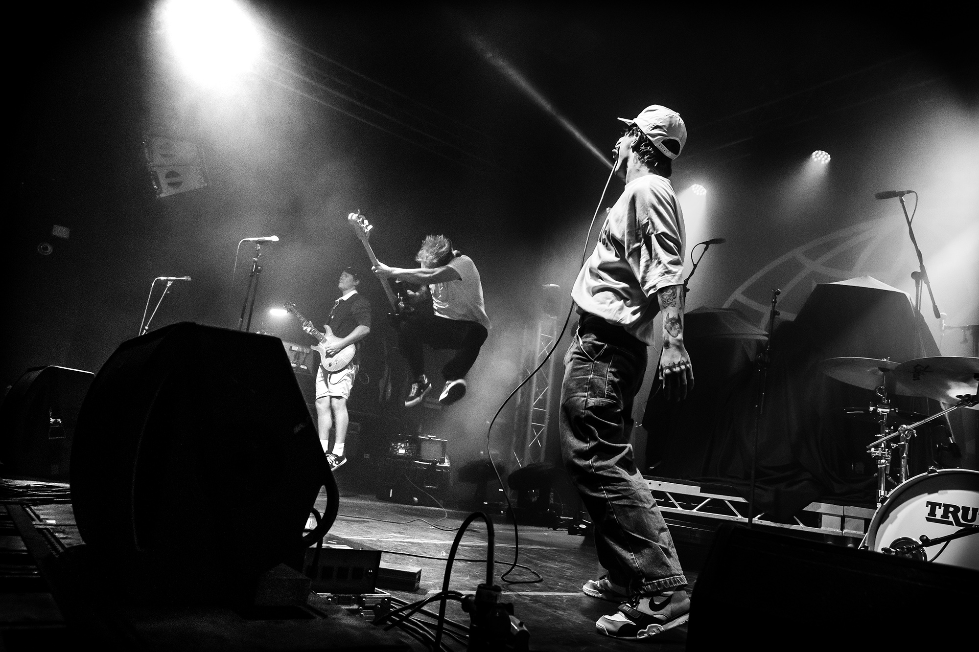 Luckily, Cleveland punks HEART ATTACK MAN bound onto the stage with nervous energy to spare for their first-ever show outside of North America. Rocking a Dimebag Darrel guitar complete with lightning bolt livery, Eric Egan is the perfect frontman for the band’s irreverent brand of pop-punk. The band waste no time, kicking into their furious anthem Puke off their 2021 EP Thoughts & Prayerz, which culminates in the huge chant of “you make me want to fucking puke!” – it might seem juvenile but the crowd laps it up.