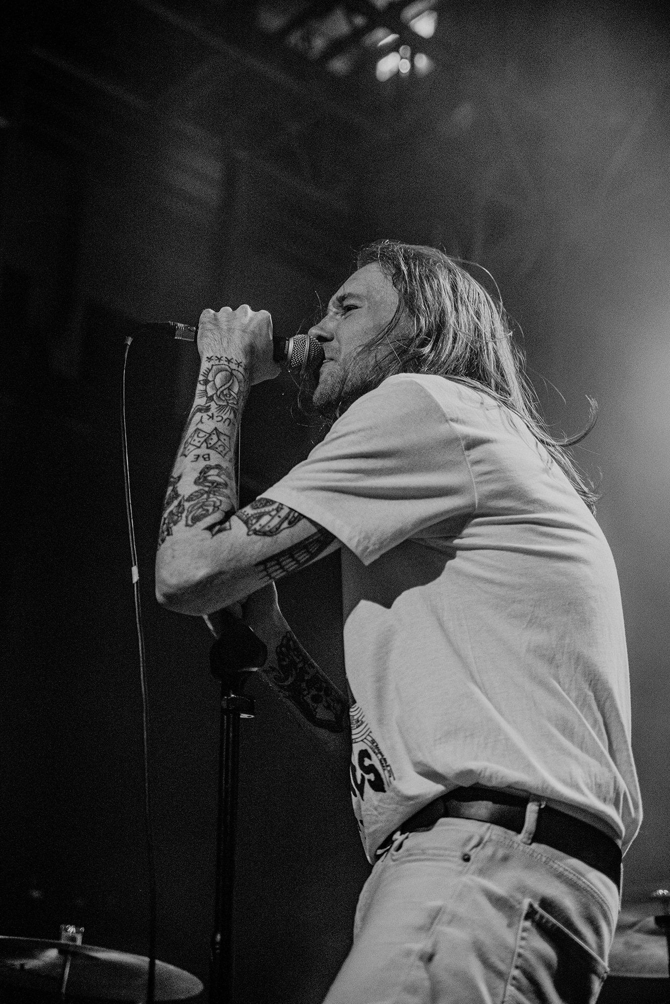 Openers OUT OF LOVE funnel shades of THE DIRTY NIL through their melodic punk, making for a set full of as many anthems as attitude. There’s some 90s alt rock influence in there too, a grungy slower number emerging midway through the set. They’re unpolished in the right sort of way; a garage punk feeling that endures there’s plenty of two stepping and hardcore moshing for them. In a recurring theme for the supports tonight, it’s a short set but one that’s no less impactful.