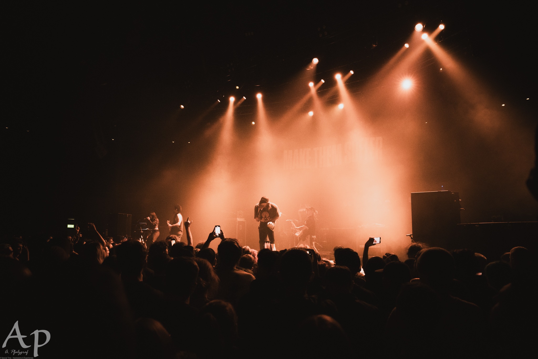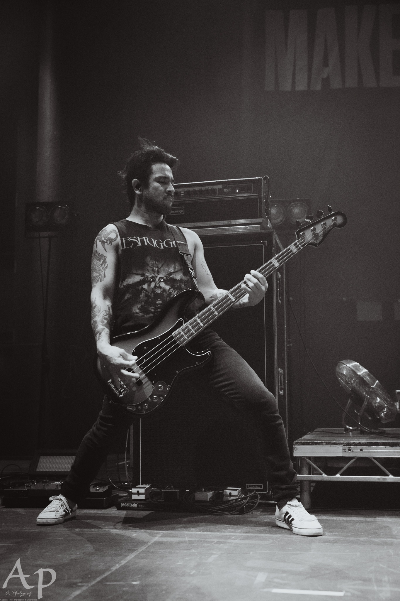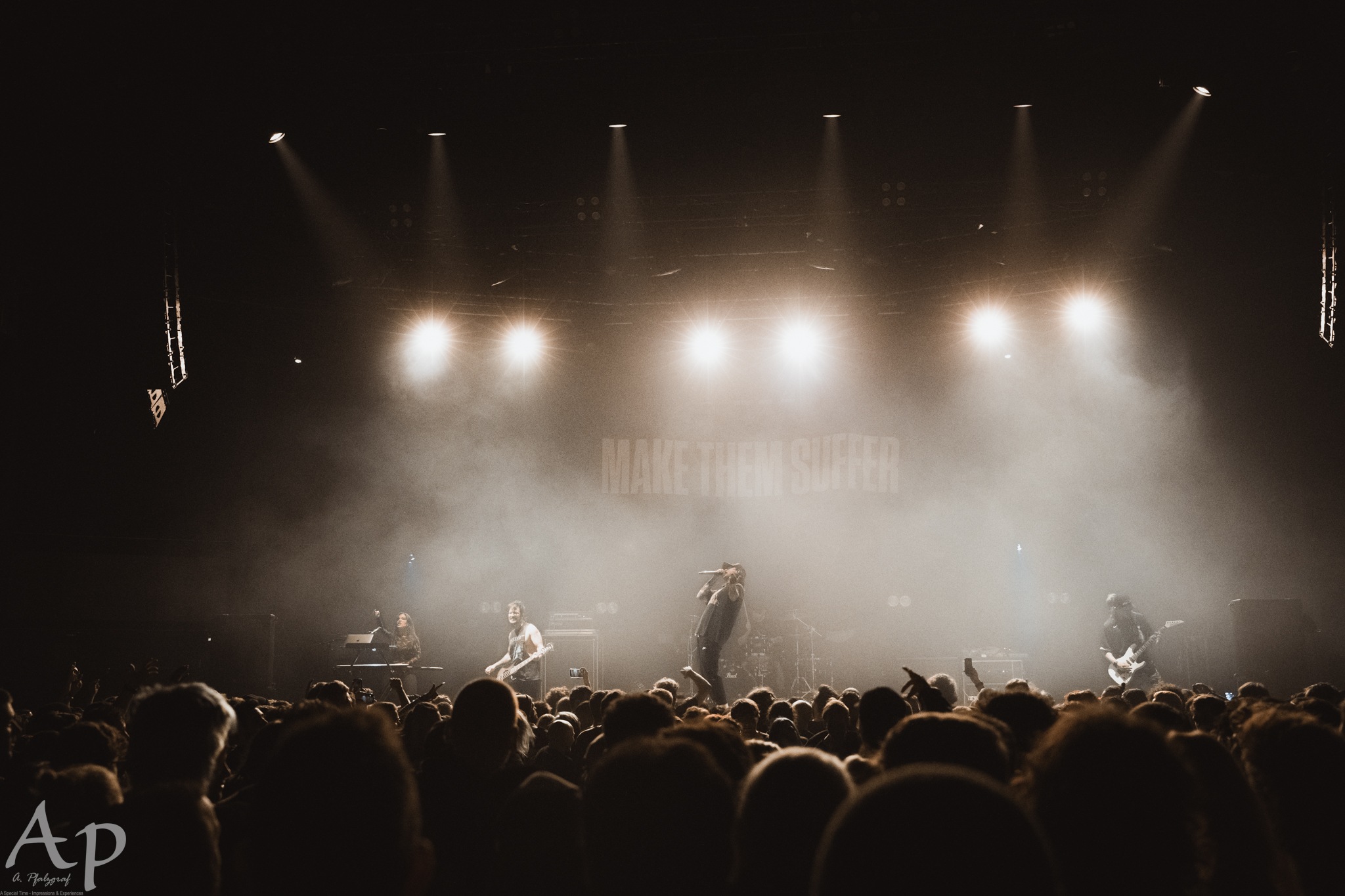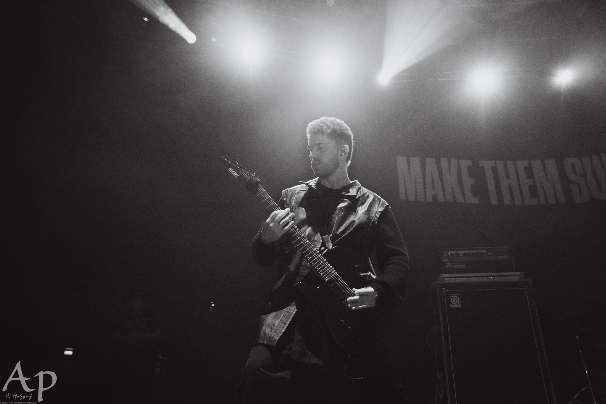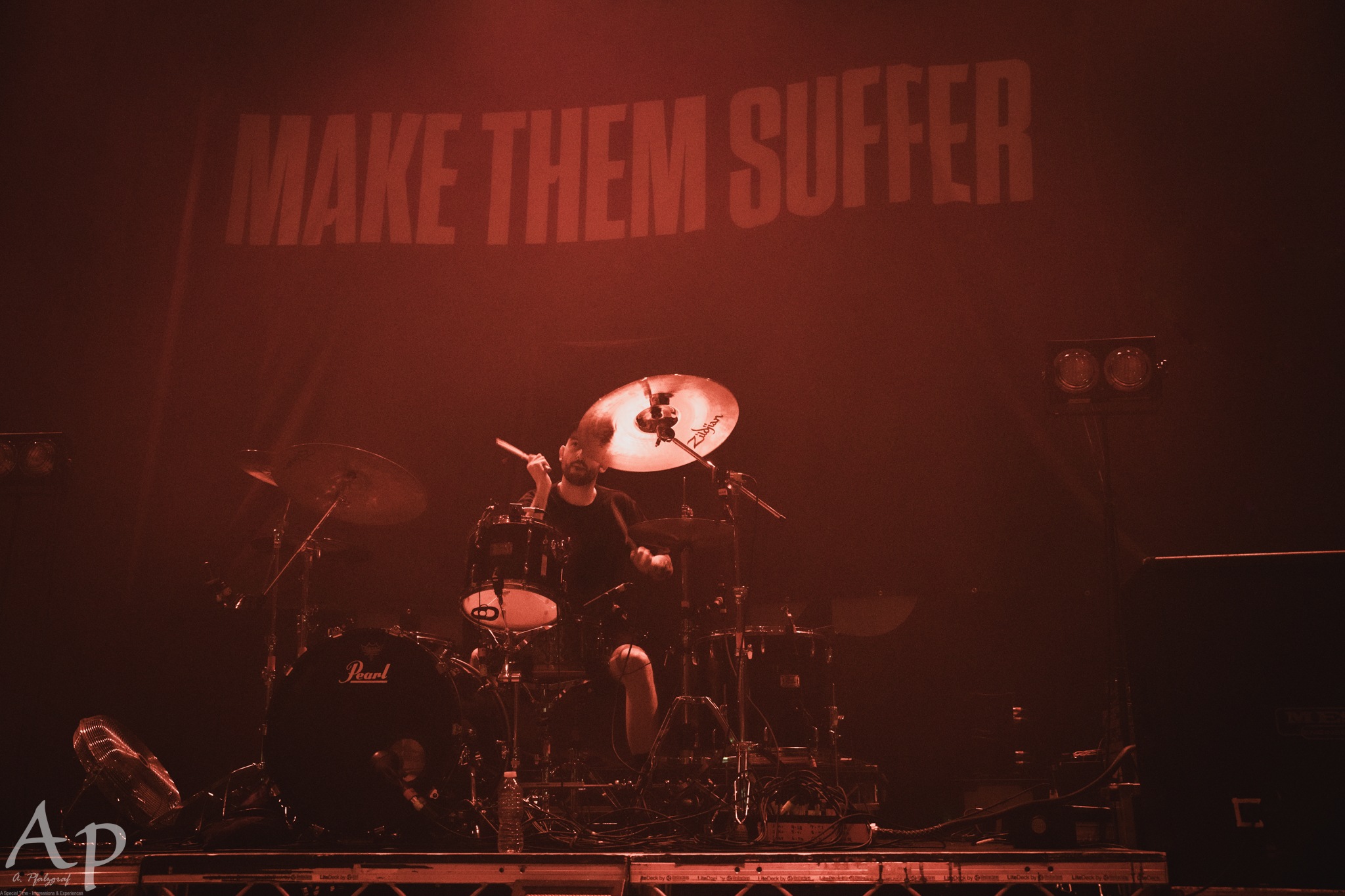 Main support MAKE THEM SUFFER aim to prove to The Roundhouse why the Aussie scene is regarded by many as a hotbed of modern metalcore. Opening with a searing Ghost Of Me, its barrage of drums is over loud, though new crooner Alex Reade‘s chorus takes flight and redeems a rough start. The crowd go even harder for them, crowd surfers a near constant sight during Bones and a cataclysmic Hollowed Heart. Regular drummer Jordan Mather isn’t with them today, as they admit he’d just got off a 20-hour flight and felt he wouldn’t be up for it, which vocalist Sean Harmanis shows solidarity with by getting the crowd to boo him roundly in a moment of light-heartedness amidst the bludgeoning. The biggest issue isn’t one unique to them; there’s been a less than stellar mix all night so far, the drums for MAKE THEM SUFFER in particular being a sticking point as they often overpower the others, especially when there’s heavy double kick or rapid snare passages. It’s frustrating to see a band that are this tight as a unit not reach their potential through no fault of their own, but it doesn’t stop the crowd adoring every minute.Â