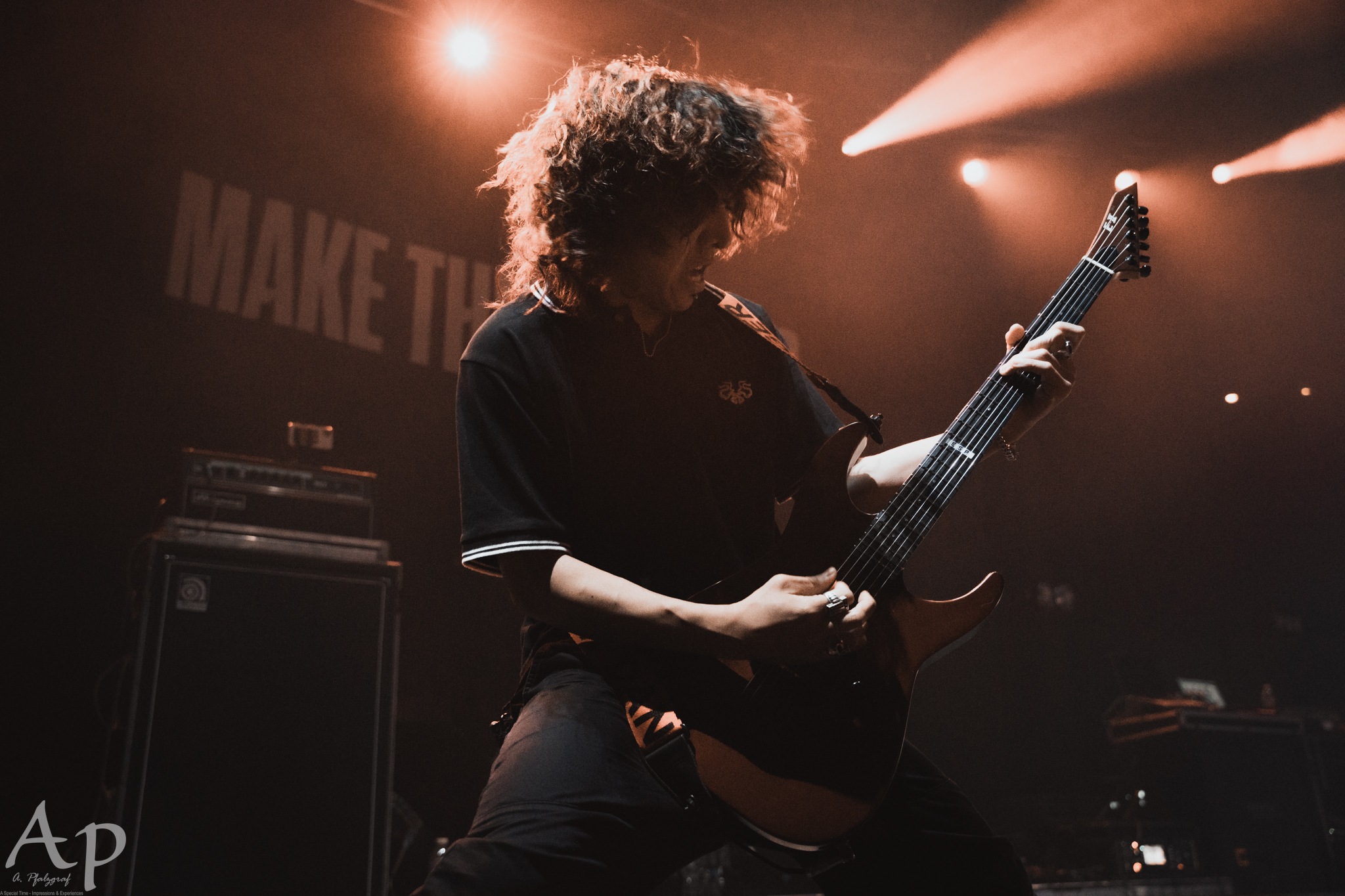 Opening are Japanese metalcore newcomers KNOSIS, featuring former CRYSTAL LAKE vocalist Ryo Kinoshita. They’ve only released a handful of songs to date and play most of them, though not before starting their set as a barbershop quartet, all singing in unison. Then they throw in what sounds like an old 50s pop song that glitches and warbles before Kinoshita screams “what the fuck” and an outrageous snare bomb drops in. Unfortunately, they’re hampered by a poor mix where drums and bass drown out the majority of their songs, which end up careening between blast beats and skittering electronics without anything audible to hold them together between. They also throw in a single MACHINE HEAD riff and NINE INCH NAILS‘ March Of The Pigs, which are awkward bedfellows before considering the bands’ electronic driven metalcore. As good a vocalist as Ryo Kinoshita is, he can’t save this.