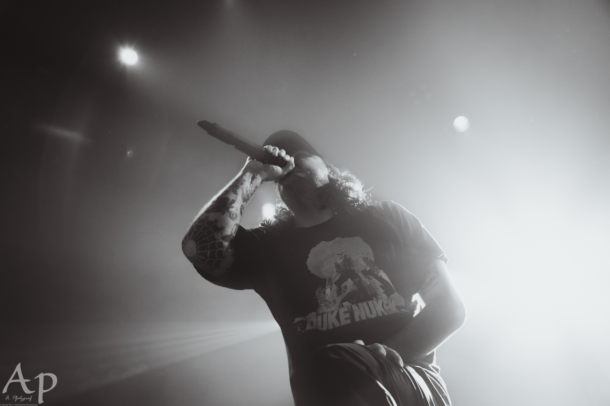 At last it’s time for the main event, and STRAY FROM THE PATH refuse to disappoint. Guillotine‘s cascading opening fill gives way to rampaging groove and the mosh call of “you stupid fuck” echoes from thousands of throats. III’s damning indictment of the police is a raucous send up, while Goodnight Alt Right seethes and rages against the rise of fascism. For every person that complains of politics in music, STRAY FROM THE PATH offers a middle finger, as does every person in the crowd as they go feral for their unapologetically left wing lyricism and outspokenness. A guillotine behind the monstrously talented Craig Reynolds makes their stance even clearer, as he provides the rhythmic backbone of their sound, deceptively complex patterns and fills delivered like they’re nothing.
