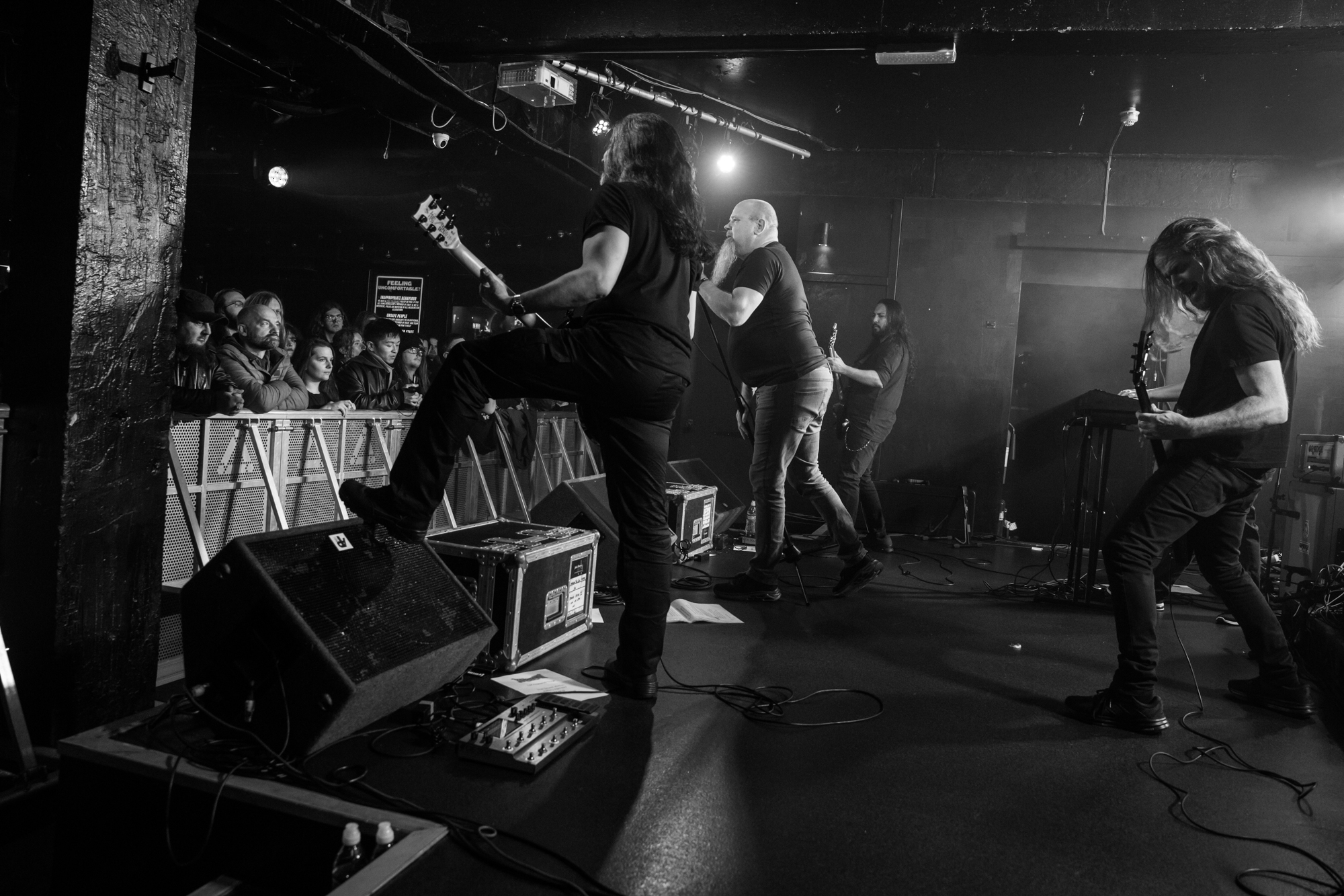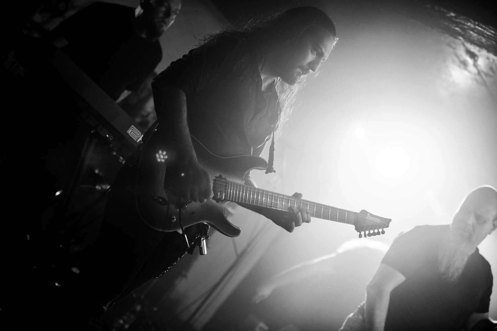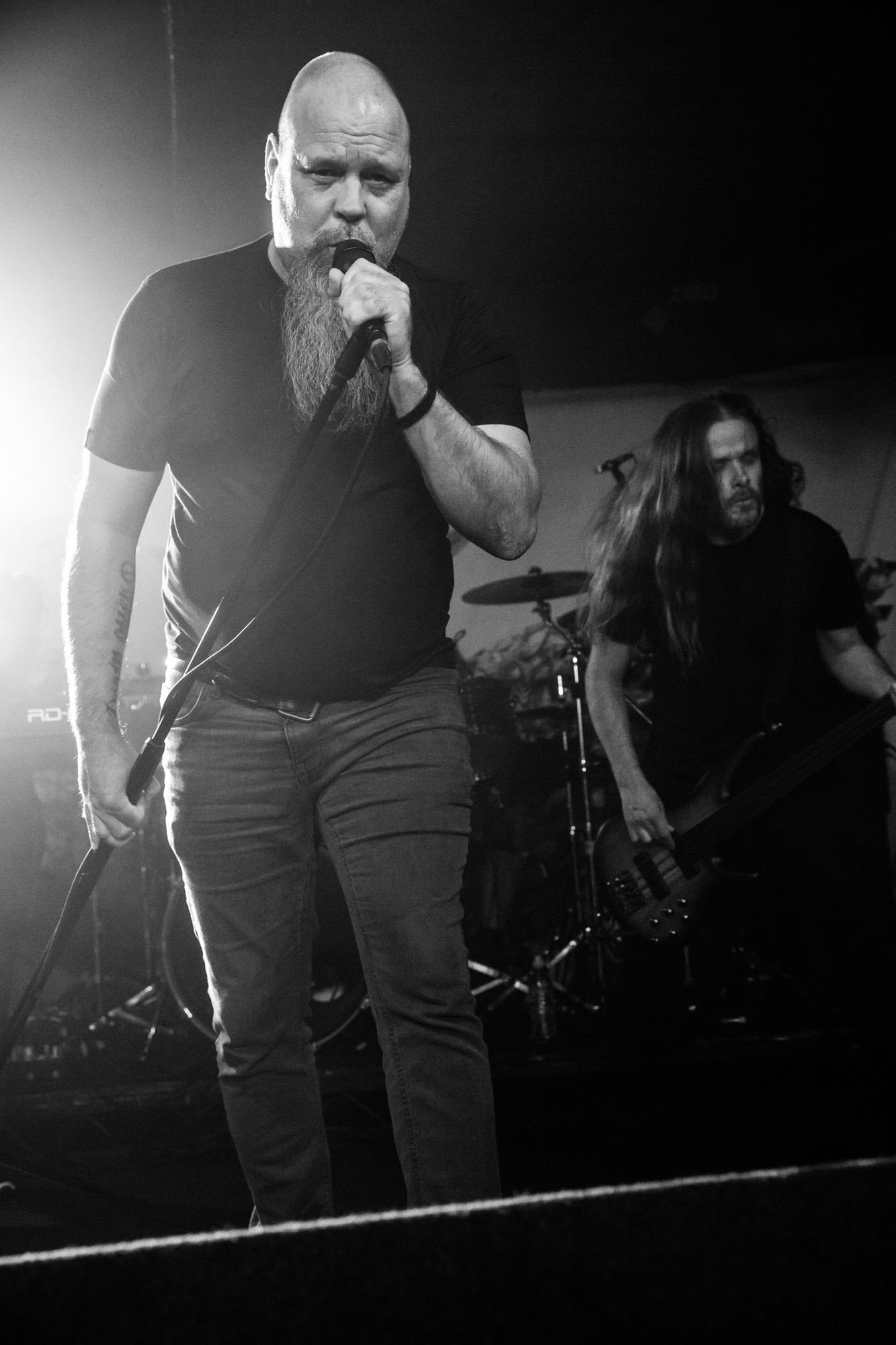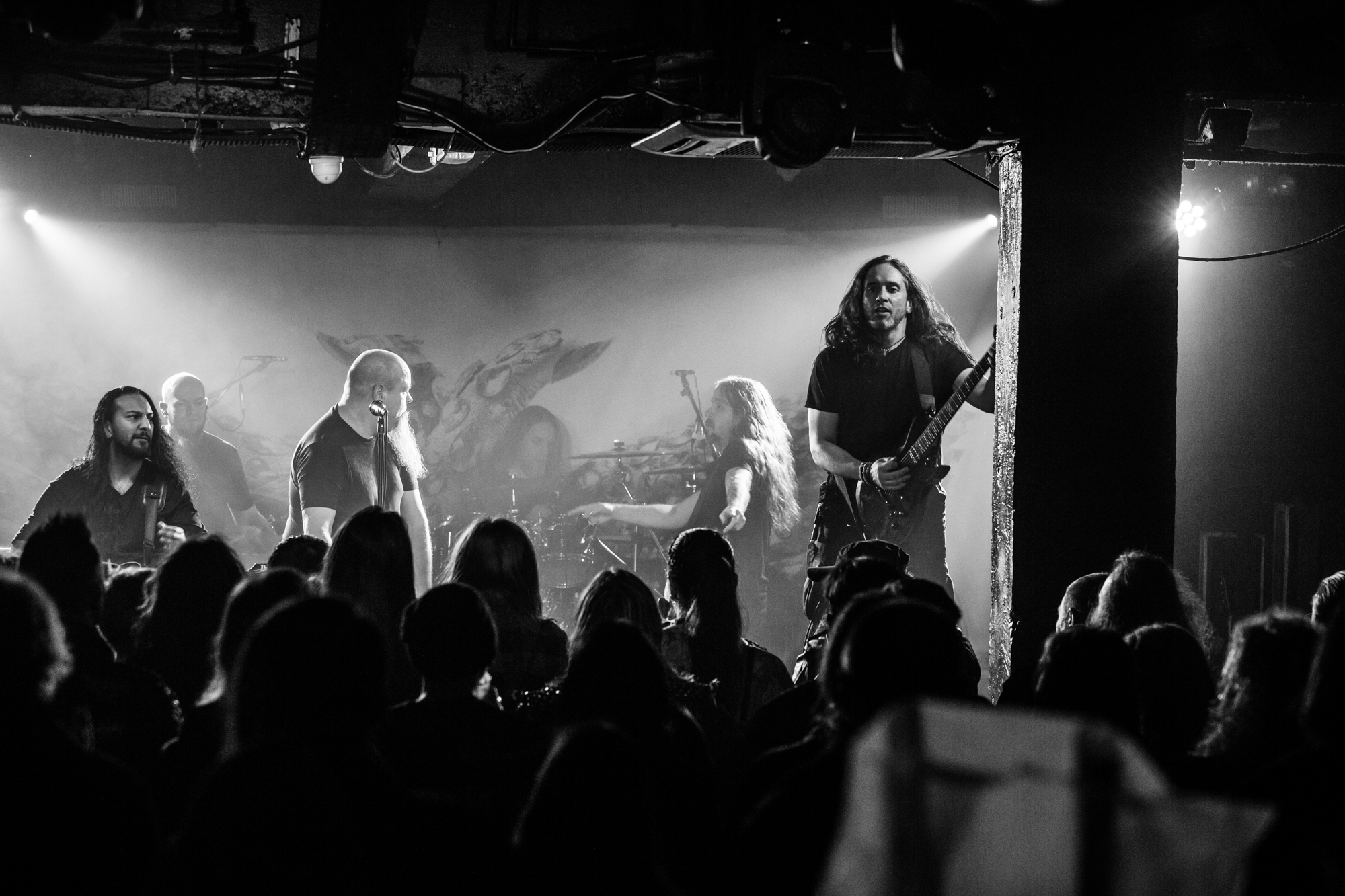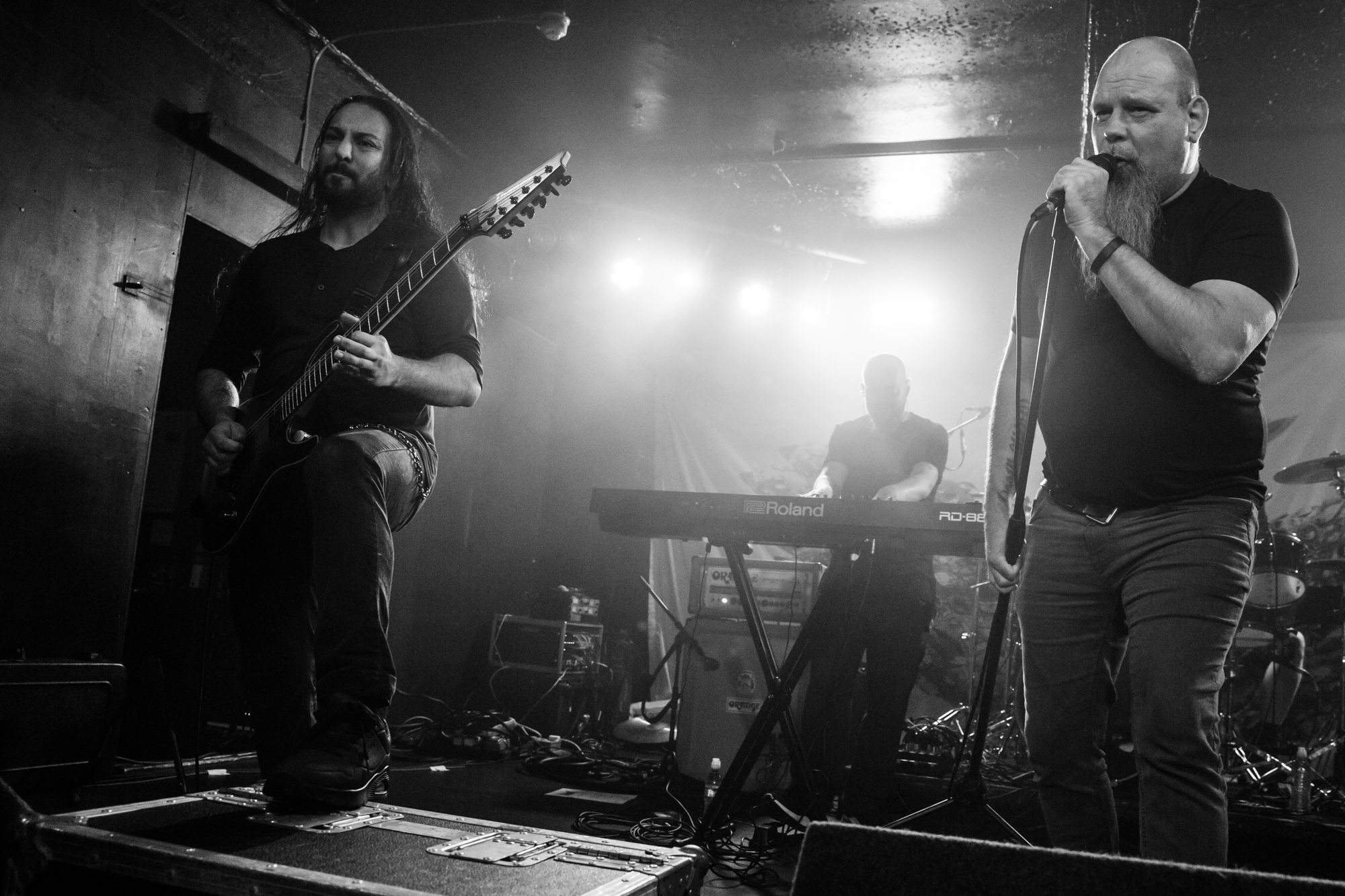 Veteran death/doom acolytes SATURNUS are perfectly matched for this lineup. In their 35-year history, this is the Danes’ debut voyage to Scotland. Understandably, a lot of the congregation present bought their ticket on SATURNUS alone, and the venue is as full as it gets tonight when they arrive on stage. The sextet ignites proceedings with the title track from their long-awaited latest album, The Storm Within. Initially, the immense drum sound of Henrik Glass taints the keyboards and guitars, but this is mostly rectified as the set flows on. The song lurches between introspective, clean guitar leads, muscular bass and restrained drums to 2000s-inspired, death-tinged heavy doom. Vocalist Thomas Akim Grønbæk Jensen shifts between agonising doom growls and suitably apathetic low-range singing.