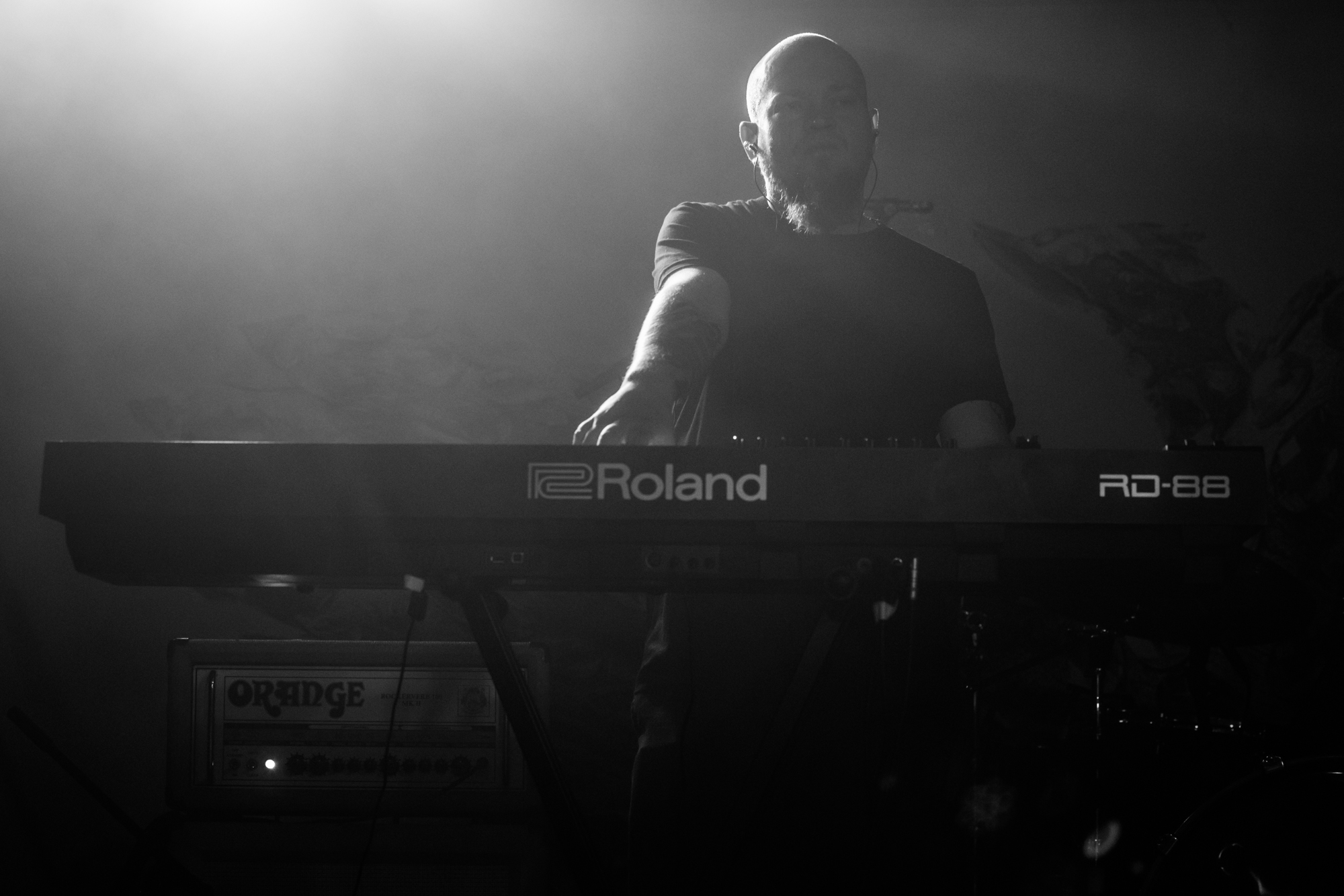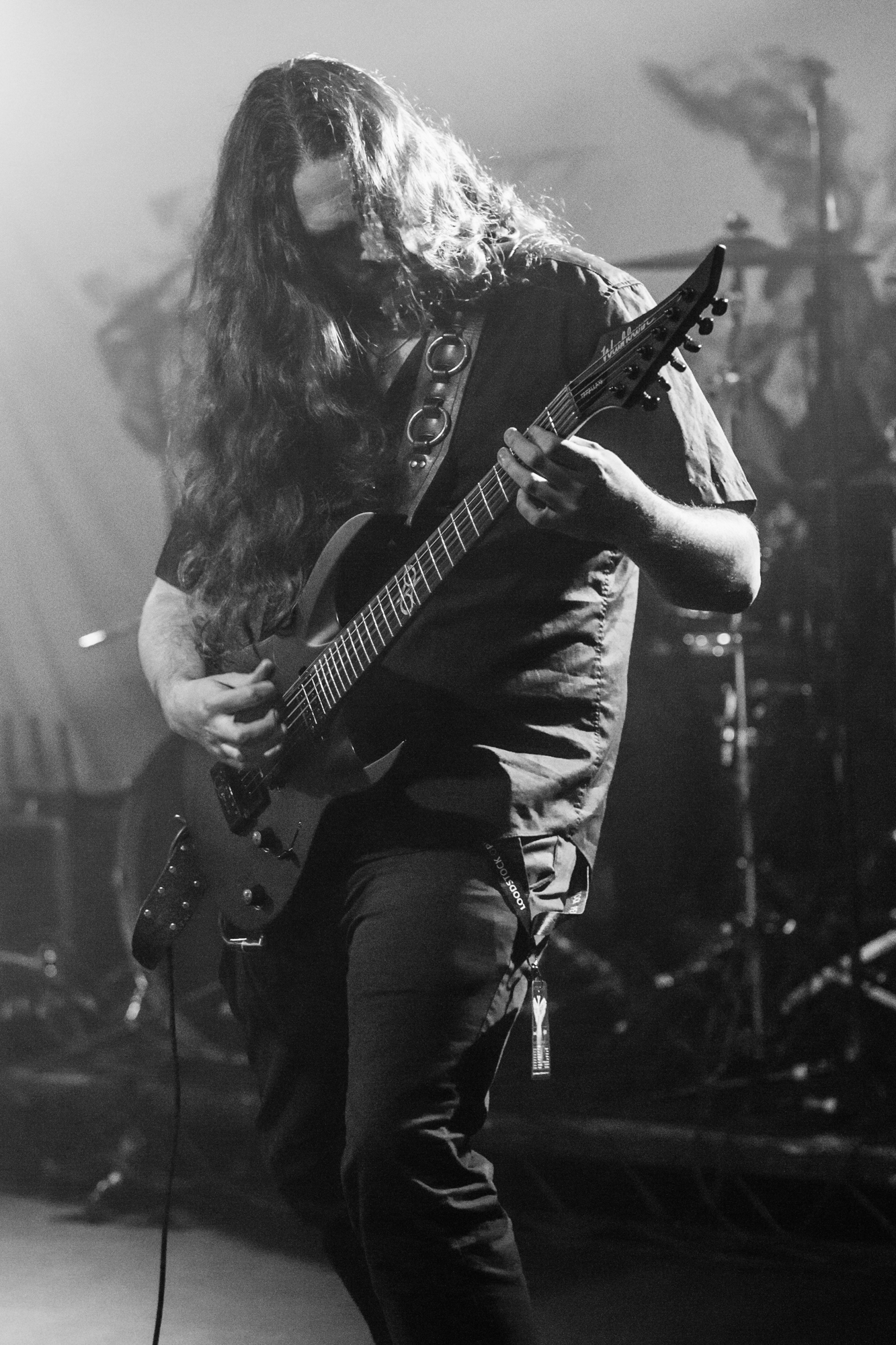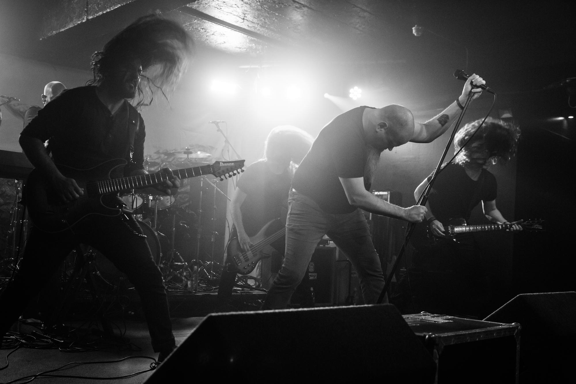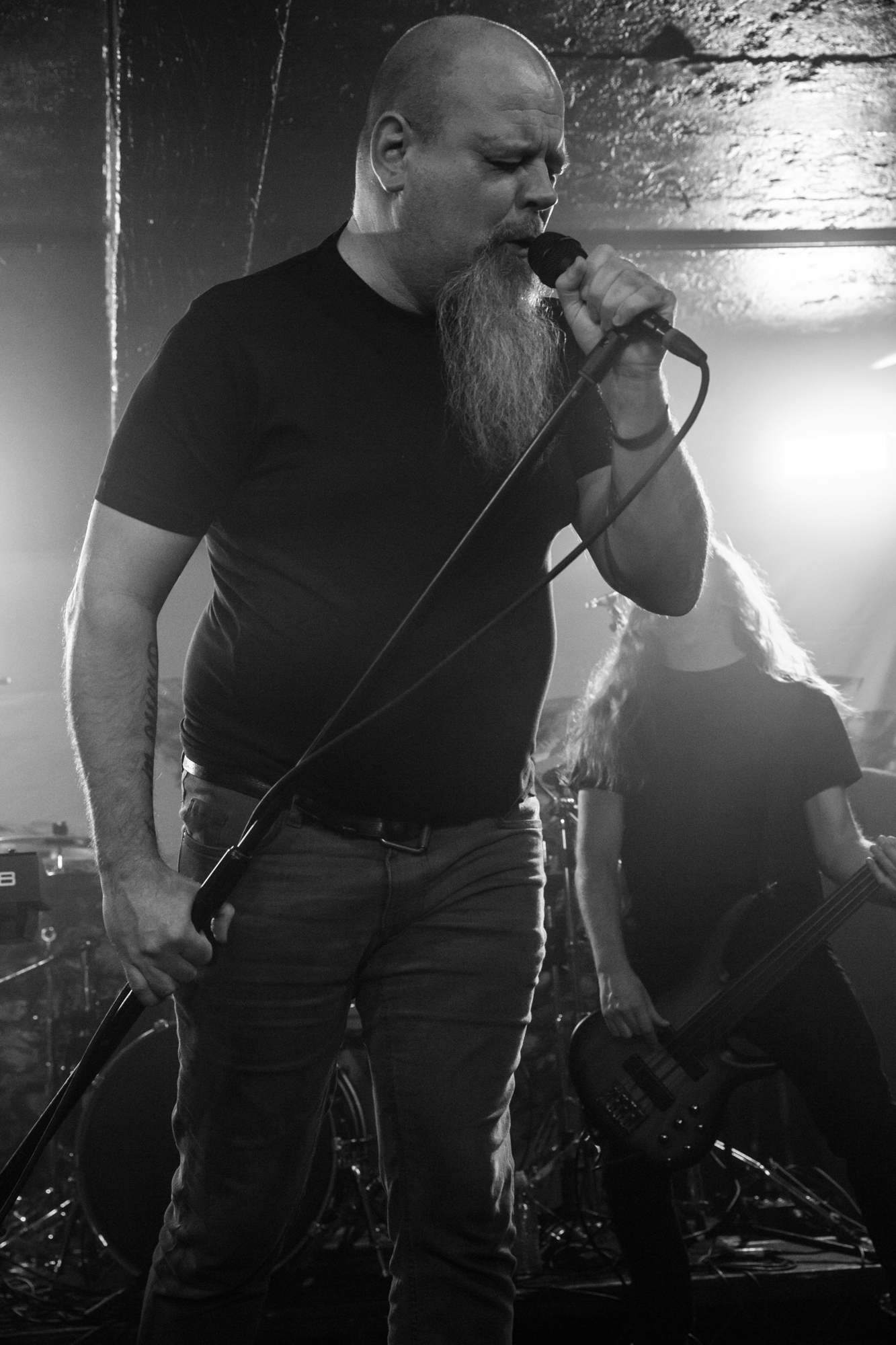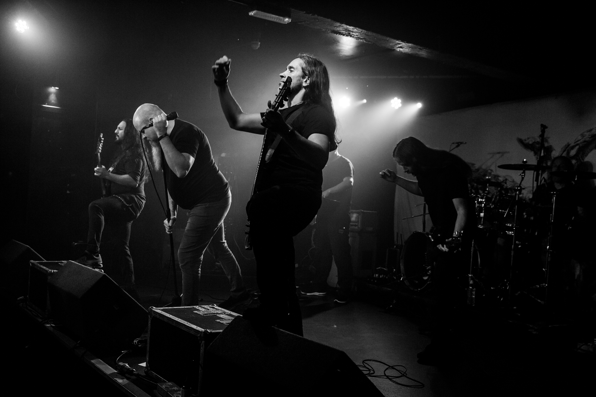 Veteran death/doom acolytes SATURNUS are perfectly matched for this lineup. In their 35-year history, this is the Danes’ debut voyage to Scotland. Understandably, a lot of the congregation present bought their ticket on SATURNUS alone, and the venue is as full as it gets tonight when they arrive on stage. The sextet ignites proceedings with the title track from their long-awaited latest album, The Storm Within. Initially, the immense drum sound of Henrik Glass taints the keyboards and guitars, but this is mostly rectified as the set flows on. The song lurches between introspective, clean guitar leads, muscular bass and restrained drums to 2000s-inspired, death-tinged heavy doom. Vocalist Thomas Akim Grønbæk Jensen shifts between agonising doom growls and suitably apathetic low-range singing.