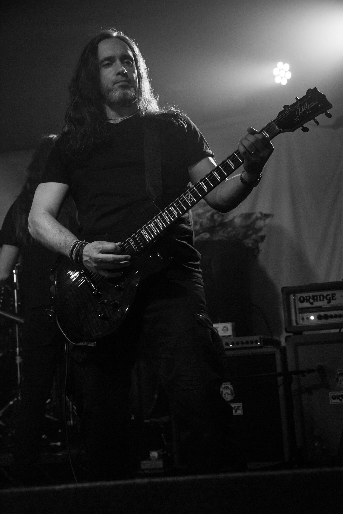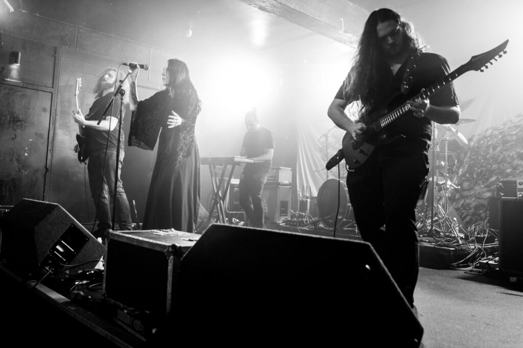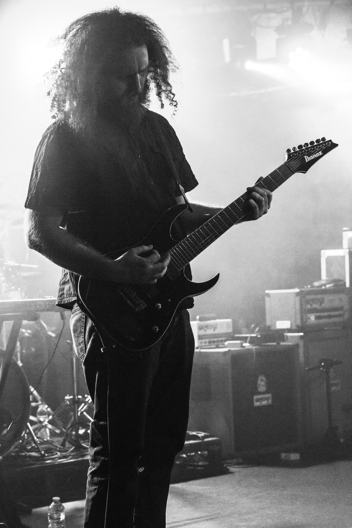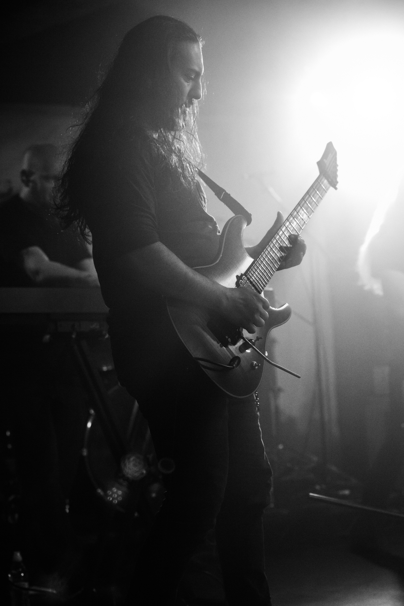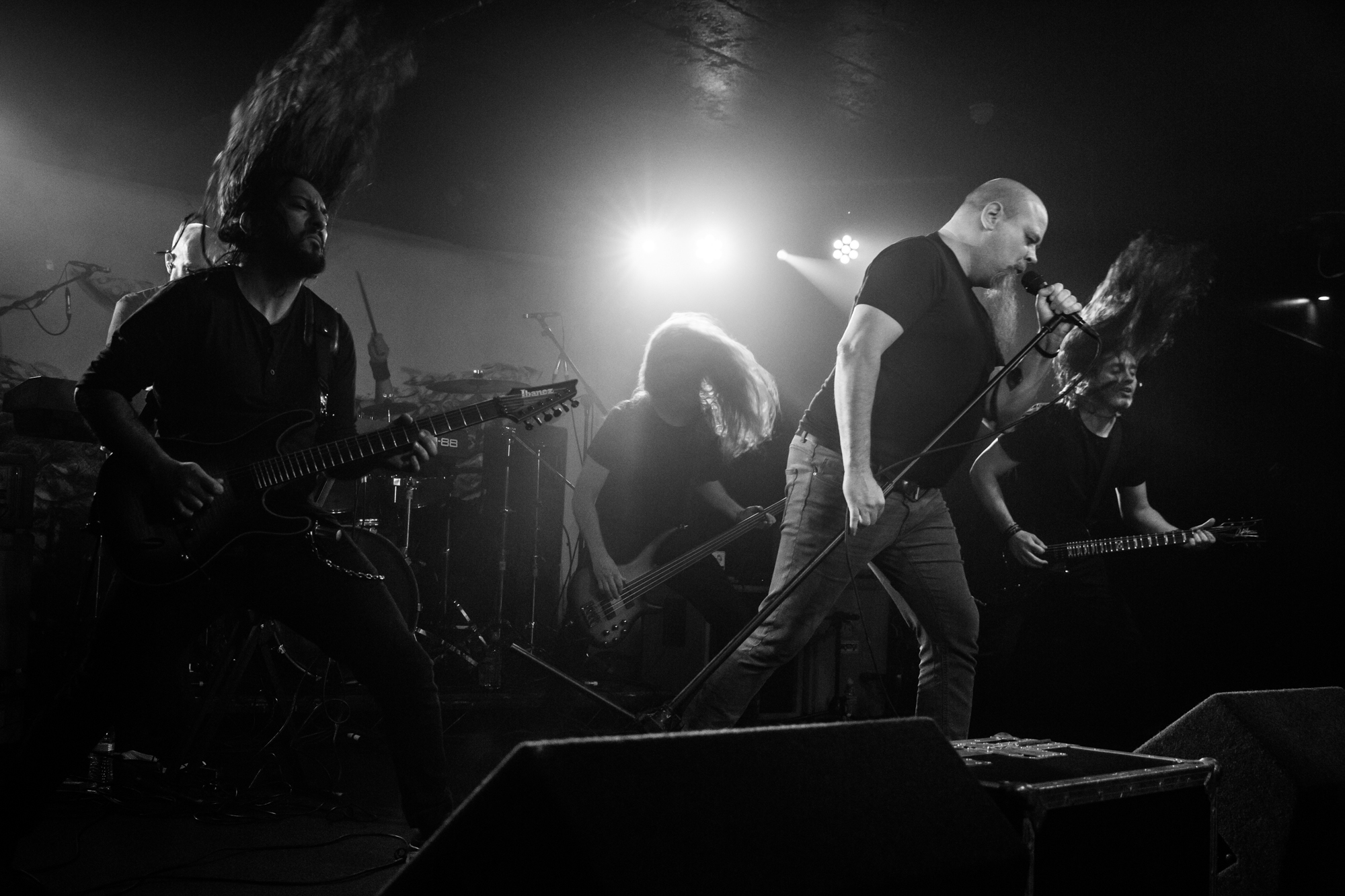 Veteran death/doom acolytes SATURNUS are perfectly matched for this lineup. In their 35-year history, this is the Danes’ debut voyage to Scotland. Understandably, a lot of the congregation present bought their ticket on SATURNUS alone, and the venue is as full as it gets tonight when they arrive on stage. The sextet ignites proceedings with the title track from their long-awaited latest album, The Storm Within. Initially, the immense drum sound of Henrik Glass taints the keyboards and guitars, but this is mostly rectified as the set flows on. The song lurches between introspective, clean guitar leads, muscular bass and restrained drums to 2000s-inspired, death-tinged heavy doom. Vocalist Thomas Akim Grønbæk Jensen shifts between agonising doom growls and suitably apathetic low-range singing.