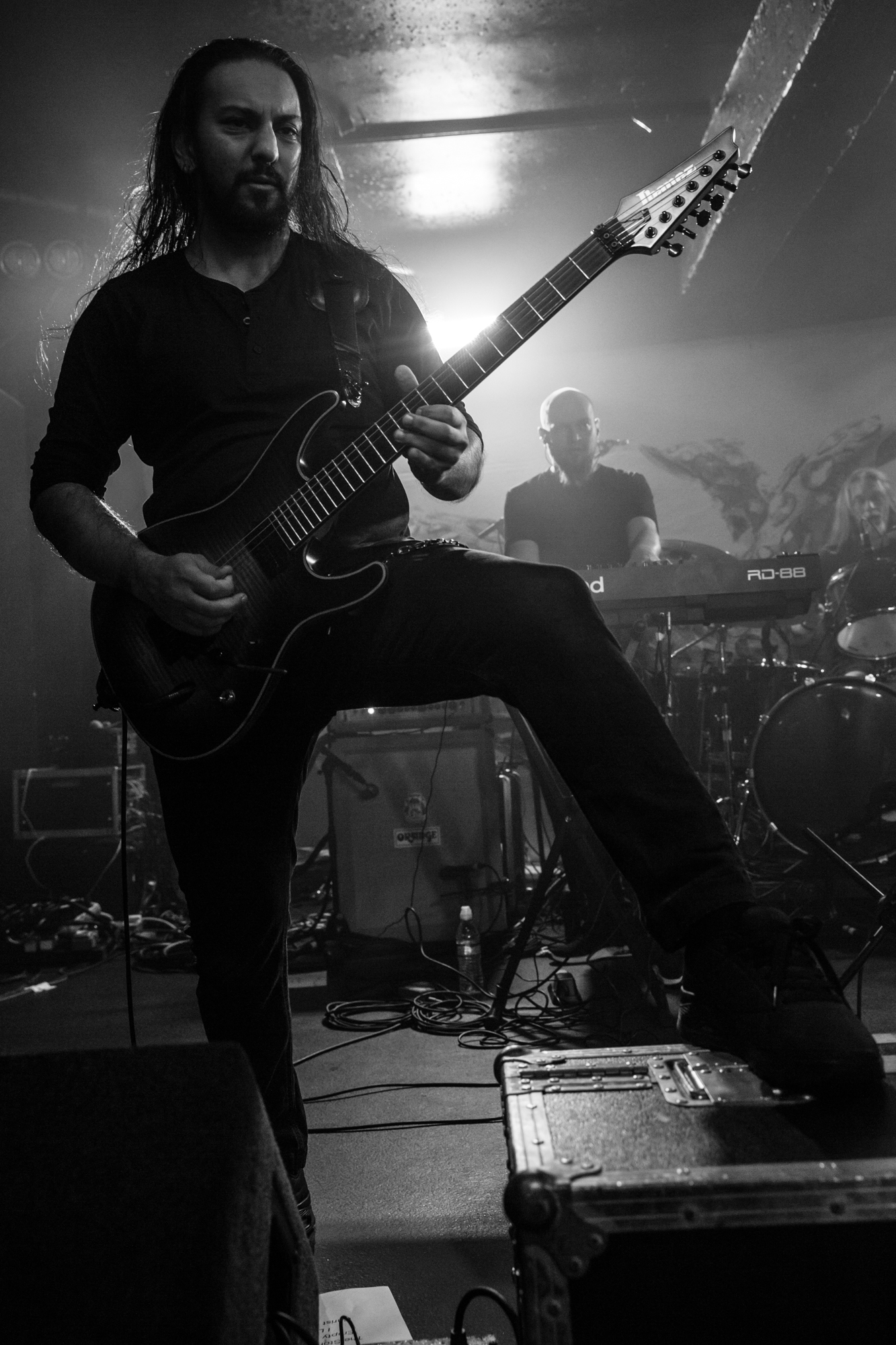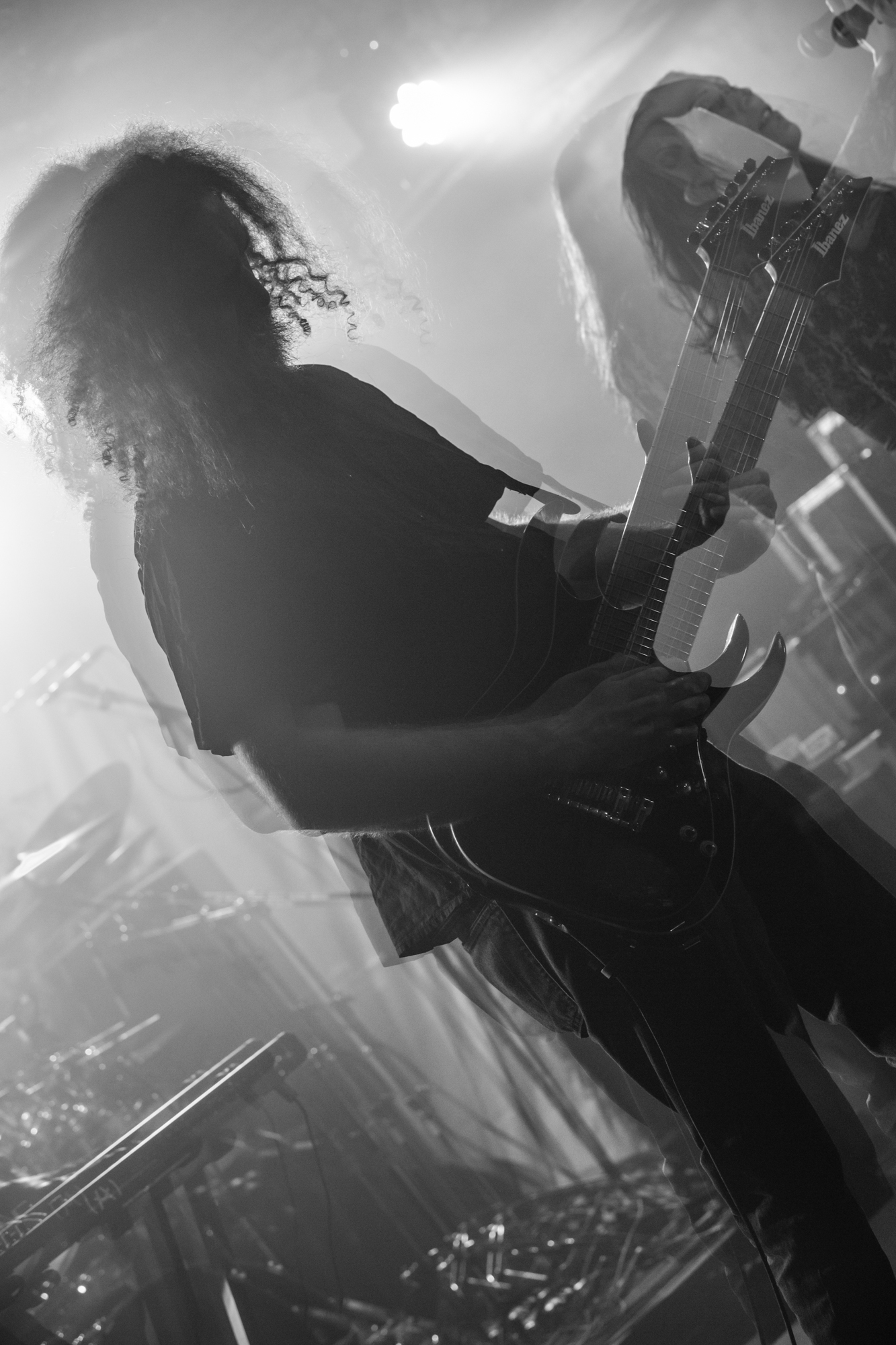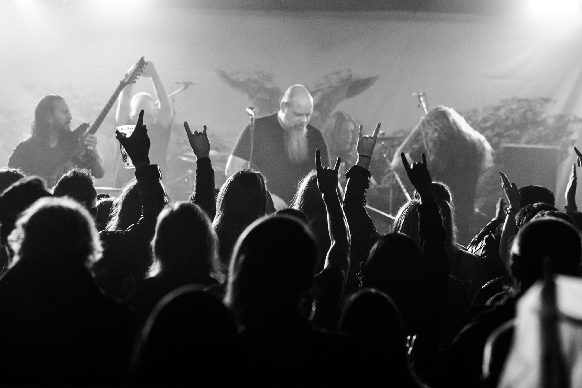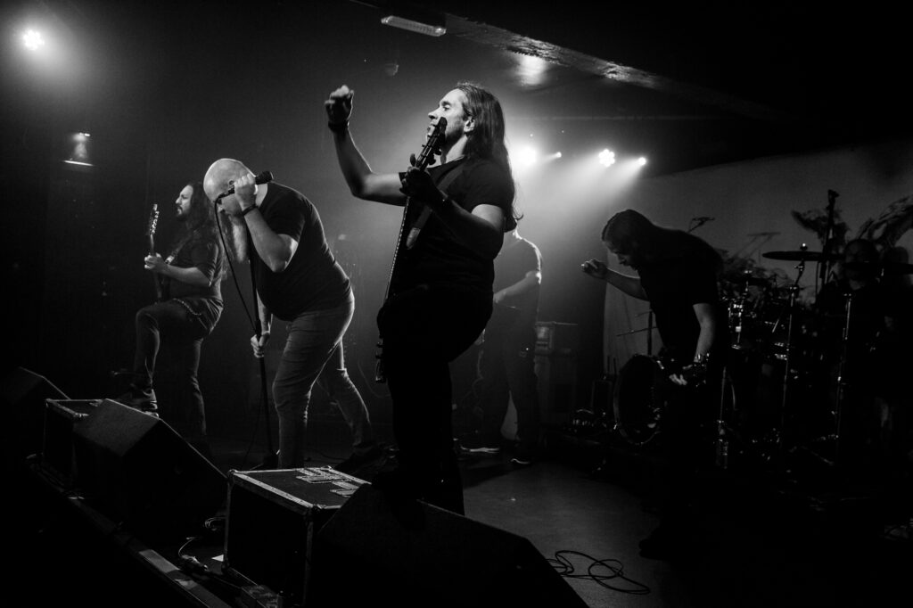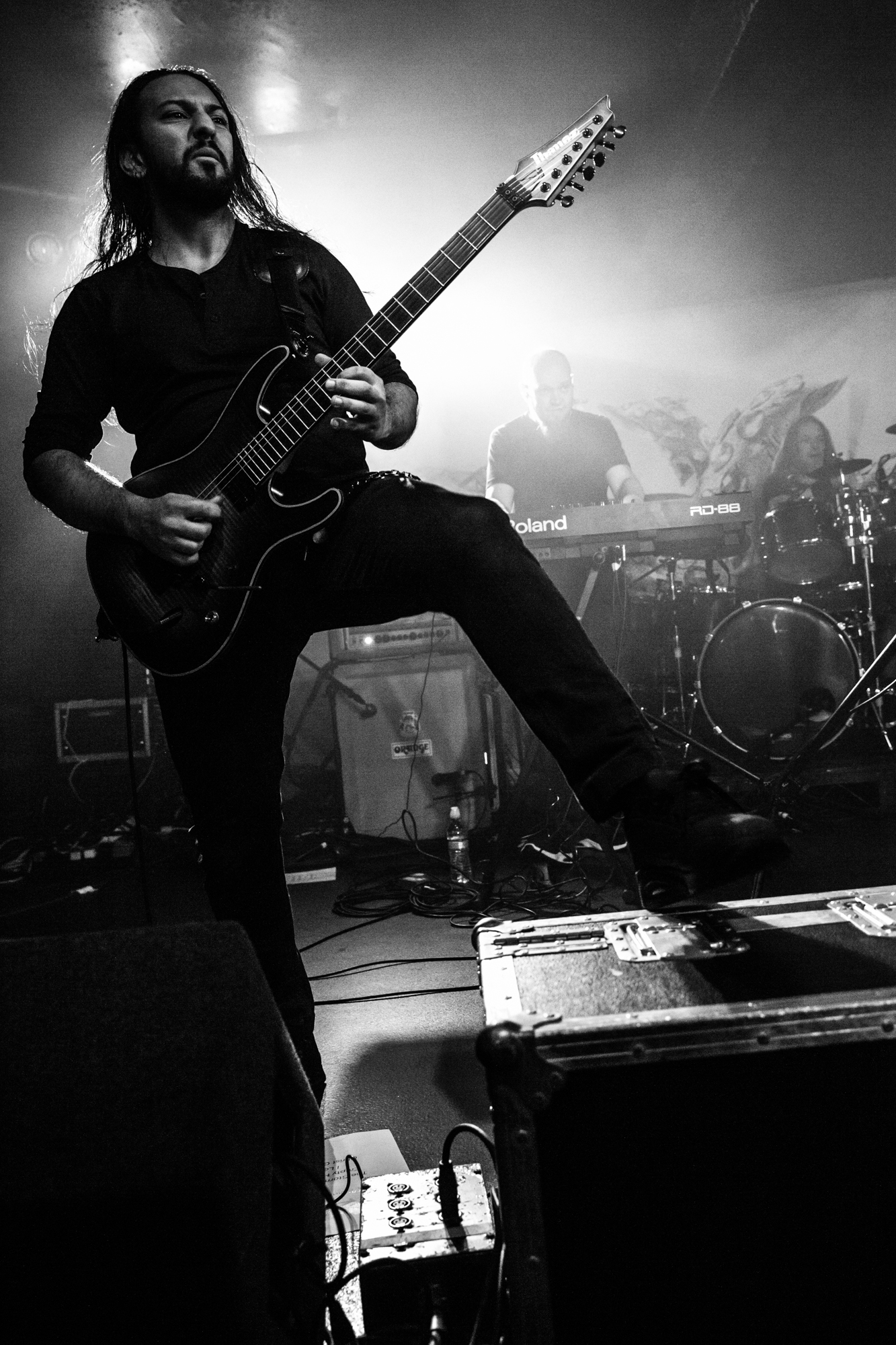 Veteran death/doom acolytes SATURNUS are perfectly matched for this lineup. In their 35-year history, this is the Danes’ debut voyage to Scotland. Understandably, a lot of the congregation present bought their ticket on SATURNUS alone, and the venue is as full as it gets tonight when they arrive on stage. The sextet ignites proceedings with the title track from their long-awaited latest album, The Storm Within. Initially, the immense drum sound of Henrik Glass taints the keyboards and guitars, but this is mostly rectified as the set flows on. The song lurches between introspective, clean guitar leads, muscular bass and restrained drums to 2000s-inspired, death-tinged heavy doom. Vocalist Thomas Akim Grønbæk Jensen shifts between agonising doom growls and suitably apathetic low-range singing.