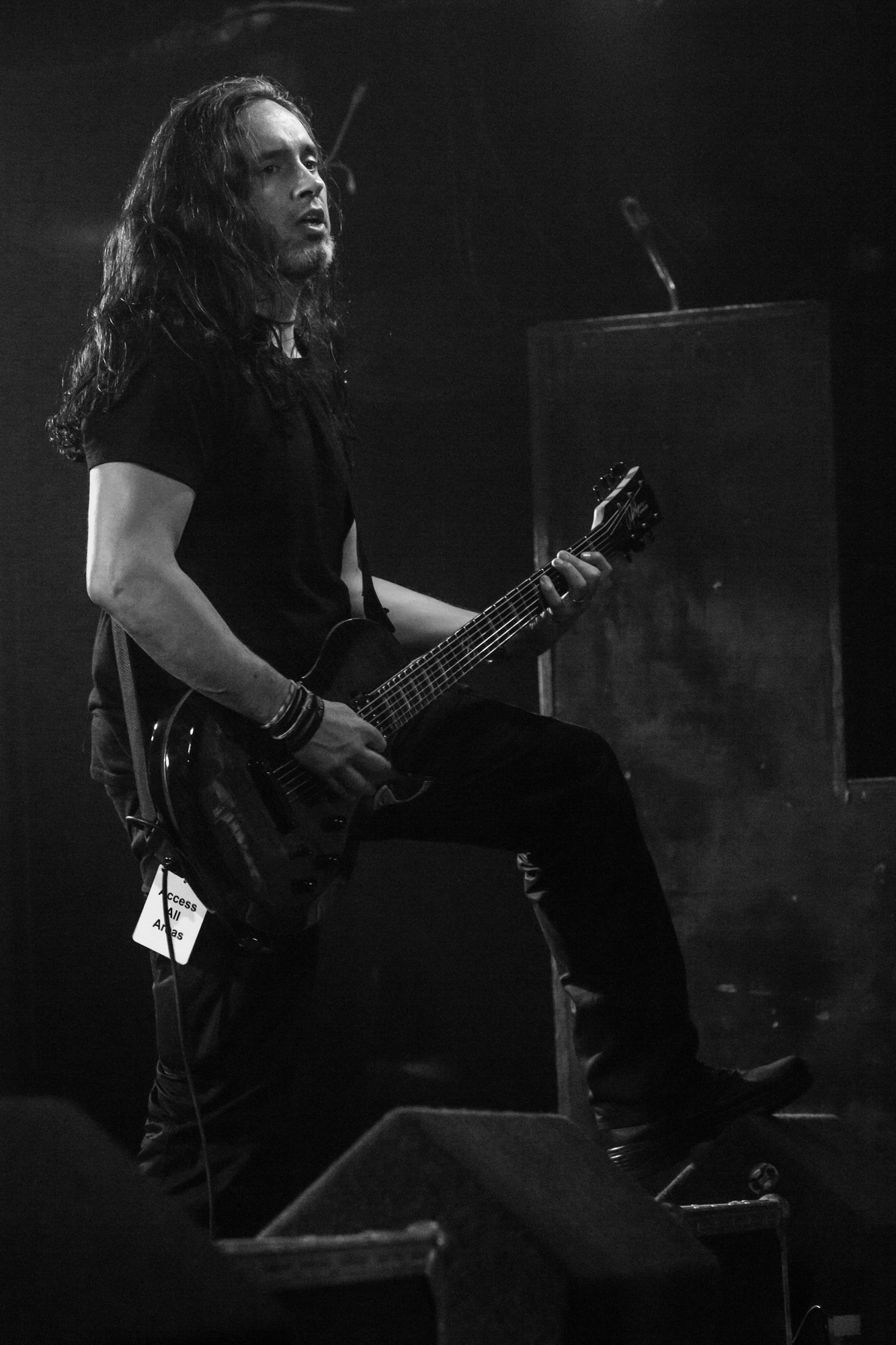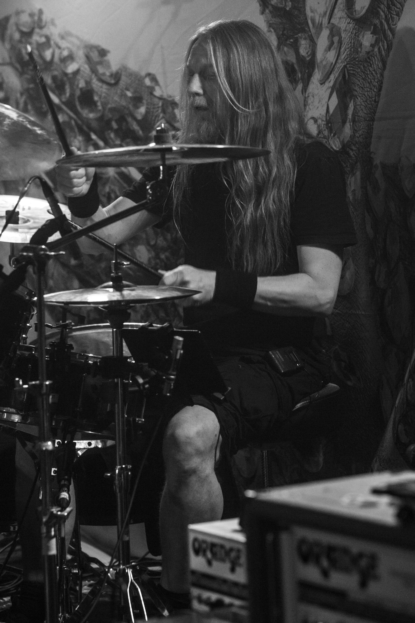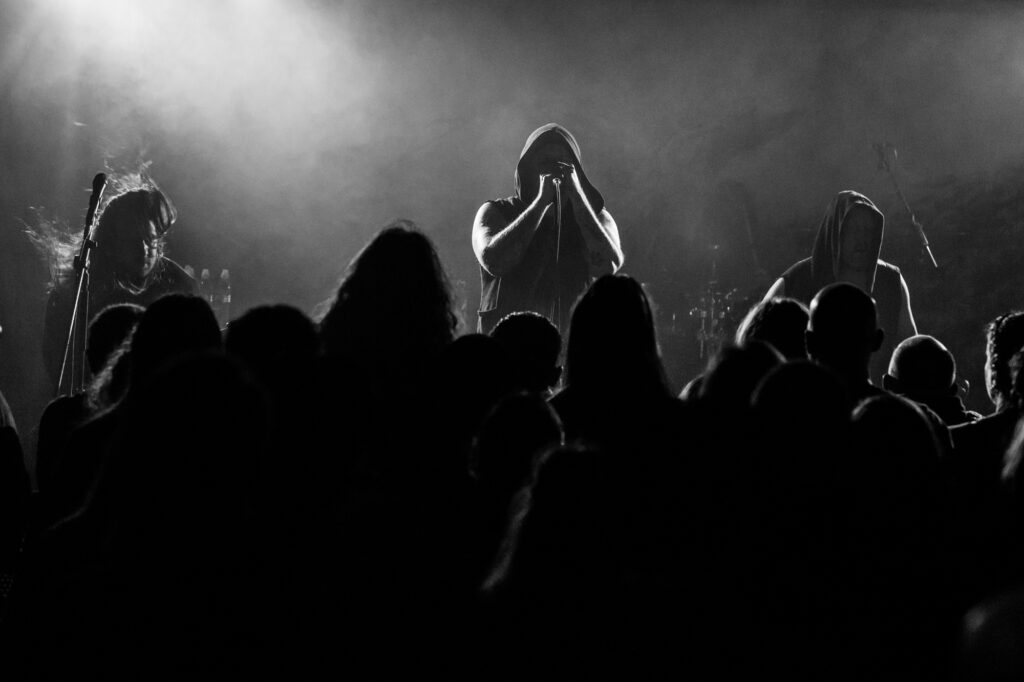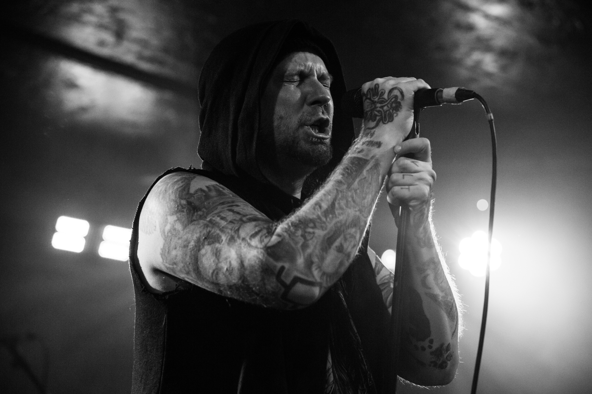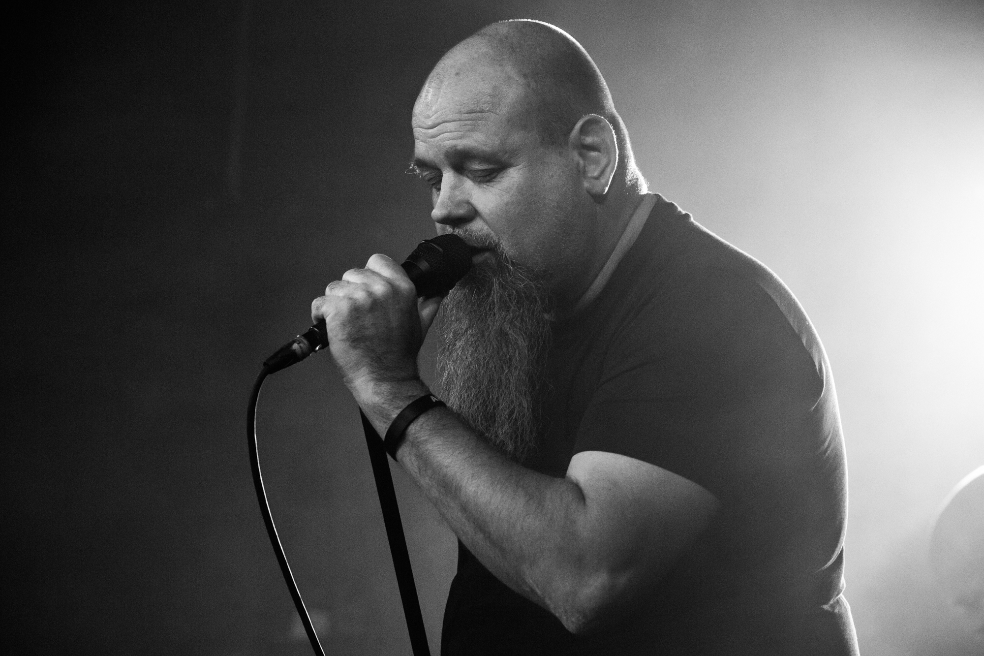 Veteran death/doom acolytes SATURNUS are perfectly matched for this lineup. In their 35-year history, this is the Danes’ debut voyage to Scotland. Understandably, a lot of the congregation present bought their ticket on SATURNUS alone, and the venue is as full as it gets tonight when they arrive on stage. The sextet ignites proceedings with the title track from their long-awaited latest album, The Storm Within. Initially, the immense drum sound of Henrik Glass taints the keyboards and guitars, but this is mostly rectified as the set flows on. The song lurches between introspective, clean guitar leads, muscular bass and restrained drums to 2000s-inspired, death-tinged heavy doom. Vocalist Thomas Akim Grønbæk Jensen shifts between agonising doom growls and suitably apathetic low-range singing.