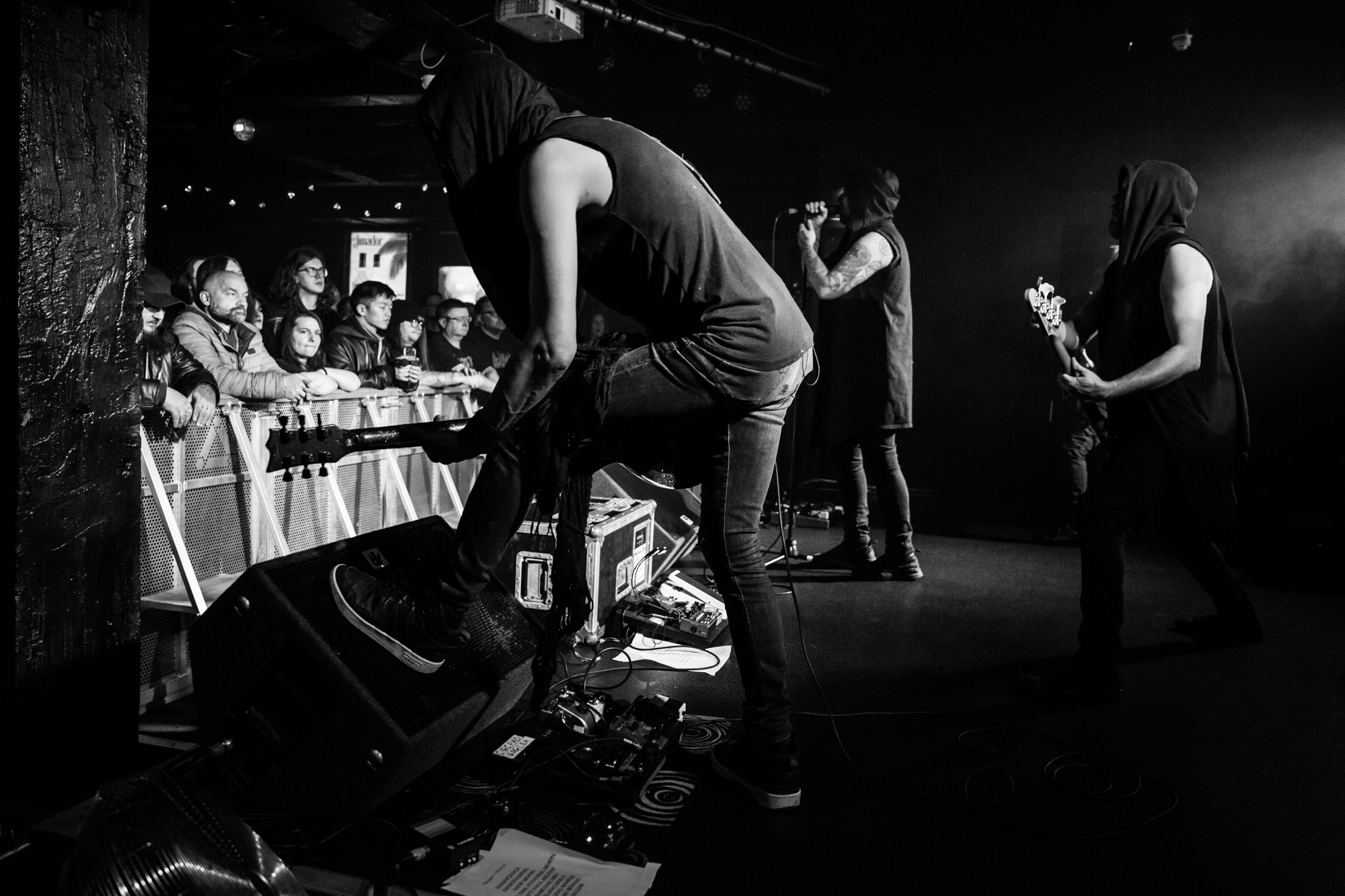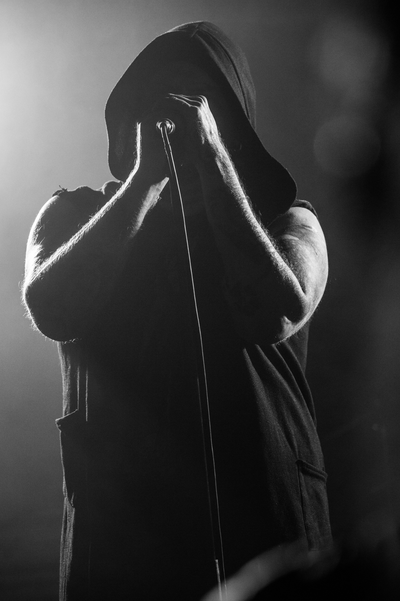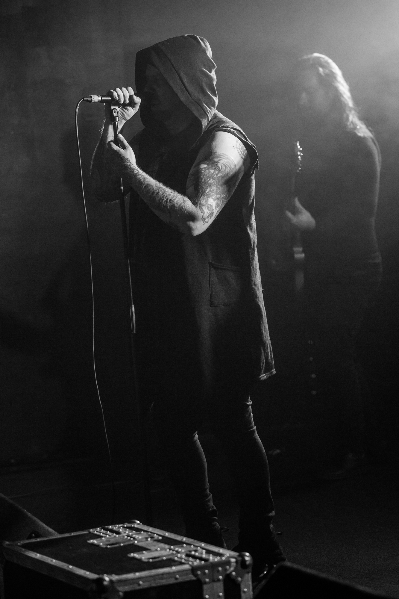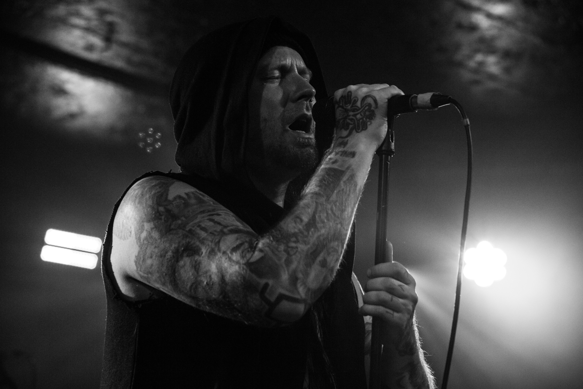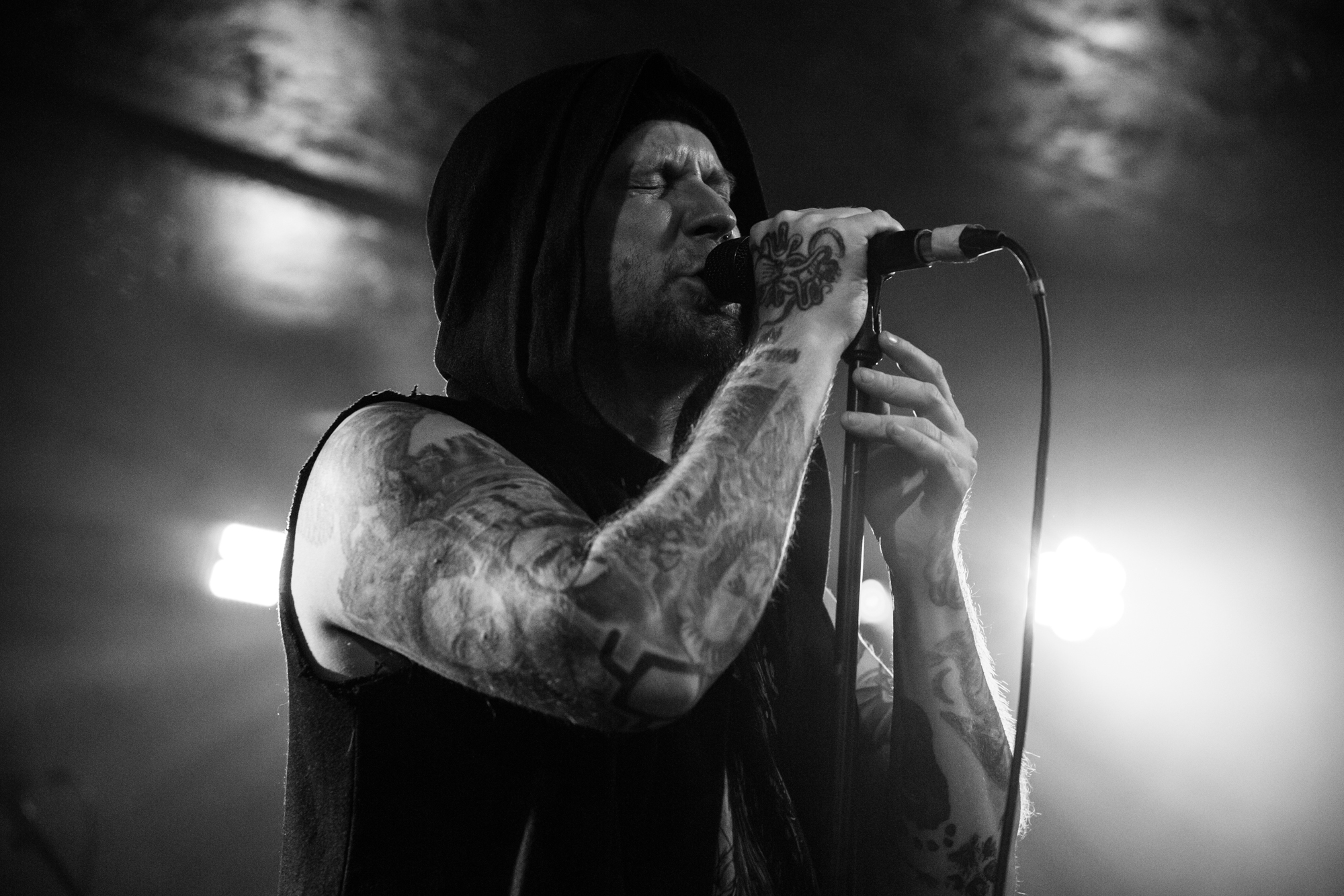 Finland’s SWALLOW THE SUN have challenging work set out for them to eclipse SATURNUS. With two members cloaked in hoods, they kickstart their show with the single Innocence Long Forgotten, from last year’s album Shining. The song transforms the Cathouse into a cathedral of gloom with weeping riffs paired with modern, flickering guitar sounds and a catchy, goth chorus. The sound is slightly off, but the sound engineer promptly corrects it, and the result is lush. The next song, the twenty-year-old Descending Winters, is darker, heavier and punchier – just what most metalheads desire. Vocalist Mikko Kotamäki exclusively utilises his death metal growls sharply, piercing through the venue like a well-shot arrow.