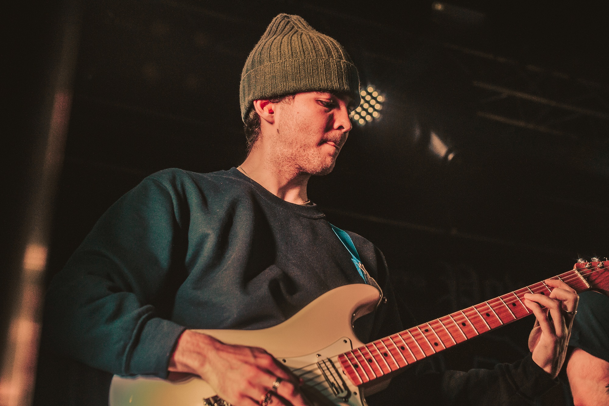 HIGH VIS have made a mammoth impact on the UK’s heavy music scene, despite not making heavy music. From day one, the band have played with a lot of hardcore acts and mixed lineup shows; and their live energy is very much at home at tonight’s show. While the two-stepping and crowd kills have stopped for their set, the crowd flood to the front of the stage, pointing their fingers back to vocalist Graham Sayle, singing along to every word. The band’s second LP Blending came out on Dais Records in September, and revived a Madchester (despite being Liverpool-based), slacker approach to Britpop post-punk. Sale yells into the mic, gripping tightly as he delivers his cutting lyrics of Talk For Hours. This is a band who have mastered a real vision and fusion of a wide spectrum of influences, and have really paved their own path in the UK scene. There are few comparable bands doing it like HIGH VIS at the moment, making them one of the most exciting bands on the circuit right now, earning their place on any genre of show.