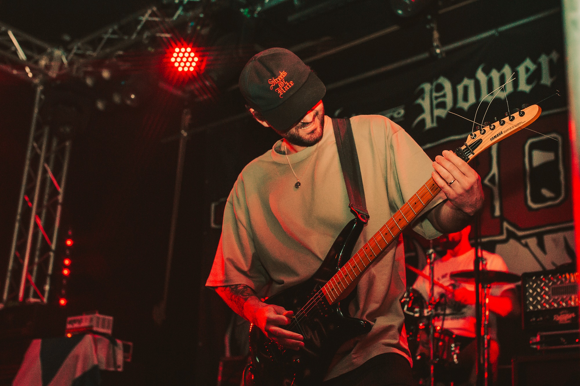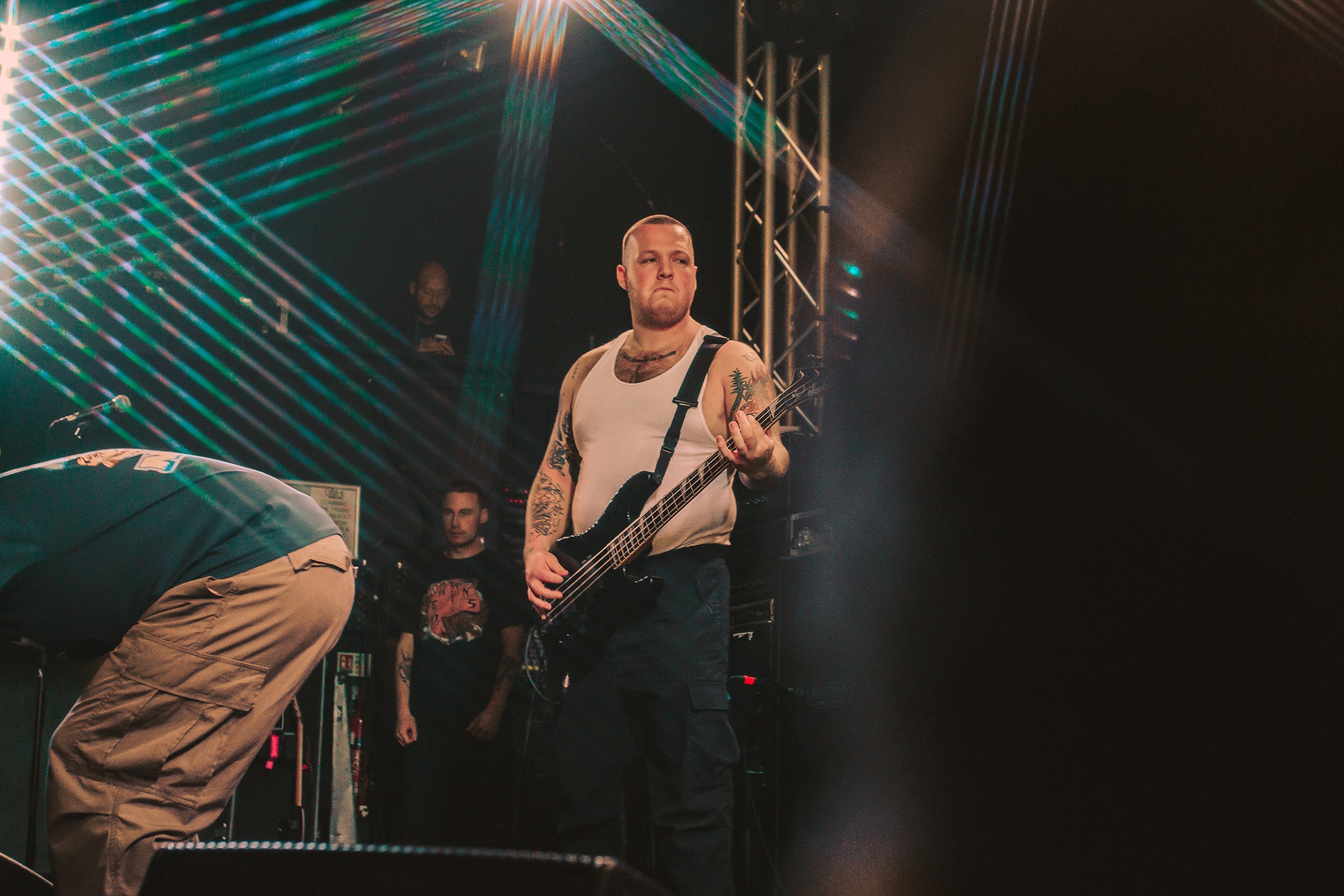 First up is Glaswegian brutes DESPIZE, who play a short and sweet set of pummelling hardcore delivered with rage and confidence. Vocalist Andrew Wilson looks the crowd in their eyes as he stomps about he stage with purpose, delivering his heavy lows, kicking out between breaths as though each line of the song deserves a new lease of life. The set gets the crowd moving early on, with a few mic grabs from those at the front. It’s no surprise that the DESPIZE are warmly welcomed when looking at the bands joining them on Northern Unrest, who are facilitating some of the most exciting releases from Northern and Scottish UKHC.