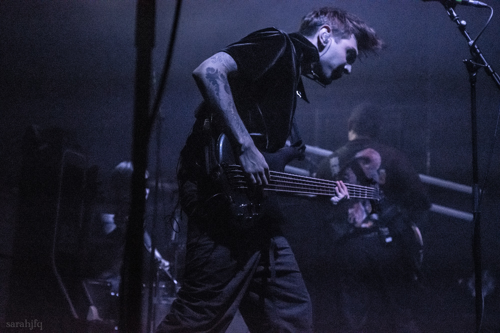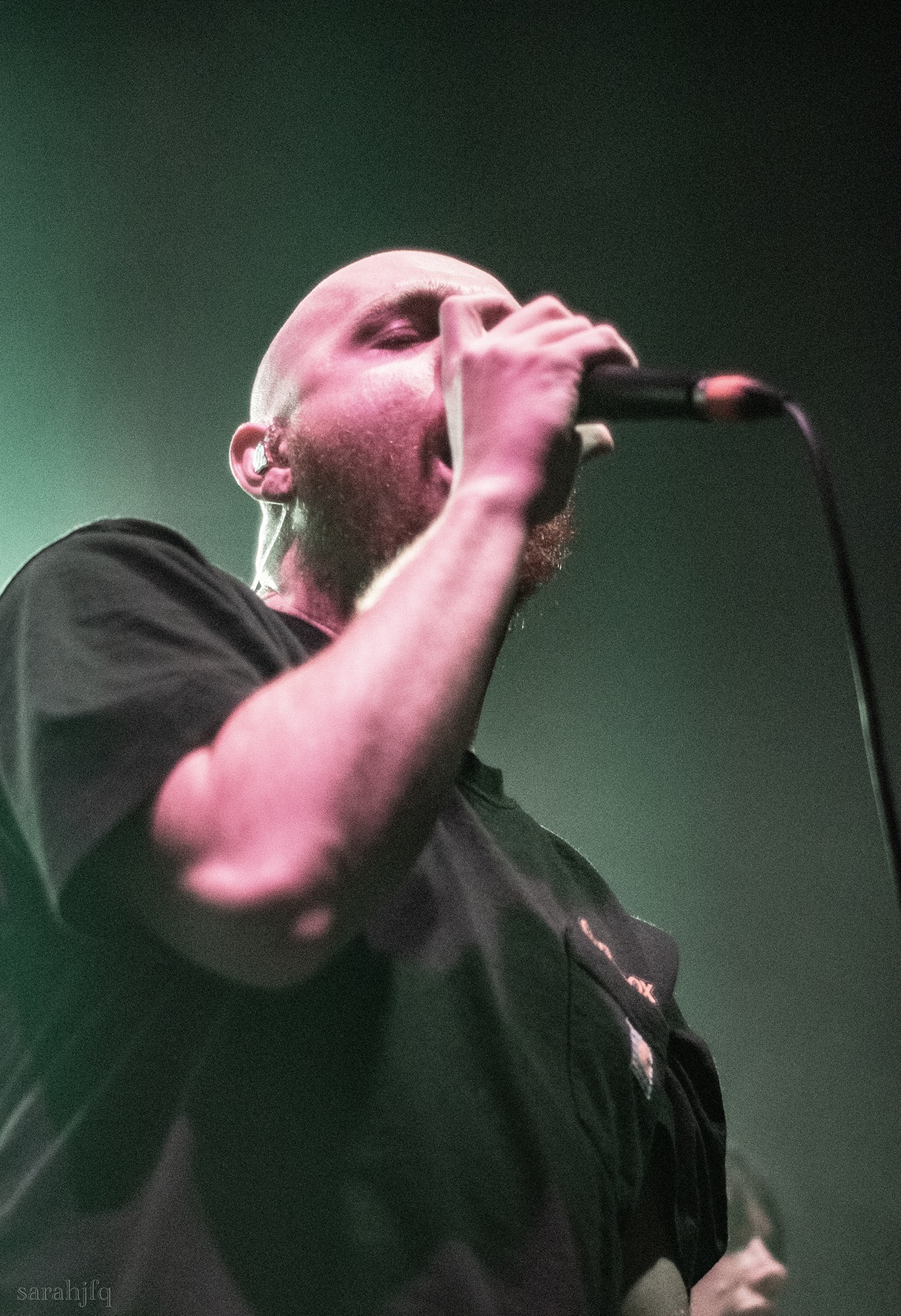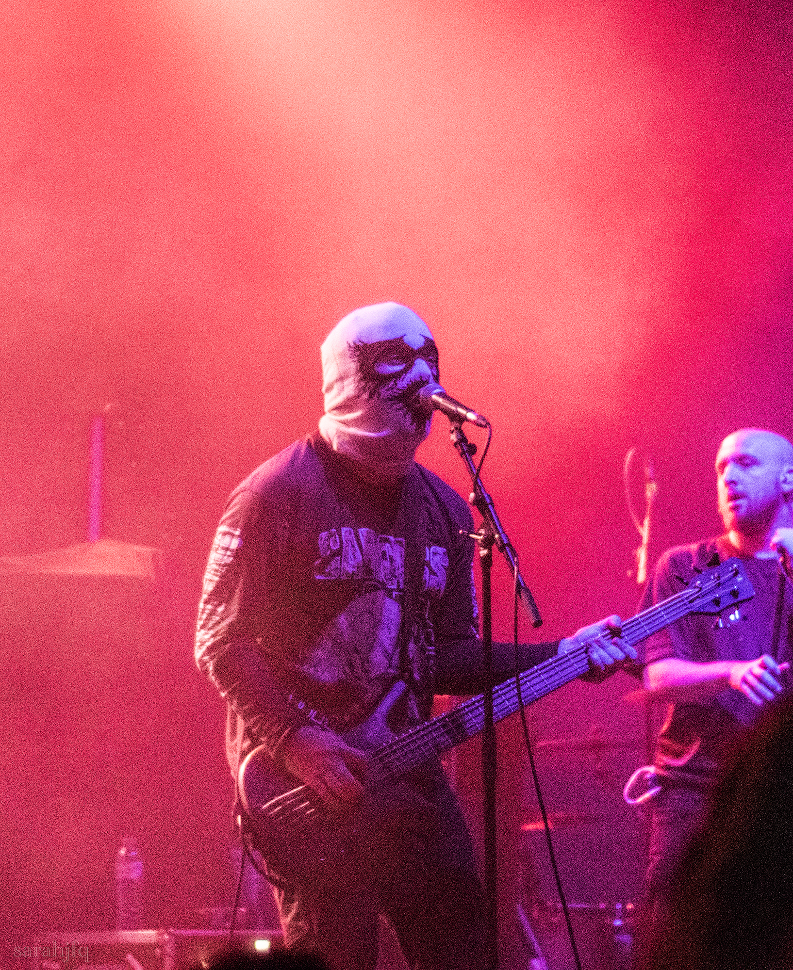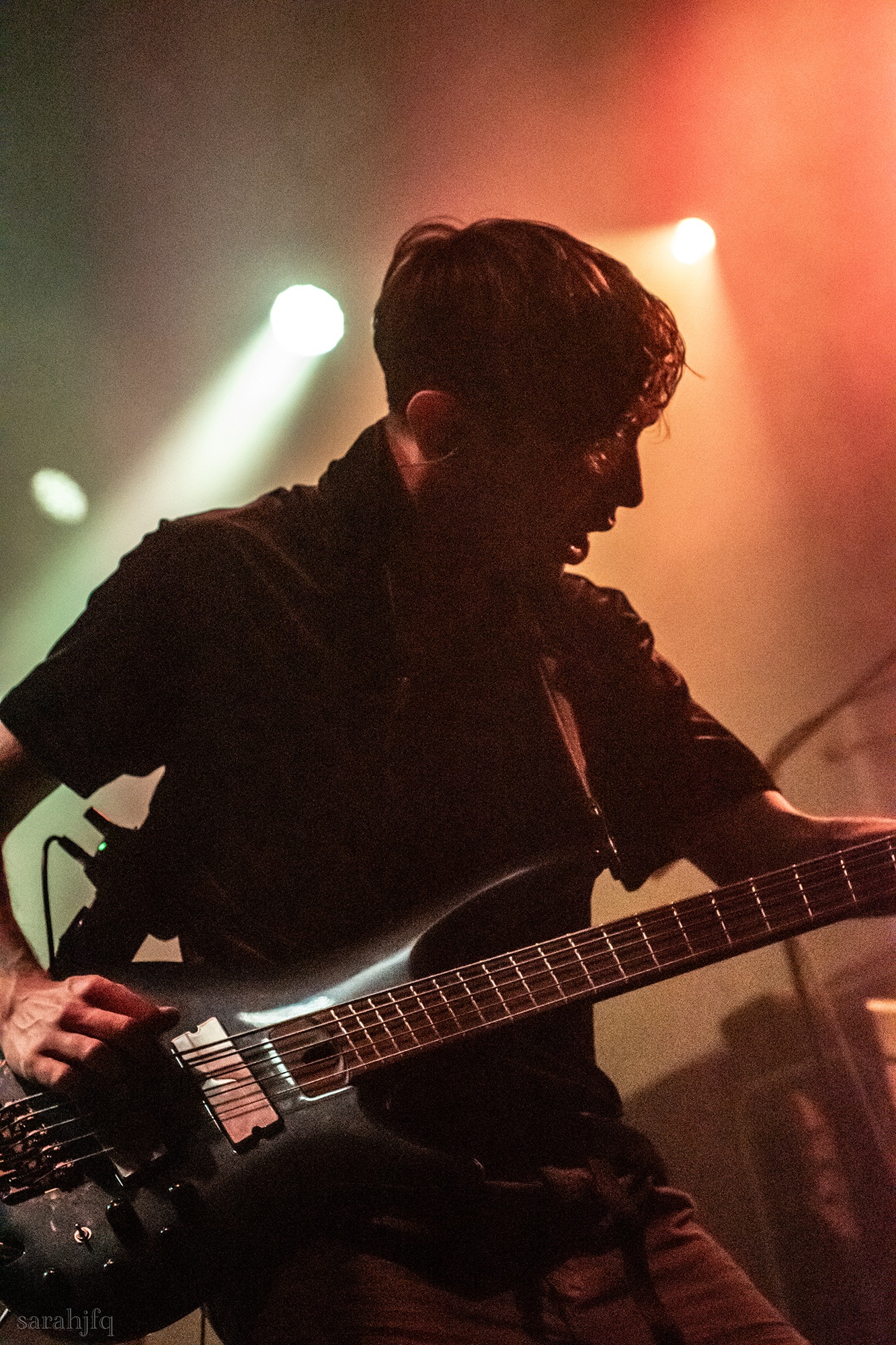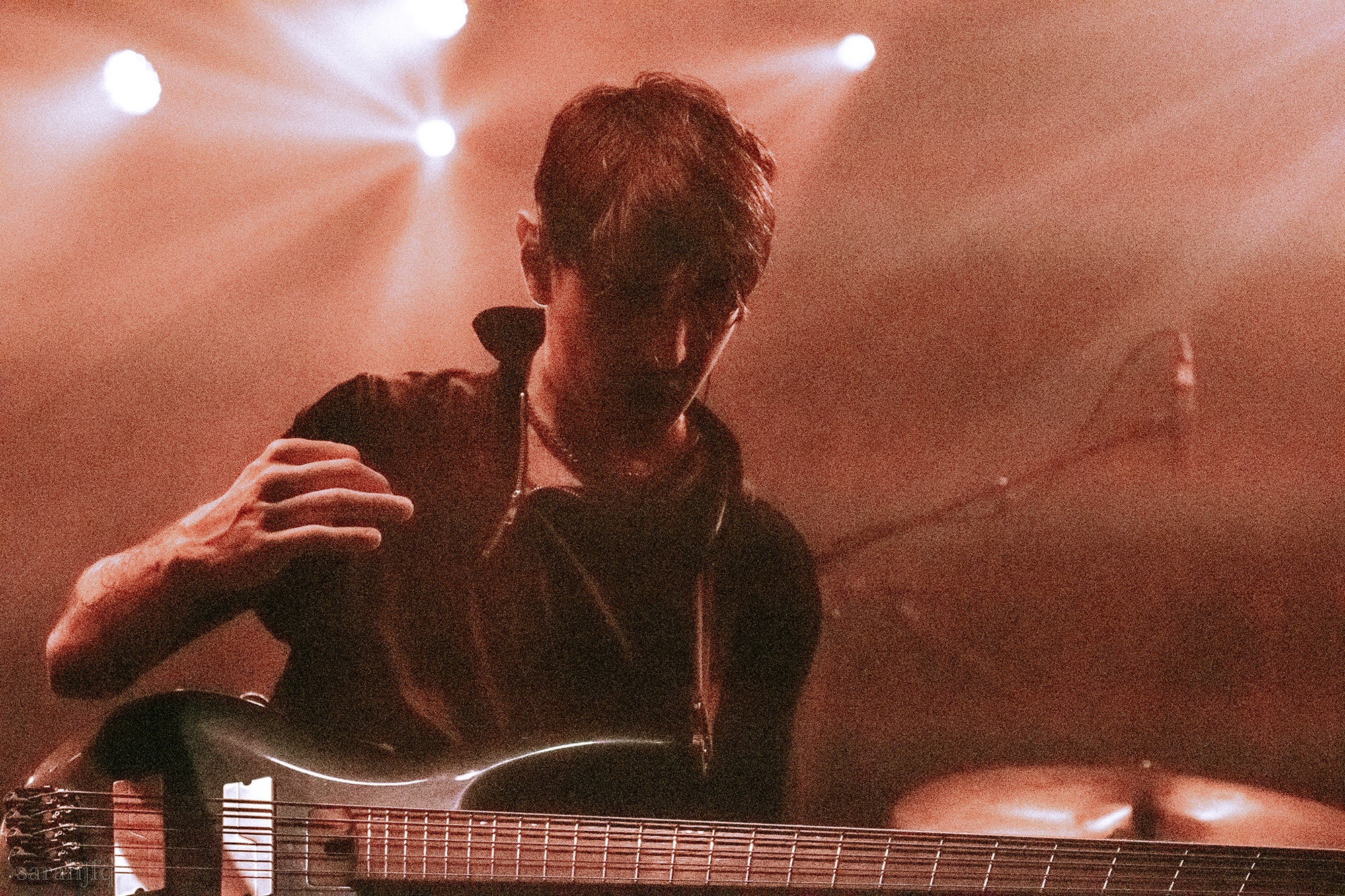 Funnily, the lights shut off once again, with a singular handle of light burning red, Tompkins approaches it to grab it, dragging it across the stage like some sort of lightsaber. All three guitarist re-enter for a monster of a breakdown, suddenly everything feels right, like they could be this good by embracing that heaviness to its fullest and taking advantage of the fact that these are the moments that make you take second look, the ones that get you in that headlock and terrifying you into not looking away again. Tompkins departs the stage, again, and Acle Kahney, James Monteith and Amos Williams step upon the riser for a perfectly executed in sync riff leaving anybody in their presence in complete jaw dropping awe.