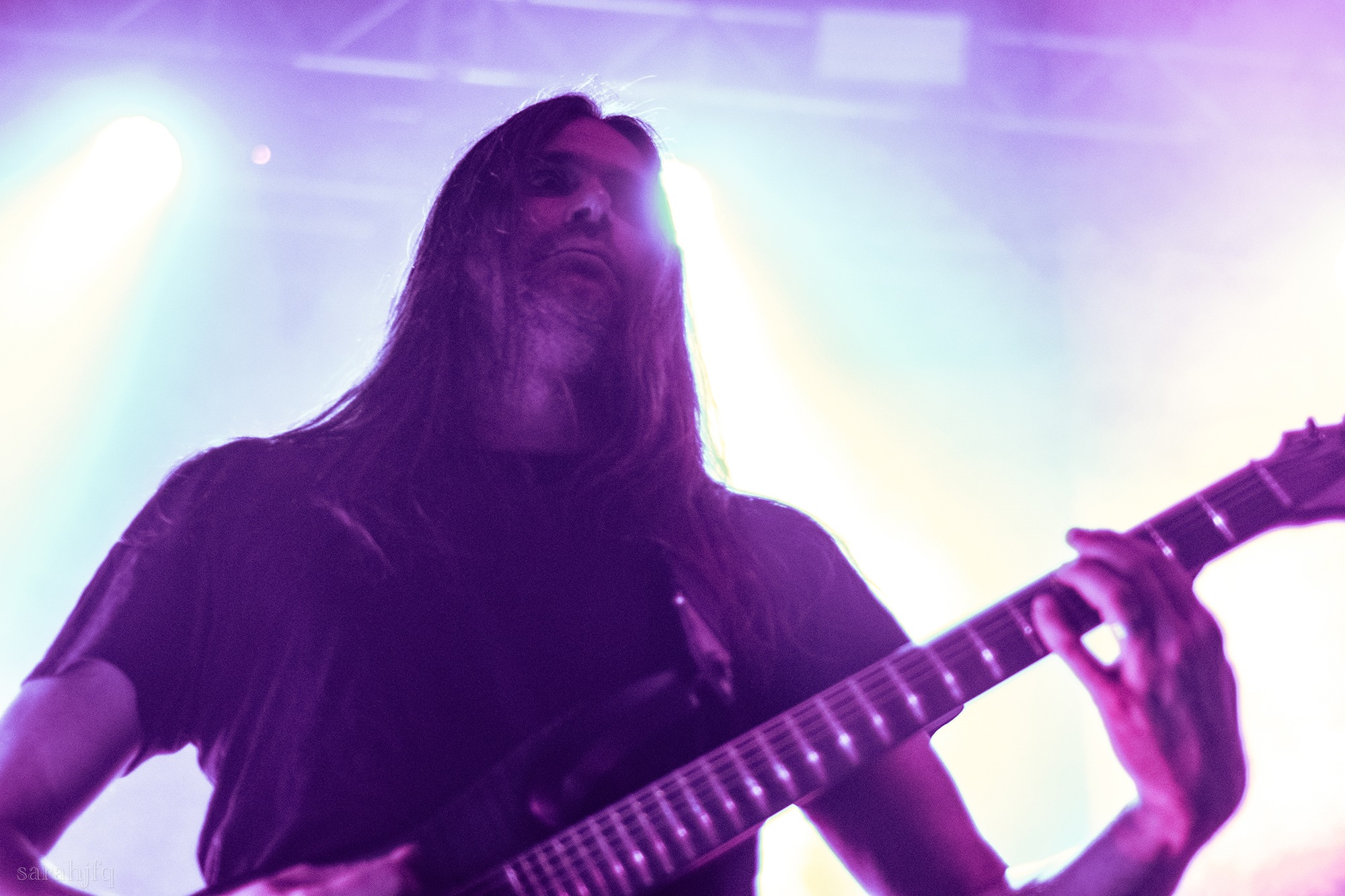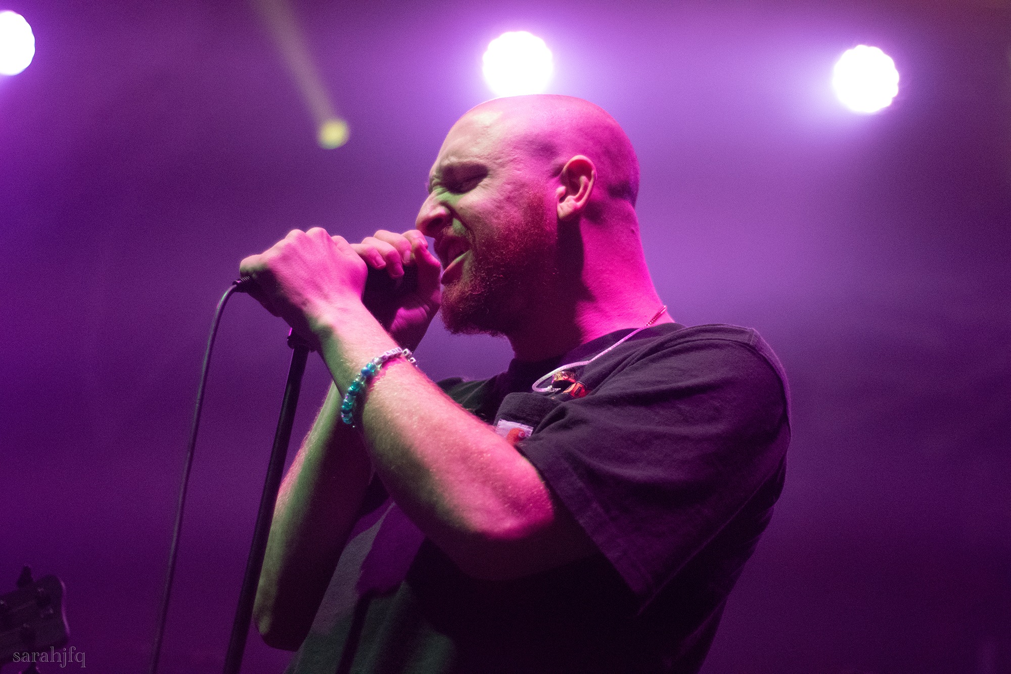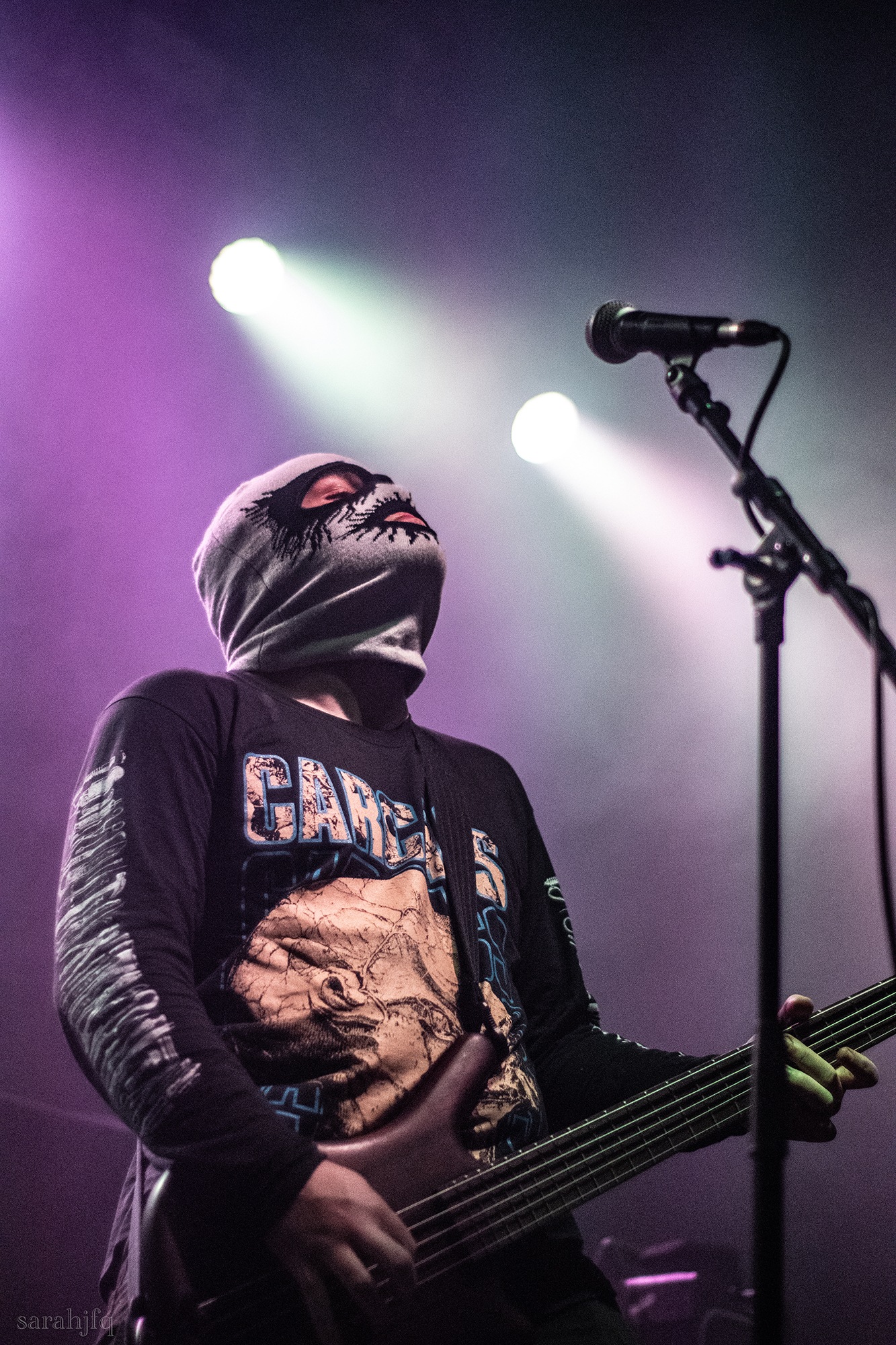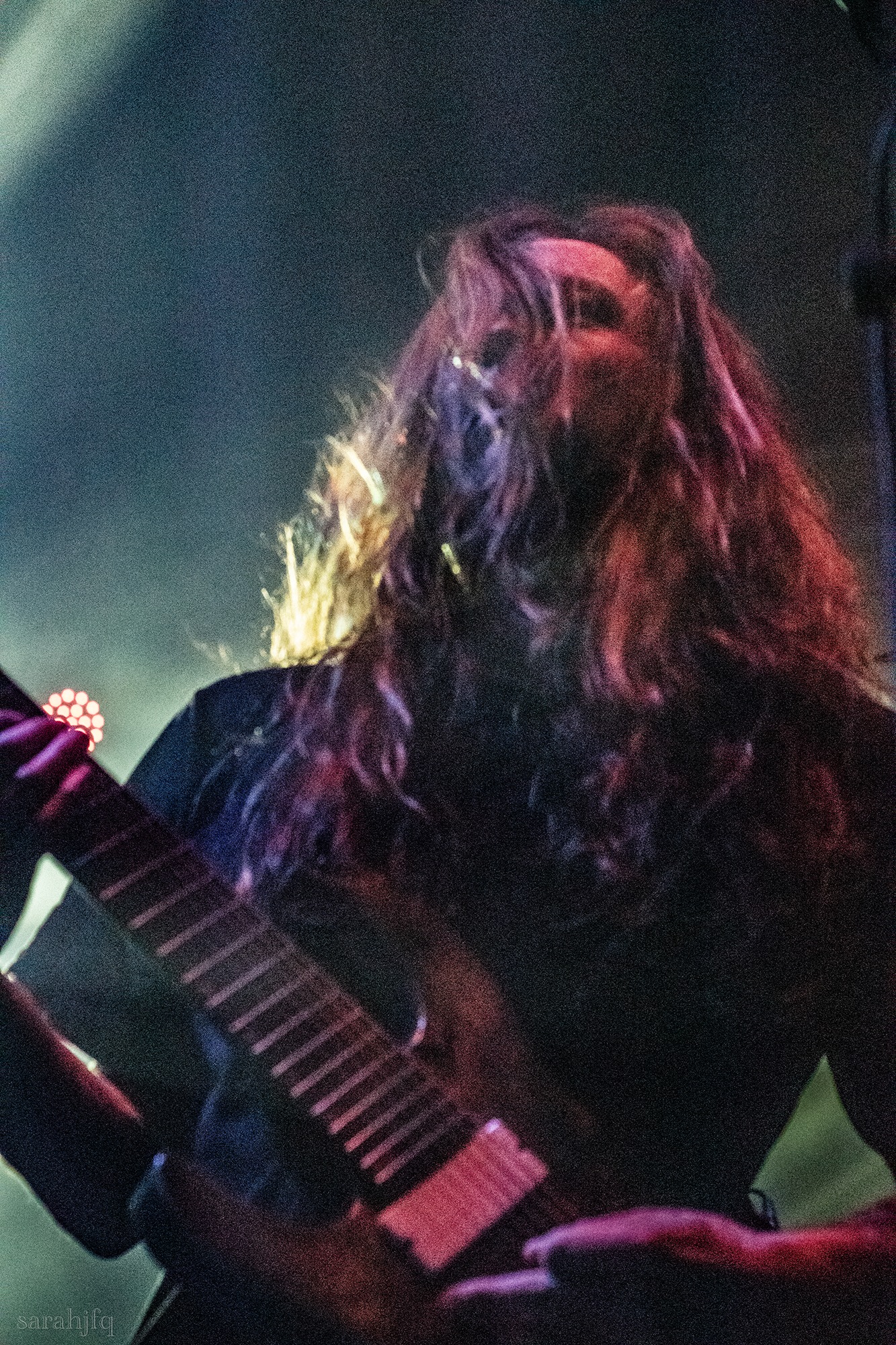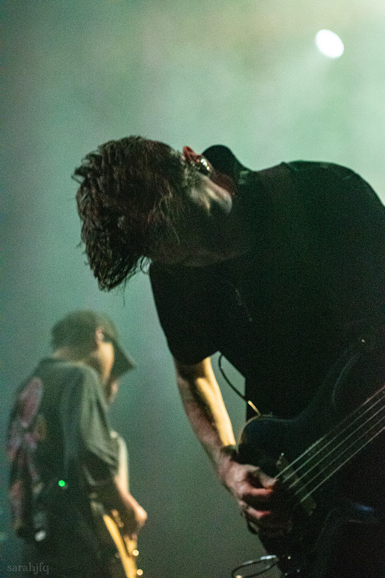 Funnily, the lights shut off once again, with a singular handle of light burning red, Tompkins approaches it to grab it, dragging it across the stage like some sort of lightsaber. All three guitarist re-enter for a monster of a breakdown, suddenly everything feels right, like they could be this good by embracing that heaviness to its fullest and taking advantage of the fact that these are the moments that make you take second look, the ones that get you in that headlock and terrifying you into not looking away again. Tompkins departs the stage, again, and Acle Kahney, James Monteith and Amos Williams step upon the riser for a perfectly executed in sync riff leaving anybody in their presence in complete jaw dropping awe.