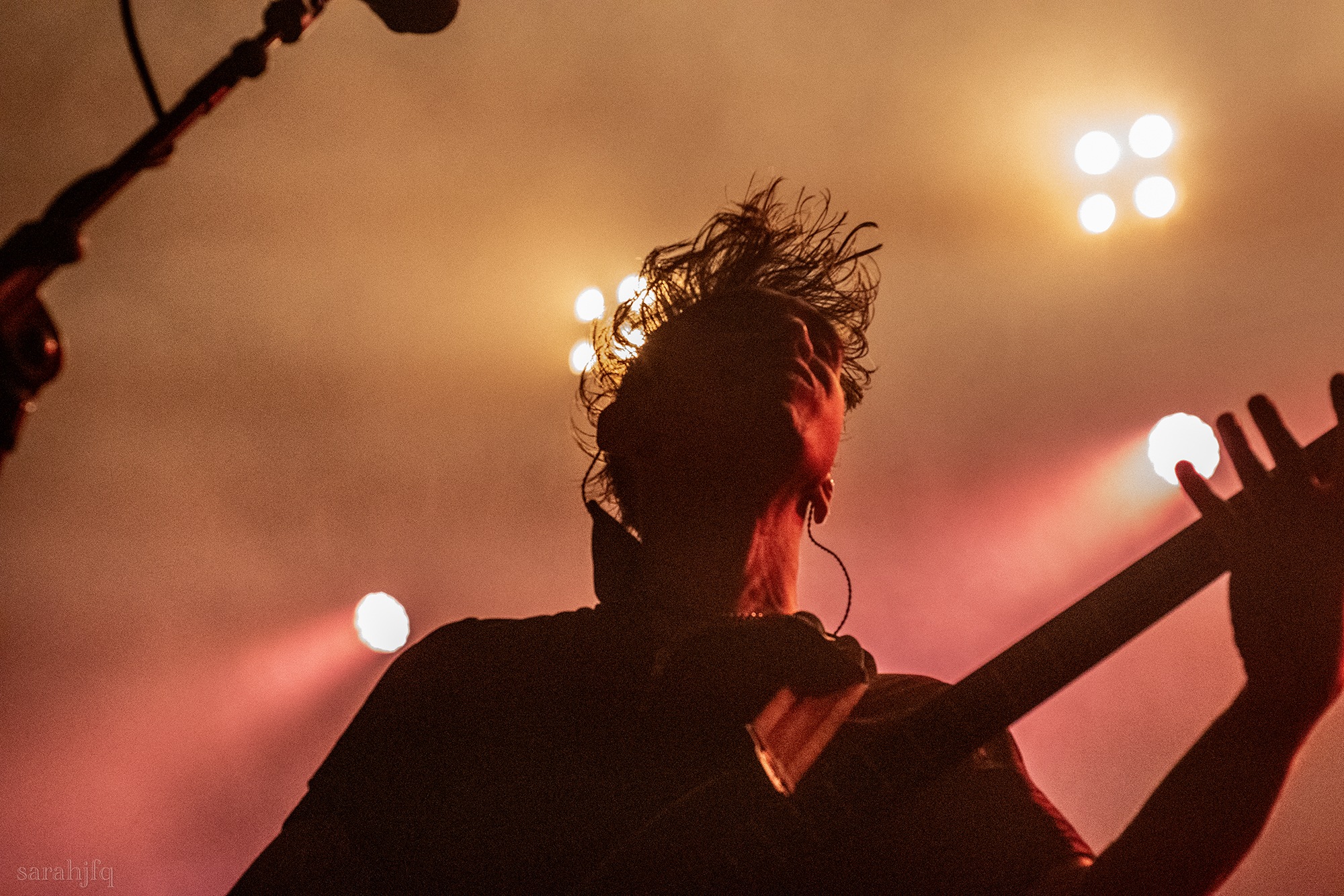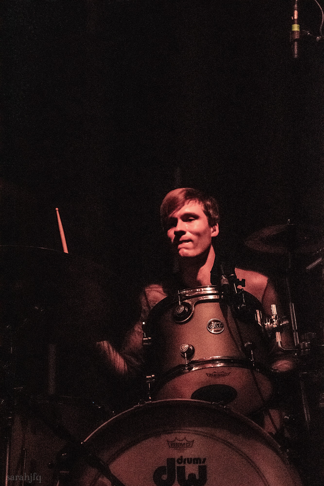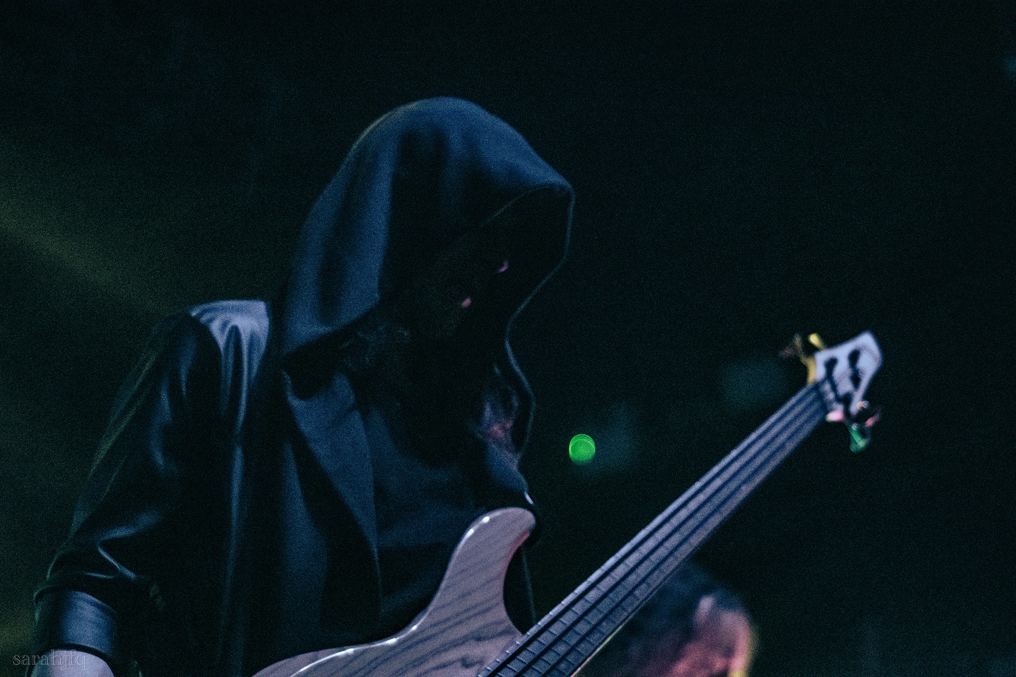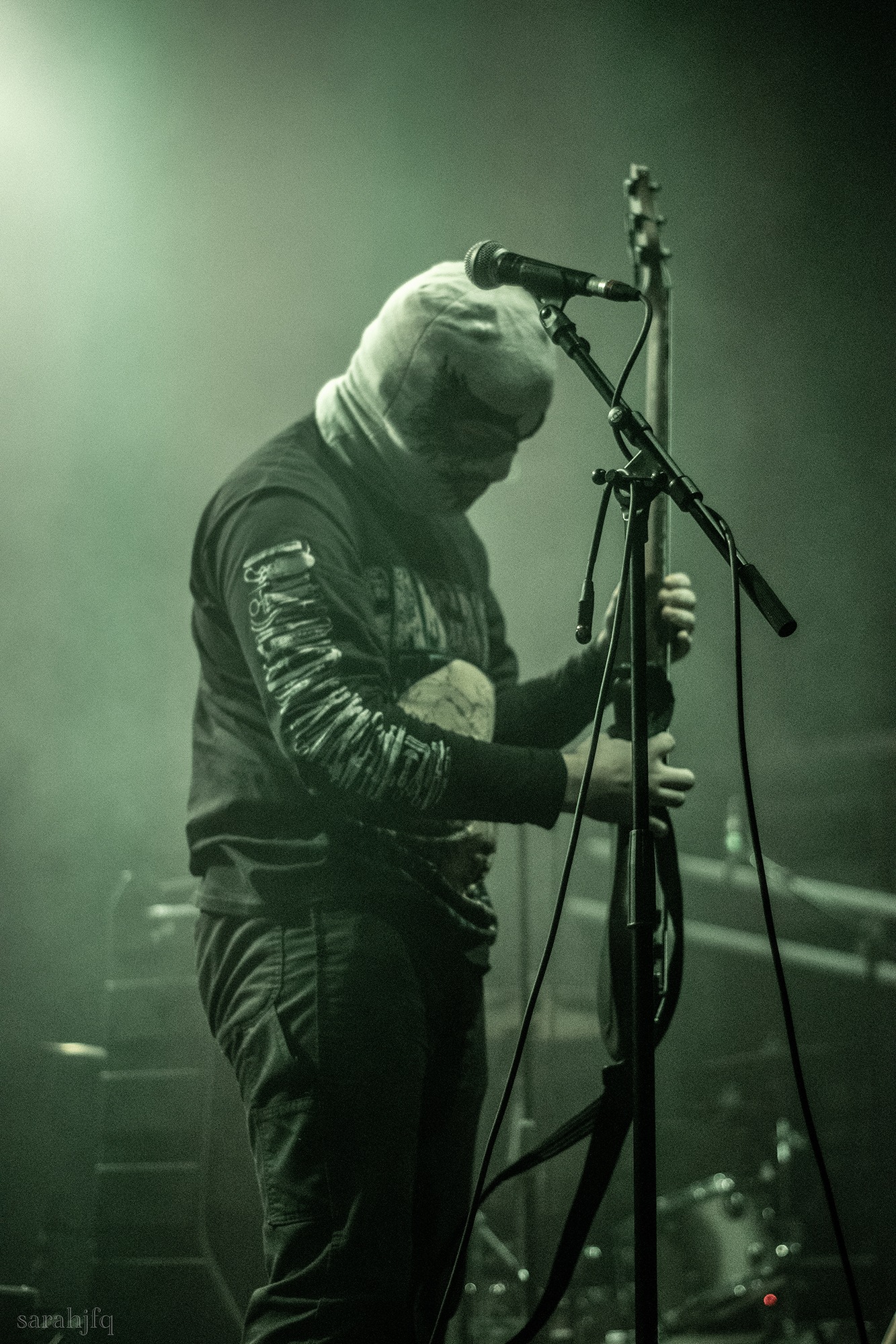 Funnily, the lights shut off once again, with a singular handle of light burning red, Tompkins approaches it to grab it, dragging it across the stage like some sort of lightsaber. All three guitarist re-enter for a monster of a breakdown, suddenly everything feels right, like they could be this good by embracing that heaviness to its fullest and taking advantage of the fact that these are the moments that make you take second look, the ones that get you in that headlock and terrifying you into not looking away again. Tompkins departs the stage, again, and Acle Kahney, James Monteith and Amos Williams step upon the riser for a perfectly executed in sync riff leaving anybody in their presence in complete jaw dropping awe.