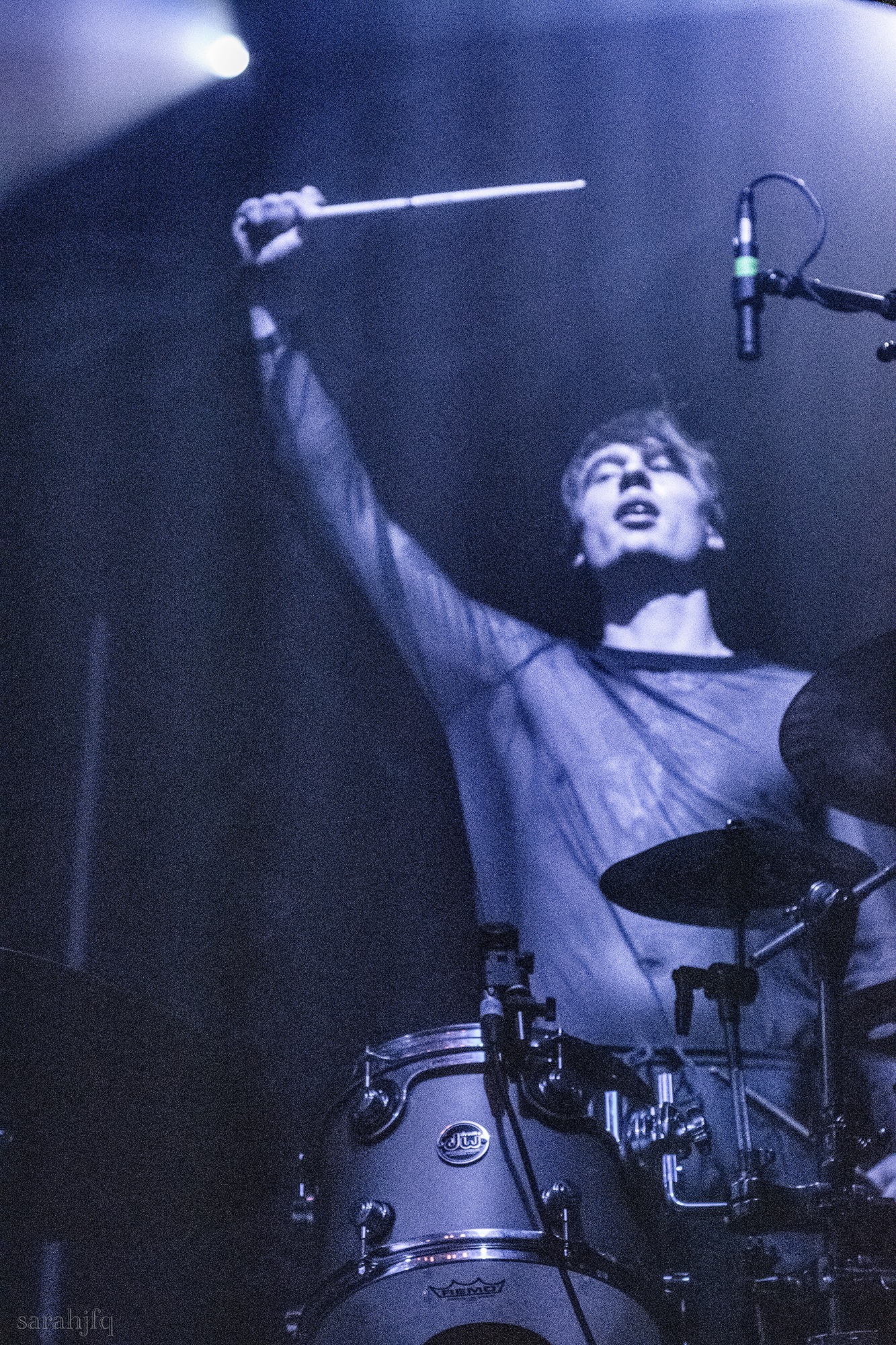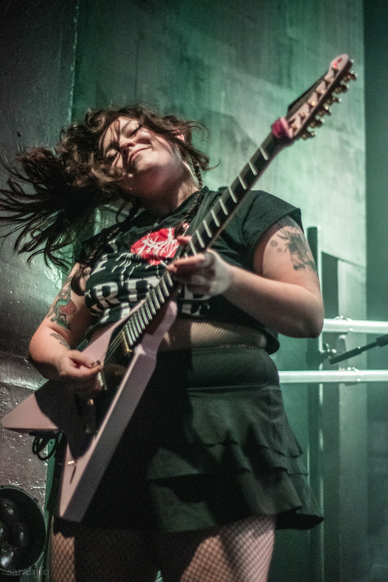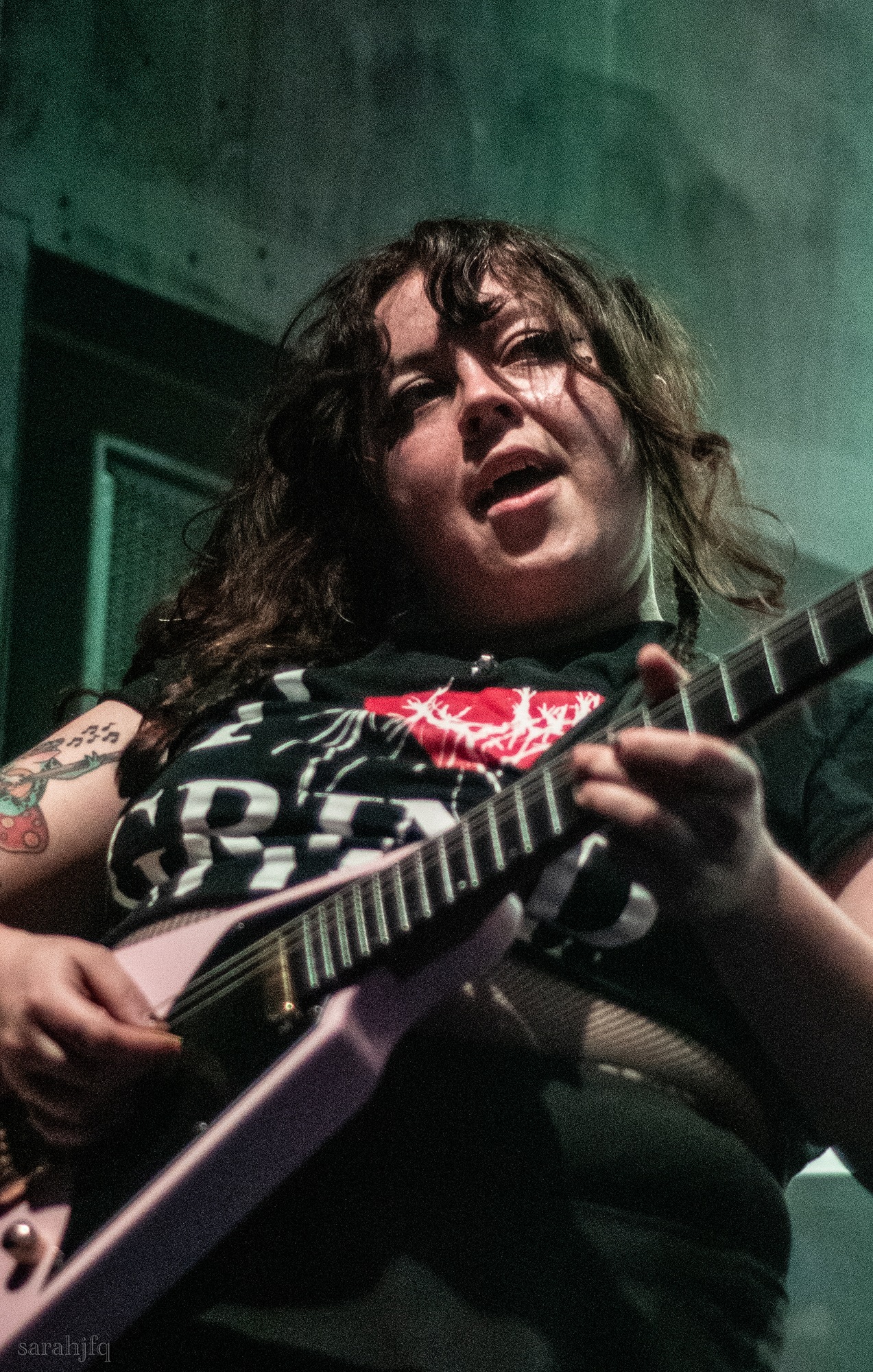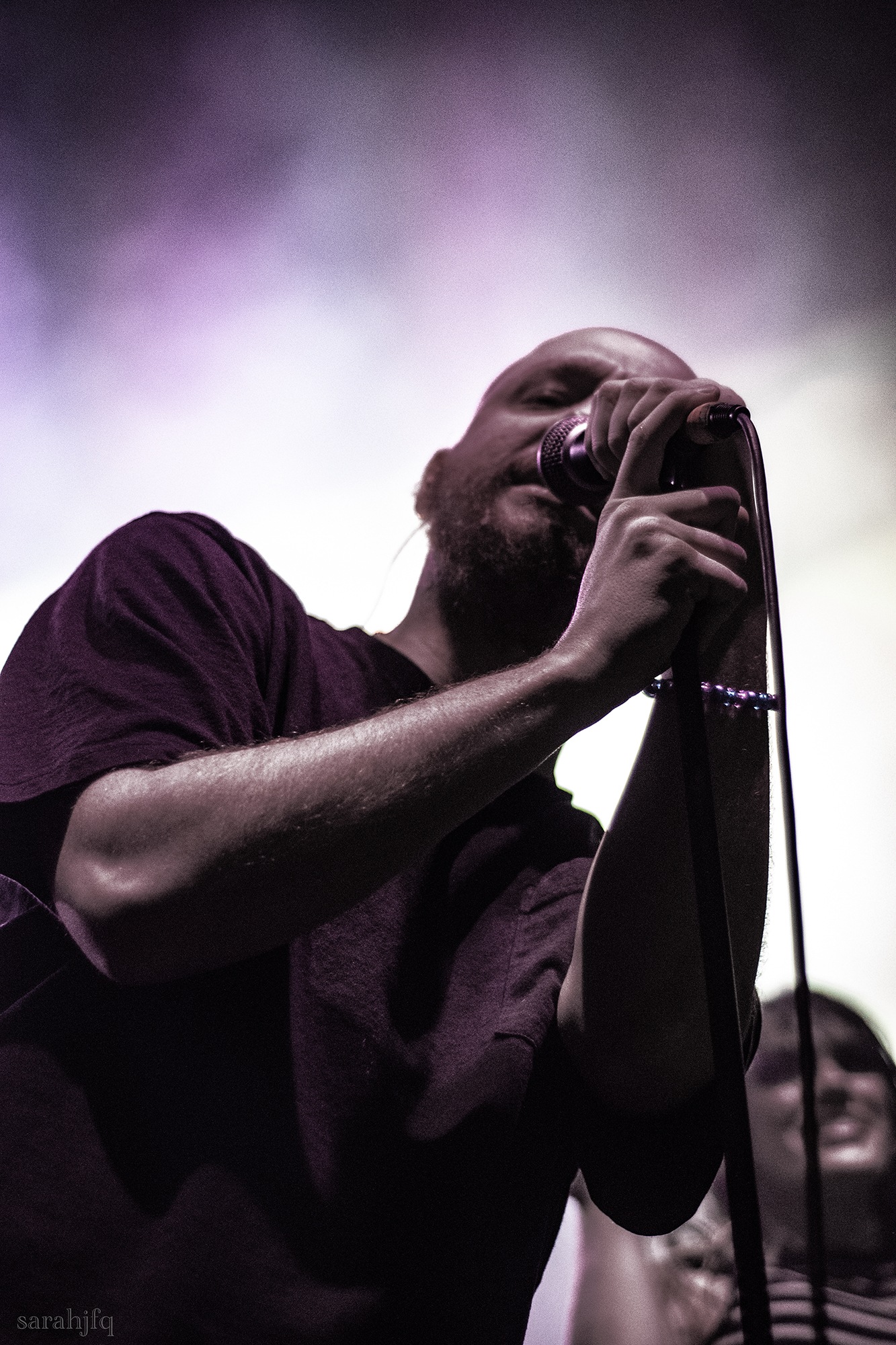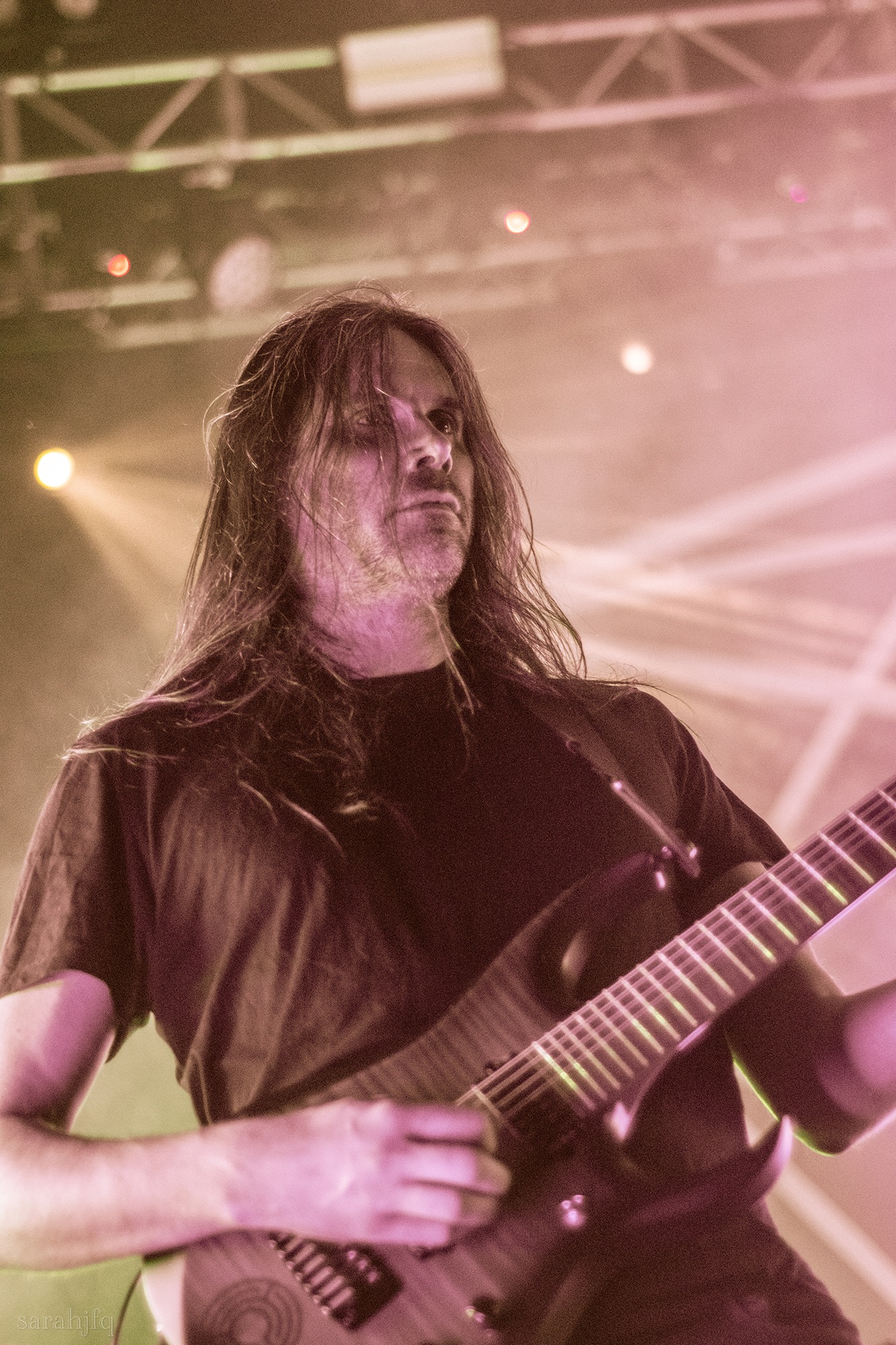 Funnily, the lights shut off once again, with a singular handle of light burning red, Tompkins approaches it to grab it, dragging it across the stage like some sort of lightsaber. All three guitarist re-enter for a monster of a breakdown, suddenly everything feels right, like they could be this good by embracing that heaviness to its fullest and taking advantage of the fact that these are the moments that make you take second look, the ones that get you in that headlock and terrifying you into not looking away again. Tompkins departs the stage, again, and Acle Kahney, James Monteith and Amos Williams step upon the riser for a perfectly executed in sync riff leaving anybody in their presence in complete jaw dropping awe.