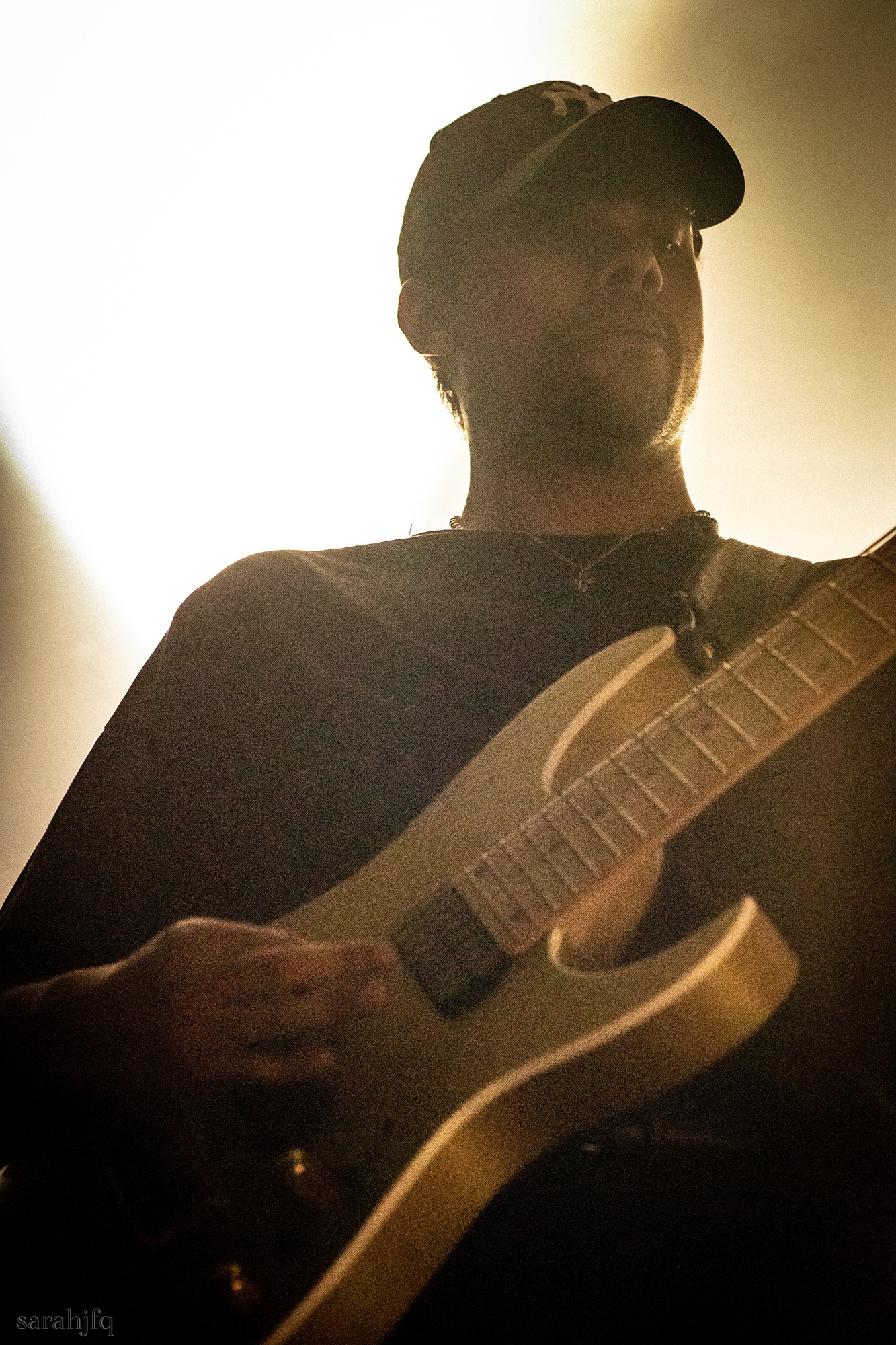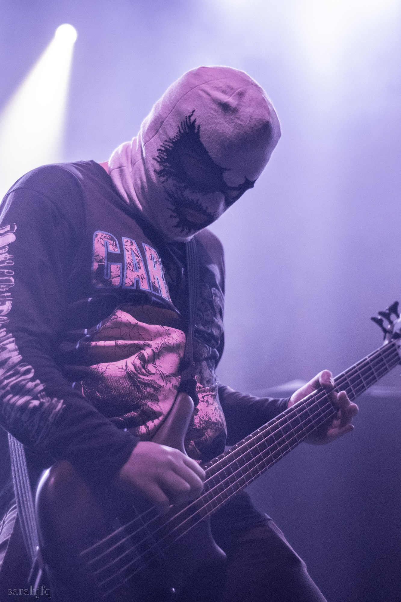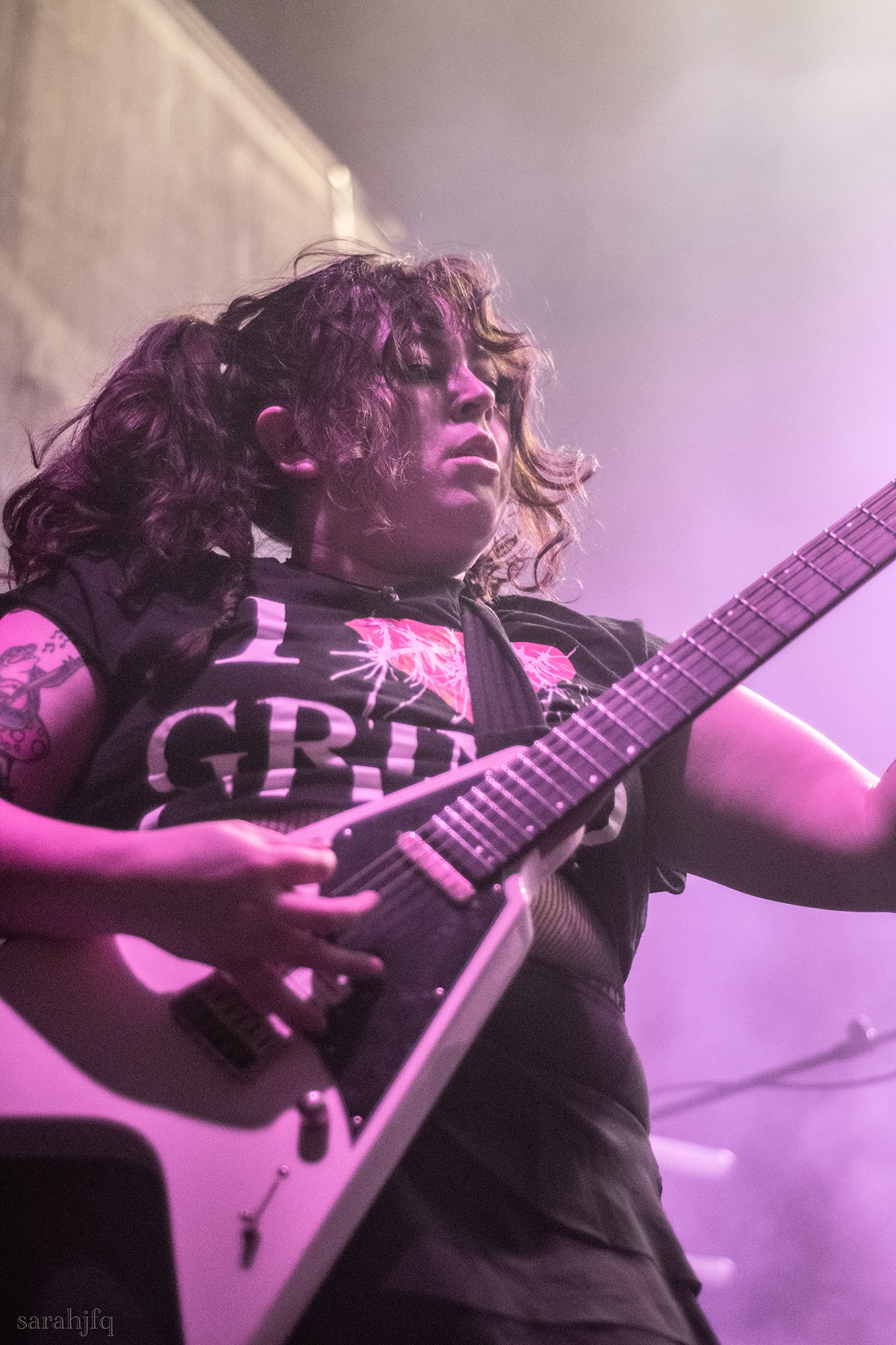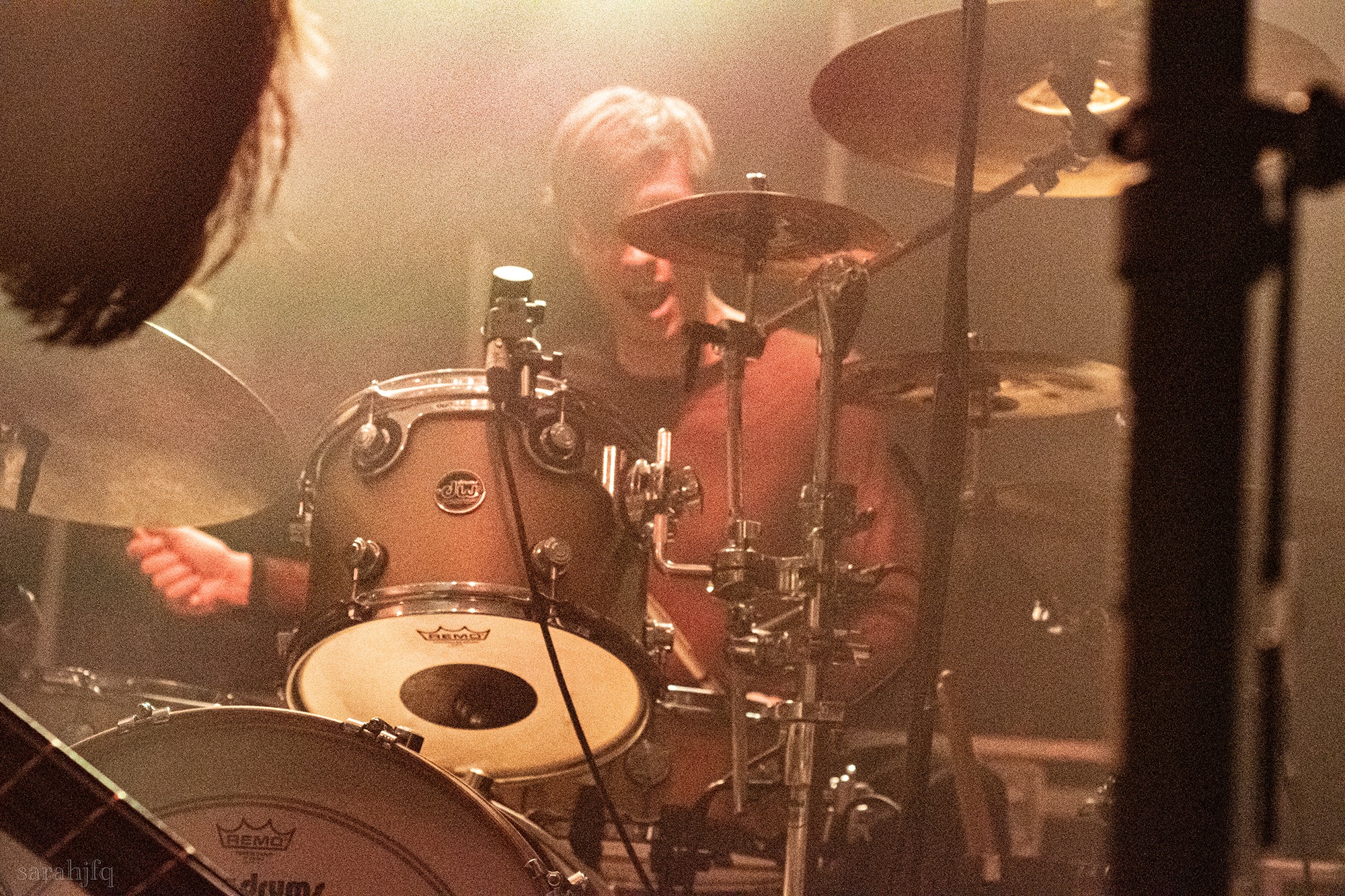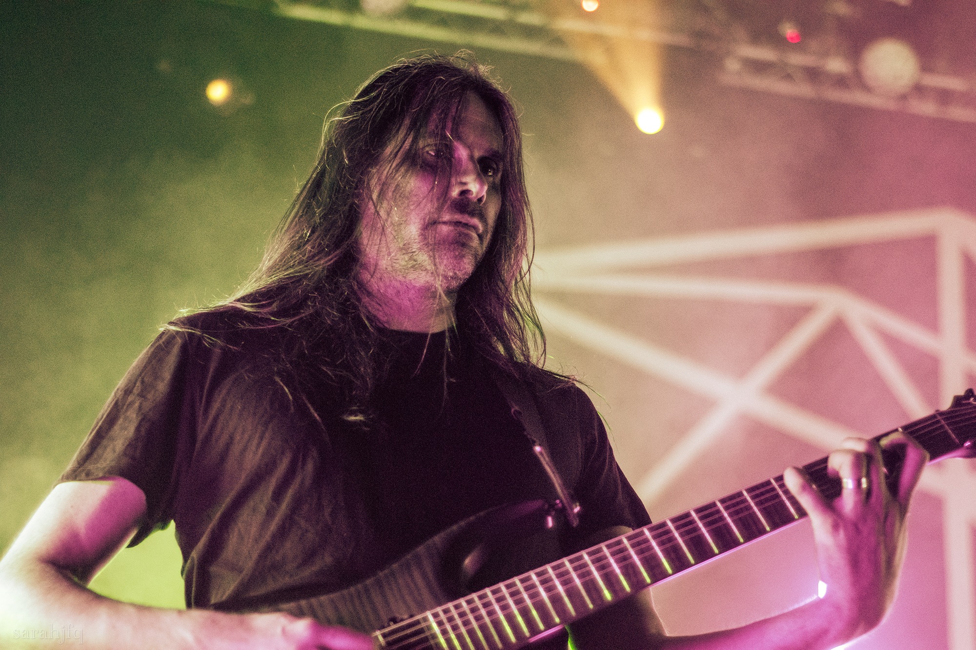 Funnily, the lights shut off once again, with a singular handle of light burning red, Tompkins approaches it to grab it, dragging it across the stage like some sort of lightsaber. All three guitarist re-enter for a monster of a breakdown, suddenly everything feels right, like they could be this good by embracing that heaviness to its fullest and taking advantage of the fact that these are the moments that make you take second look, the ones that get you in that headlock and terrifying you into not looking away again. Tompkins departs the stage, again, and Acle Kahney, James Monteith and Amos Williams step upon the riser for a perfectly executed in sync riff leaving anybody in their presence in complete jaw dropping awe.