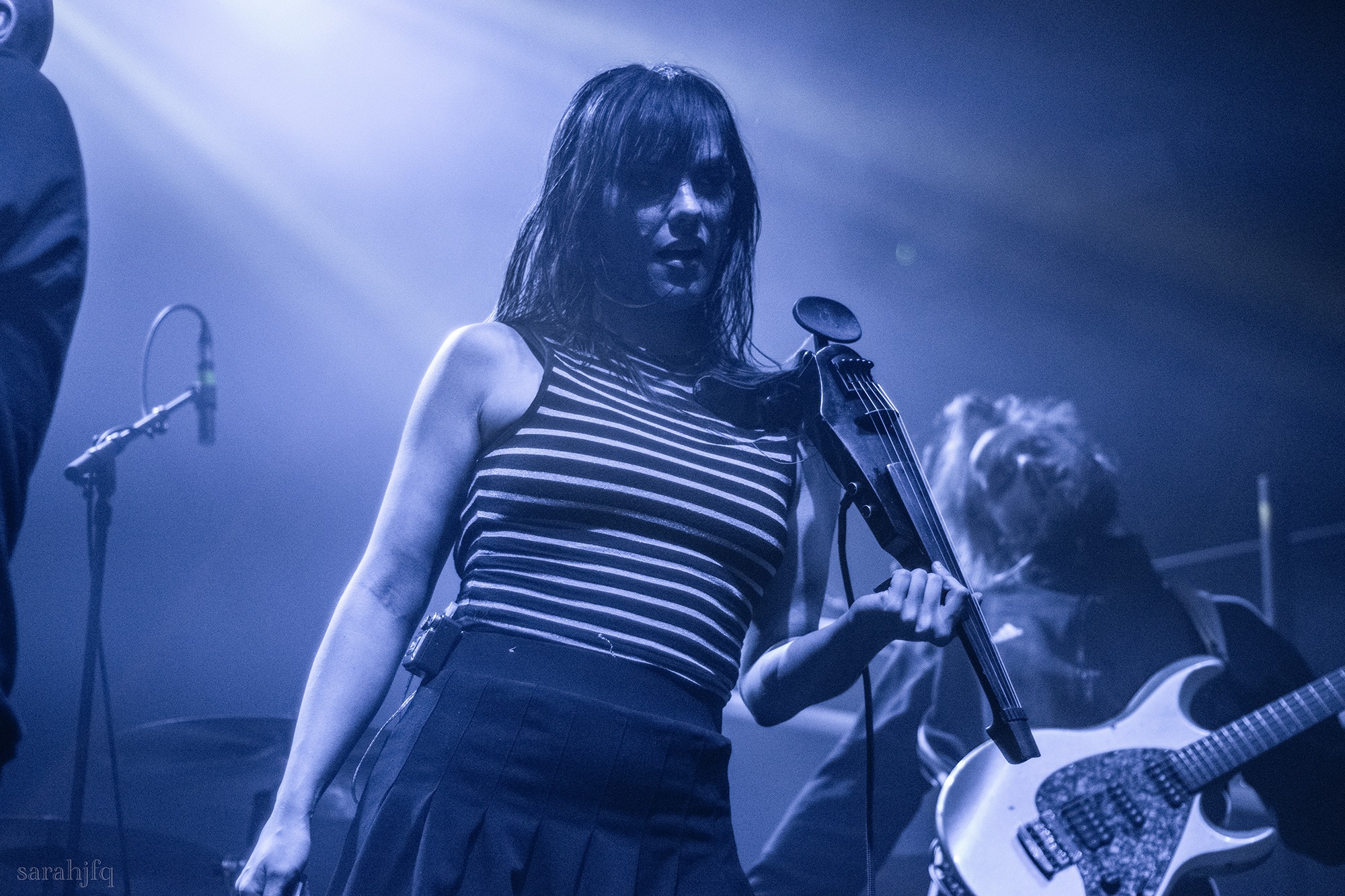 THE CALLOUS DAOBOYS walk on stage to Every Time We Touch [CASCADA], bassist Jackie Buckalew is wearing a ski mask which we’re sure is already dripping in sweat, and all six of them are full of queer glee as they burst into the abrupt Star Baby. “Star Baby did you deep fry a piece of the great barrier reef” welcomes the jerking in and out of caustic noise and pop melody bridges, carried by the wailing violin of Amber Christman. Romantic swaying infects the room as a corrupted Sweet Caroline [NEIL DIAMOND] plays before moving into Violent Astrology and two stepping ensues within the crowd. It’s turn up, perform with brutality, impress and move on to the next for the Atlanta six-piece. Frontman Carson Pace calls out for all the cowboys in the room to get moving as Buckalew rips that ski mask off, and declares everyone a cowboy for the next three minutes.