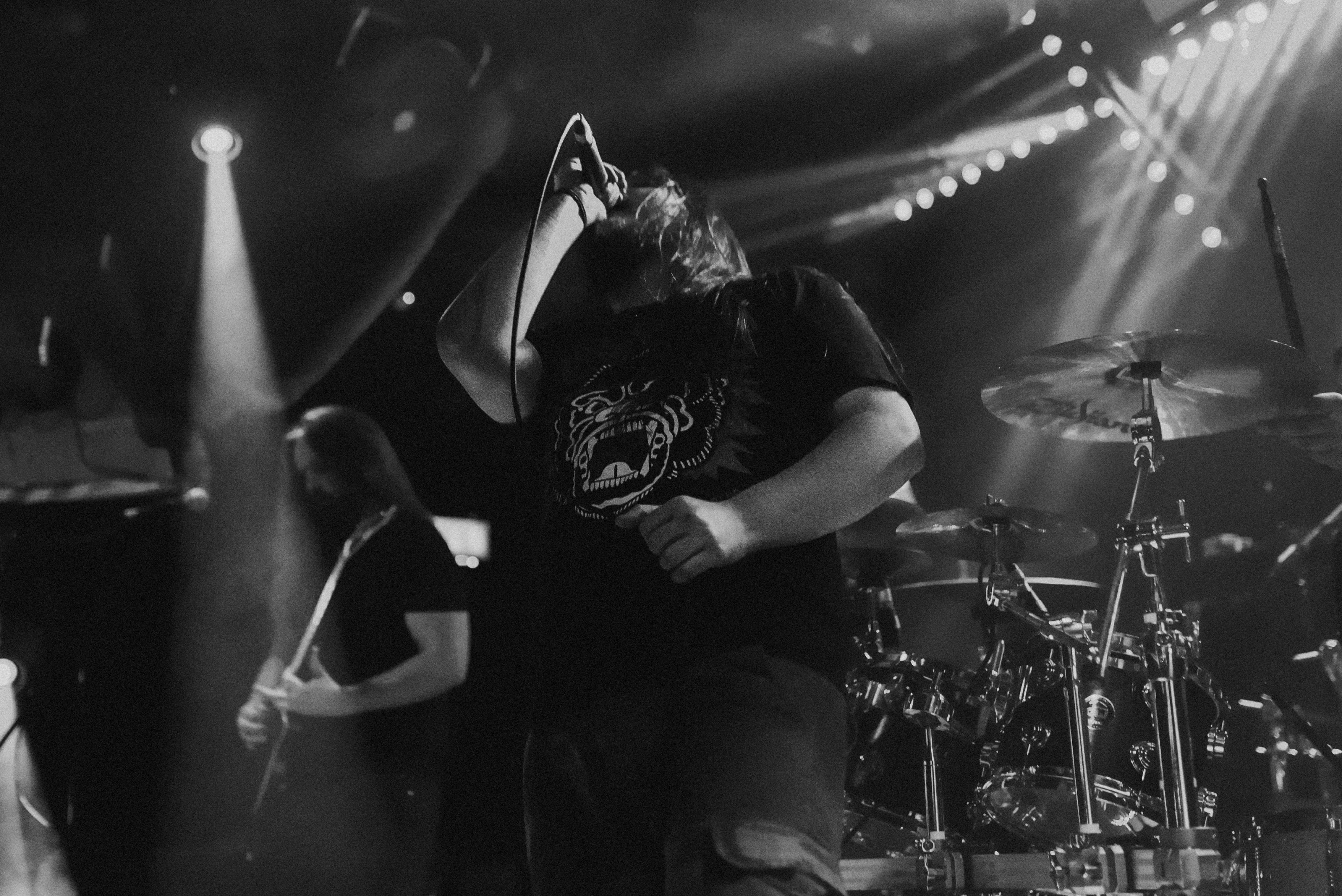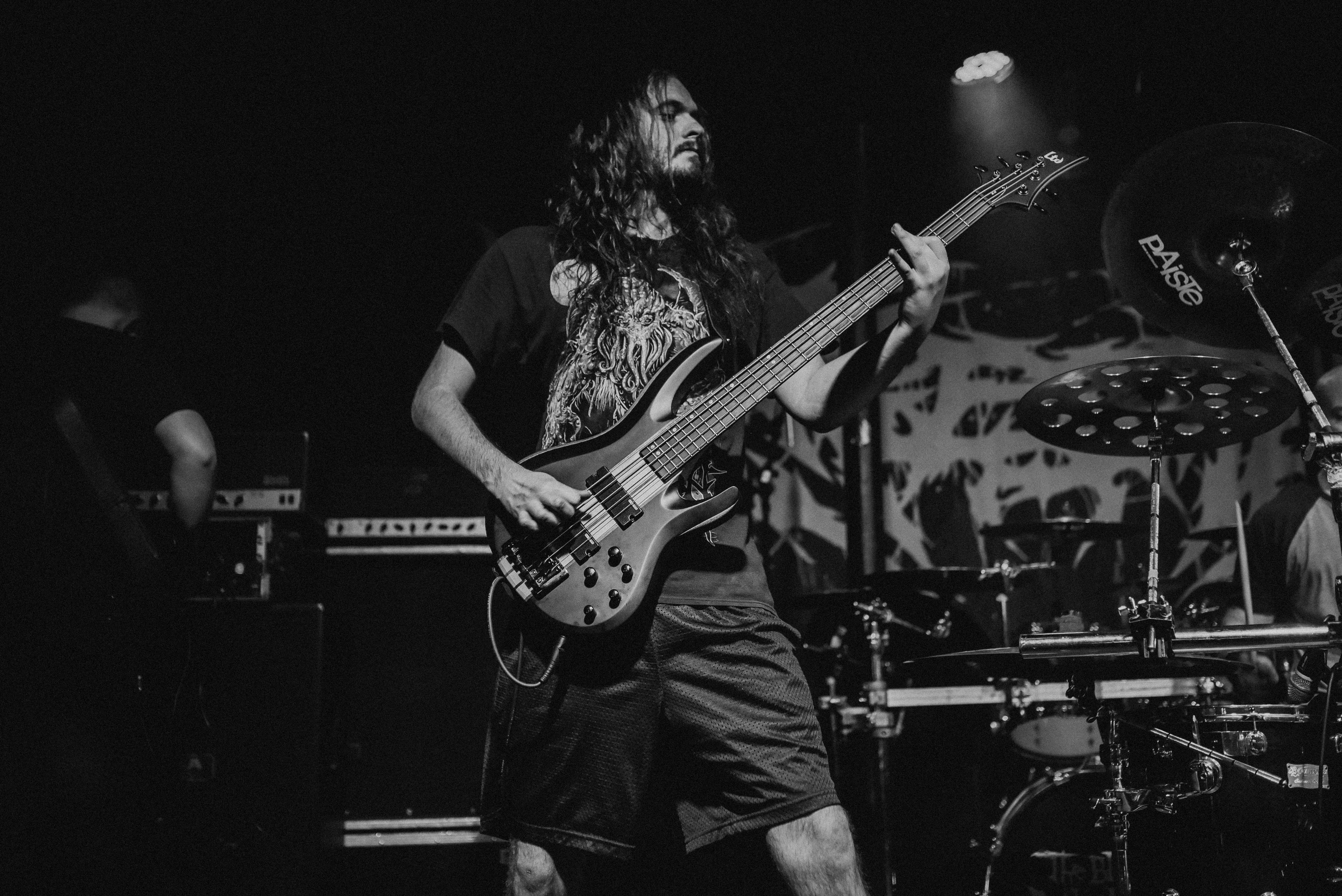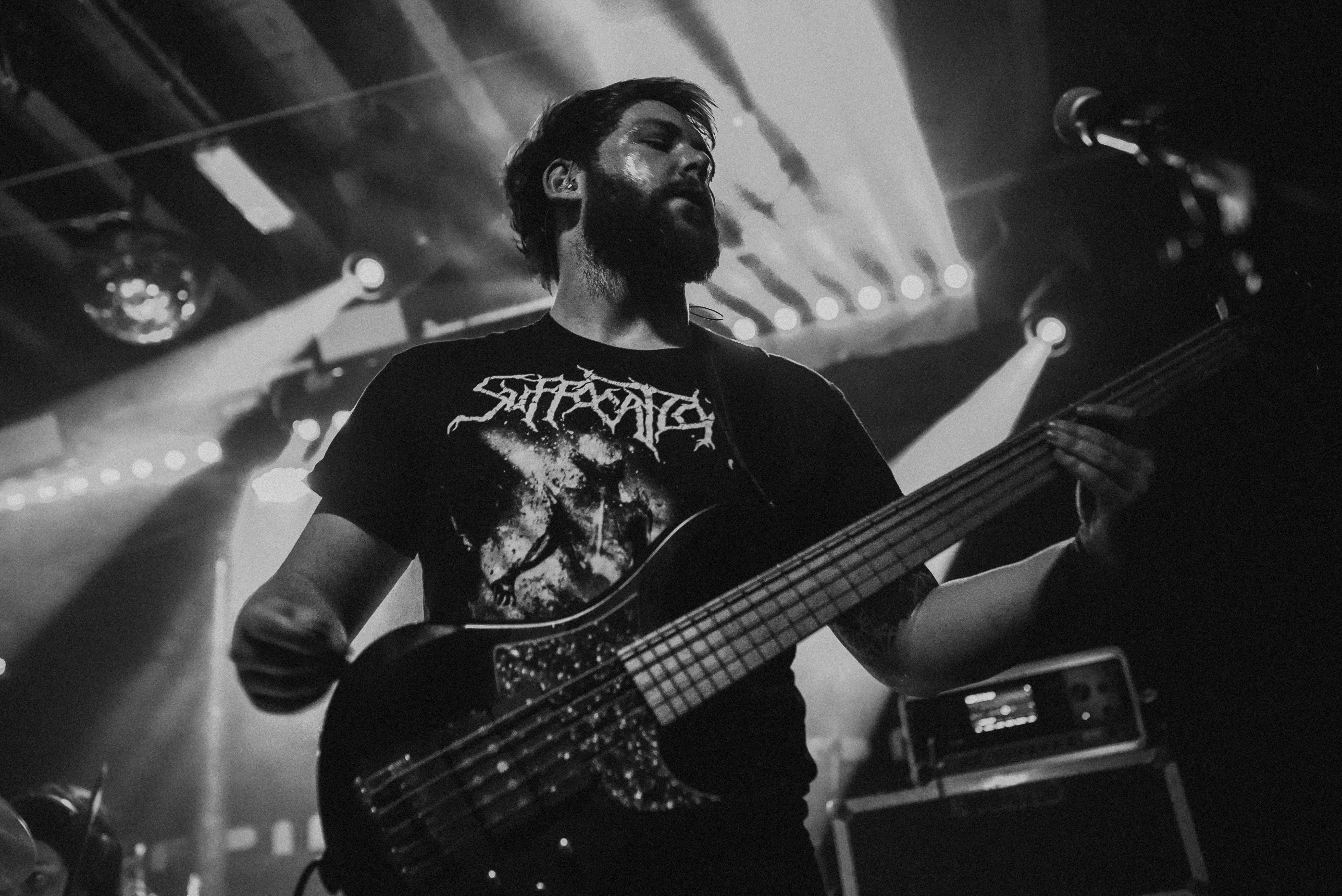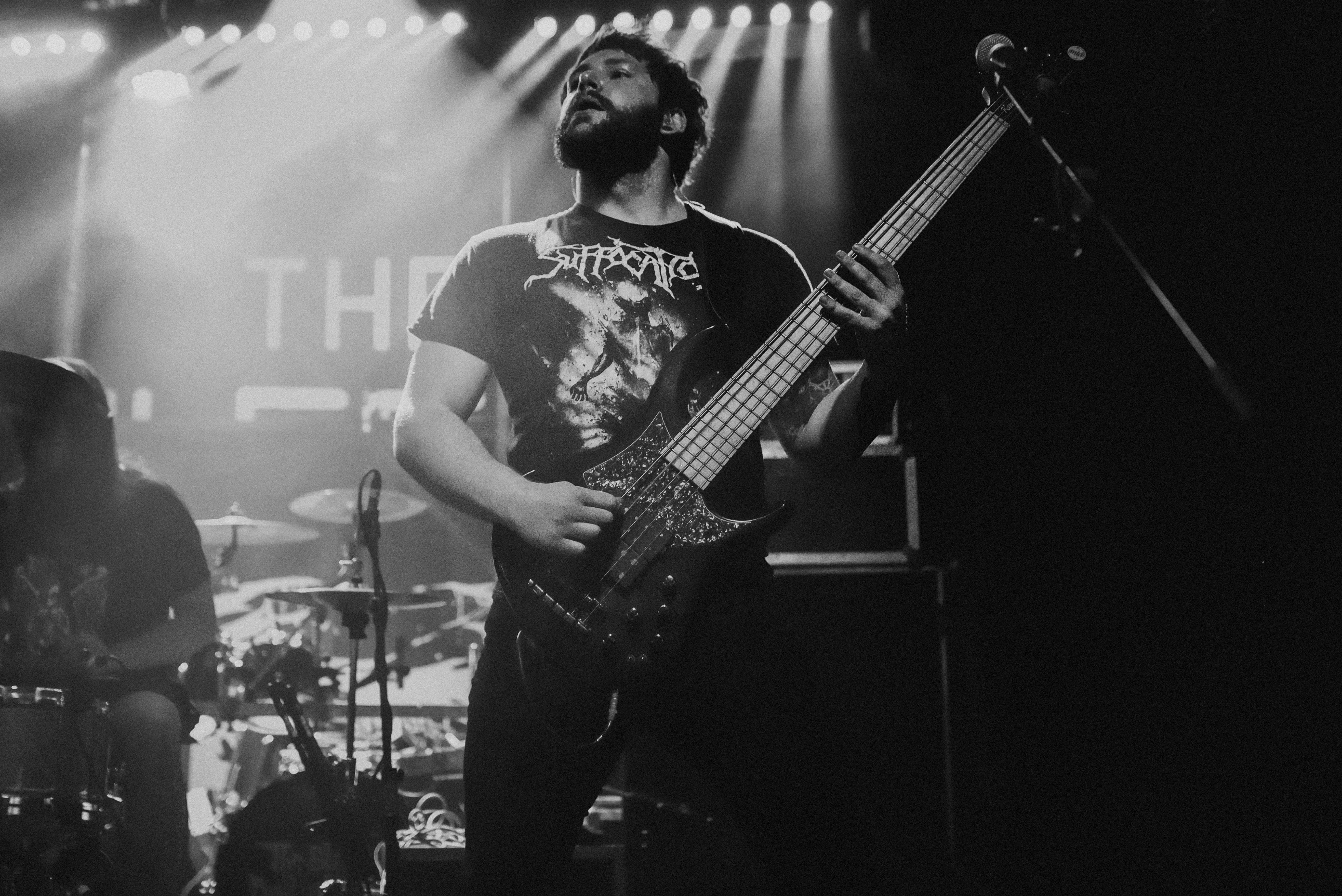 Bristol’s resident brutal death metal group, EMBODIMENT, have been building their stock within the scene over the years, and this tour sees them most at home on a line up. They are inarguably tight, as their drummer keeps everyone in line as they progress through their technical passages of death metal wizardry. As tight as they are though, EMBODIMENT suffer through a weak sound that drowns out the vocals in replacement for overwhelming drums and guitars coming through the front of house. Thankfully, the unit are clearly on form tonight, inspired by the pedigree of the lineup perhaps, but the band still come at the filling room with intent.