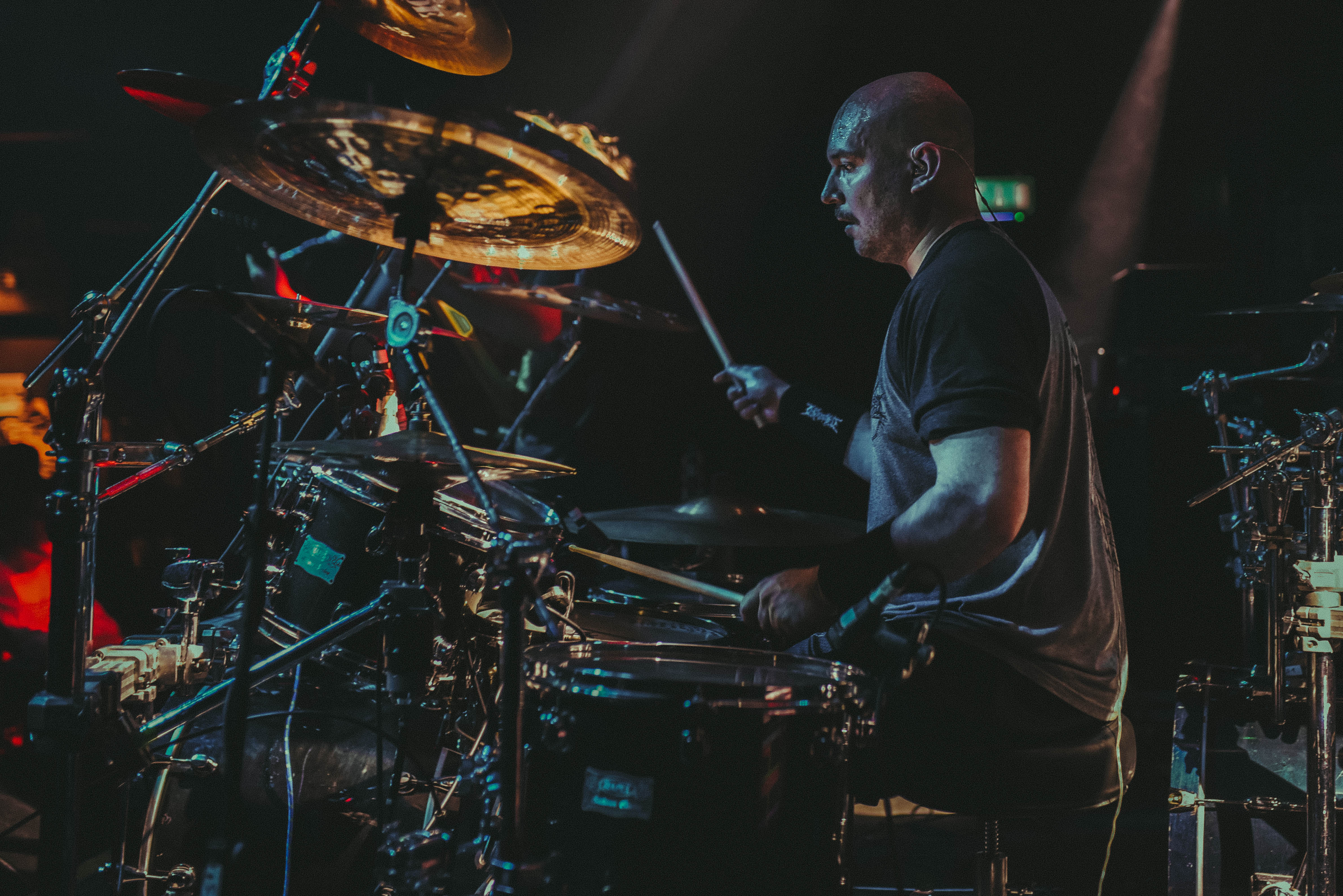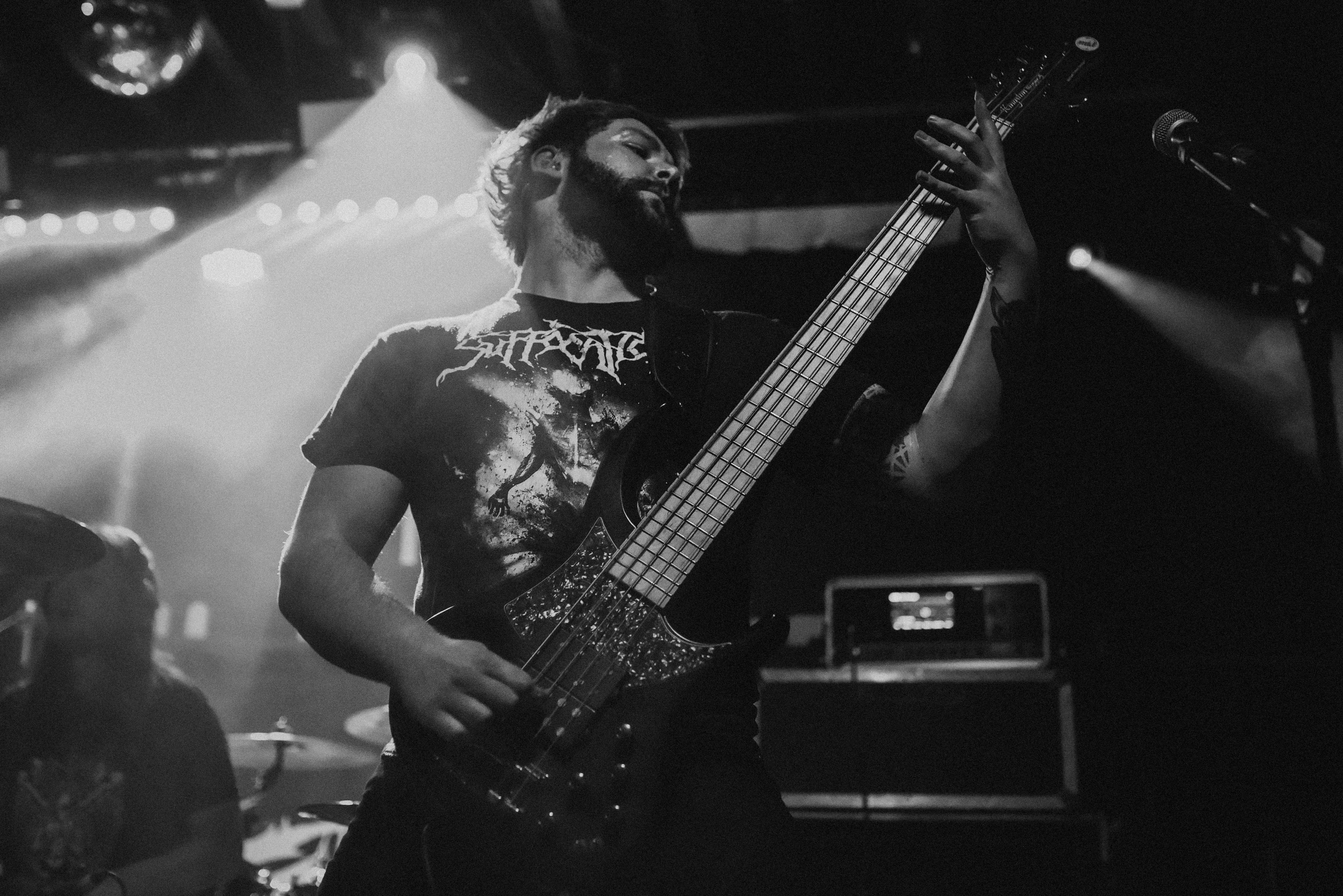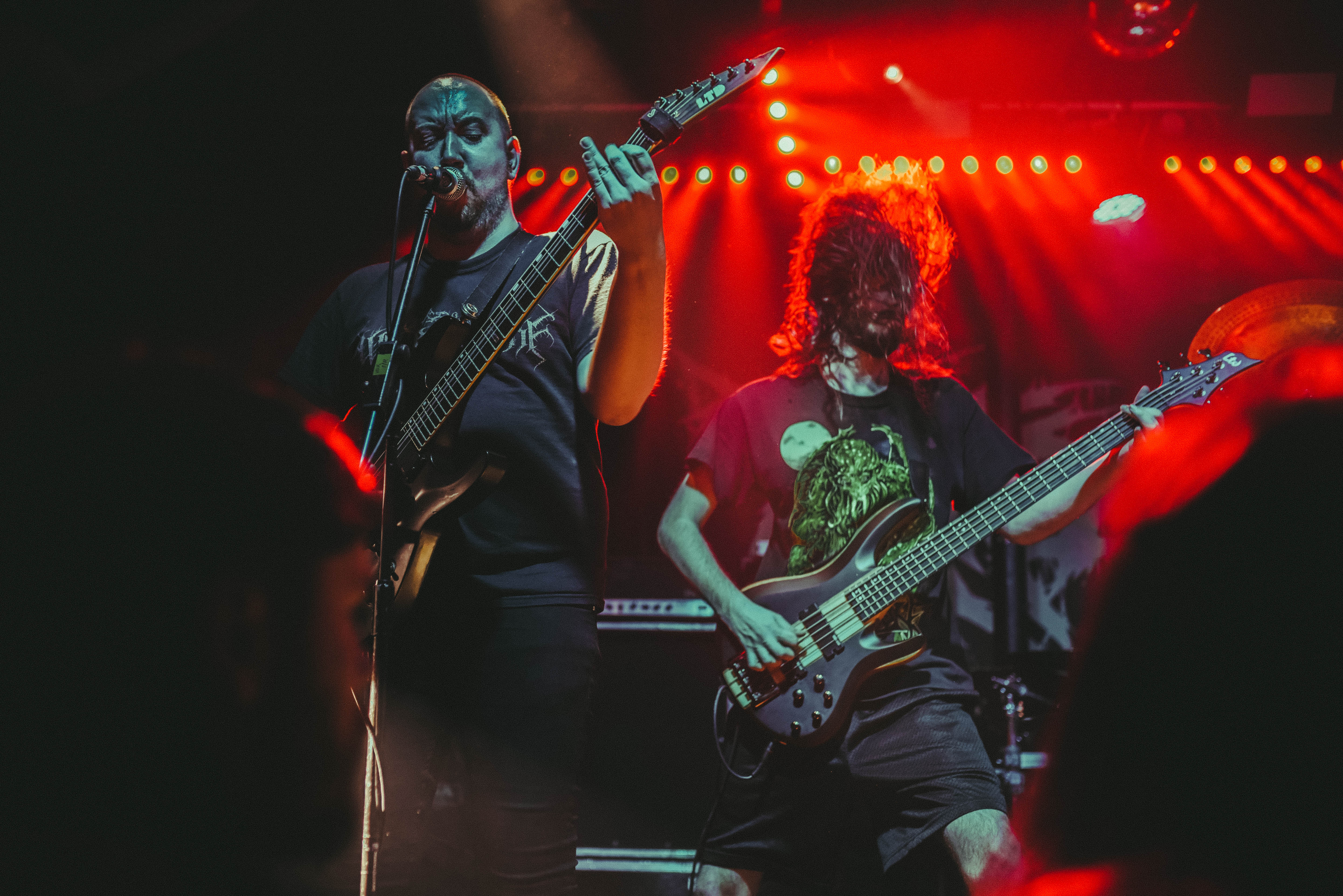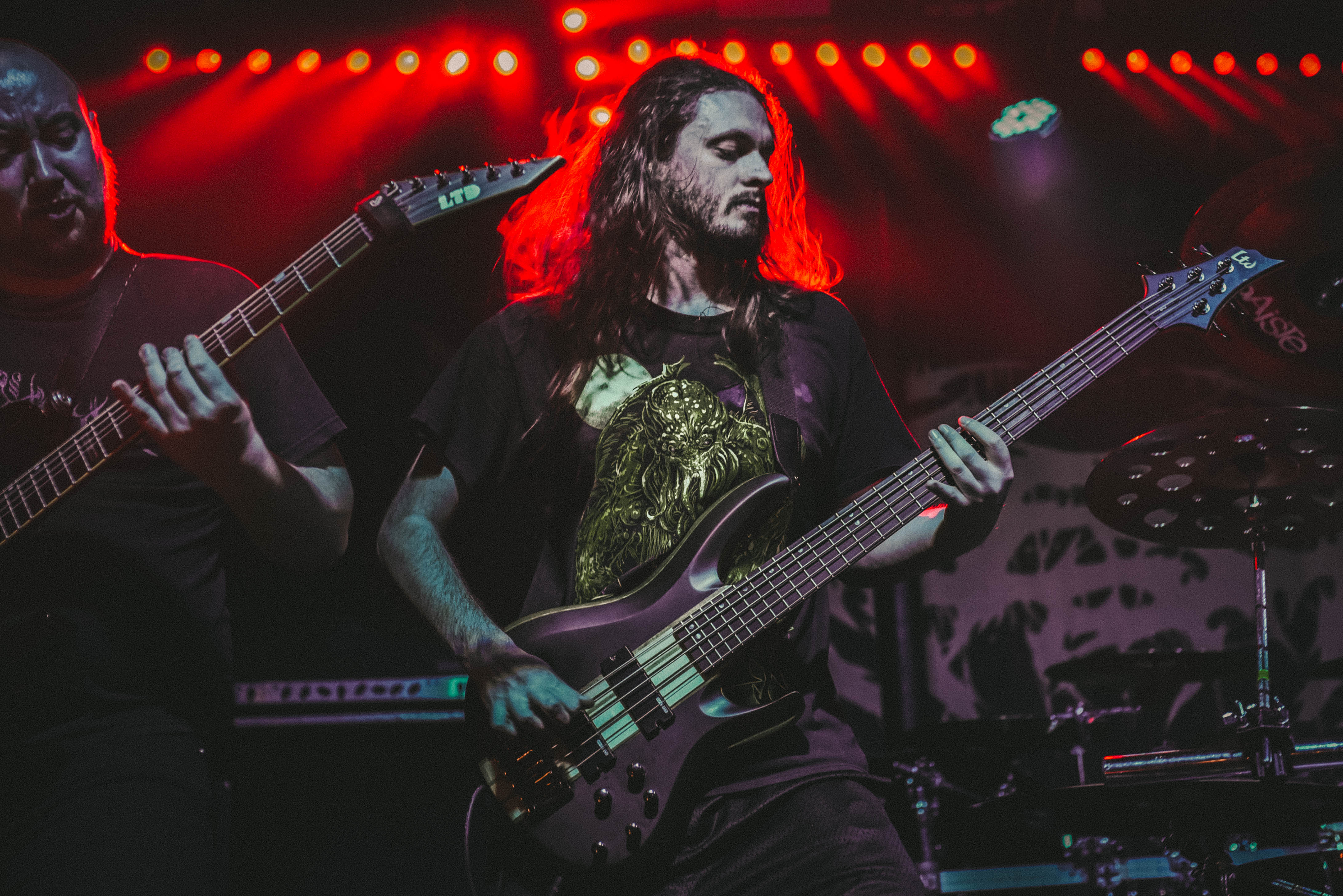 Bristol’s resident brutal death metal group, EMBODIMENT, have been building their stock within the scene over the years, and this tour sees them most at home on a line up. They are inarguably tight, as their drummer keeps everyone in line as they progress through their technical passages of death metal wizardry. As tight as they are though, EMBODIMENT suffer through a weak sound that drowns out the vocals in replacement for overwhelming drums and guitars coming through the front of house. Thankfully, the unit are clearly on form tonight, inspired by the pedigree of the lineup perhaps, but the band still come at the filling room with intent.