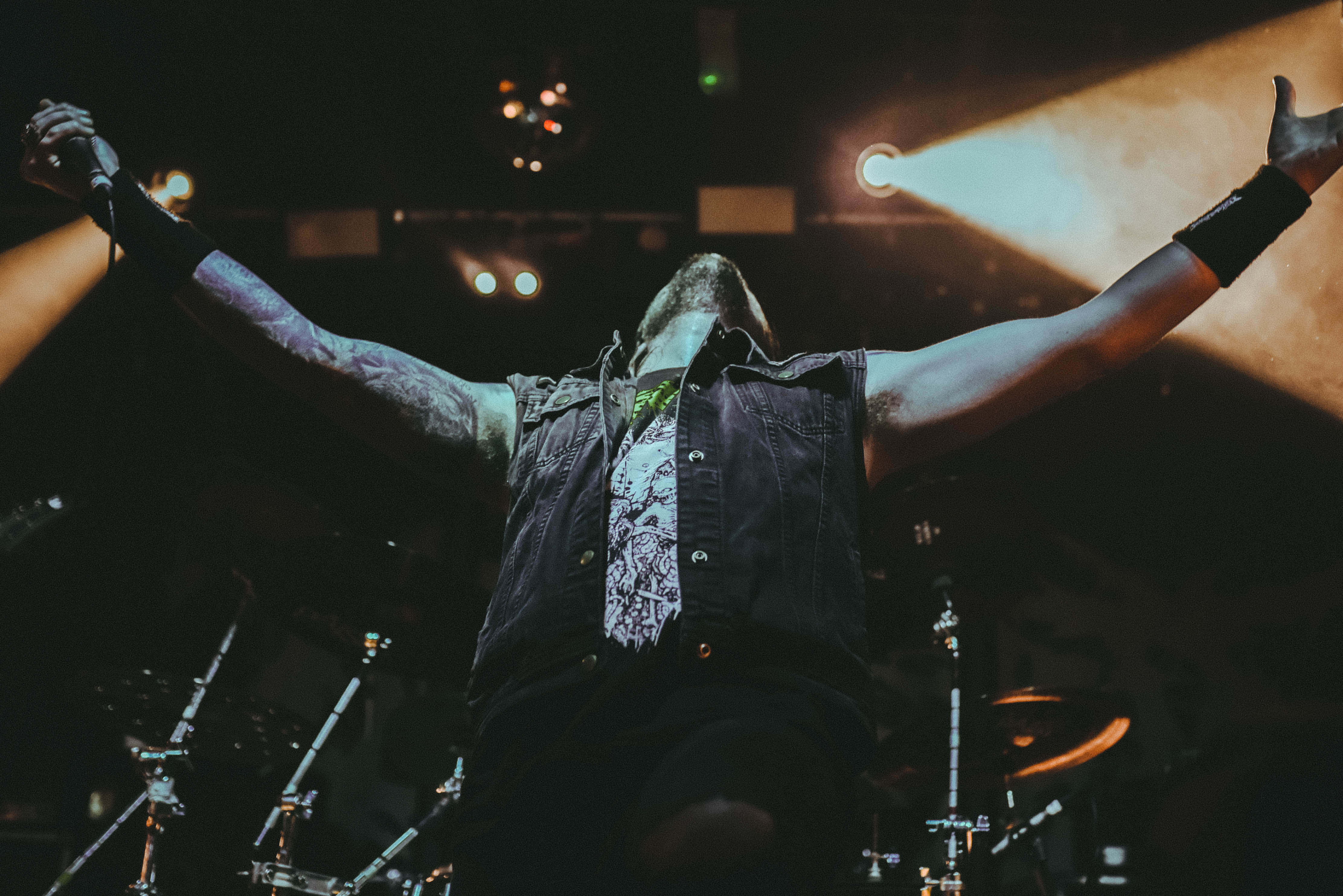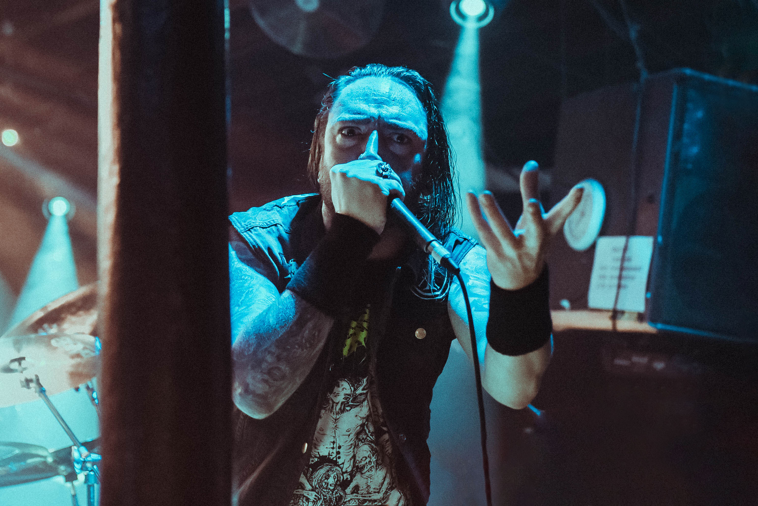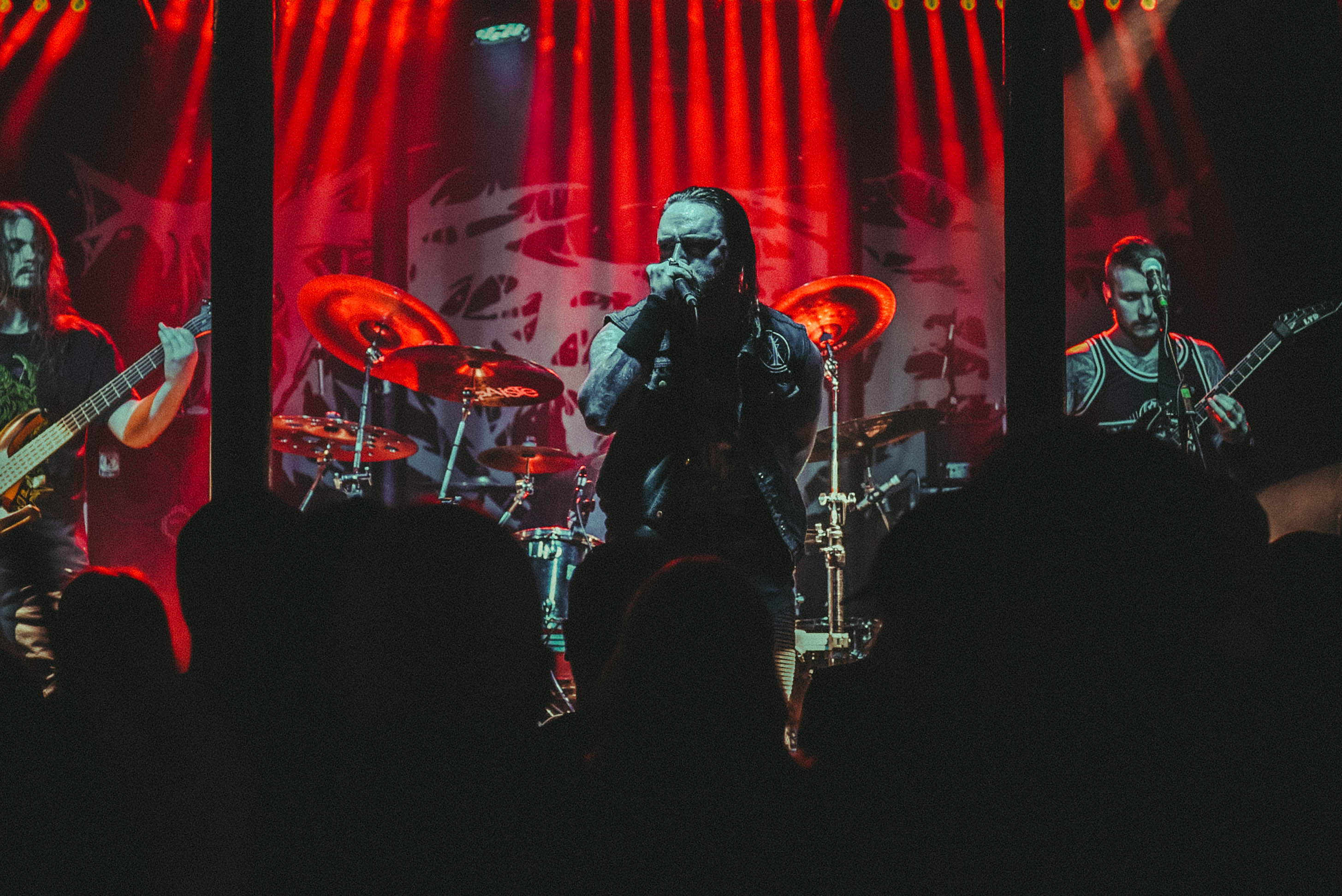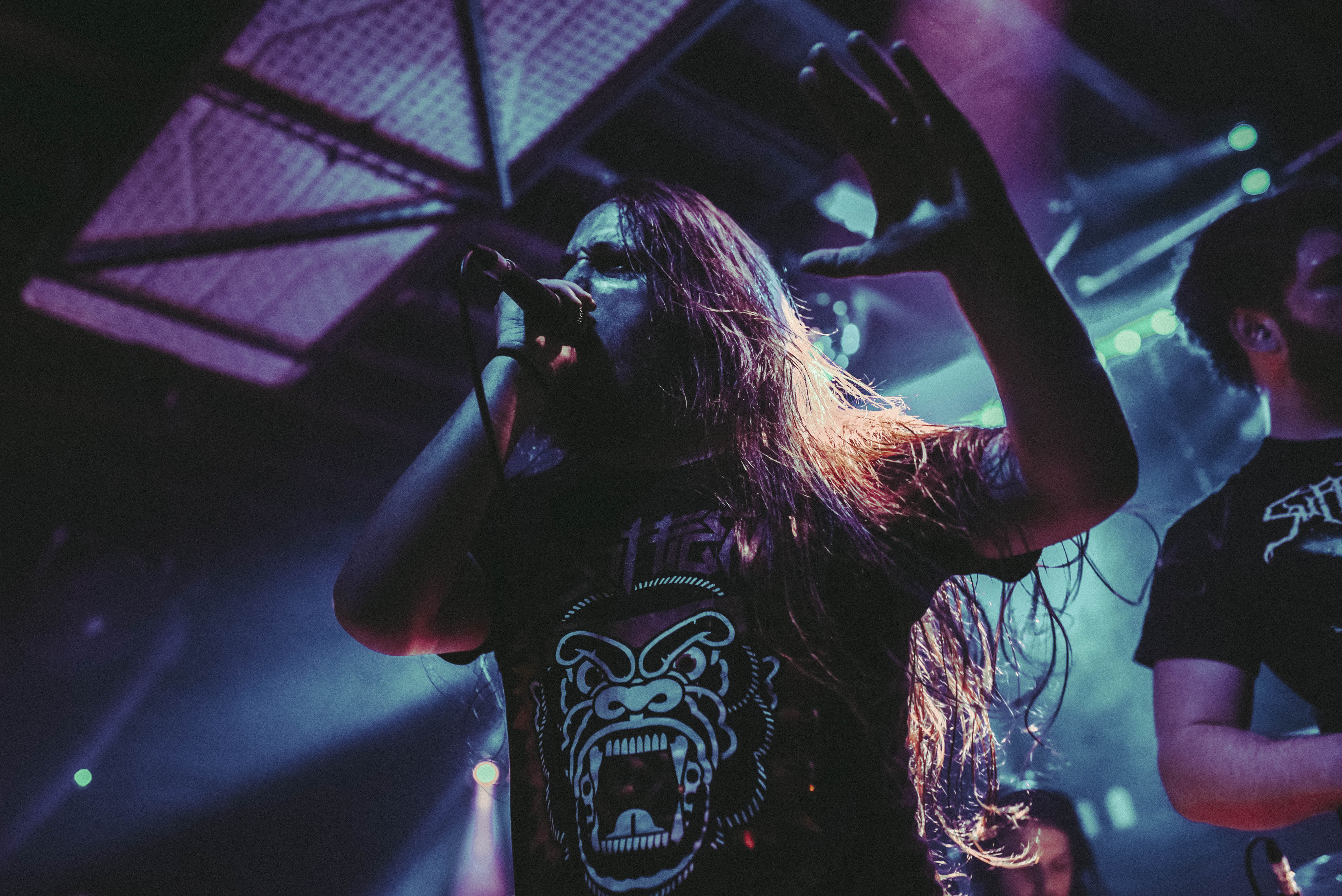 Bristol’s resident brutal death metal group, EMBODIMENT, have been building their stock within the scene over the years, and this tour sees them most at home on a line up. They are inarguably tight, as their drummer keeps everyone in line as they progress through their technical passages of death metal wizardry. As tight as they are though, EMBODIMENT suffer through a weak sound that drowns out the vocals in replacement for overwhelming drums and guitars coming through the front of house. Thankfully, the unit are clearly on form tonight, inspired by the pedigree of the lineup perhaps, but the band still come at the filling room with intent.