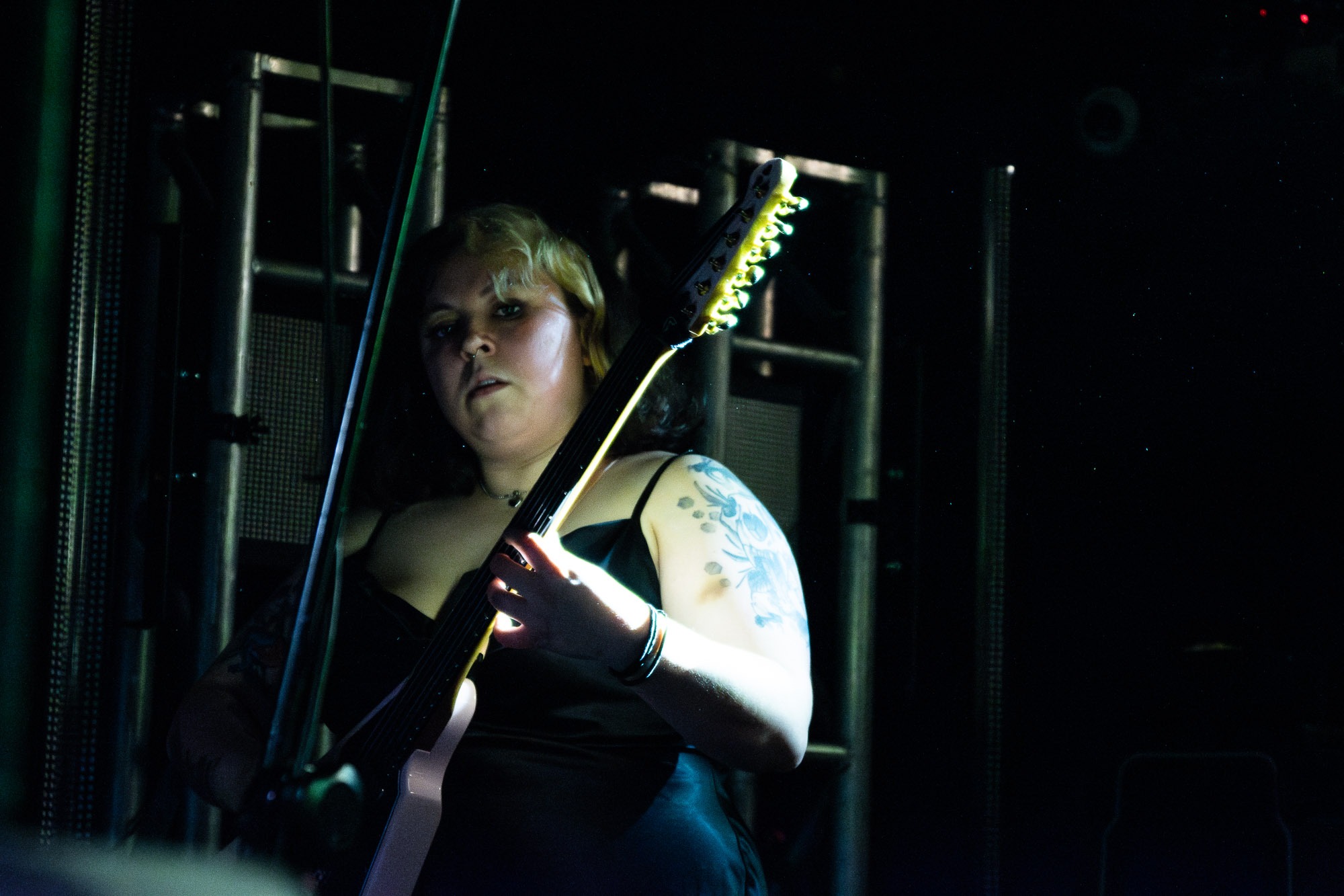 First up were LOVE RARELY, who wasted no time in setting the tone for the evening. Their sound leaned into jagged riffs and volatile rhythms, creating an atmosphere that felt deliberately unstable in the best way possible. The band played with a restless energy, throwing themselves into every moment as if trying to tear the stage apart piece by piece. Vocals from Courtney Levitt cut through the dense instrumentation with a raw, almost desperate edge, while the guitars oscillated between chaotic noise and sharp, punchy hooks. For an opener, they commanded the room impressively well, pulling the early crowd into their whirlwind and leaving little doubt that this was going to be a night defined by intensity.