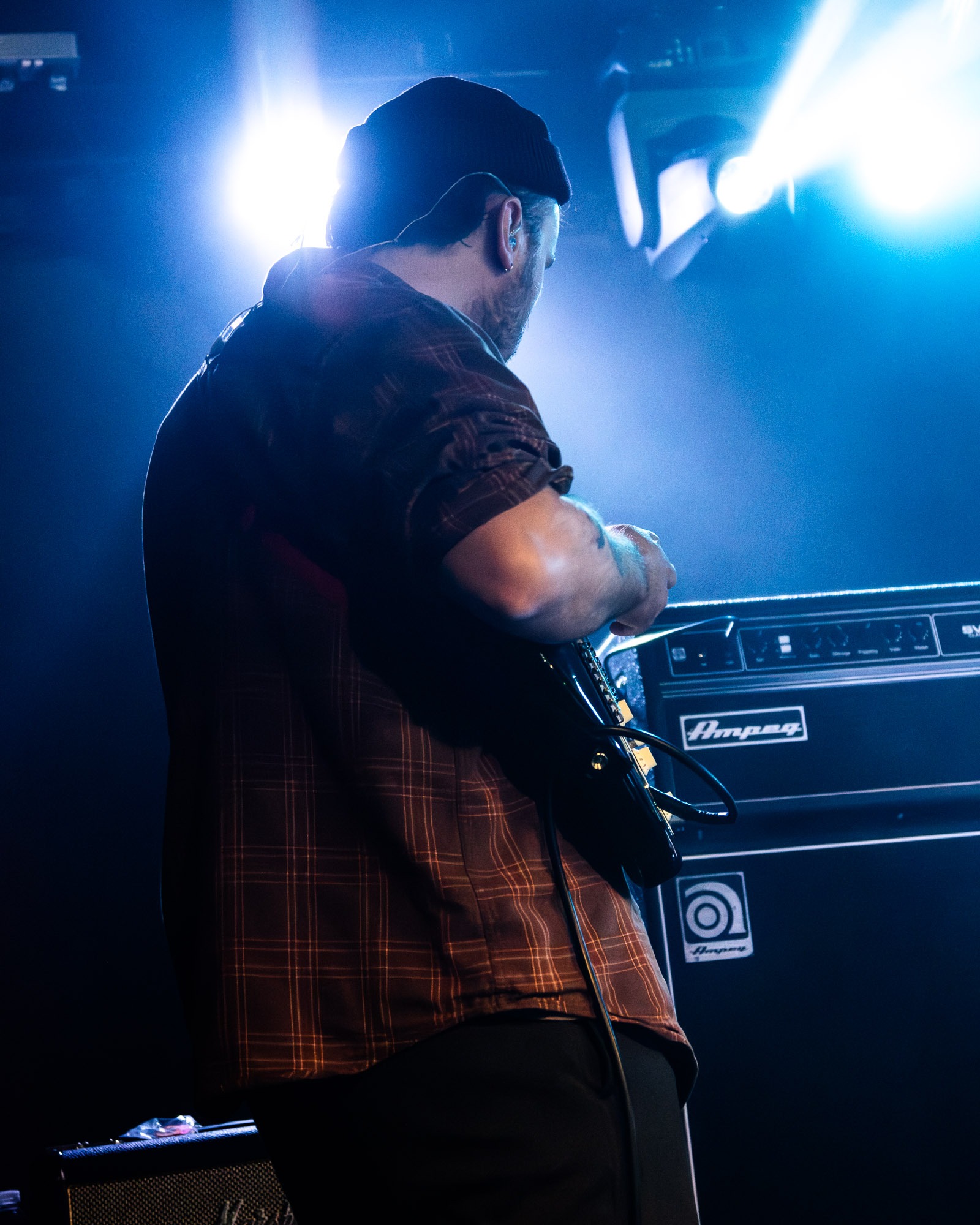 Next came KNIVES, who took the momentum and cranked it up several notches. Their set felt like a controlled explosion: frenetic, urgent and impossible to ignore. Blending punk ferocity with jagged alt-rock textures, the band delivered a performance that was as physical as it was sonically aggressive. The rhythm section thundered through each track while the guitars carved through the mix with gritty distortion, and the vocals, delivered by Jay Schottlander, rode that chaos with a fierce confidence. The crowd began to loosen up here, with heads nodding, bodies pushing closer to the stage, and the first real surges of movement appearing in the pit. KNIVES didn’t just warm the crowd up, they ignited it.