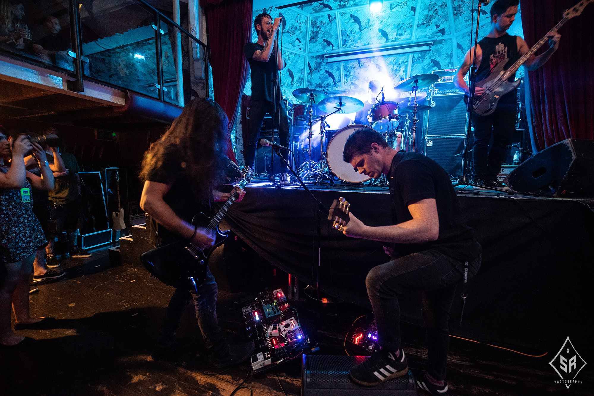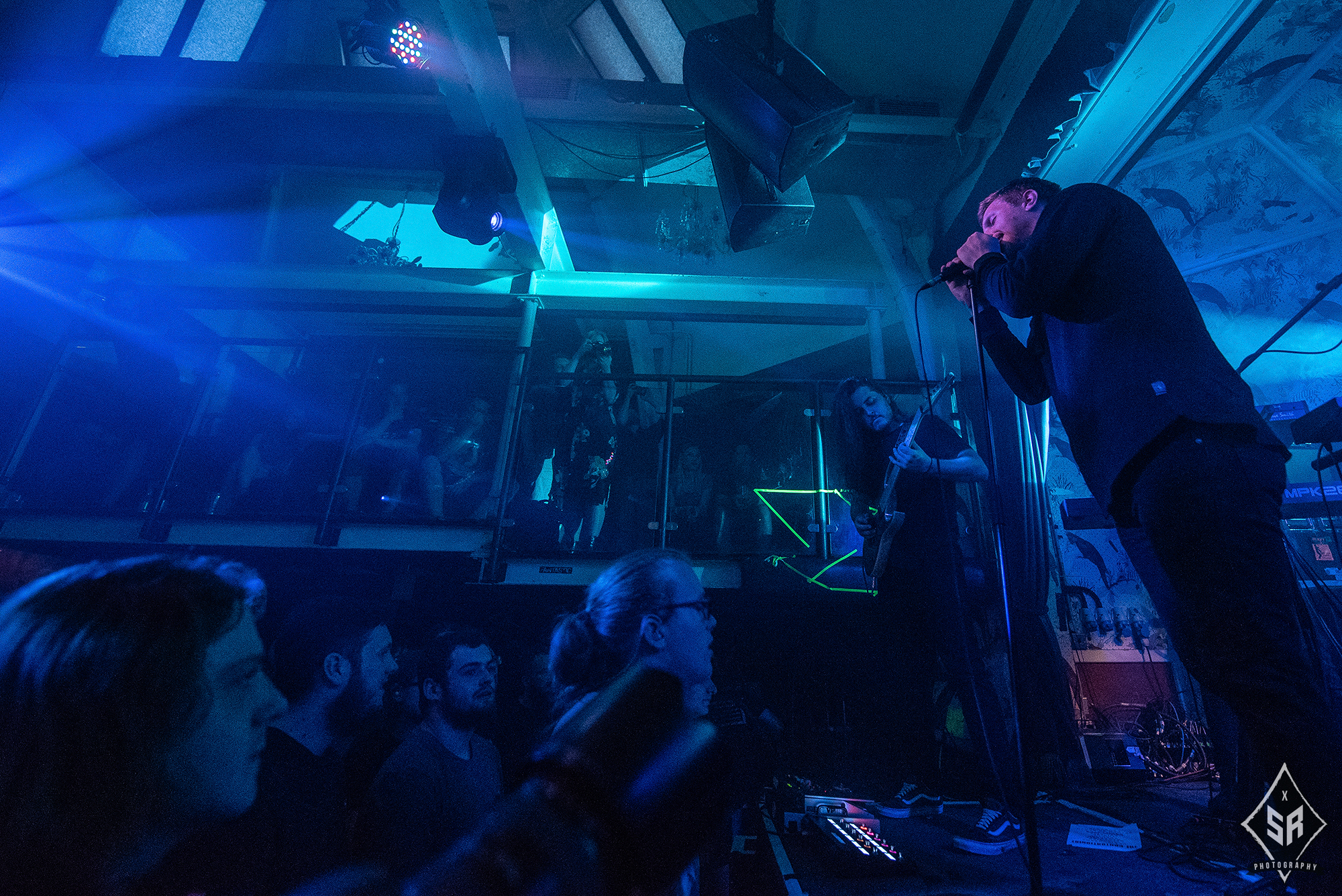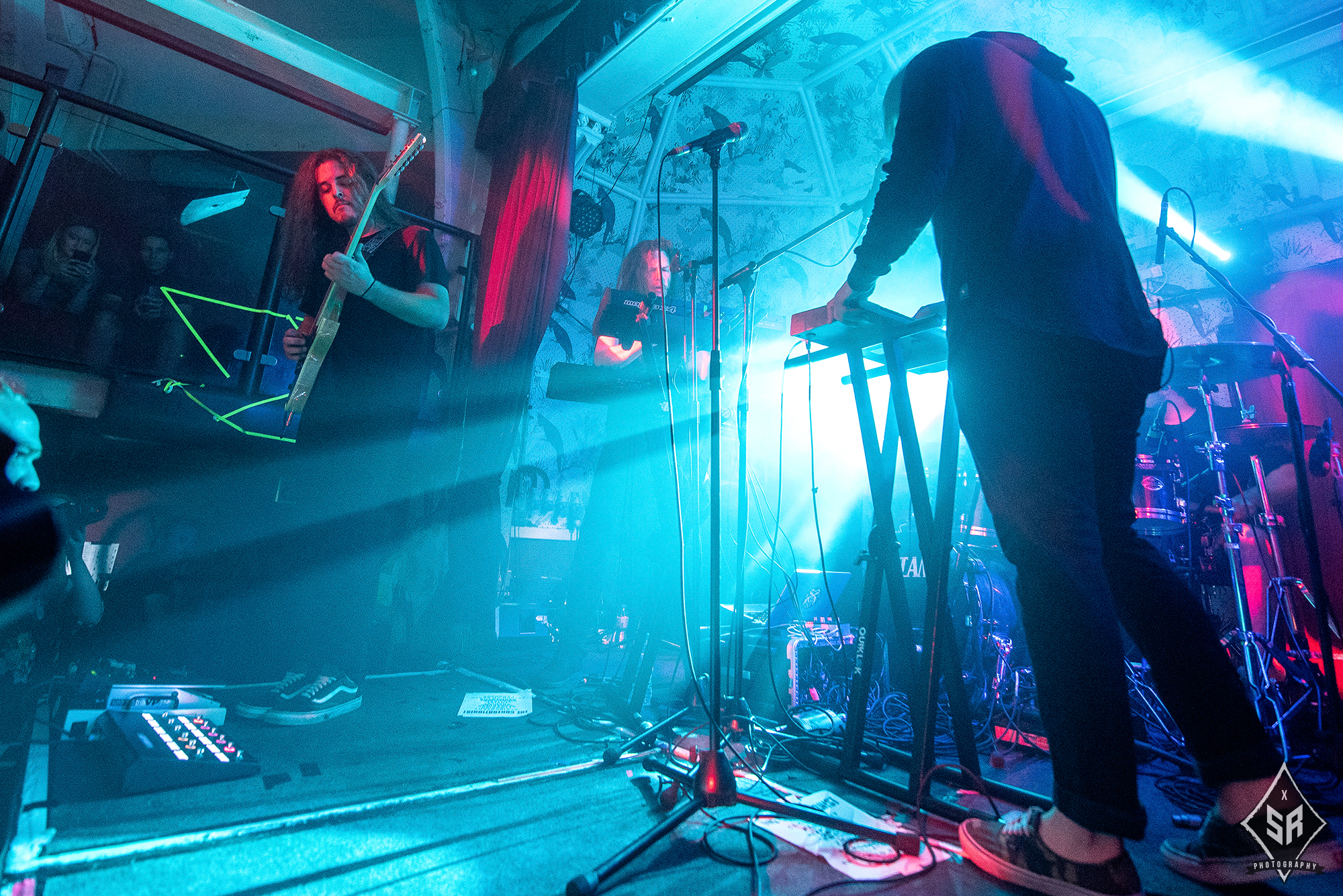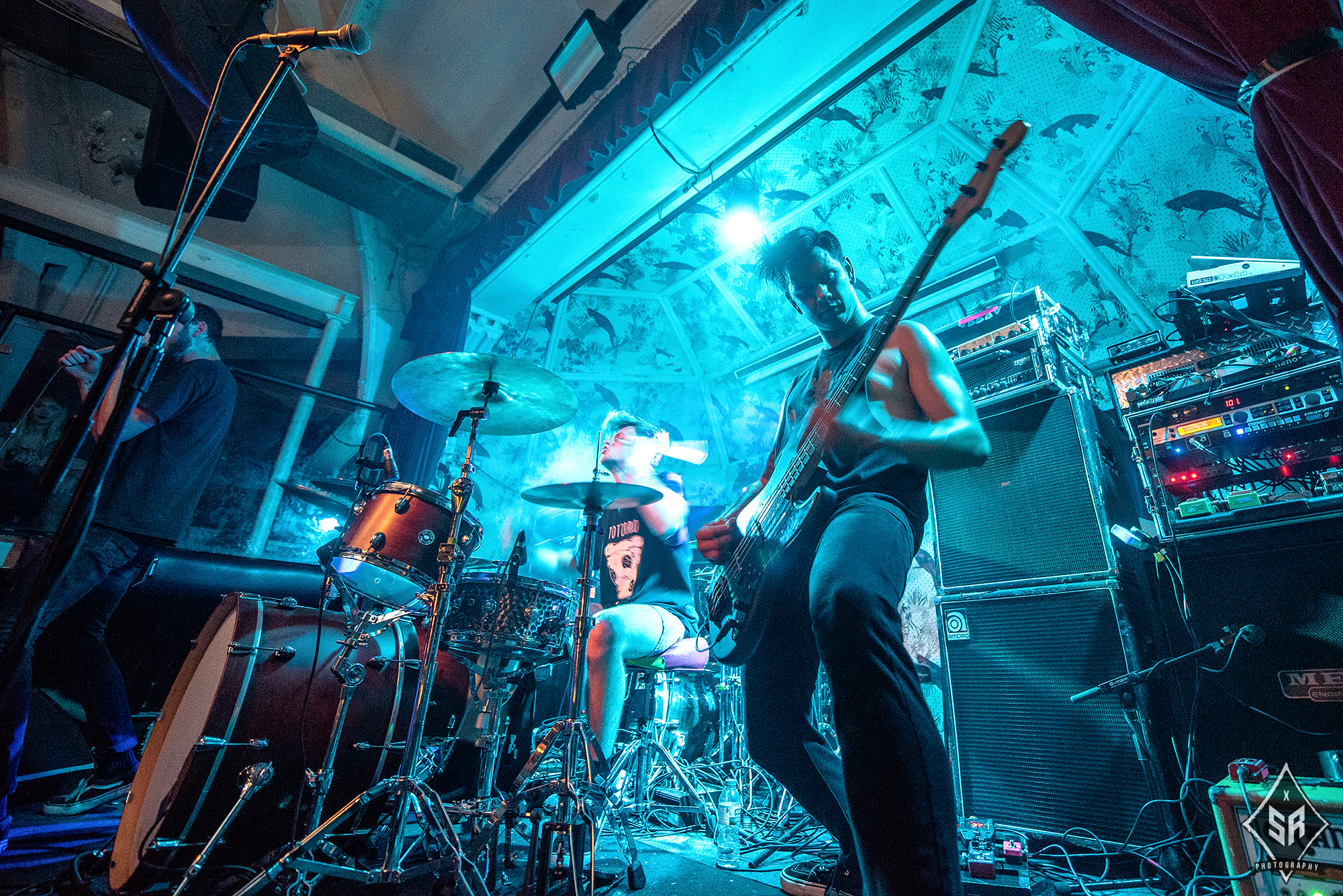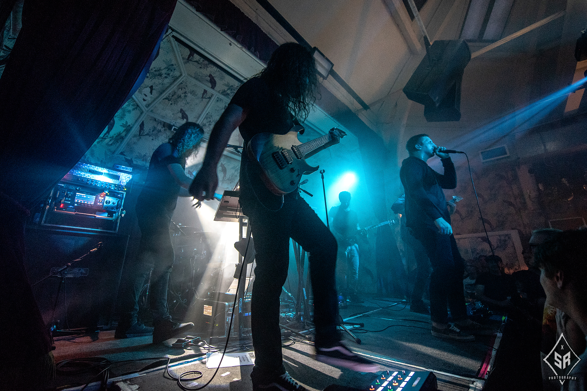 The small stage of The Deaf Institute did not leave much space for PALM READER to perform in front of all of the THE CONTORTIONIST‘s extensive gear, and therefore the audience were greeted by half of the support band on the stage, and the guitarists positioned in the pit in front of the stage. This, however, ended up wholly complimenting the atmosphere of the performance and the band’s gritty, heavy brand of melodic hardcore. Their recent release Braille saw a huge step up in form from previous material and earned them acclaim across multiple platforms. This was evident in their performance, with new songs like Swarm translating themselves into intense, well structured and emotional experiences. Despite being a very different band to the progressive melodies of the headliner, PALM READER certainly held their own with a relatively unreceptive crowd and fulfilled on the promise of Braille as a studio album.