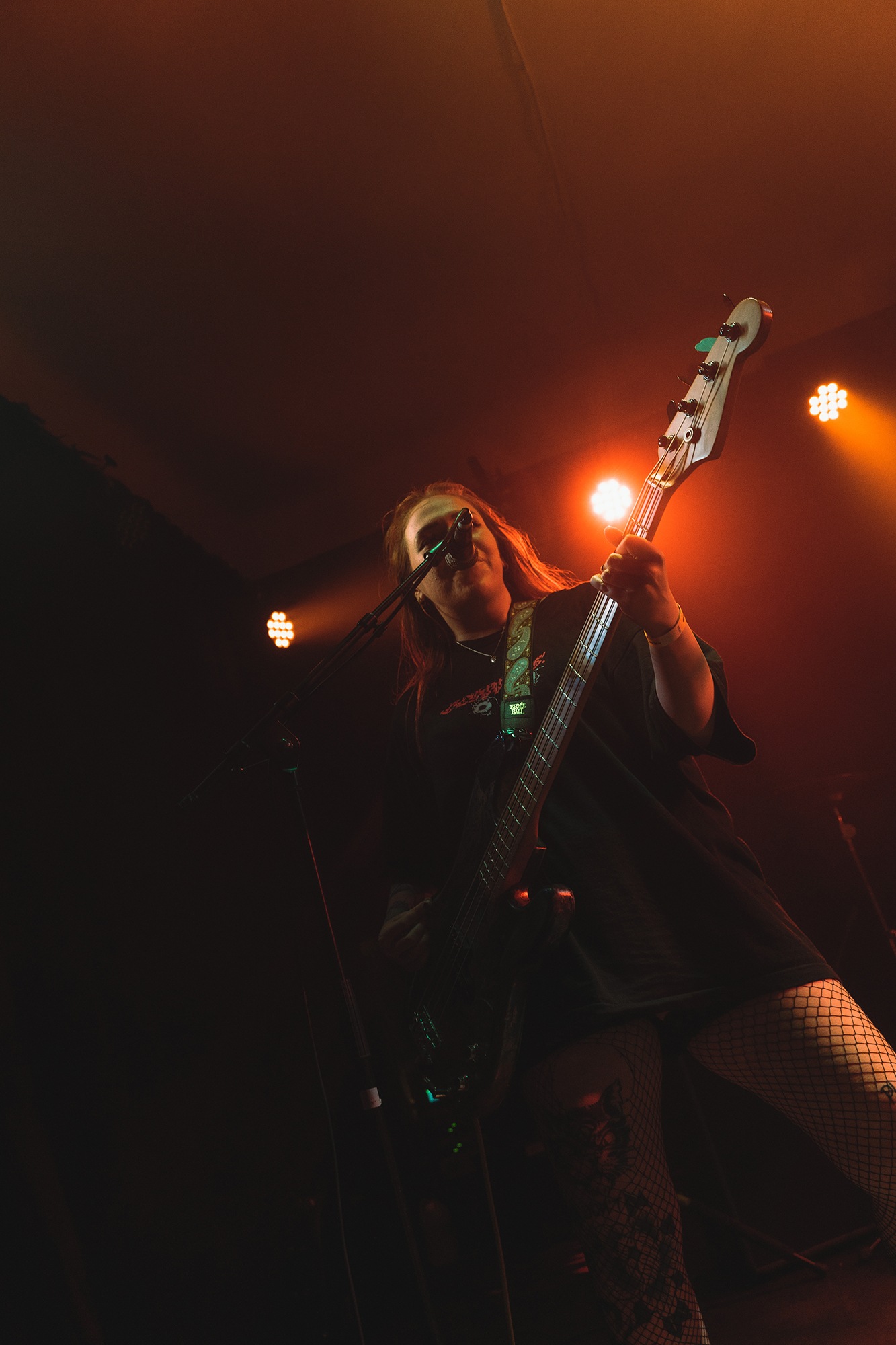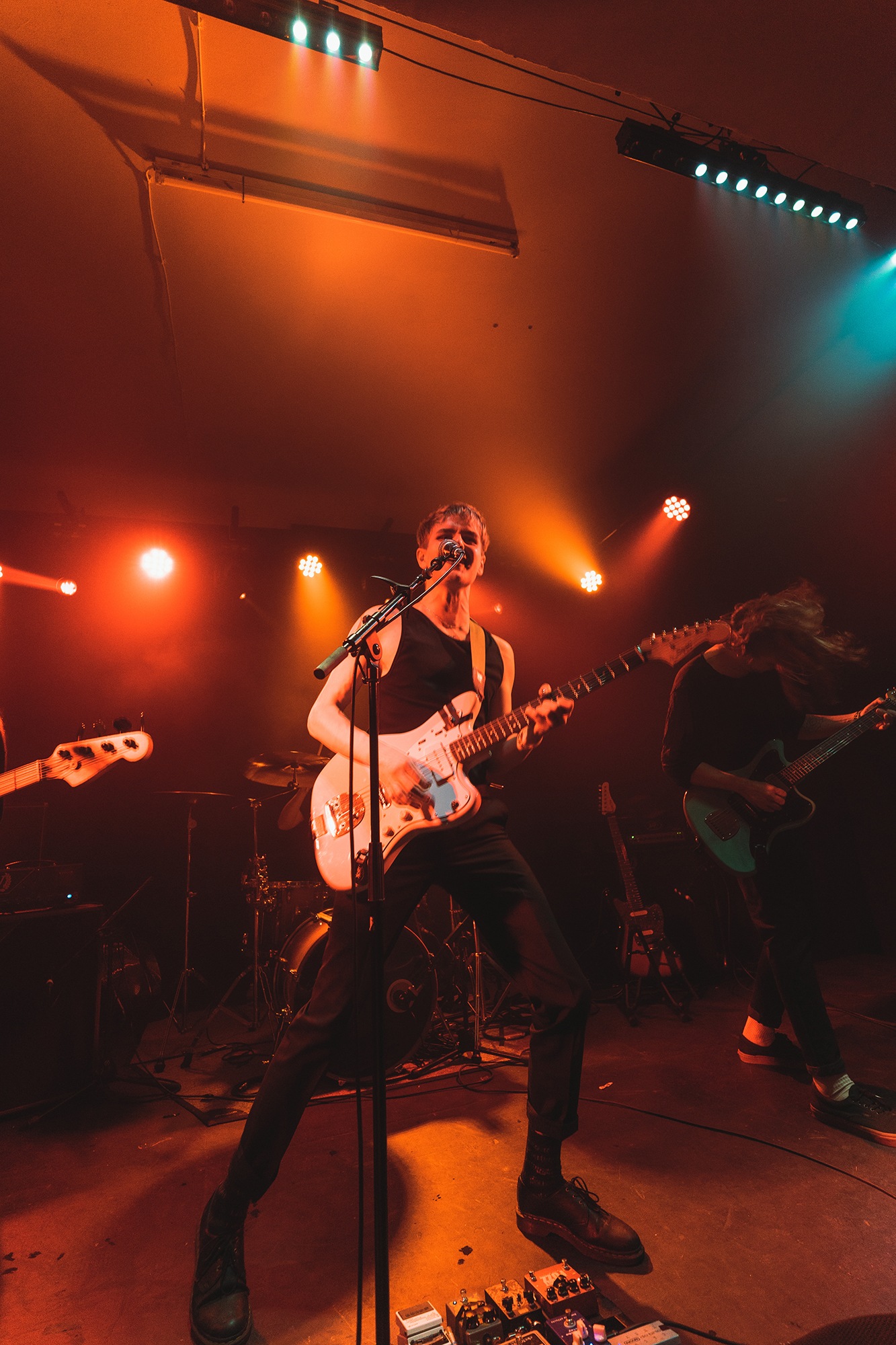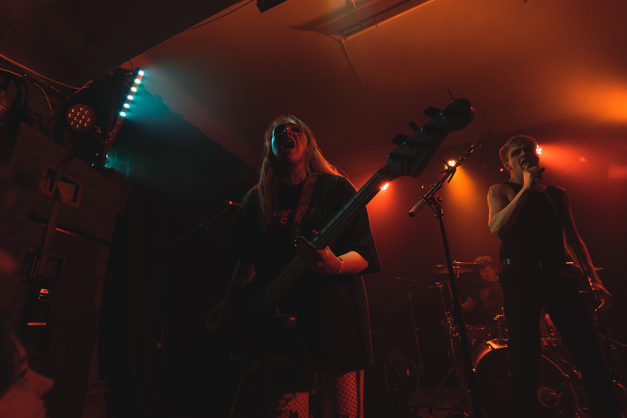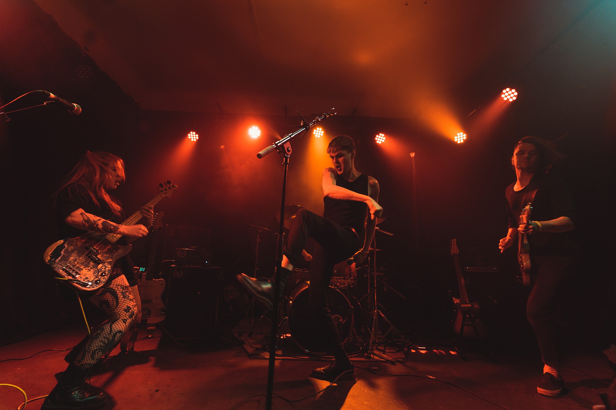 London three-piece DELAIRE THE LIAR are riding high on this week’s release of excellent new single bite trap, one that furthered their blend of scuzzy alt rock and emotional storytelling and quickly cemented itself as one of their finest songs to date. It shows, too; from the opening notes of Furnace into bite trap, they’re on even more incendiary form than usual. A whirlwind of onstage energy as ever, vocalist and guitarist Ffin Colley is a commanding presence as ever whether he’s slinging riffs or putting the guitar down to give the vocals his all. No Accident goes off like a bomb, the band masterfully moving from its raw opening to the outpouring of emotion when it erupts. They also debut yet another new song where vocalist/bassist Em Lodge takes the spotlight for an arresting performance eliciting loud cheers from the crowd. The band gleefully tear through old and new, songs from 2021’s excellent Eat Your Own EP going down a storm alongside diehard fan favourites. The band have been going from strength to strength with a recent appearance at the inaugural Lume Fest here in London and tonight continues to highlight one of London’s most promising upcoming bands that, in their words, are on the cusp of something huge.
