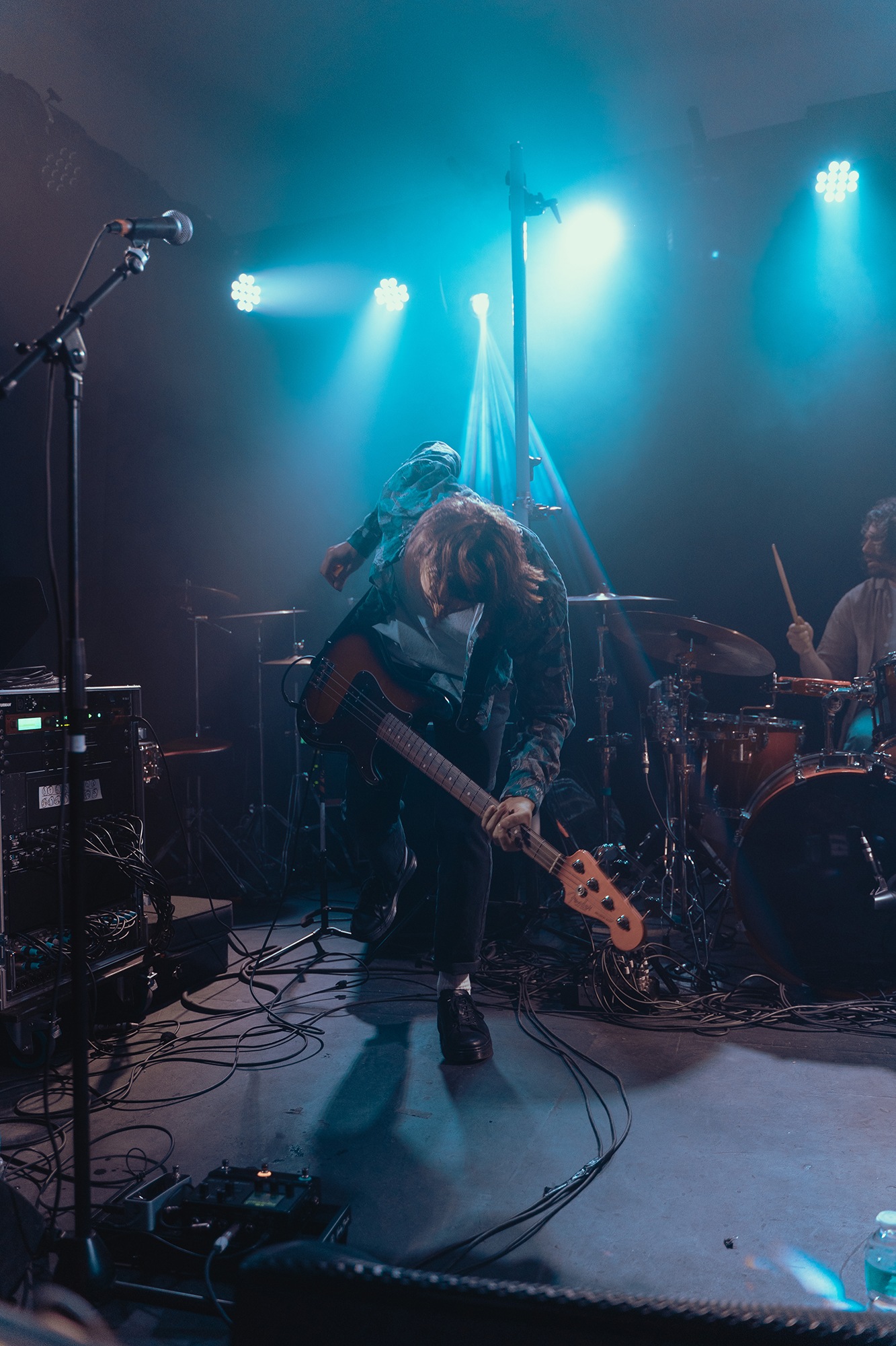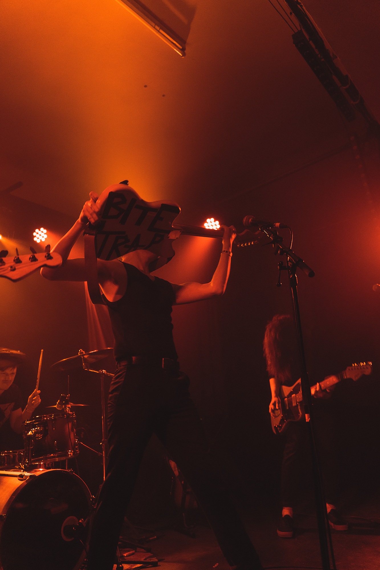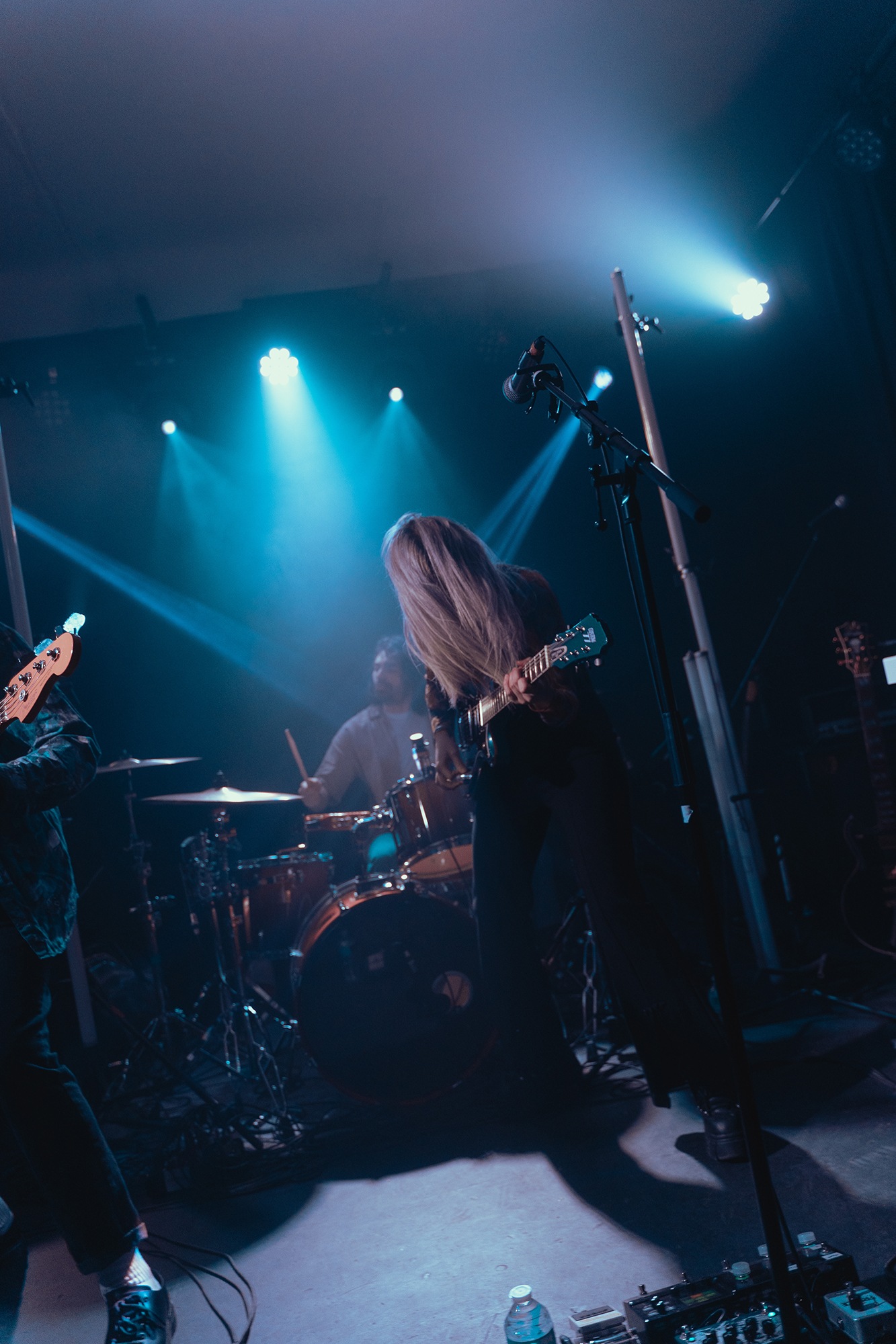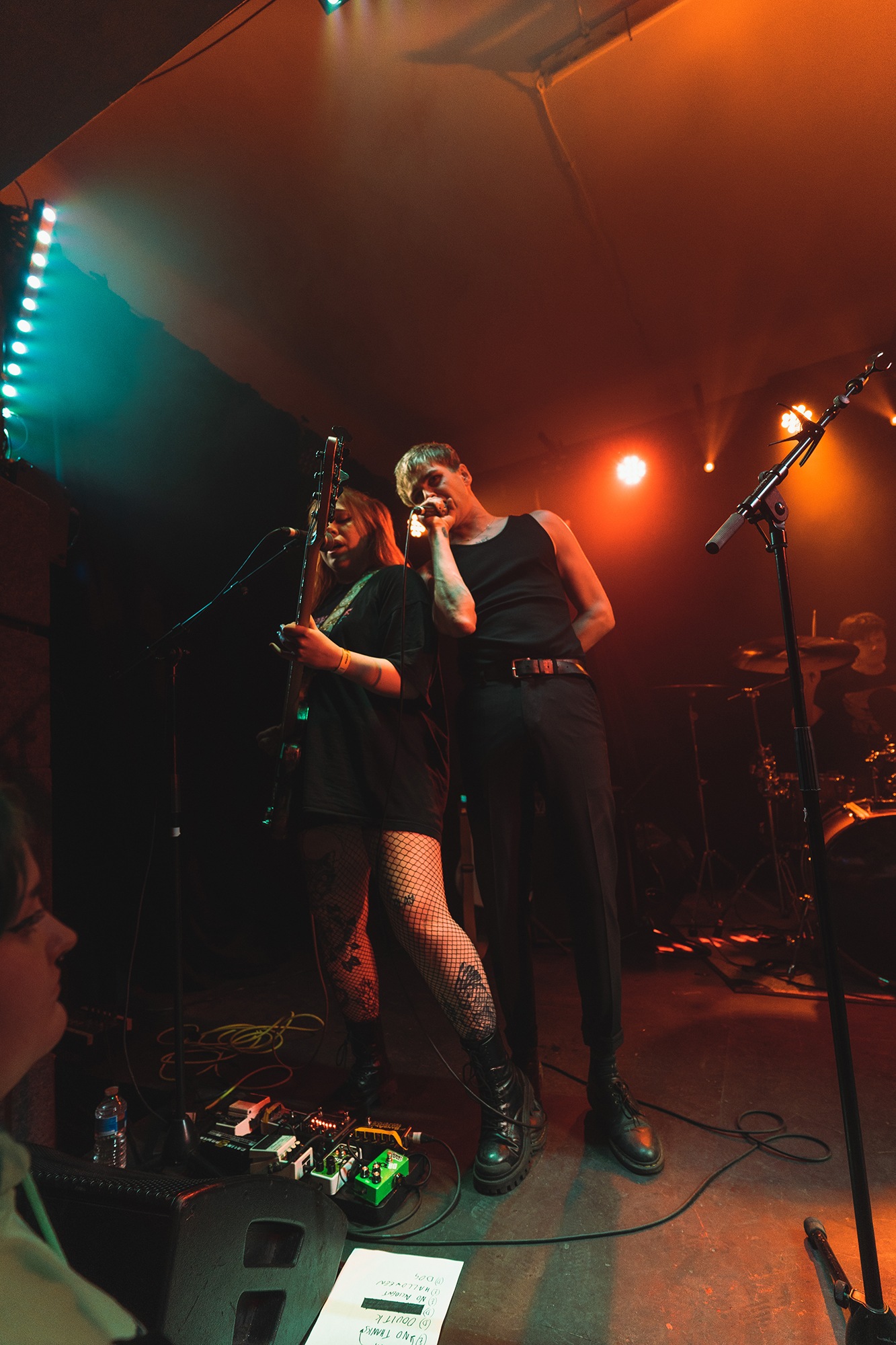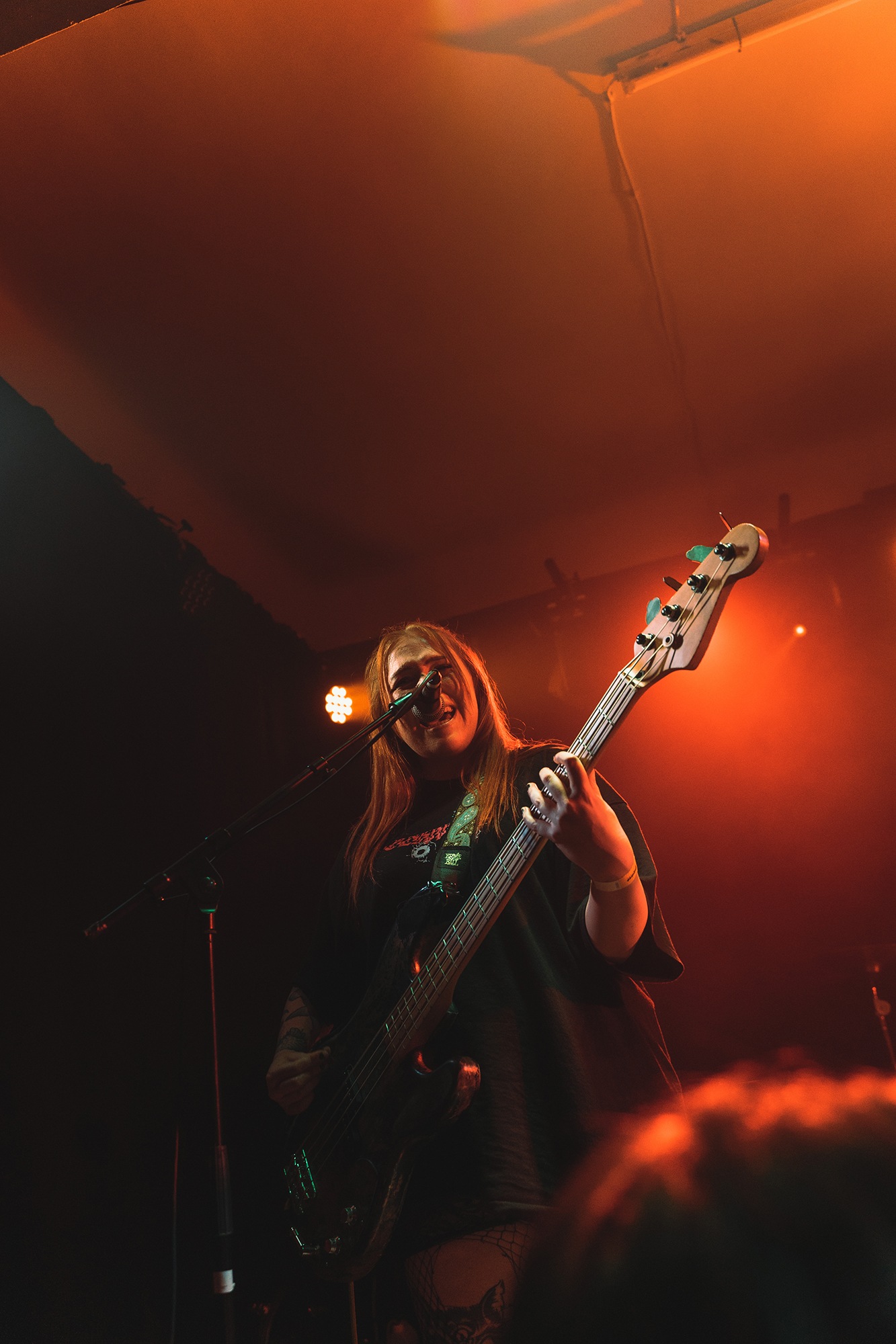 London three-piece DELAIRE THE LIAR are riding high on this week’s release of excellent new single bite trap, one that furthered their blend of scuzzy alt rock and emotional storytelling and quickly cemented itself as one of their finest songs to date. It shows, too; from the opening notes of Furnace into bite trap, they’re on even more incendiary form than usual. A whirlwind of onstage energy as ever, vocalist and guitarist Ffin Colley is a commanding presence as ever whether he’s slinging riffs or putting the guitar down to give the vocals his all. No Accident goes off like a bomb, the band masterfully moving from its raw opening to the outpouring of emotion when it erupts. They also debut yet another new song where vocalist/bassist Em Lodge takes the spotlight for an arresting performance eliciting loud cheers from the crowd. The band gleefully tear through old and new, songs from 2021’s excellent Eat Your Own EP going down a storm alongside diehard fan favourites. The band have been going from strength to strength with a recent appearance at the inaugural Lume Fest here in London and tonight continues to highlight one of London’s most promising upcoming bands that, in their words, are on the cusp of something huge.