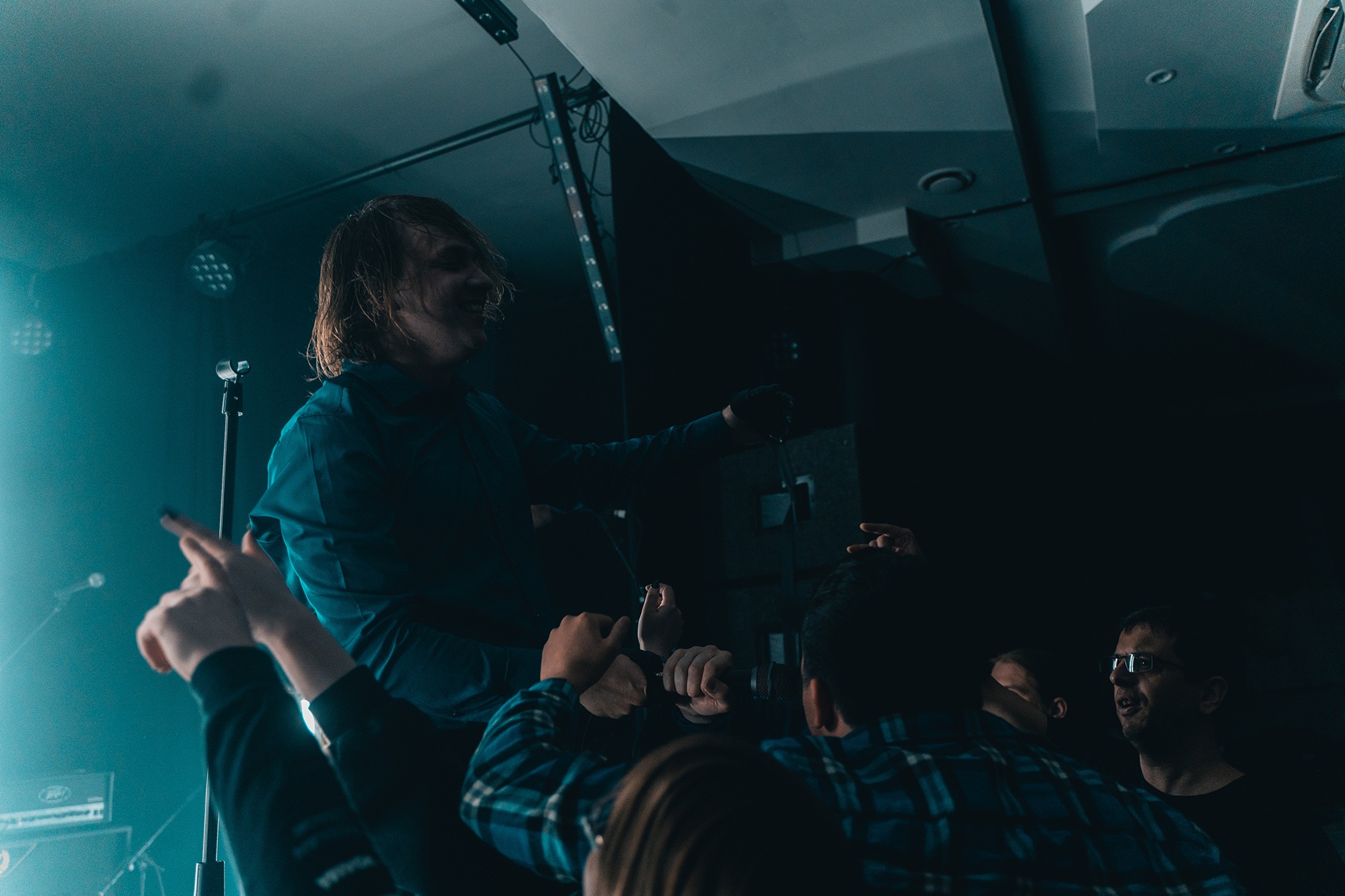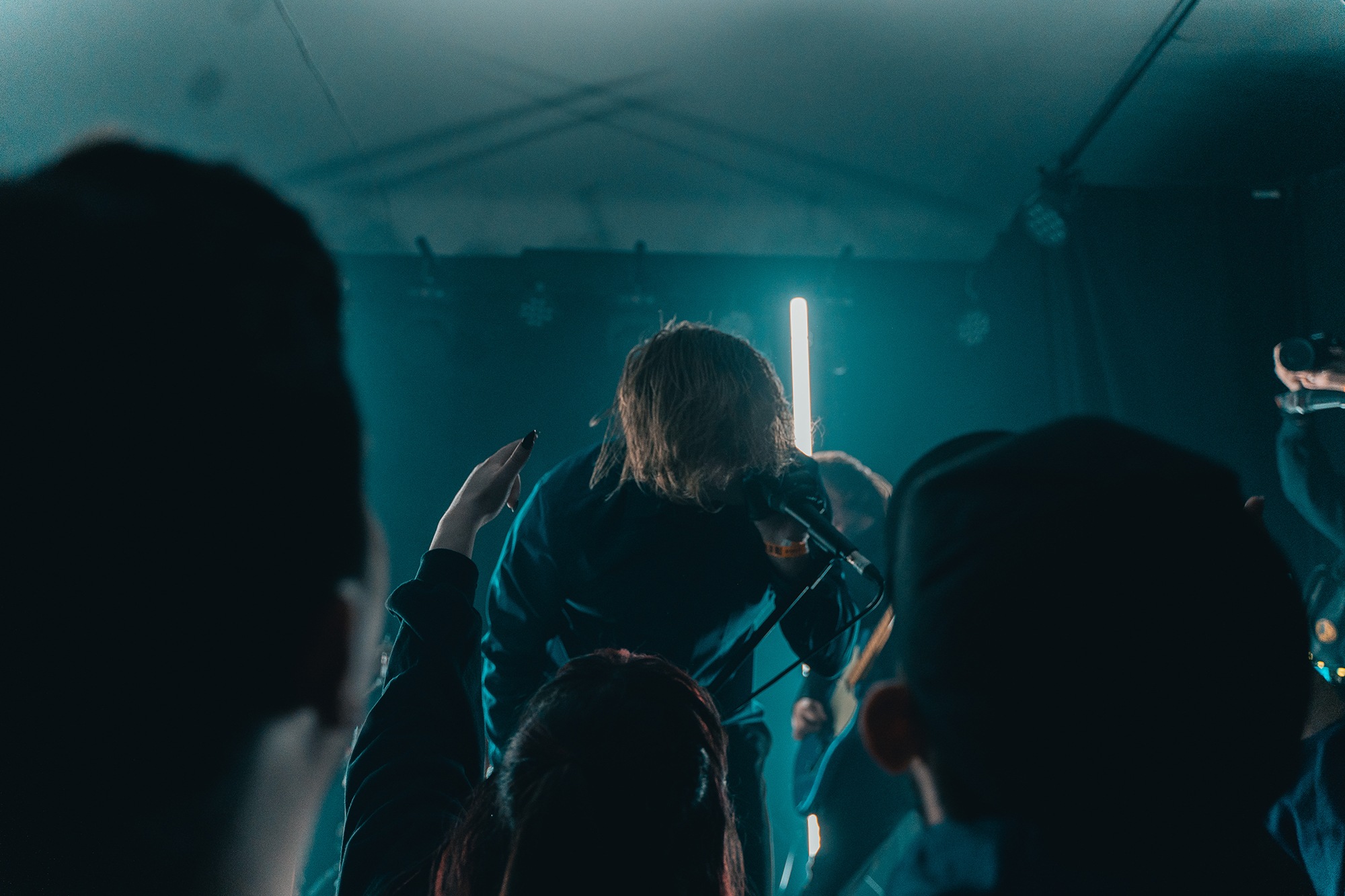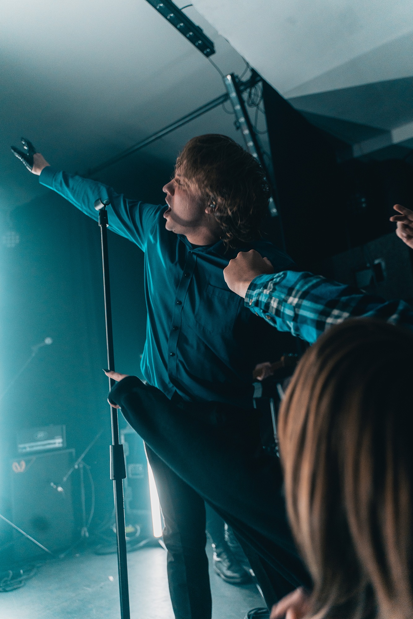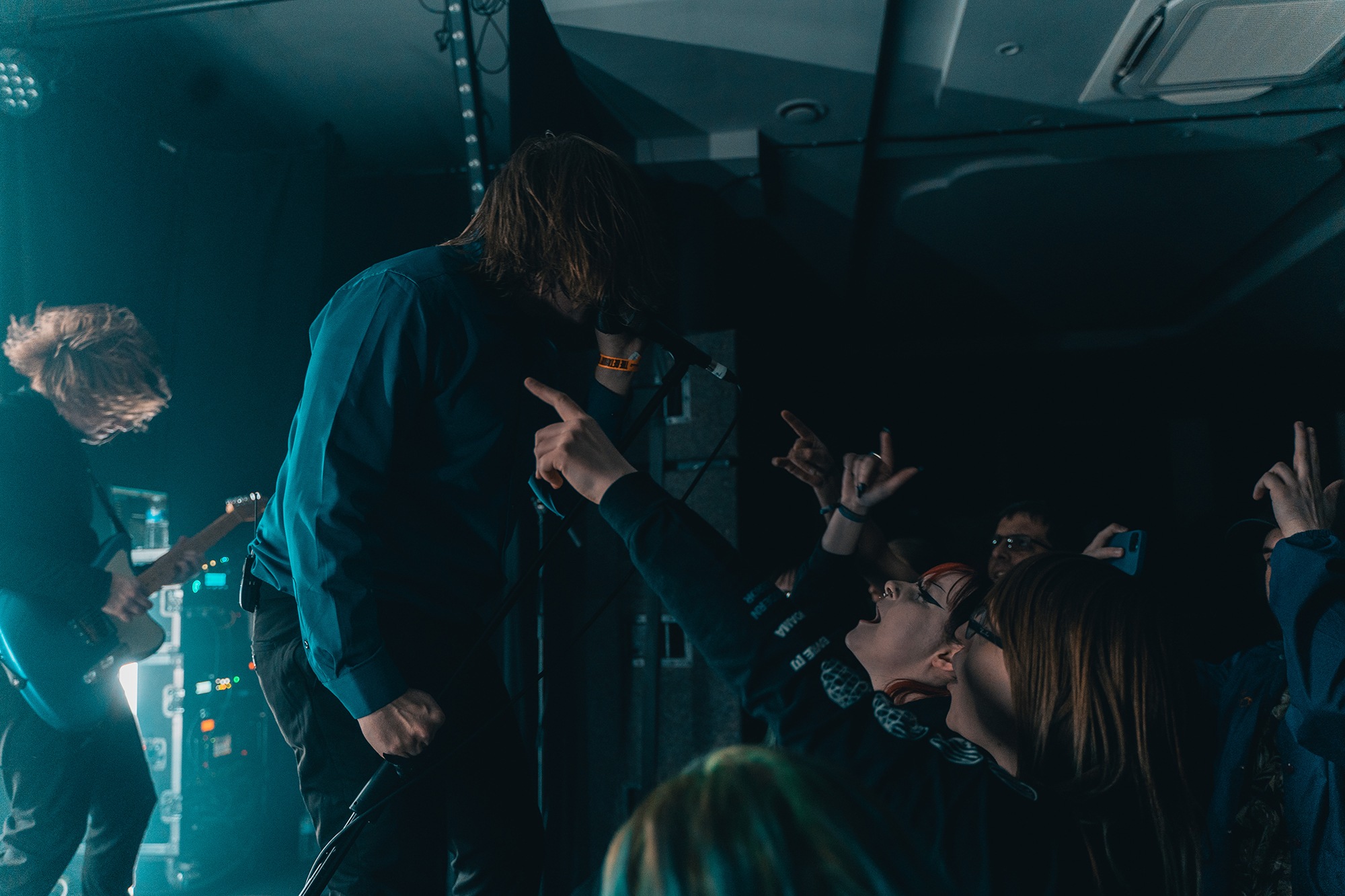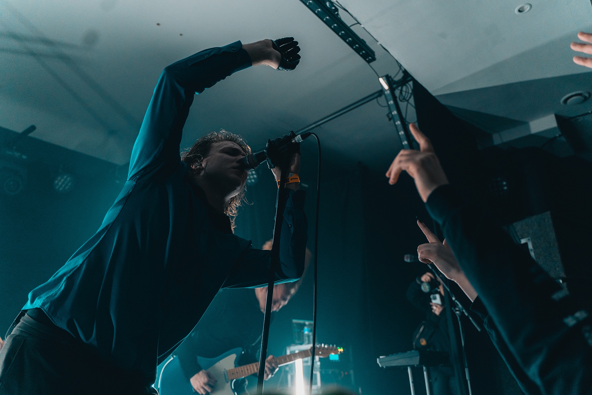 It’s a tough act to follow, and UK outfit MODERN ERROR have their work cut out for them. Fusing electronics with metalcore is nothing new, but the band have their own particular take on it that brings in tinges of emo and post-hardcore. Synths pulse atop electronic drums, interspersing the heavier moments where the trio dial up the aggression. The biggest problem tonight isn’t with their music but the sound; where most trios have members doing lead vocal duty along with something else, MODERN ERROR have a lone vocalist in Zak Pinchin. That means they lack a live bassist, unfortunately undermining their songs in some parts where it could be most impactful. Despite this, they still portray their own vision for their live shows, tube lights flanking the stage that alternate between various block colours or flashes and Pinchin‘s own relentless energy. Fortunately their towering choruses aren’t robbed of their emotional punch and they still deliver a solid performance in spite of the occasionally thin sound.