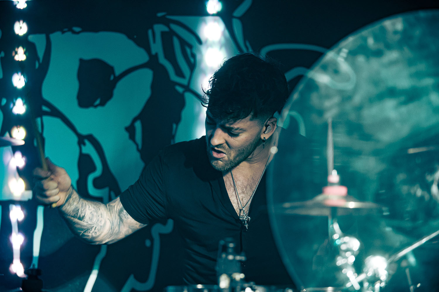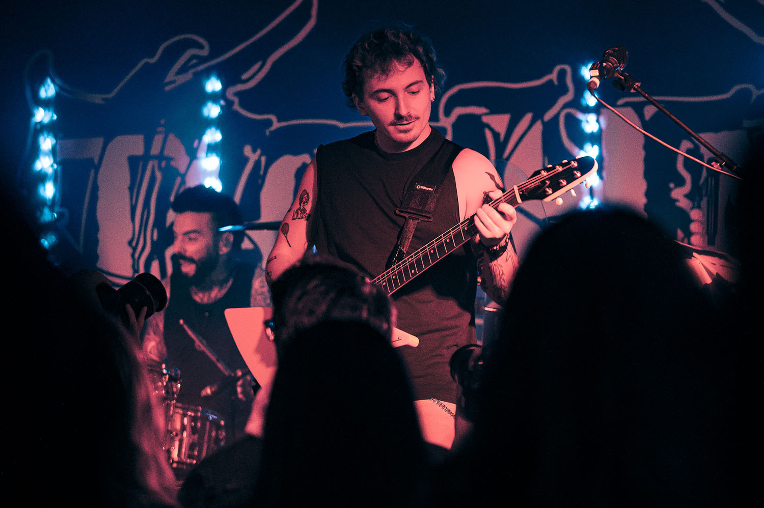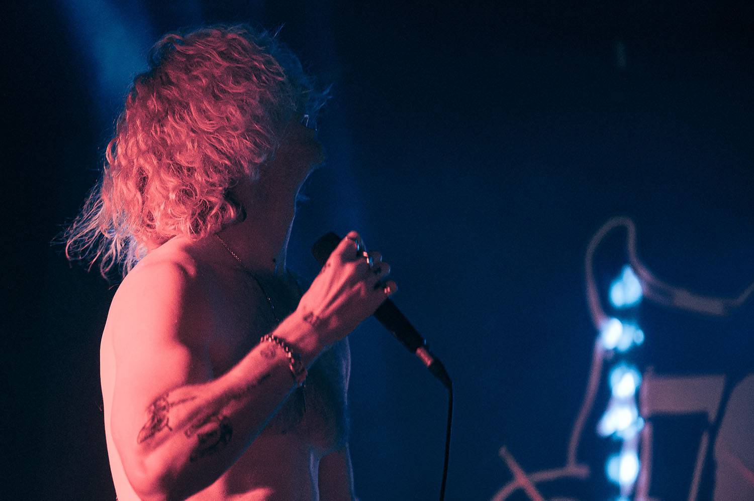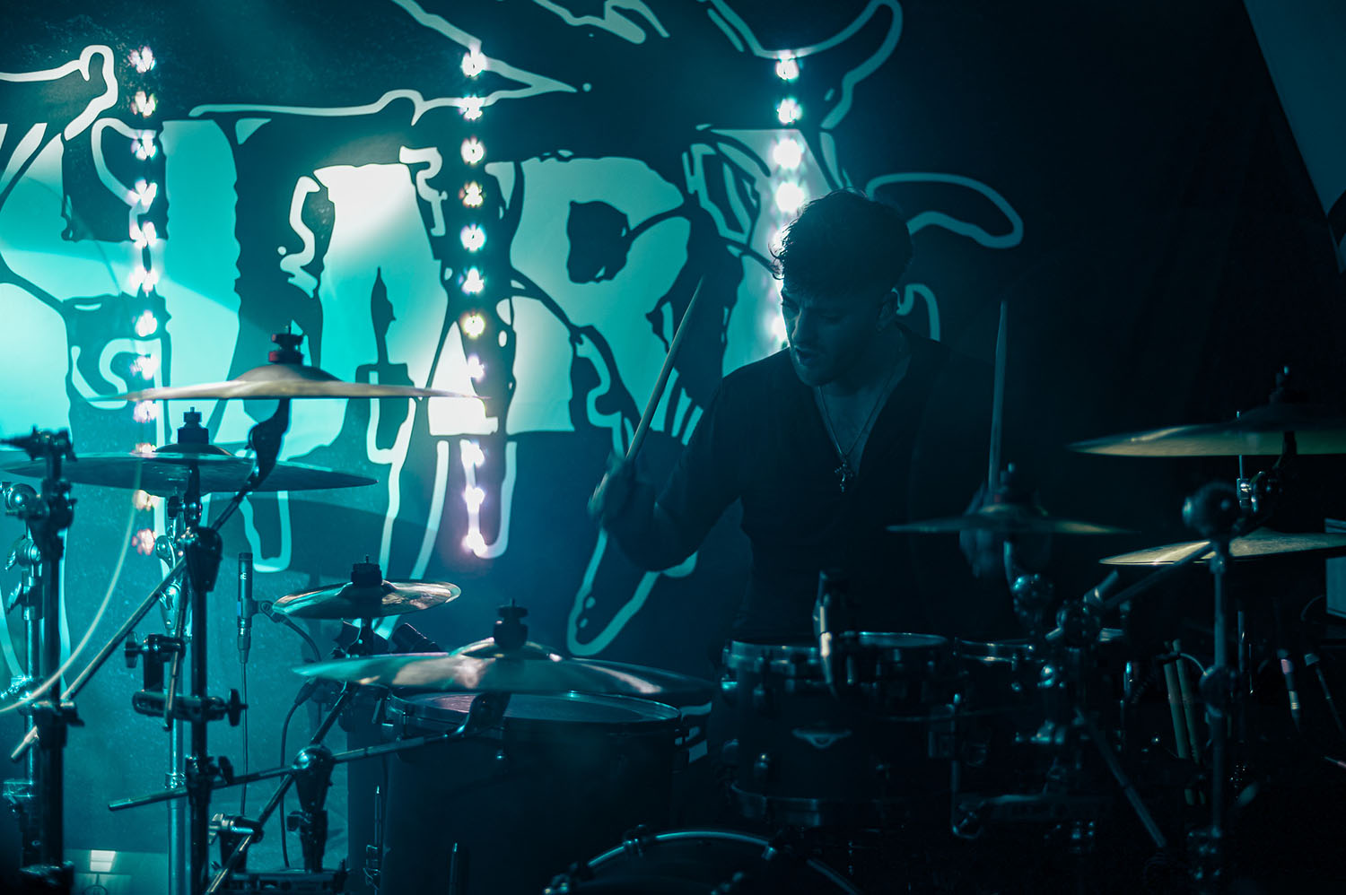 Opening the party is PARADISE FELL, a nu post-grunge group from London who combine effortless pop punk energy with grittier, grunge-tinted modern metal that instantly gets the crowd grooving. “You’re really lovely. Thanks for not throwing stuff at us already,” vocalist Matt Bankhurst says from behind his blonde Kurt Cobain curtains. Matt also doesn’t want to make a drum-a out of it, but they have to play a reduced set because they had to switch drummers only 24 hours prior to getting on stage. Drama or not, the trio have great chemistry, and it sizzles through their short but electric set that even finishes with a mosh-around-the-guitarist pit.