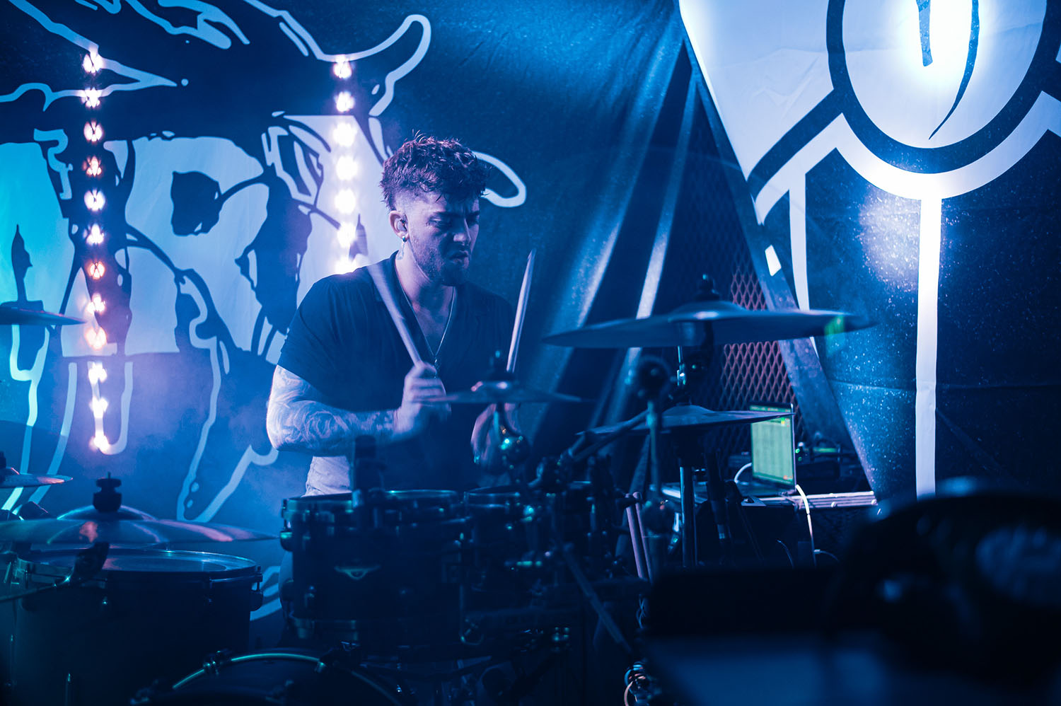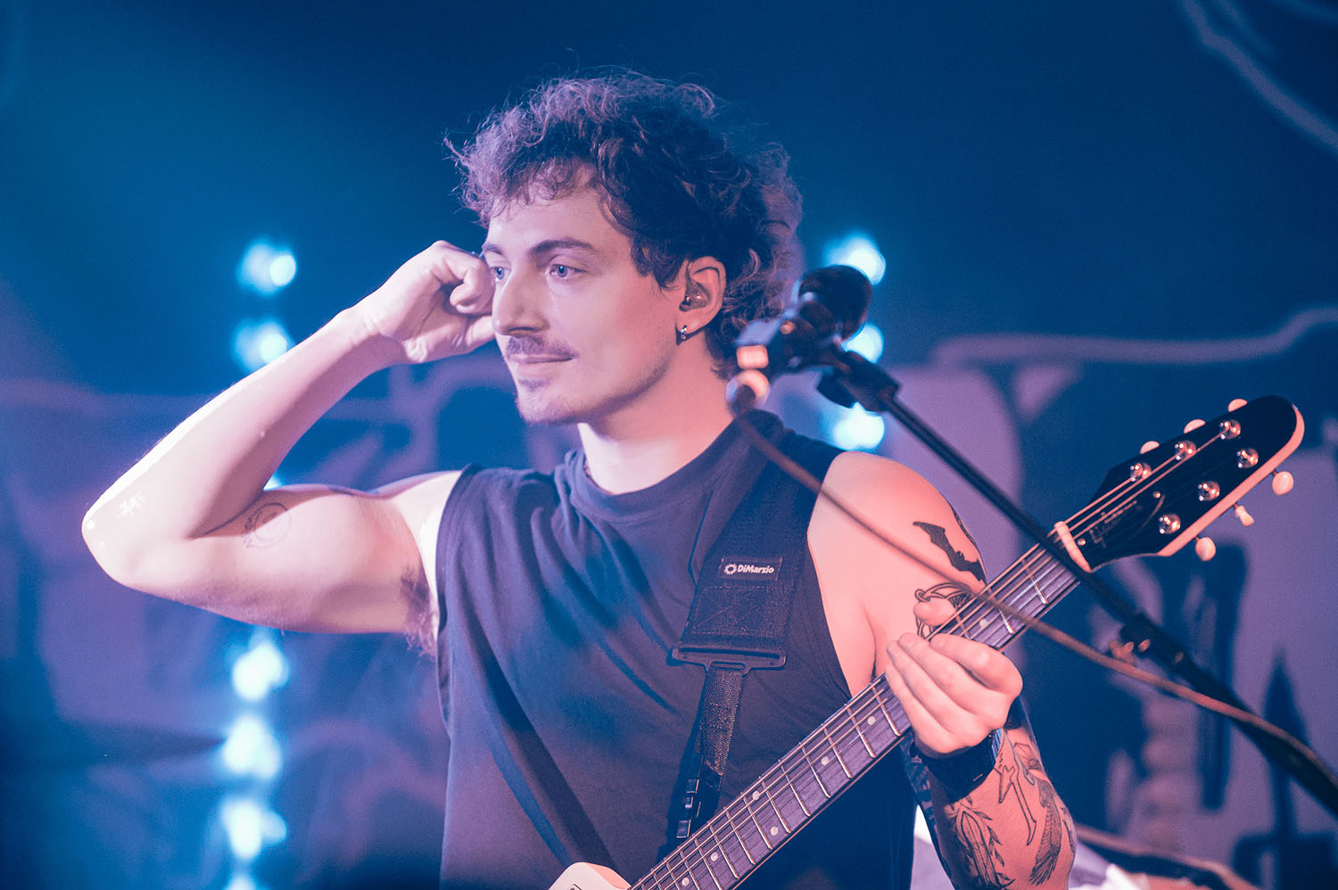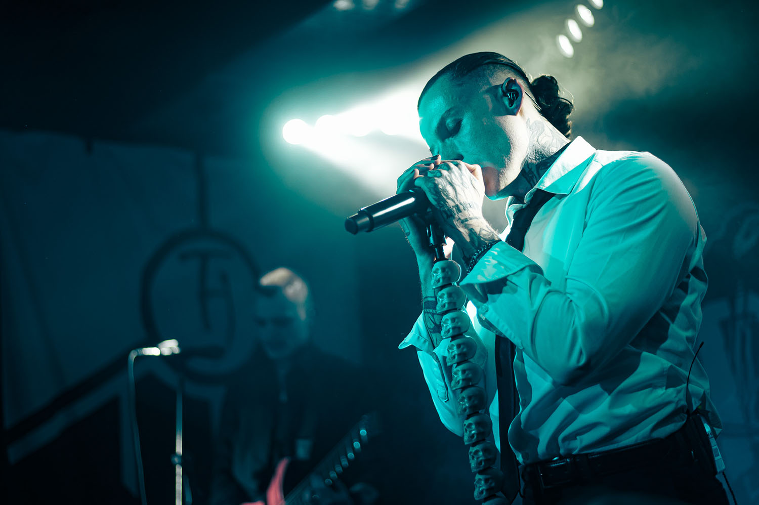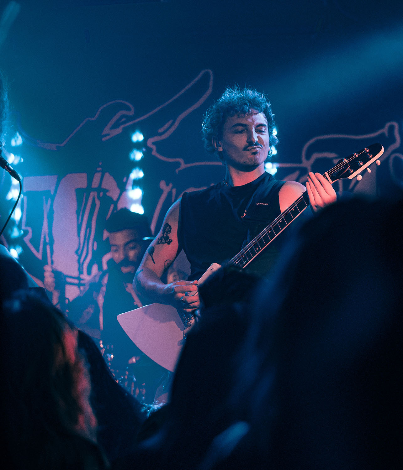 Opening the party is PARADISE FELL, a nu post-grunge group from London who combine effortless pop punk energy with grittier, grunge-tinted modern metal that instantly gets the crowd grooving. “You’re really lovely. Thanks for not throwing stuff at us already,” vocalist Matt Bankhurst says from behind his blonde Kurt Cobain curtains. Matt also doesn’t want to make a drum-a out of it, but they have to play a reduced set because they had to switch drummers only 24 hours prior to getting on stage. Drama or not, the trio have great chemistry, and it sizzles through their short but electric set that even finishes with a mosh-around-the-guitarist pit.