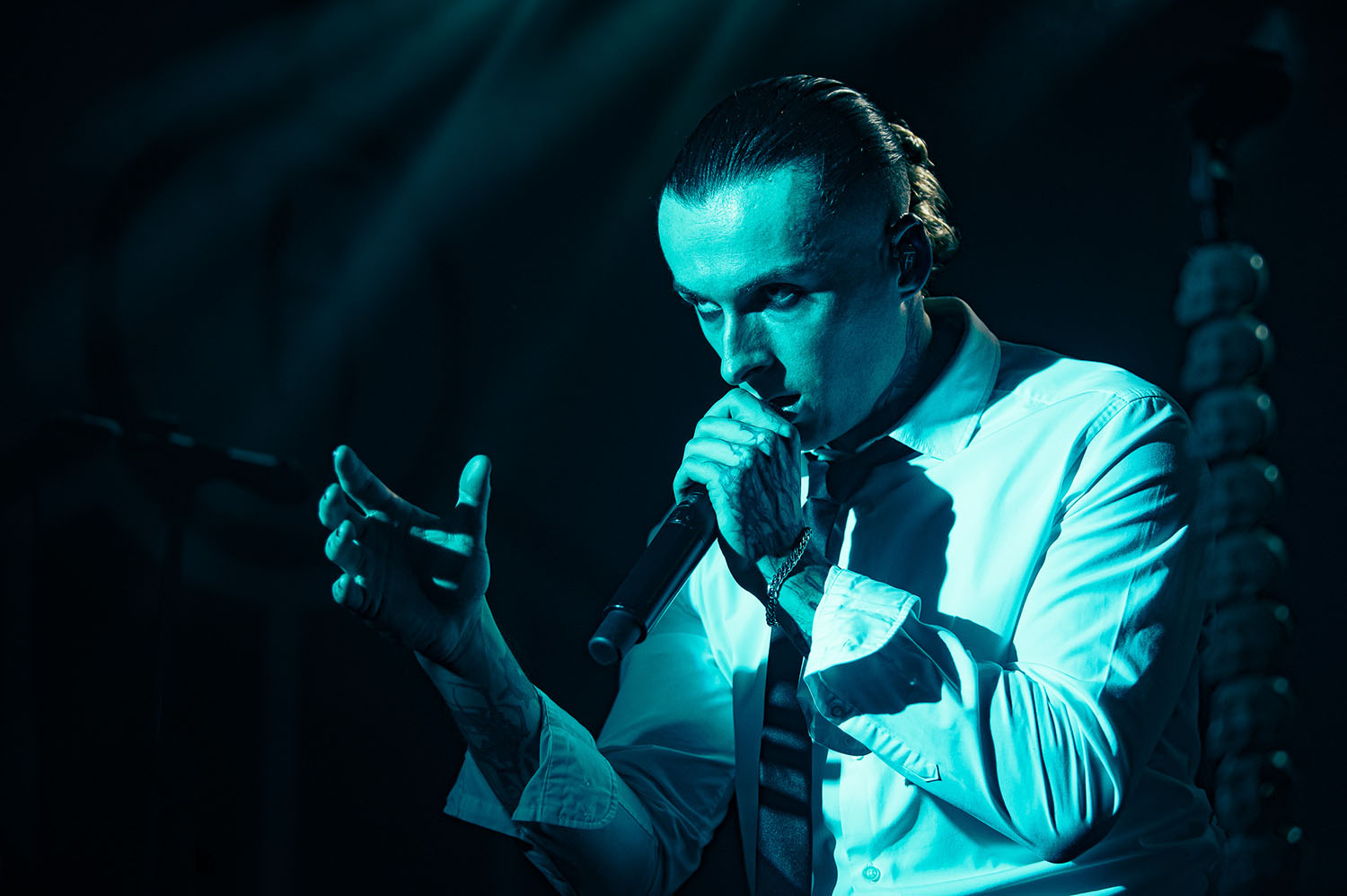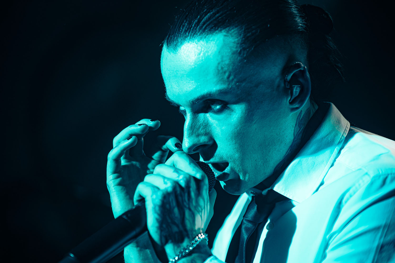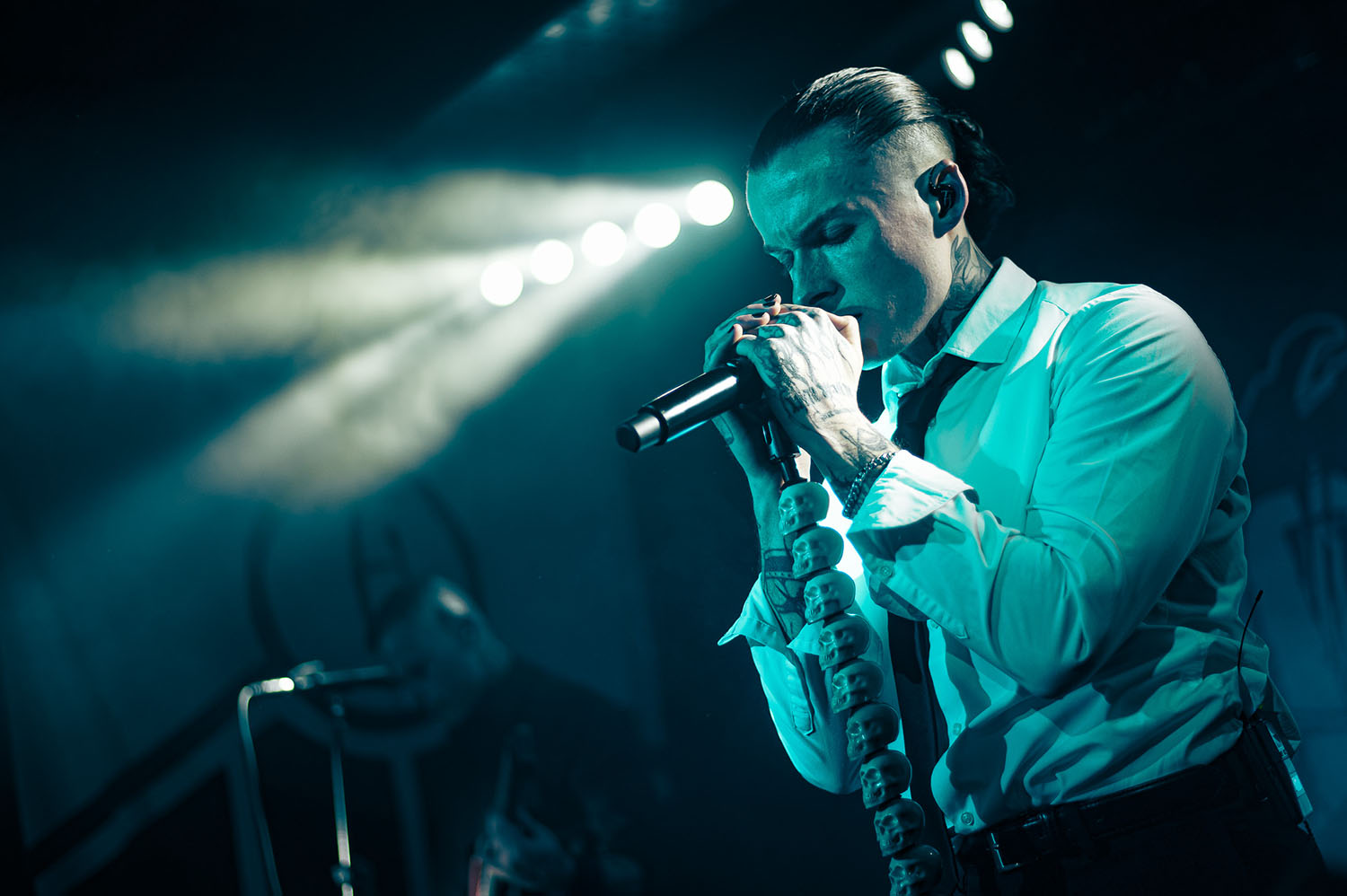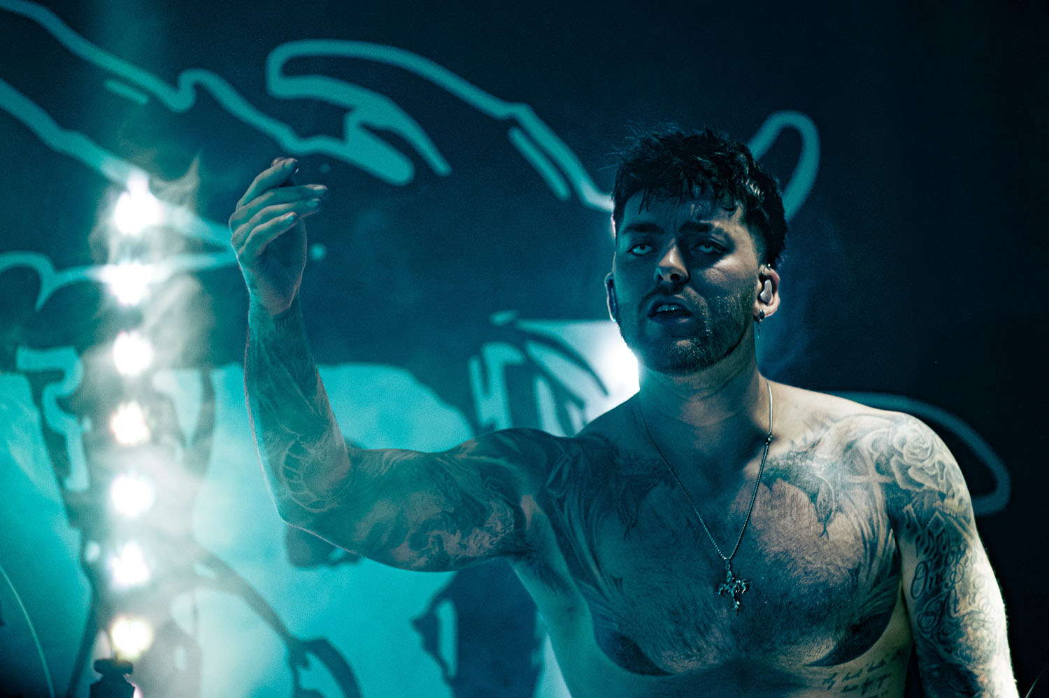 Opening the party is PARADISE FELL, a nu post-grunge group from London who combine effortless pop punk energy with grittier, grunge-tinted modern metal that instantly gets the crowd grooving. “You’re really lovely. Thanks for not throwing stuff at us already,” vocalist Matt Bankhurst says from behind his blonde Kurt Cobain curtains. Matt also doesn’t want to make a drum-a out of it, but they have to play a reduced set because they had to switch drummers only 24 hours prior to getting on stage. Drama or not, the trio have great chemistry, and it sizzles through their short but electric set that even finishes with a mosh-around-the-guitarist pit.
